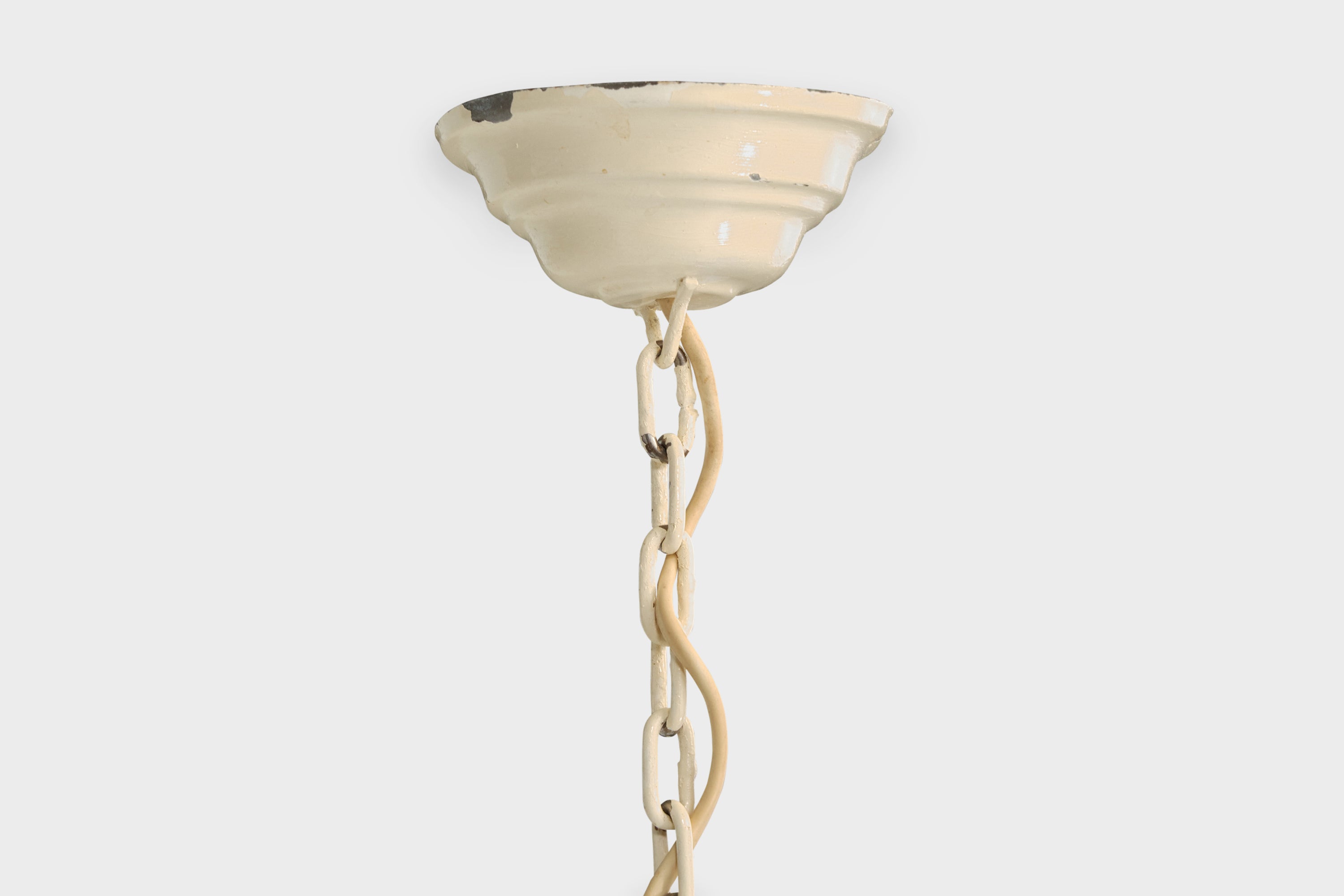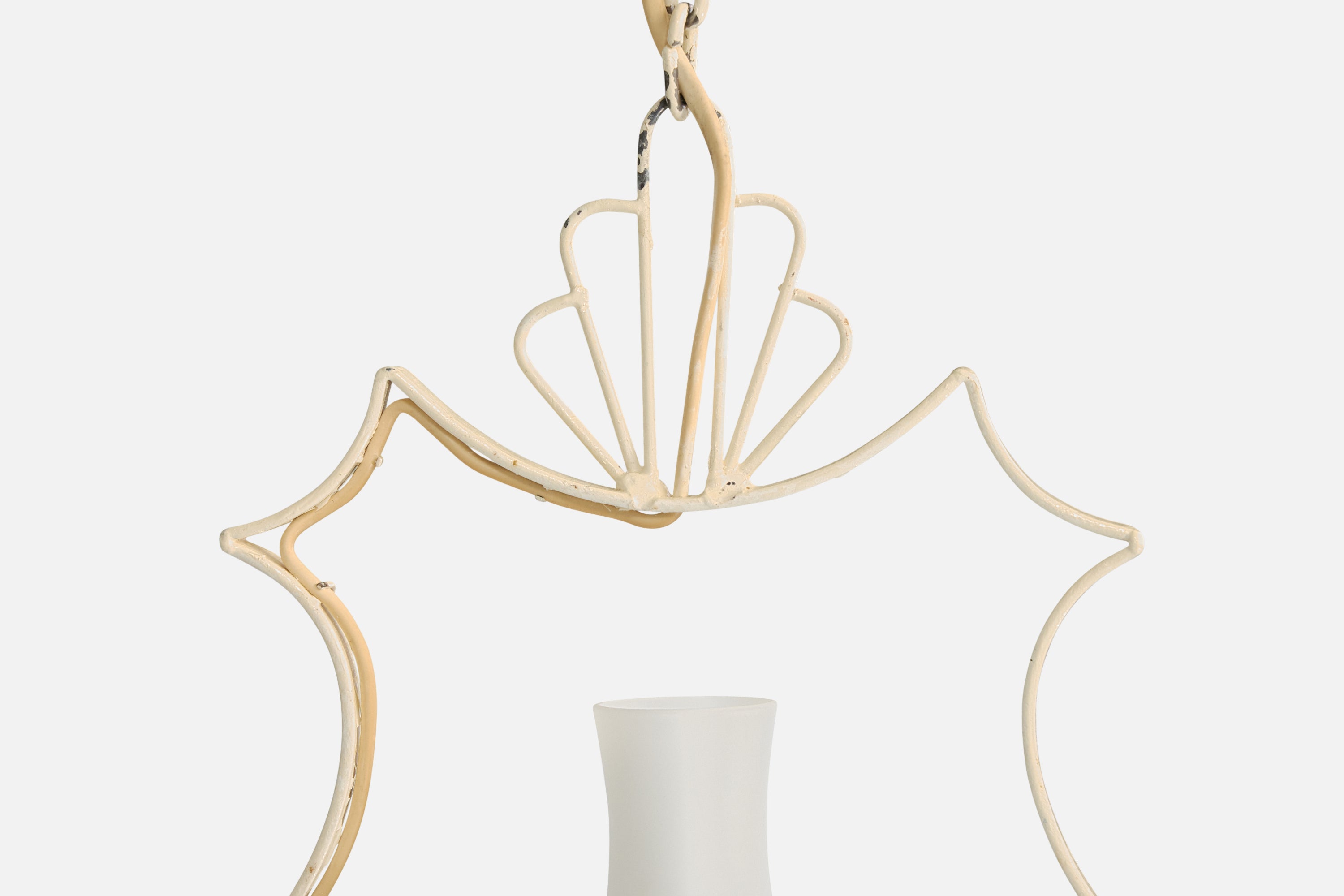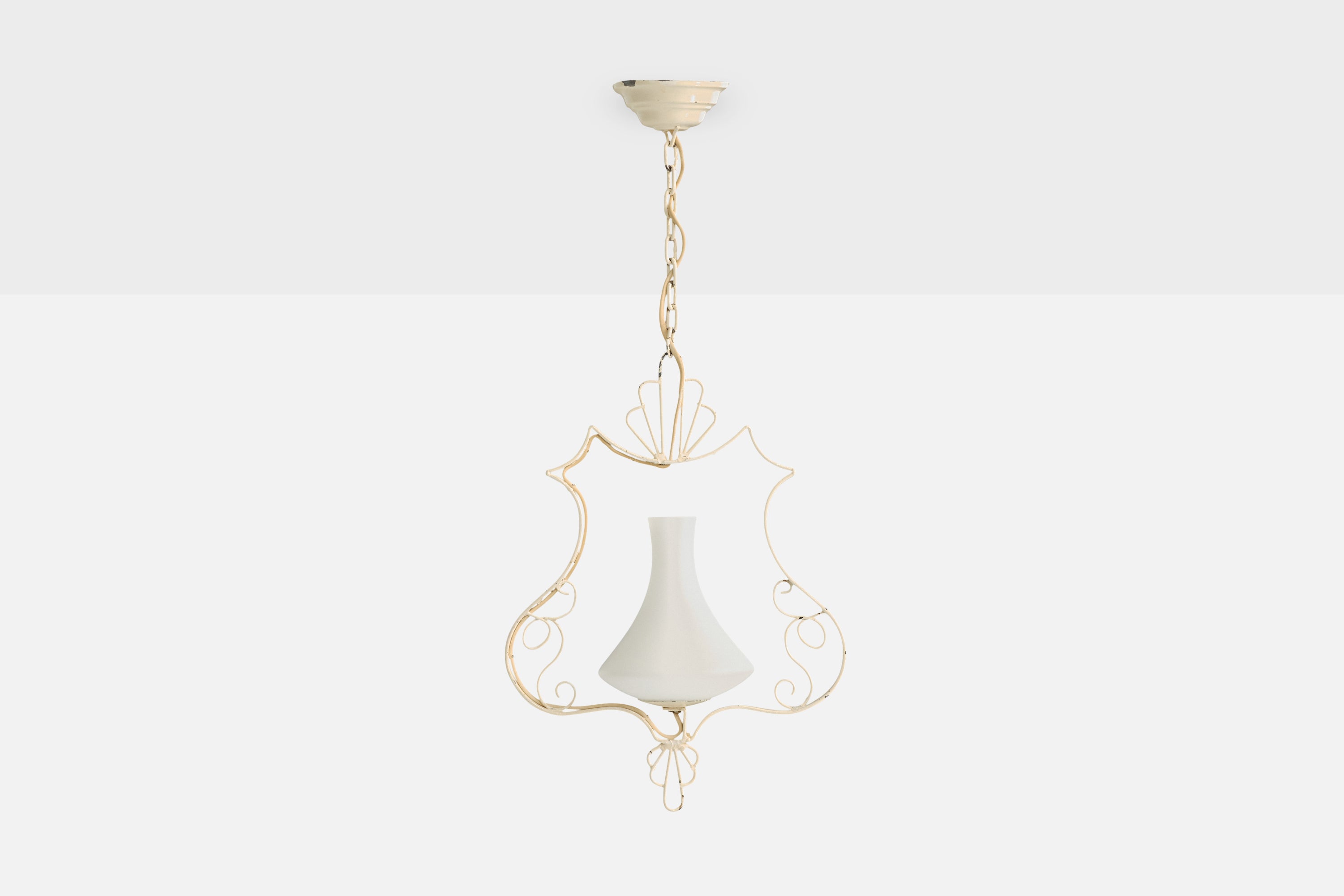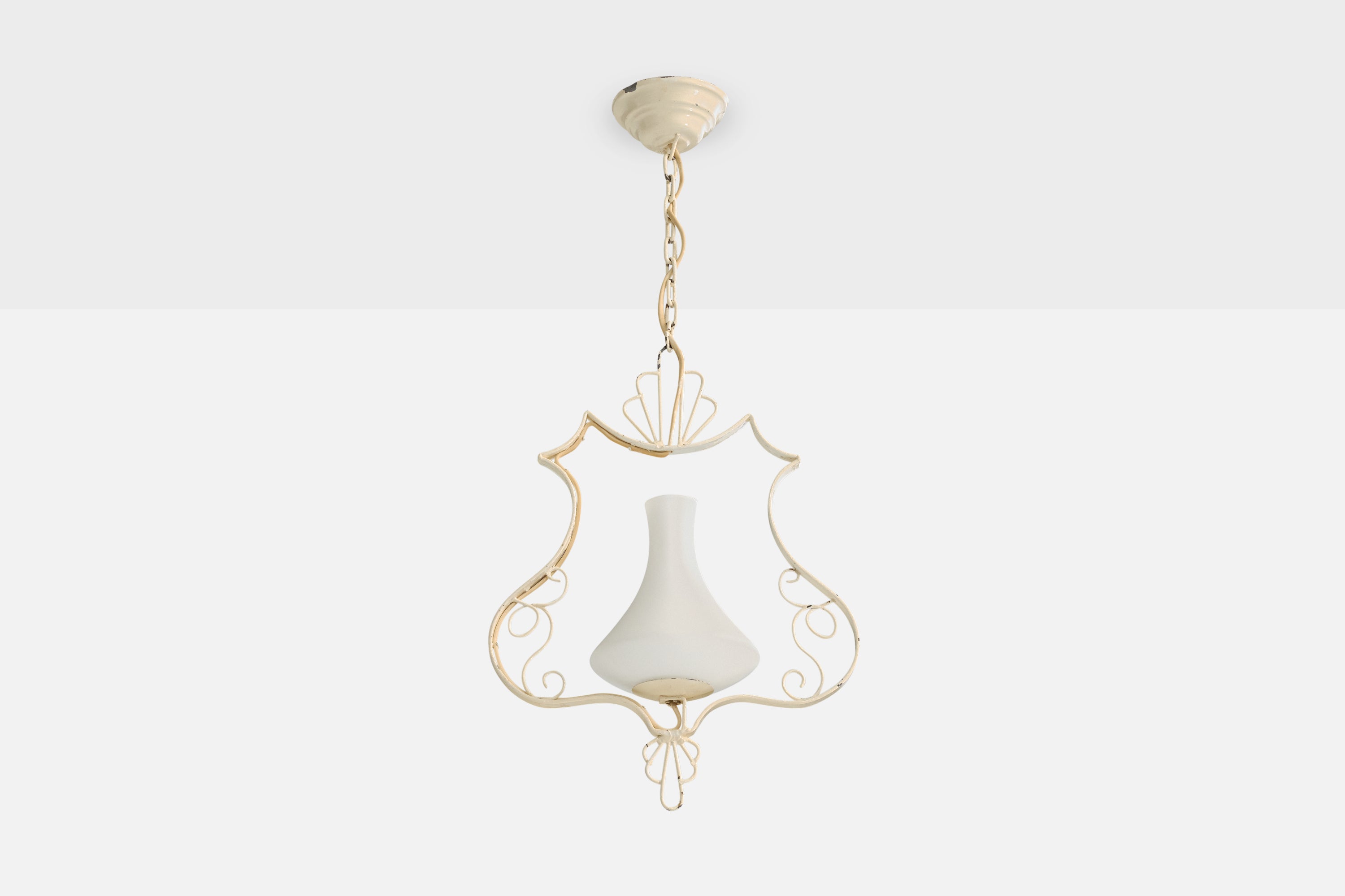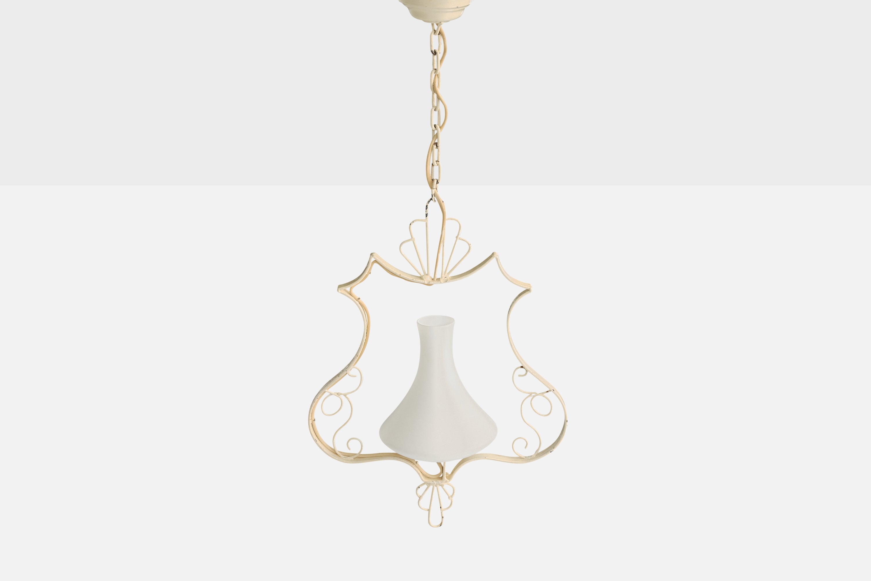 A cream-white metal and white opaline glass pendant light designed and produced in Sweden, c. 1940s.