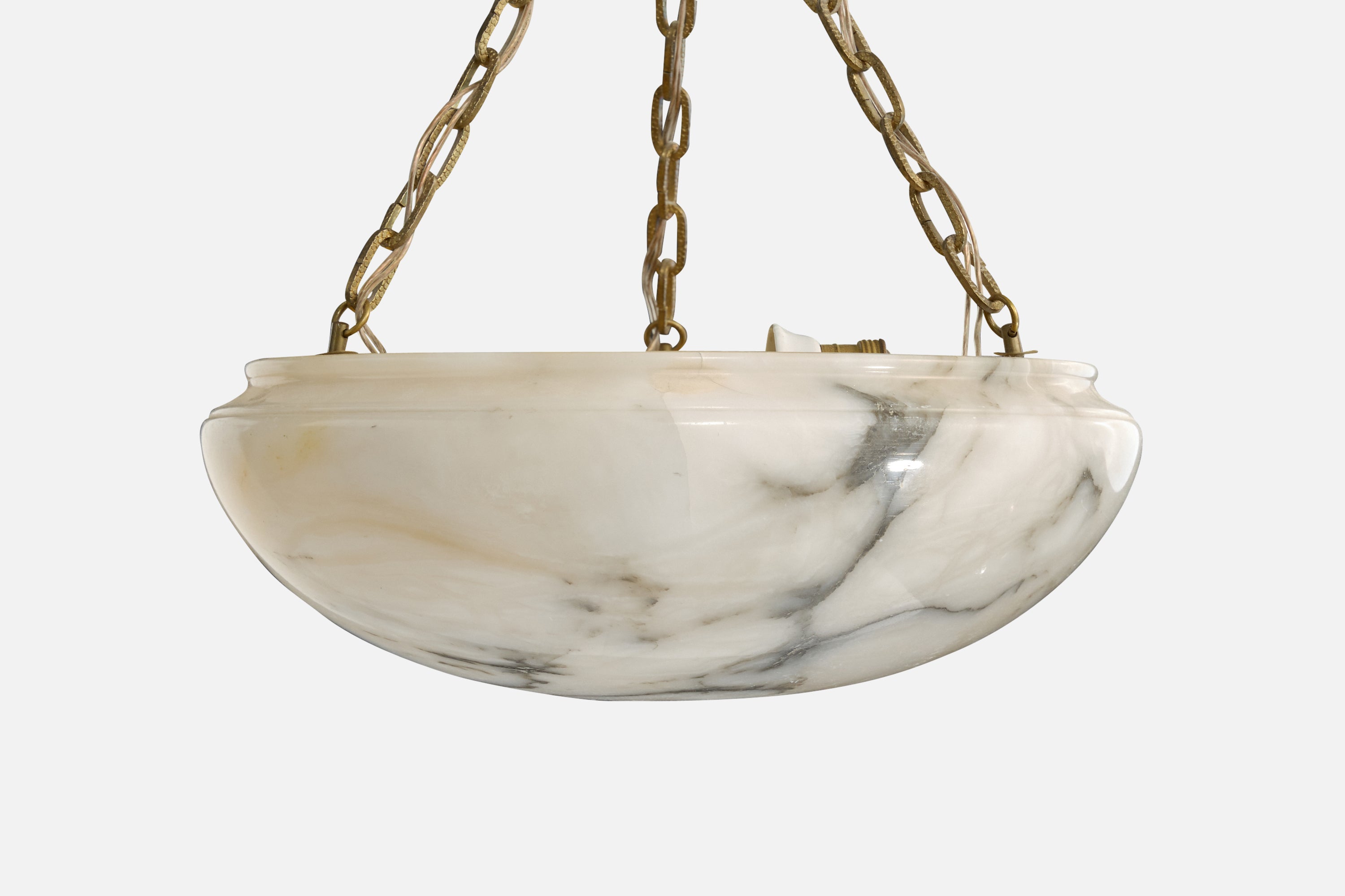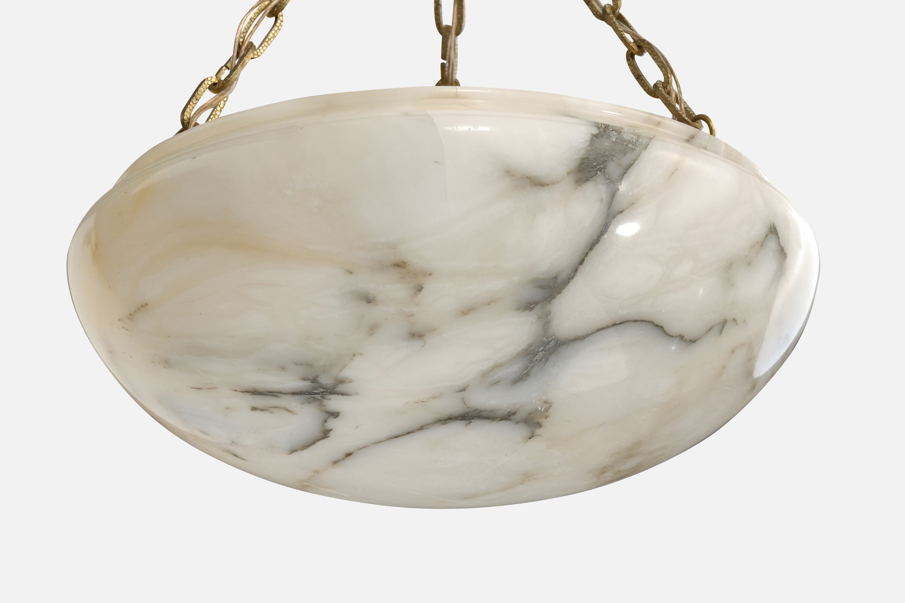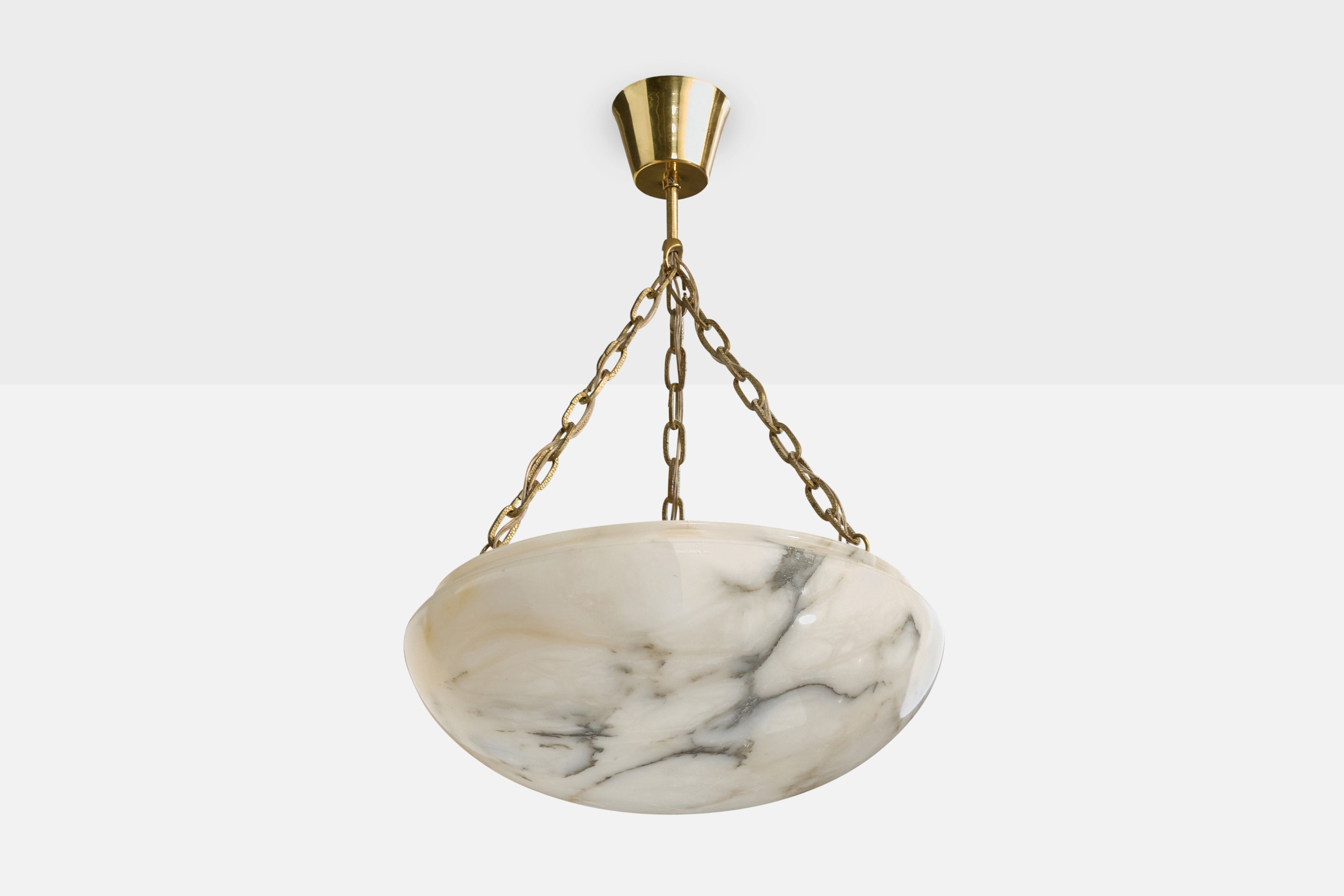 An alabaster and brass pendant light designed and produced in Sweden, c. 1940s.