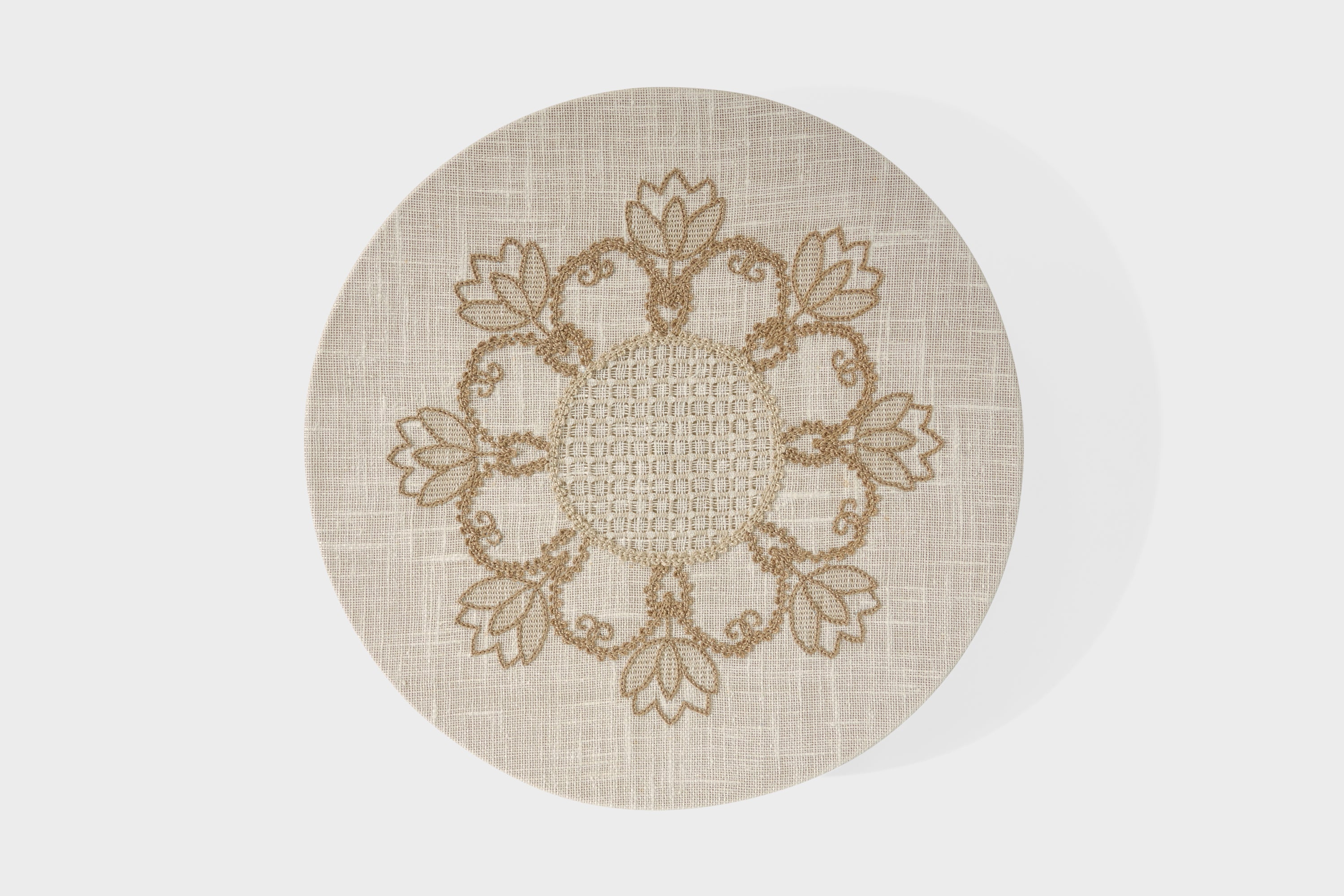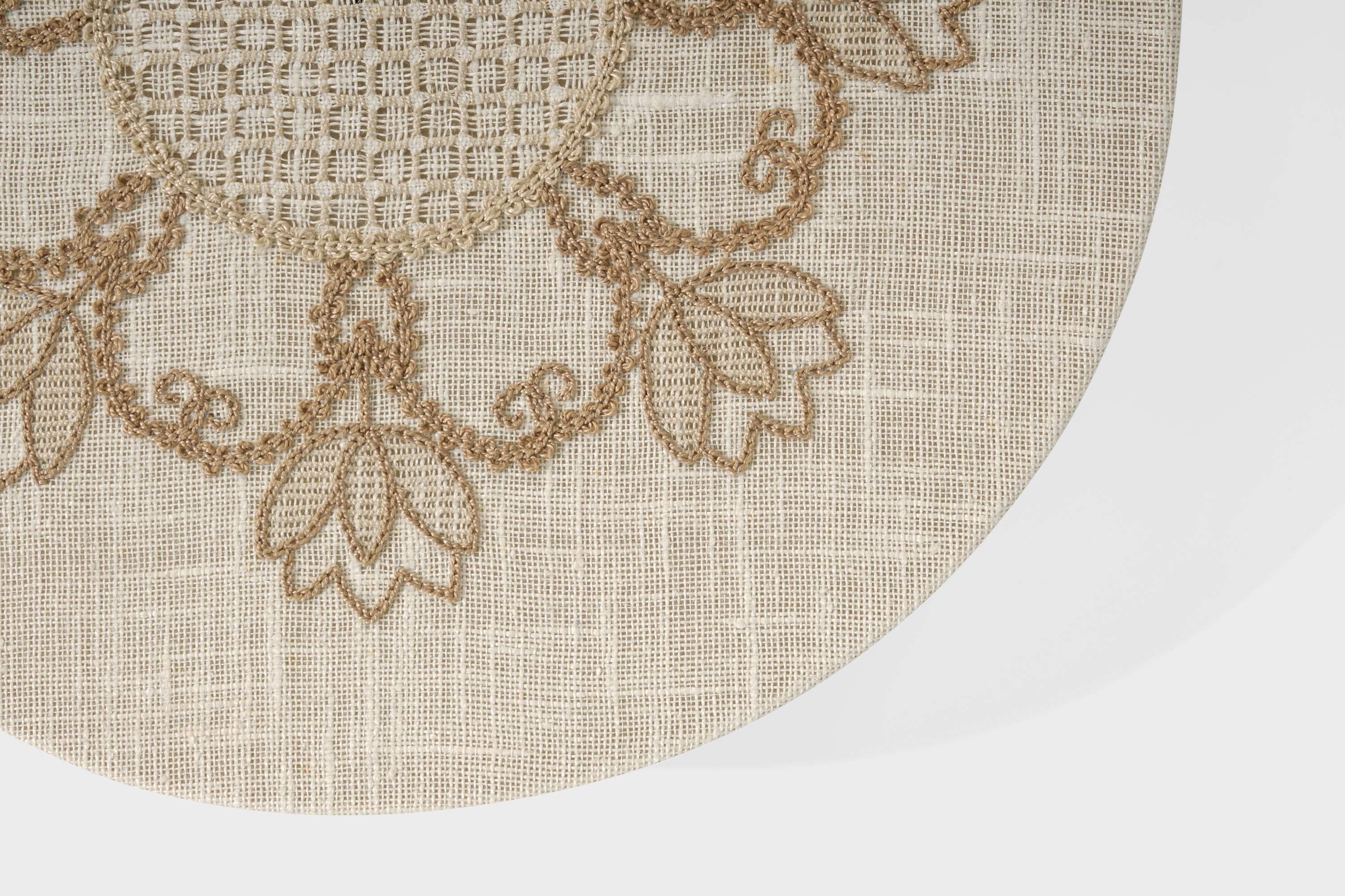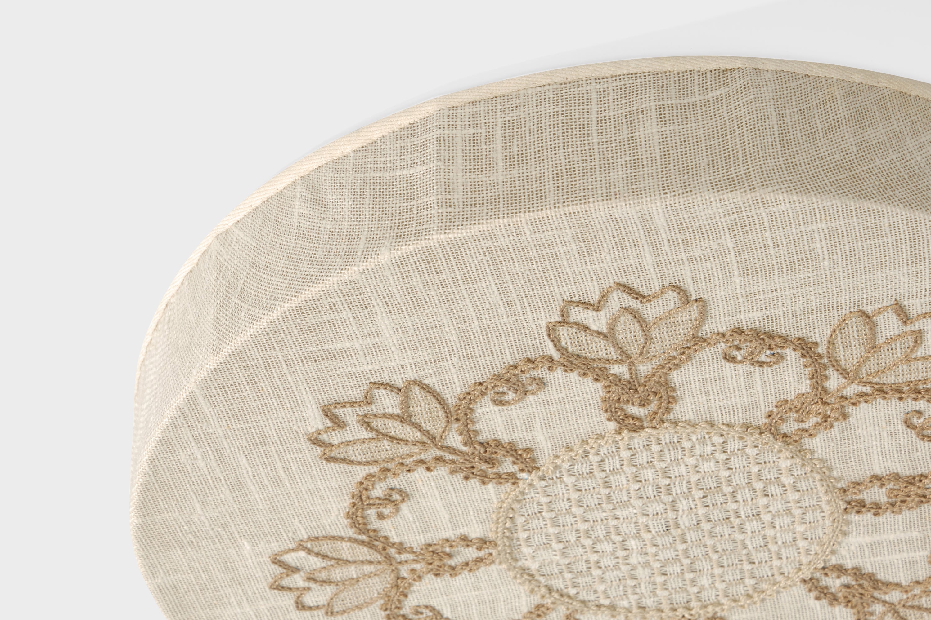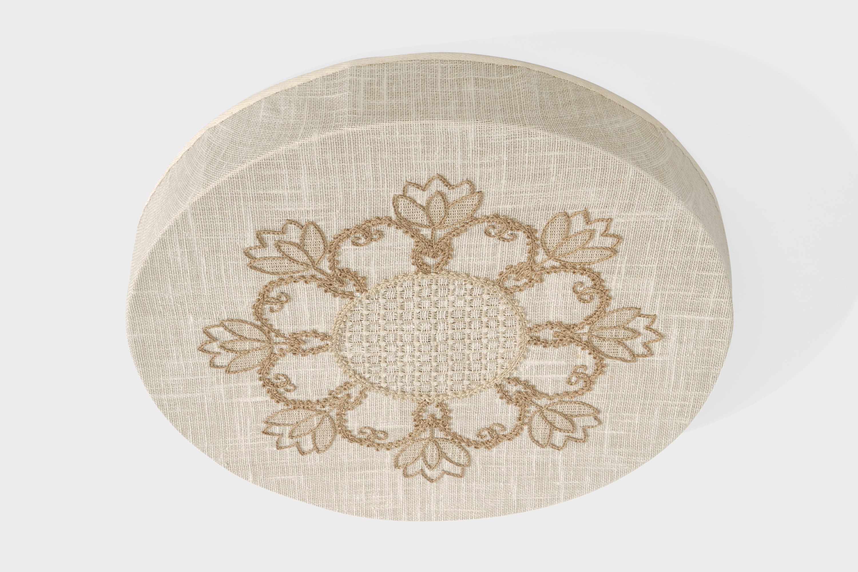A light grey beige fabric flush mount with floral embroidery designed and produced in Sweden, c. 1960s.