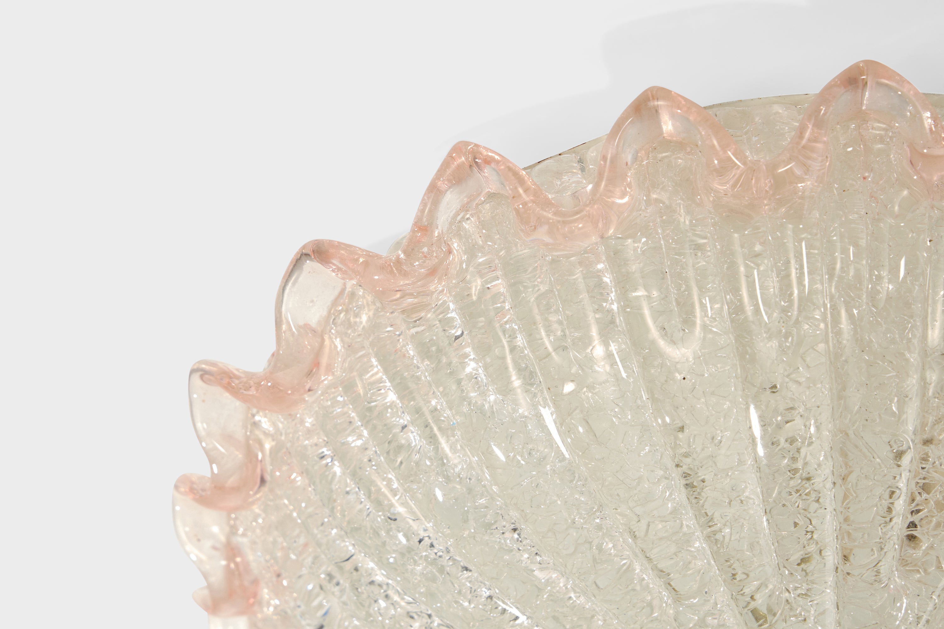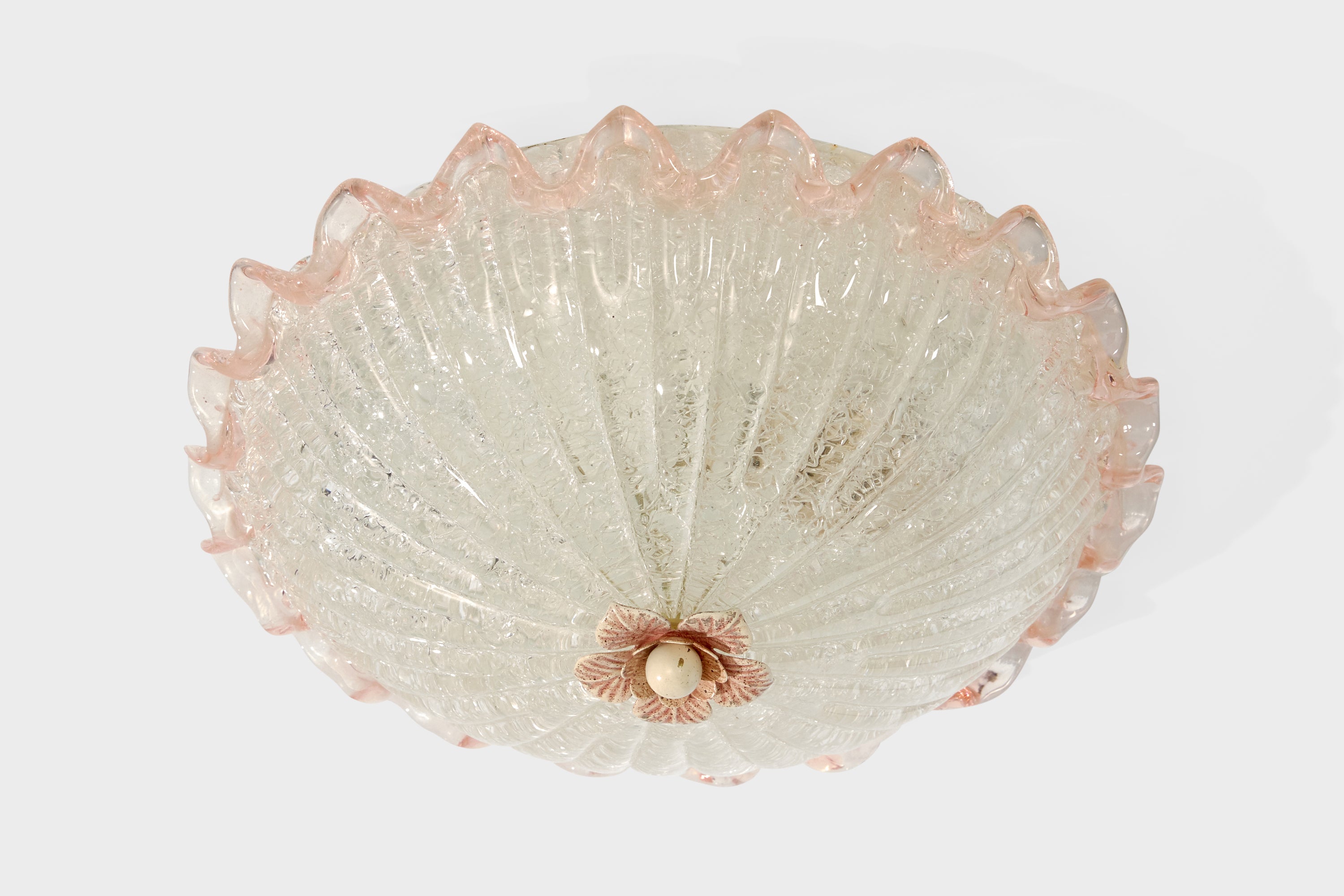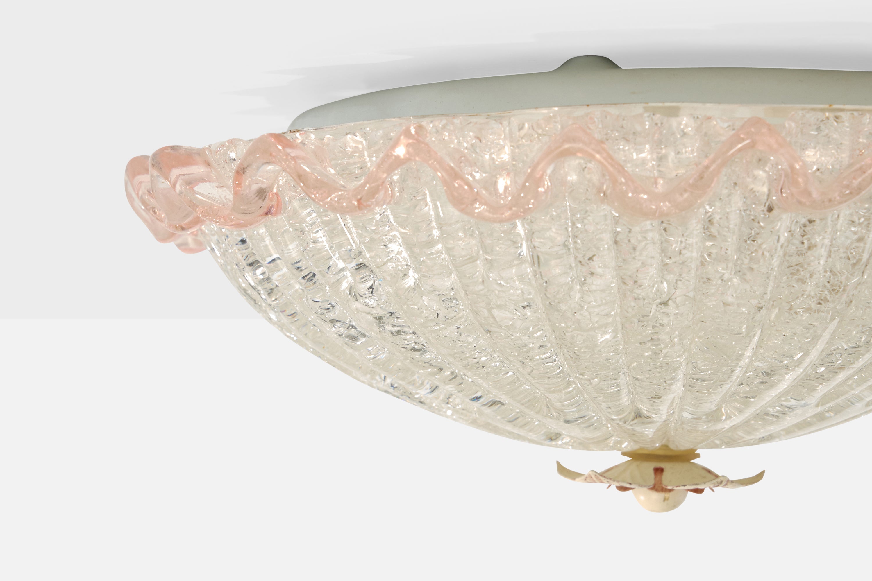 A pink-colored Murano glass flush mount designed and produced in Italy, c. 1990s.