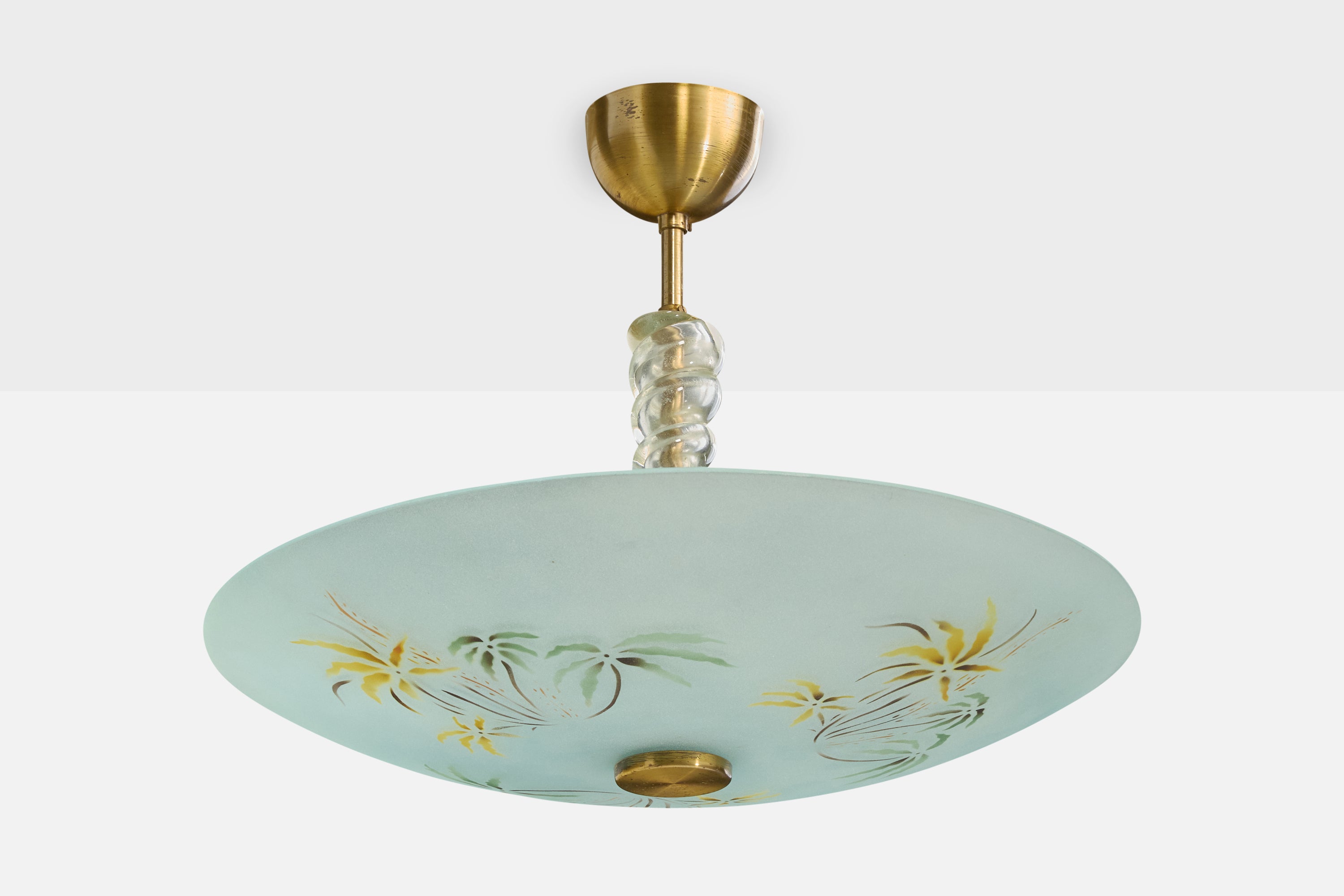 A glass and brass pendant light designed and produced in Sweden, c. 1950s.