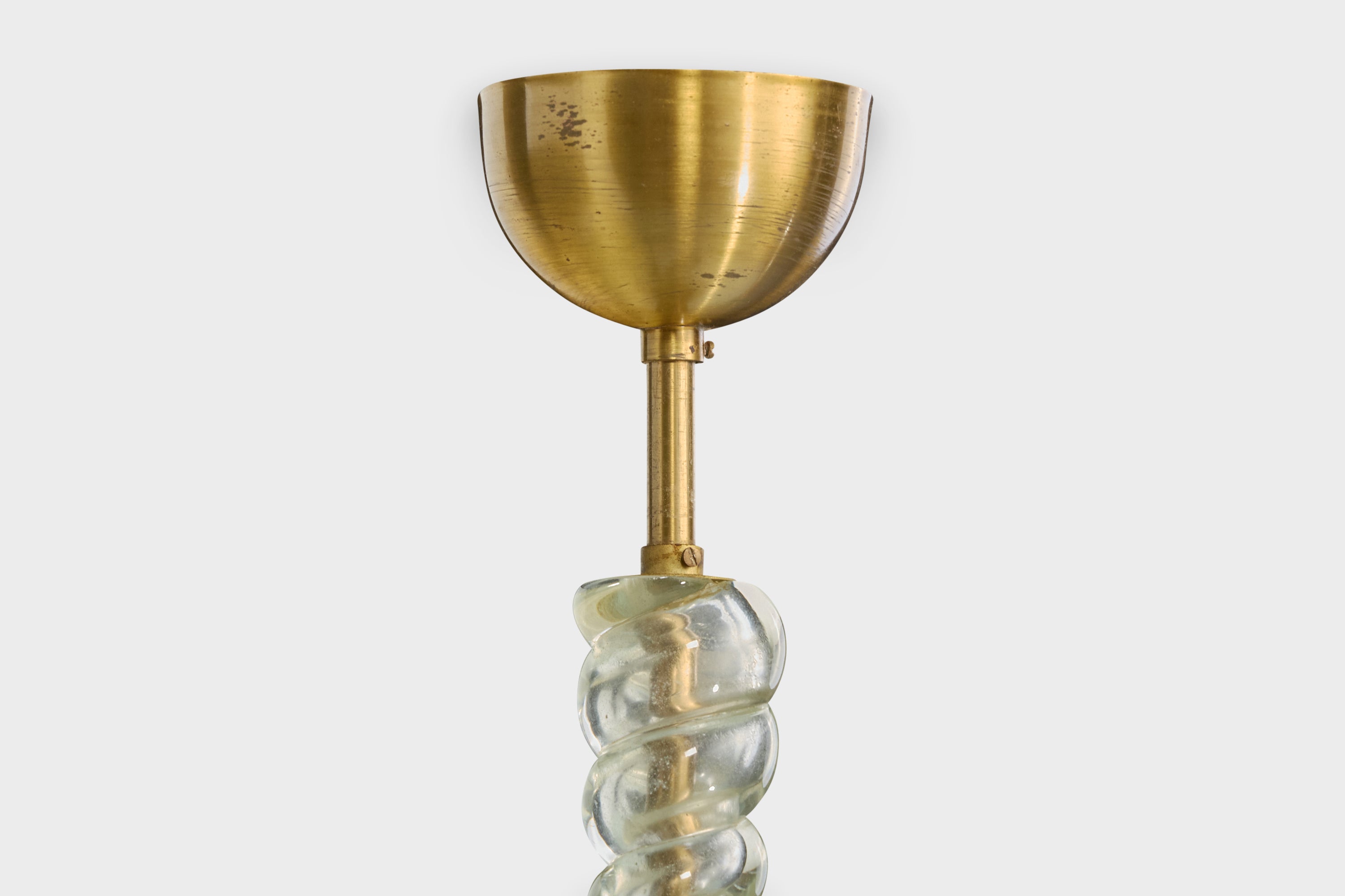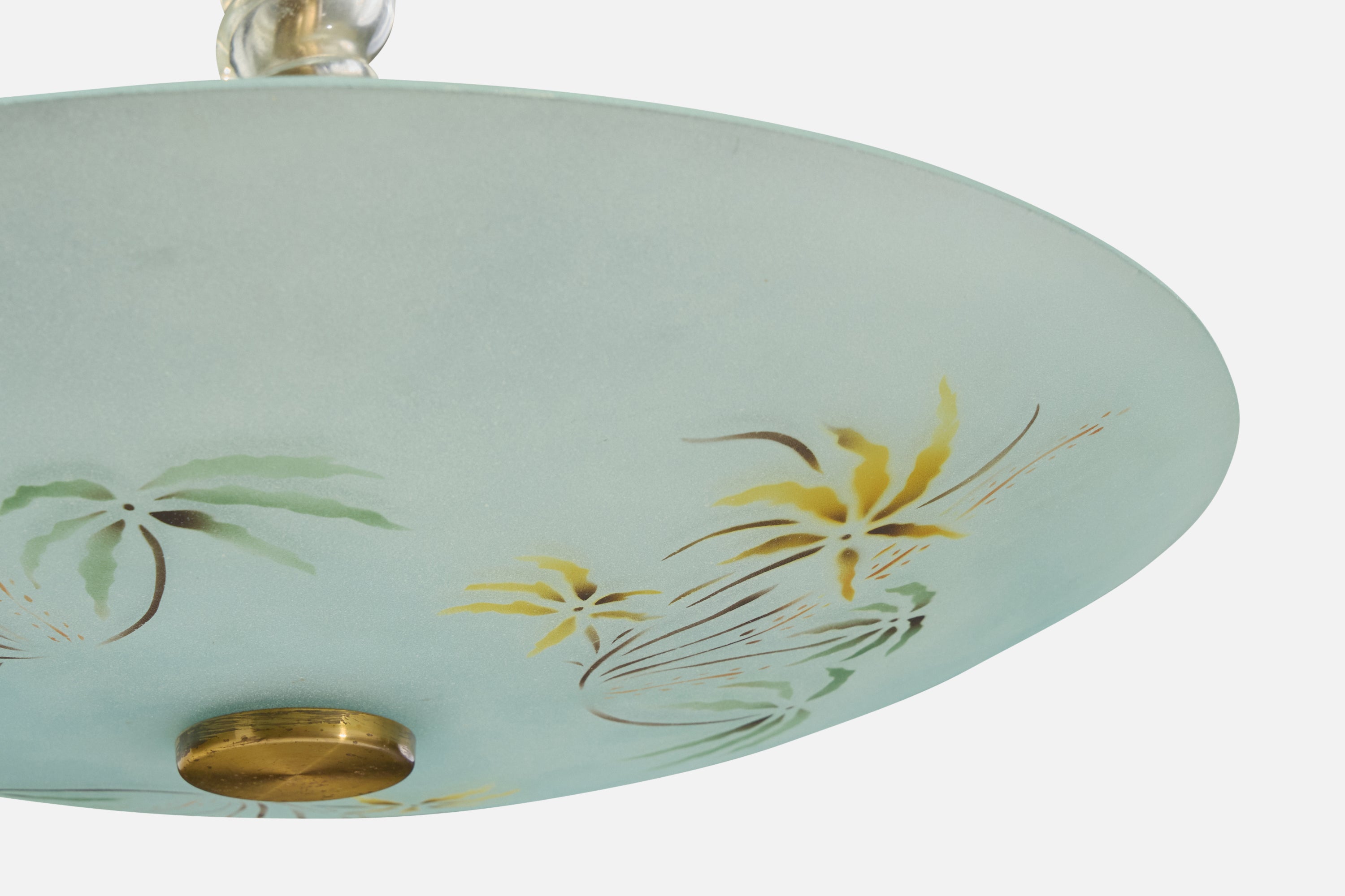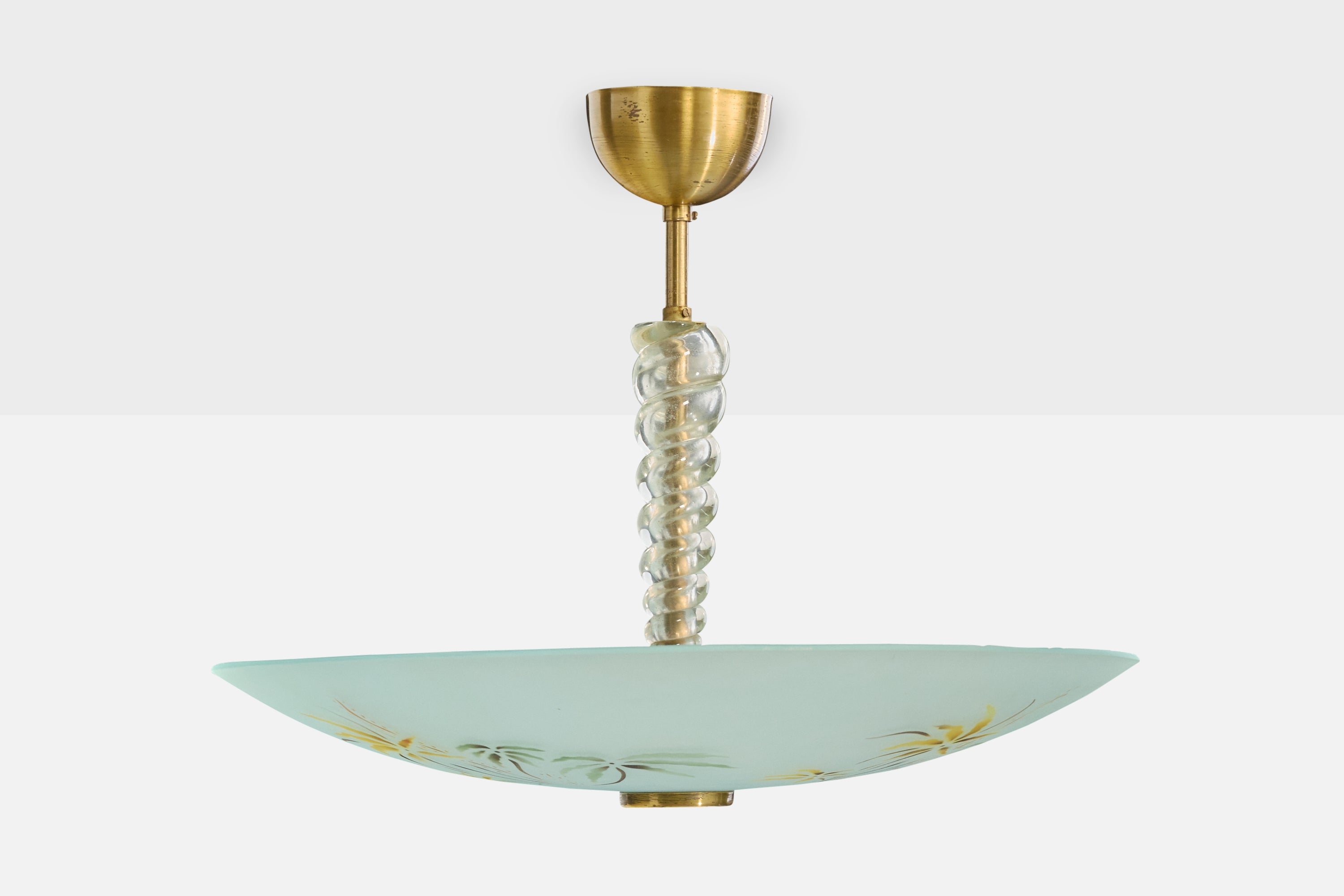 Swedish Designer, Pendant Light, Glass, Brass, Sweden, 1950s