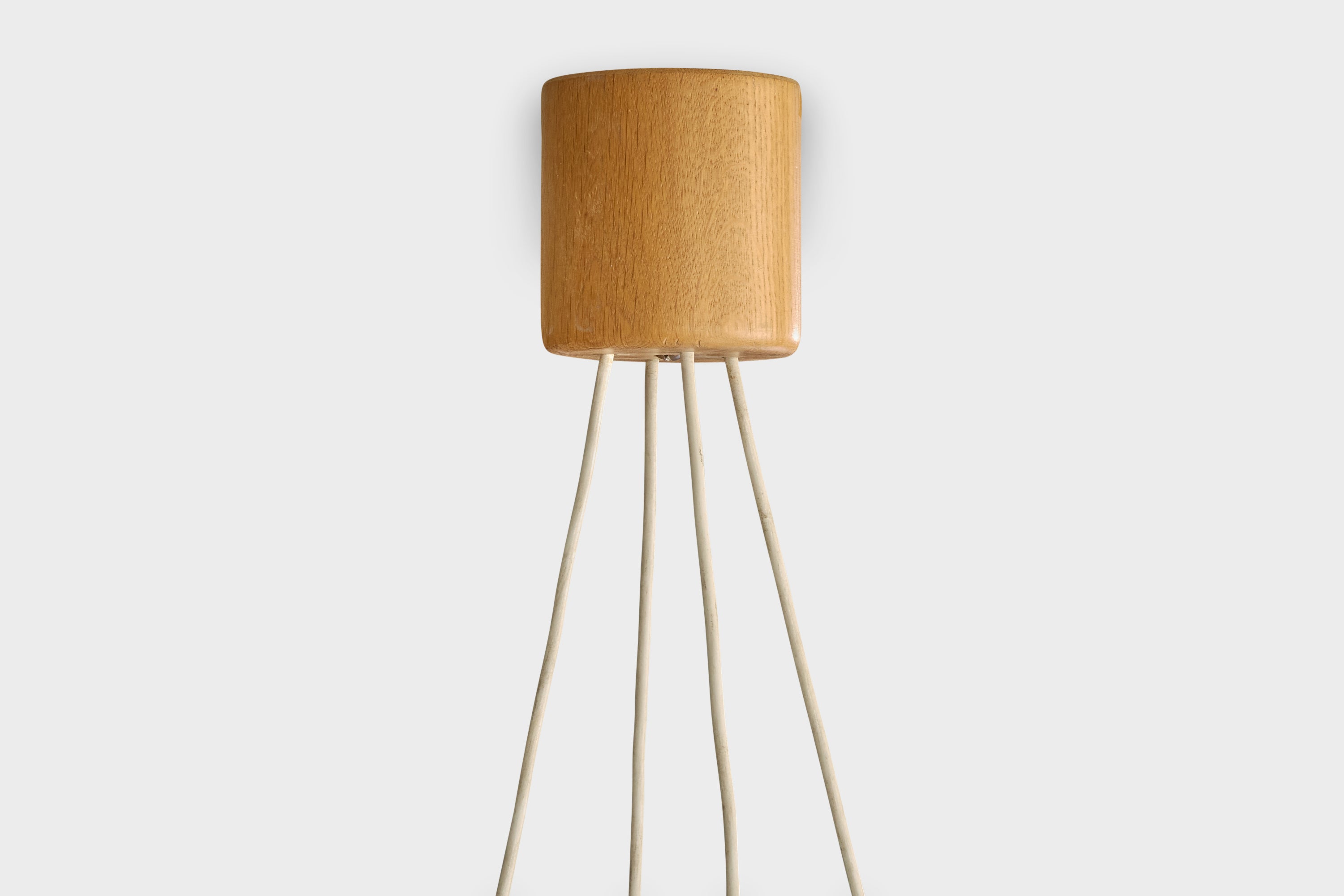 An oak and white acrylic chandelier designed by Uno & Östen Kristiansson and produced by Luxus, Vittsjö, Sweden, c. 1970s.