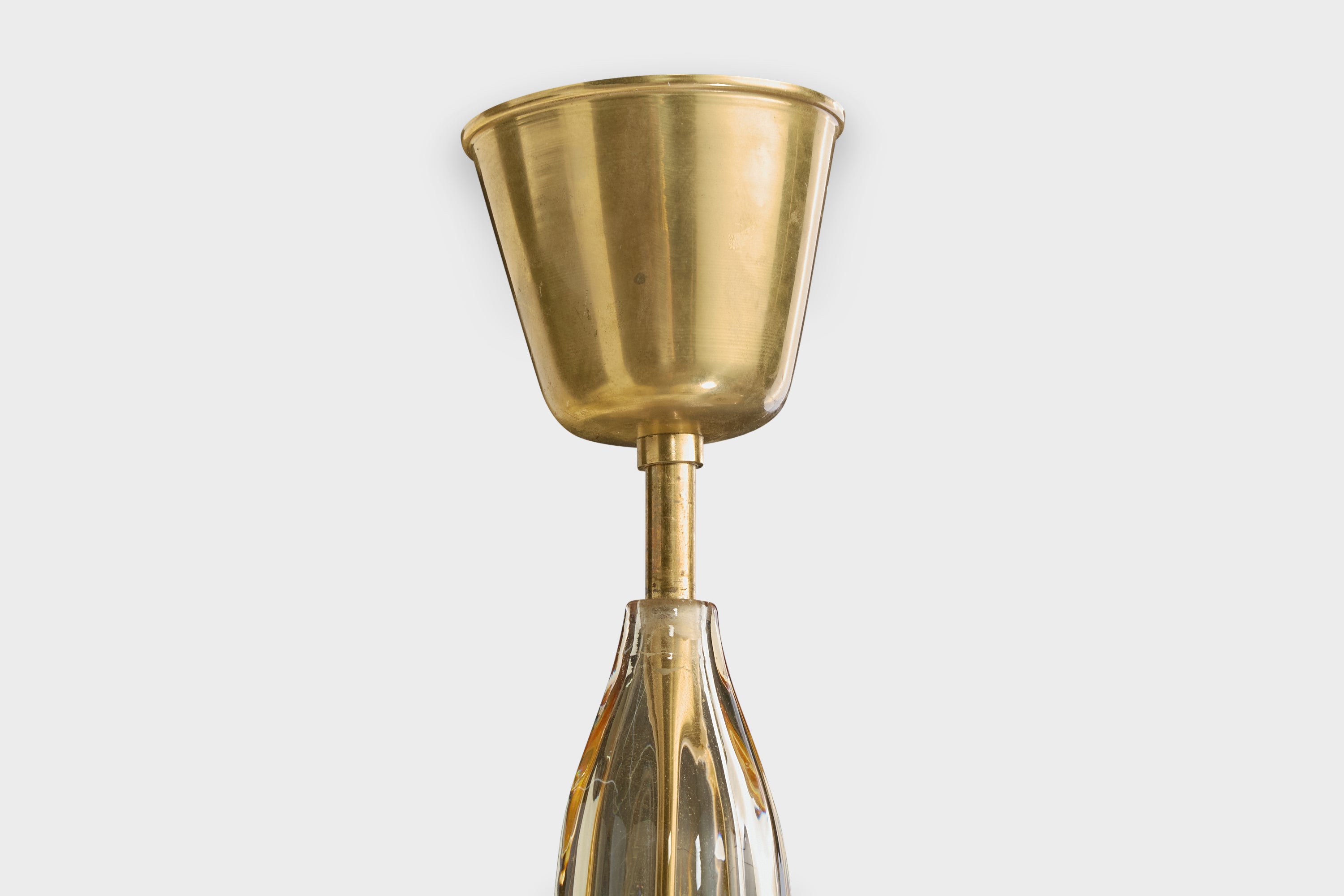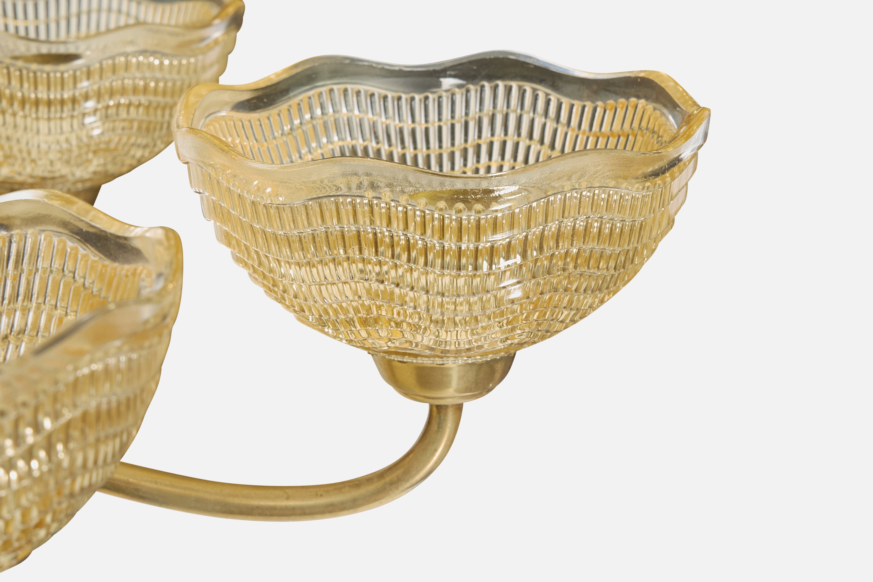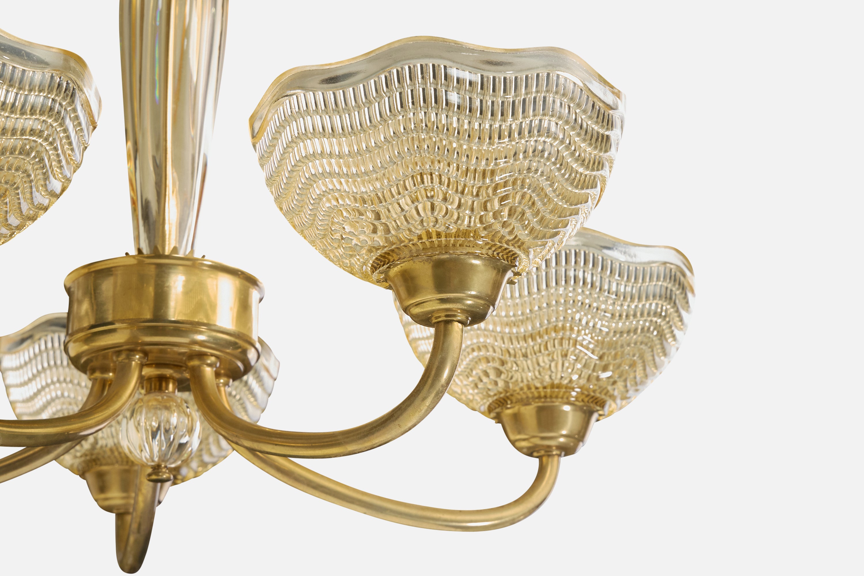 Fritz Kurz, Chandelier, Glass, Brass, Sweden, 1950s