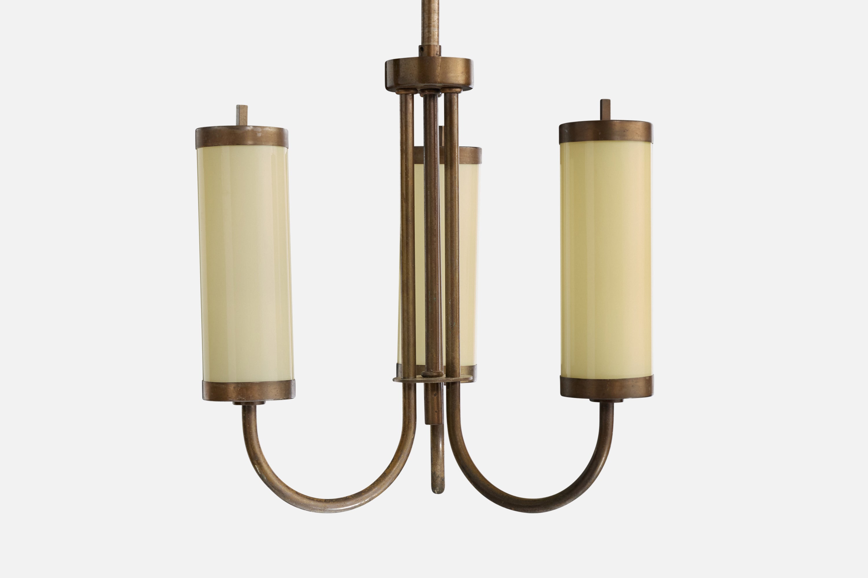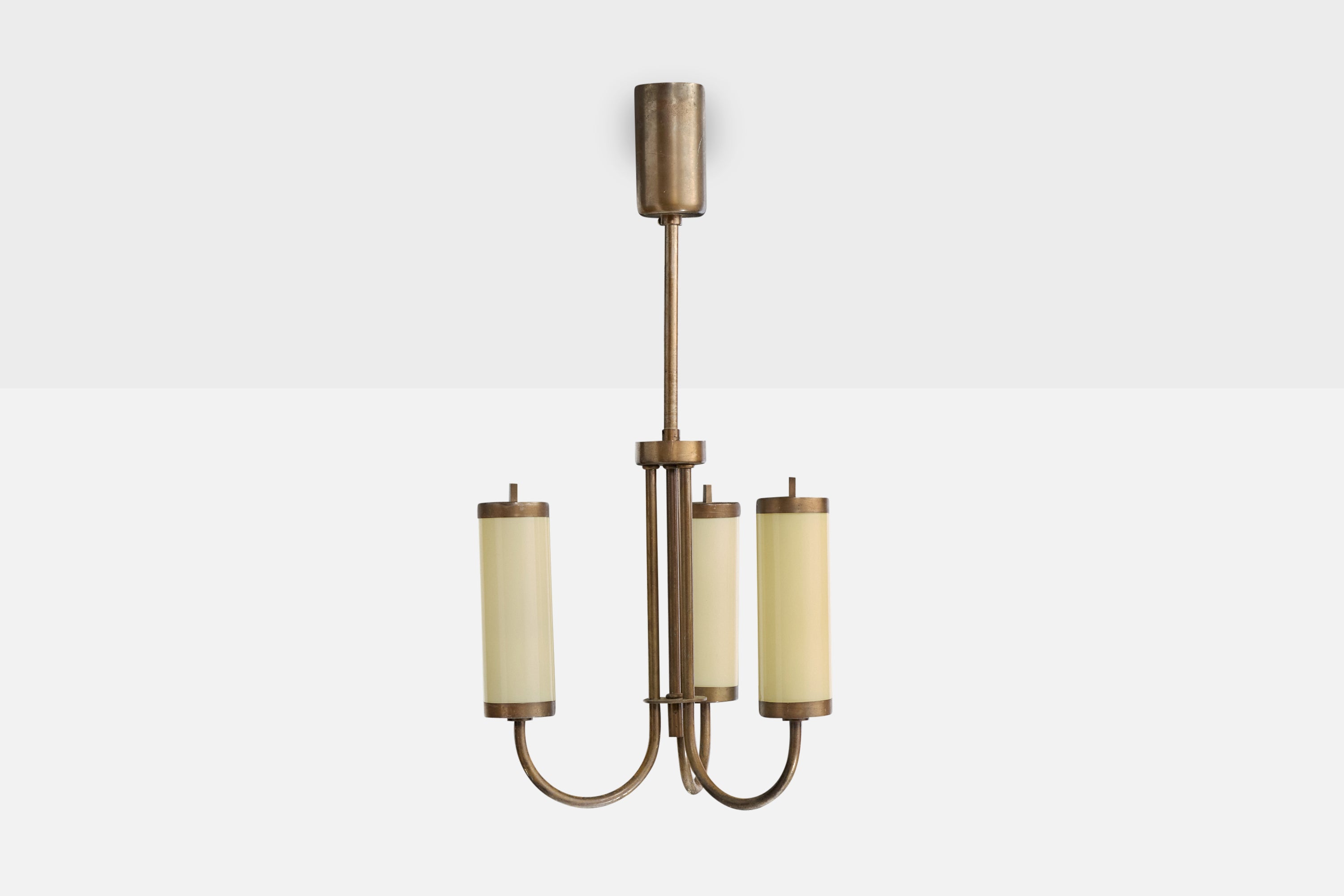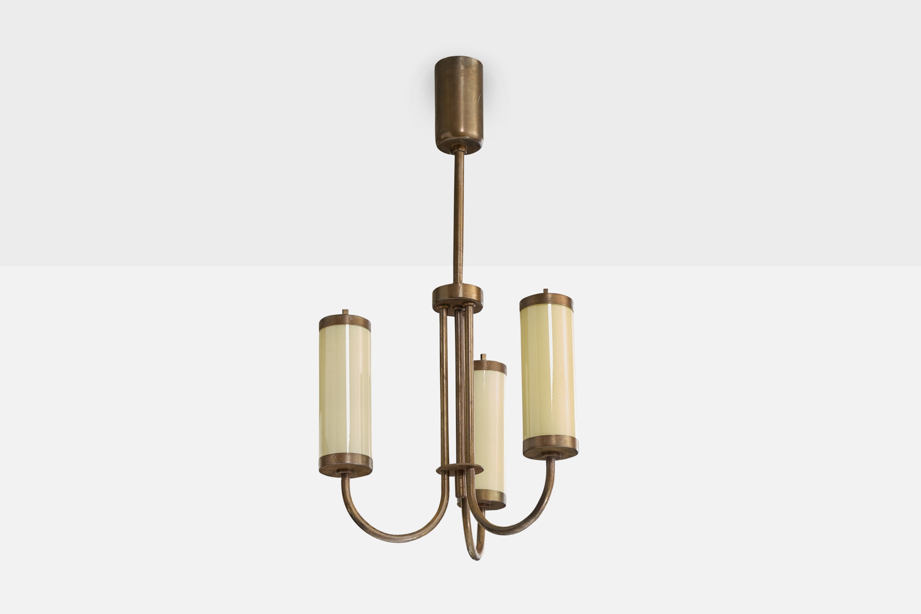 German Designer, Chandelier, Brass, Glass, Germany, 1920s