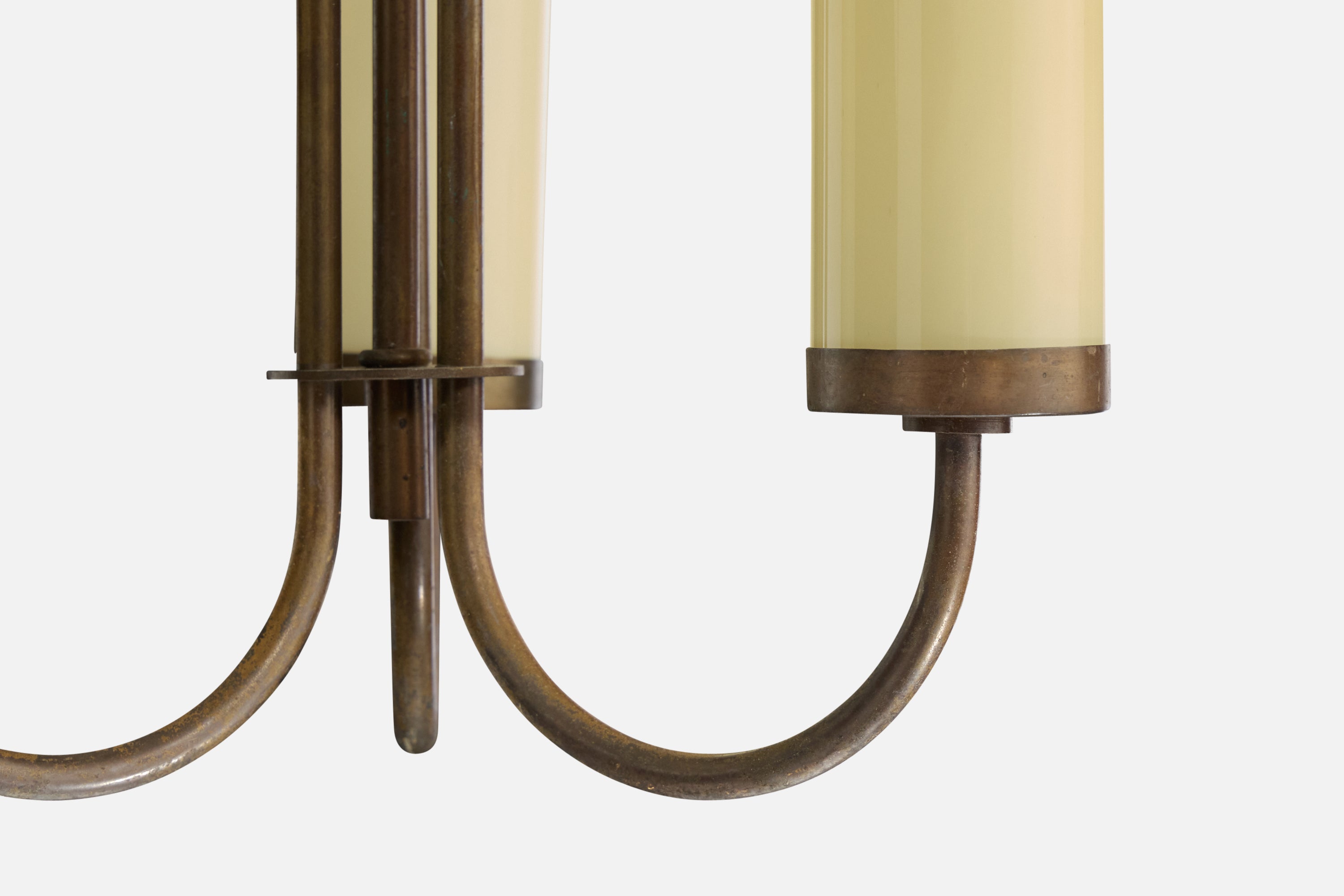 A brass and opaline glass chandelier likely designed and produced in Germany, c. 1920s.