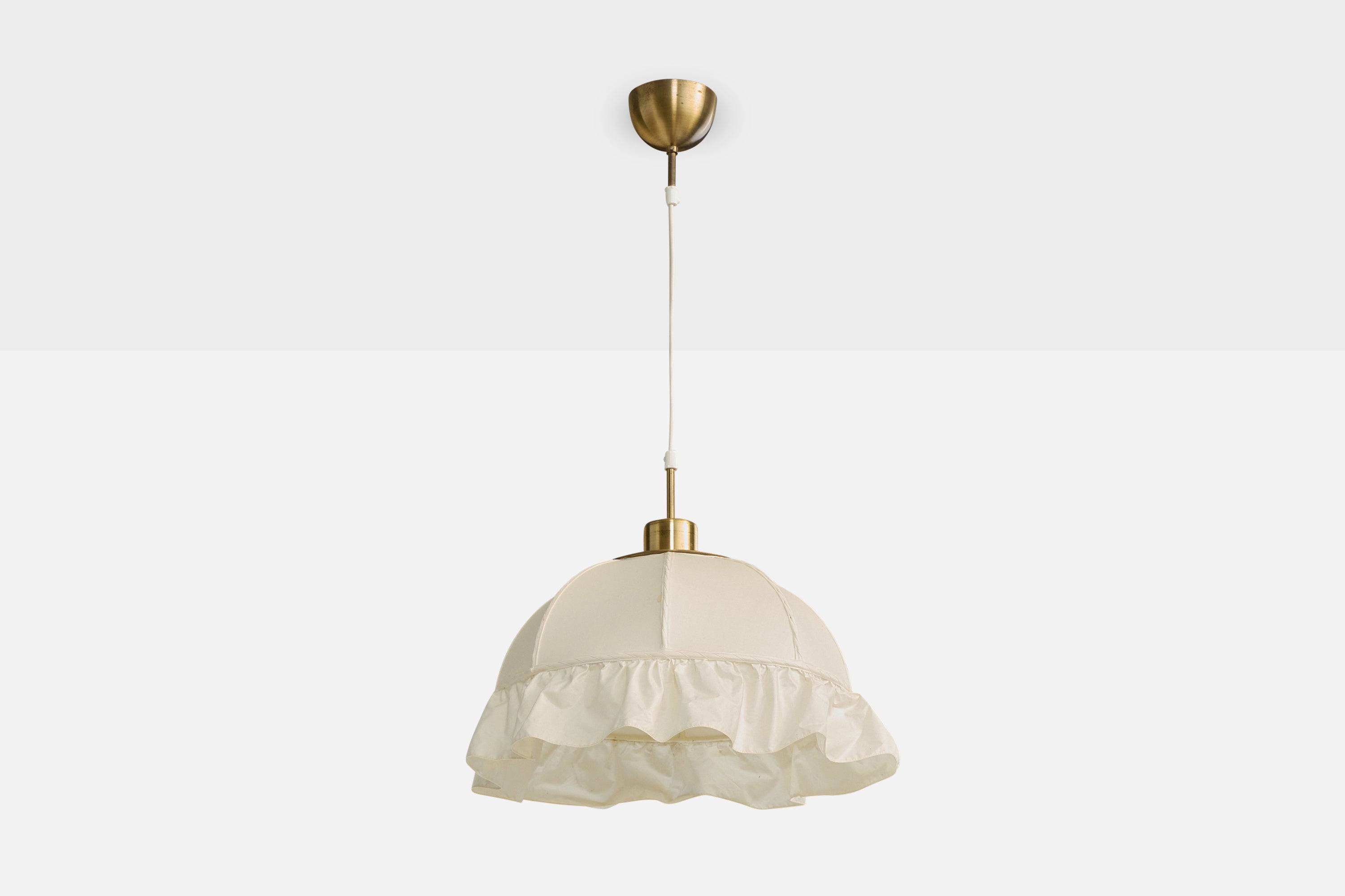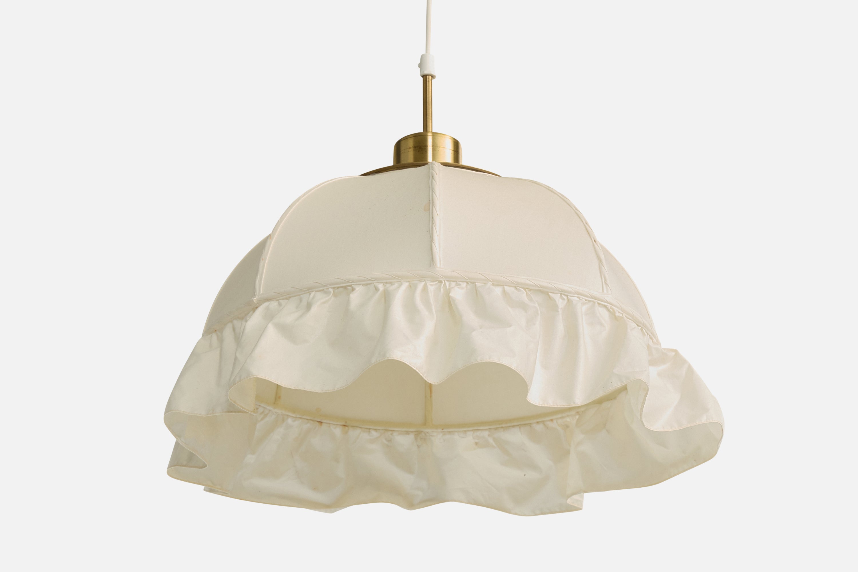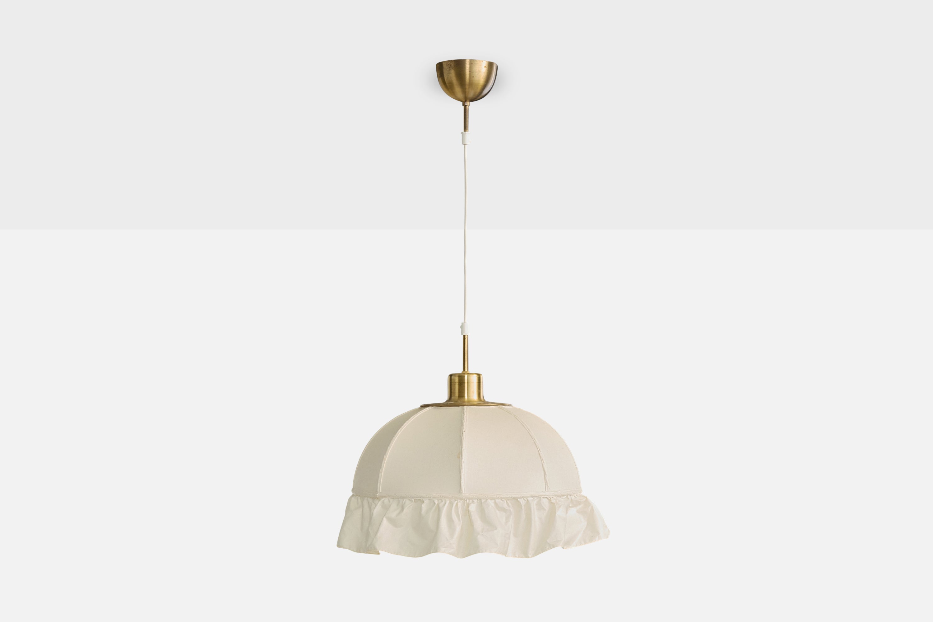 A white fabric and brass pendant light, model 2562, designed by Josef Frank and produced by Svenskt Tenn, c. 1970s.