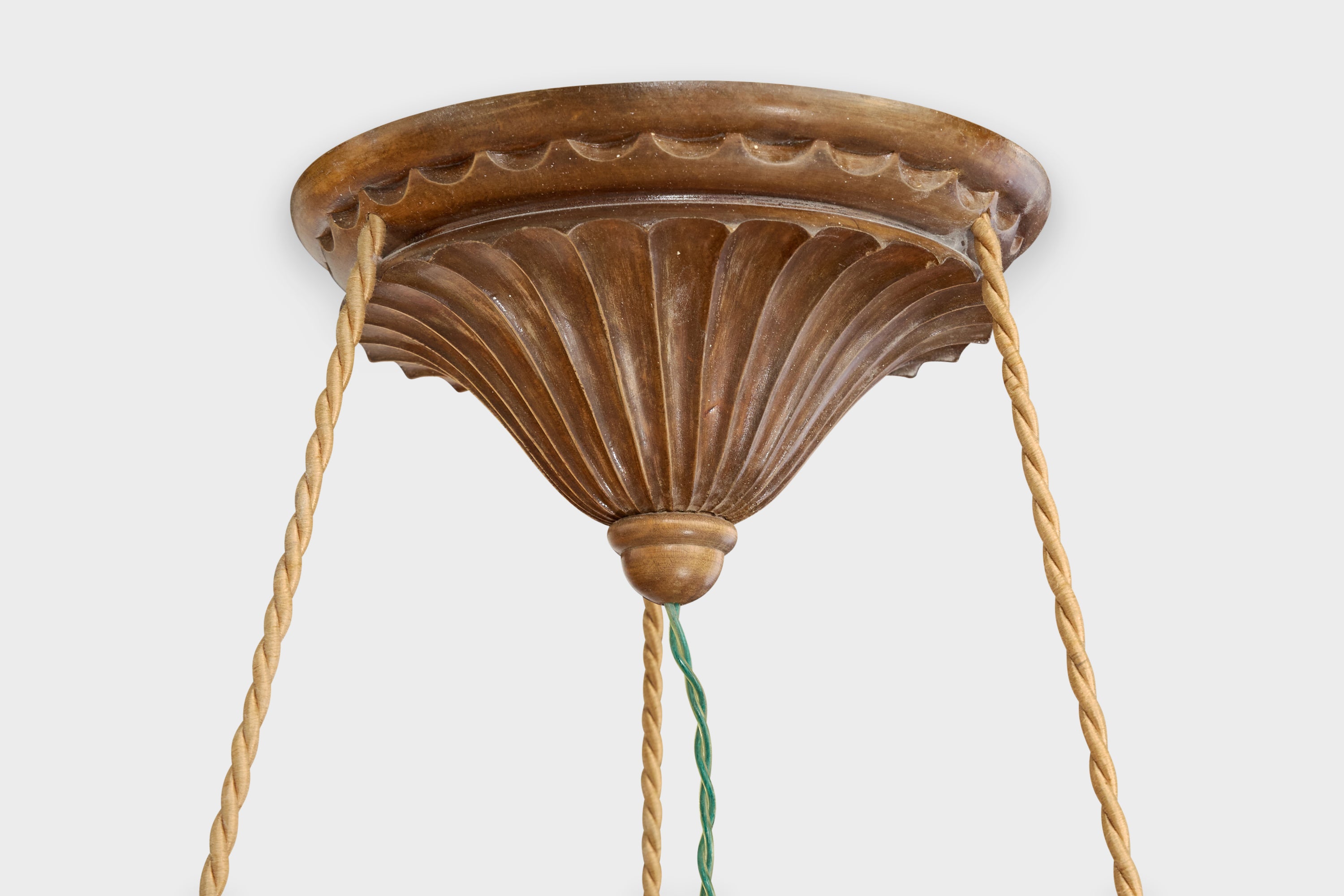 French Designer, Pendant Light, Alabaster, Rope, Wood, France, 1930s