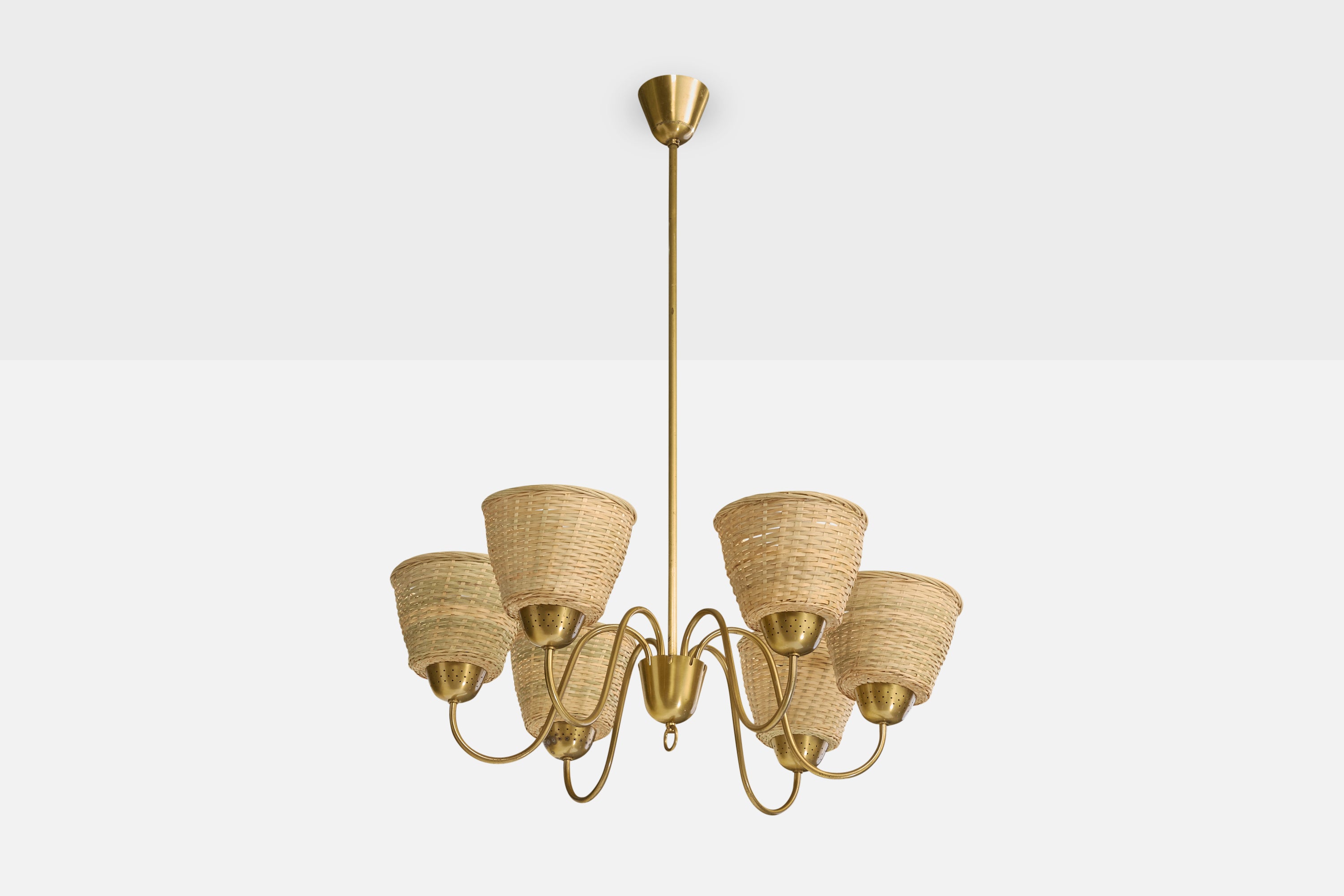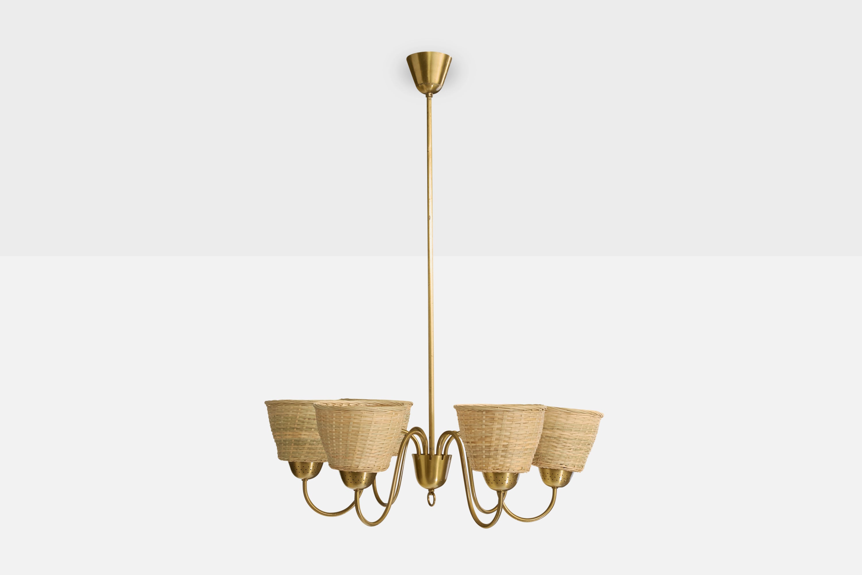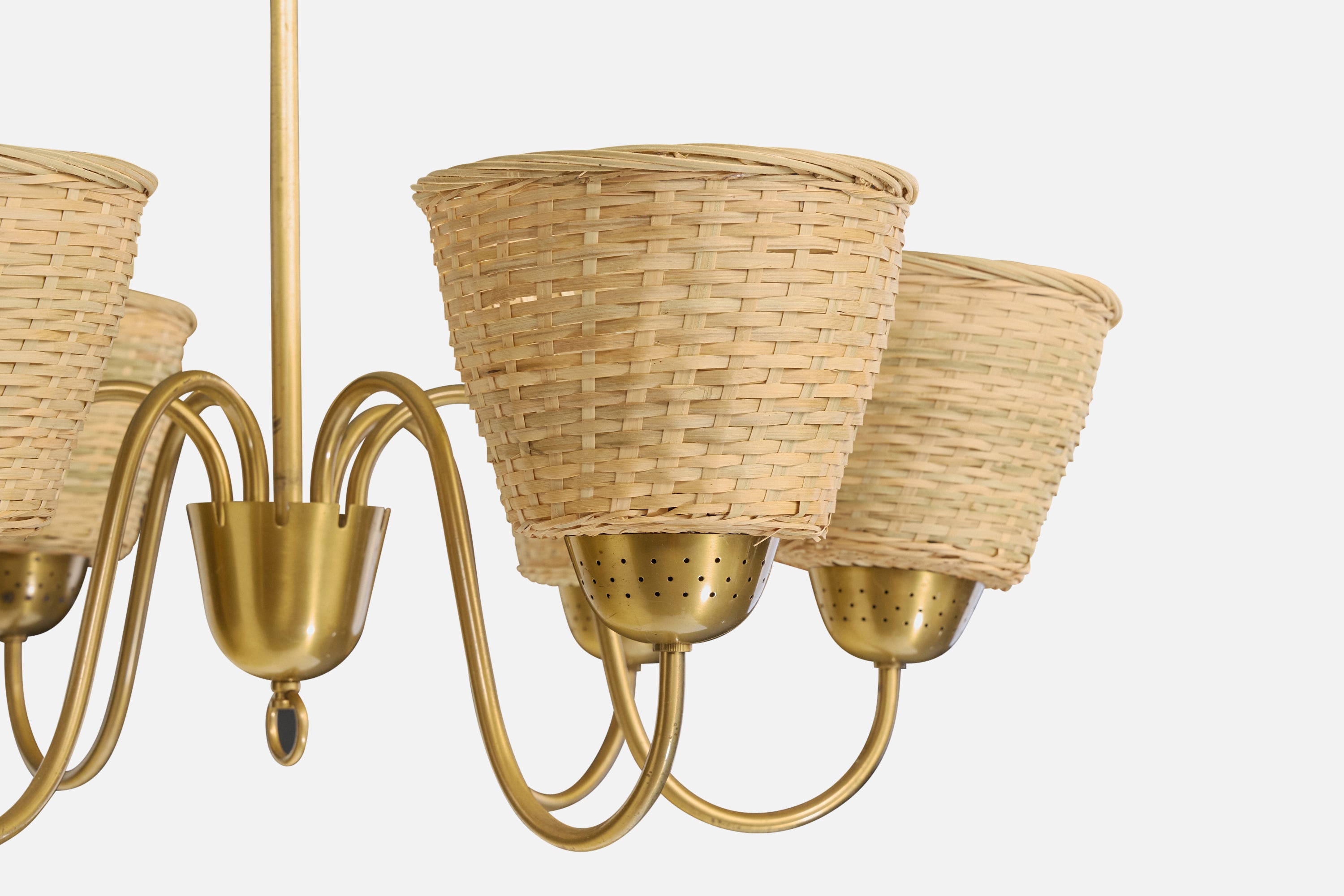 A brass and rattan chandelier produced by Bergboms, Sweden, c. 1940s.