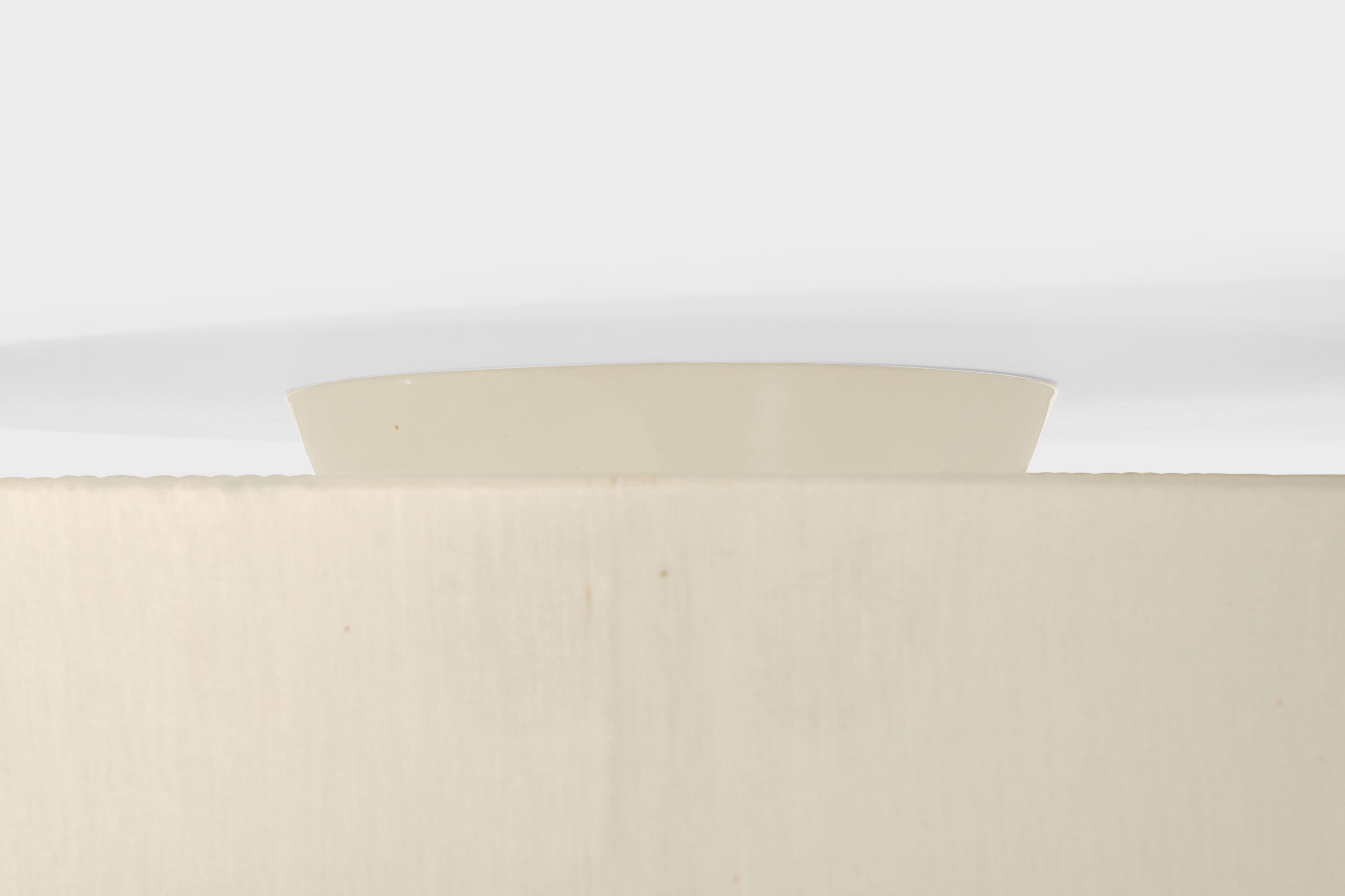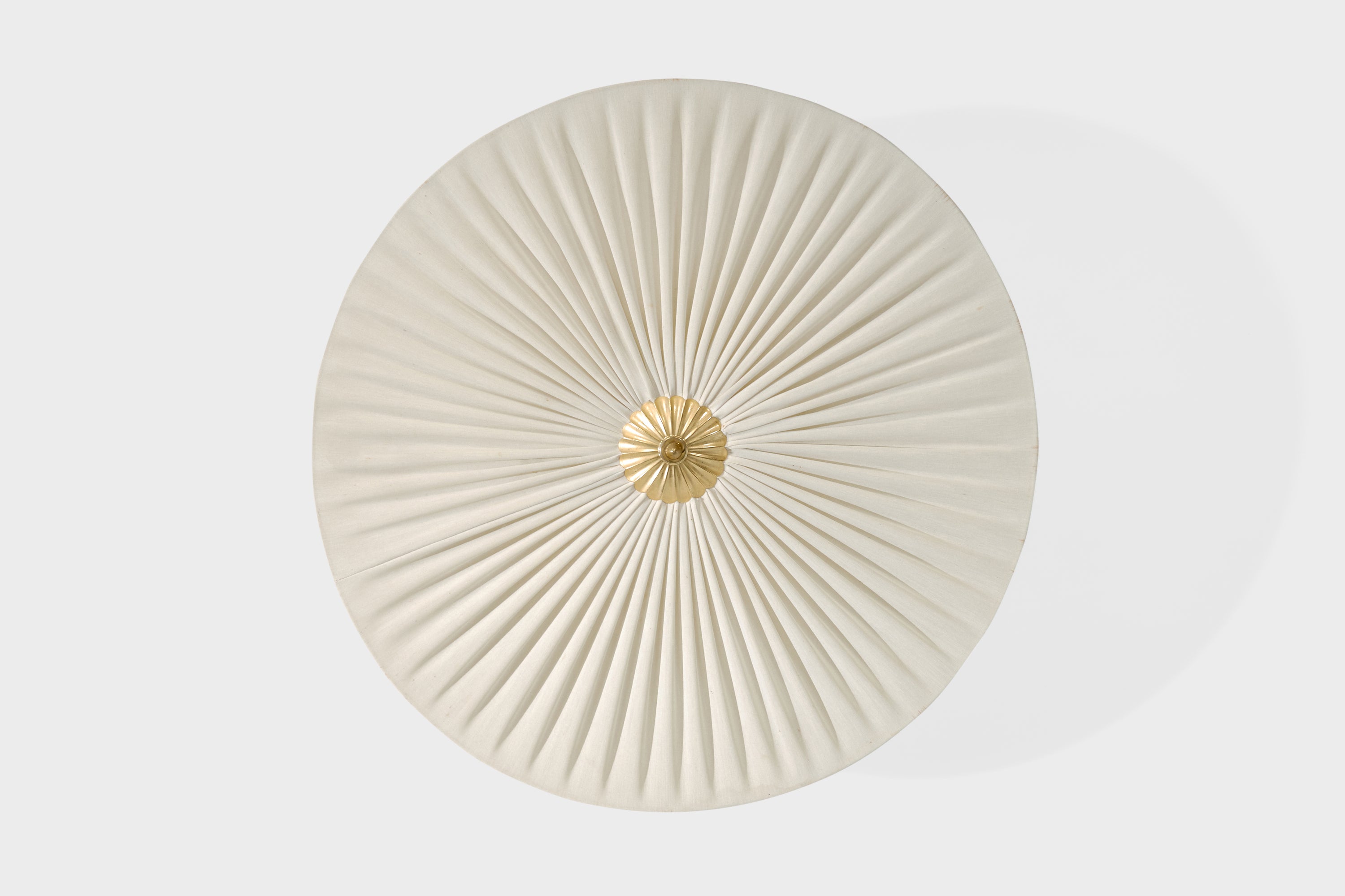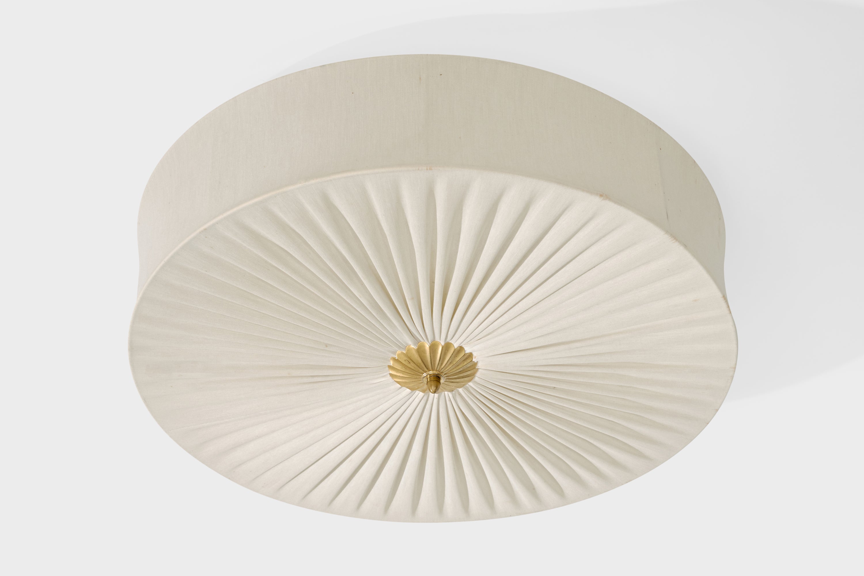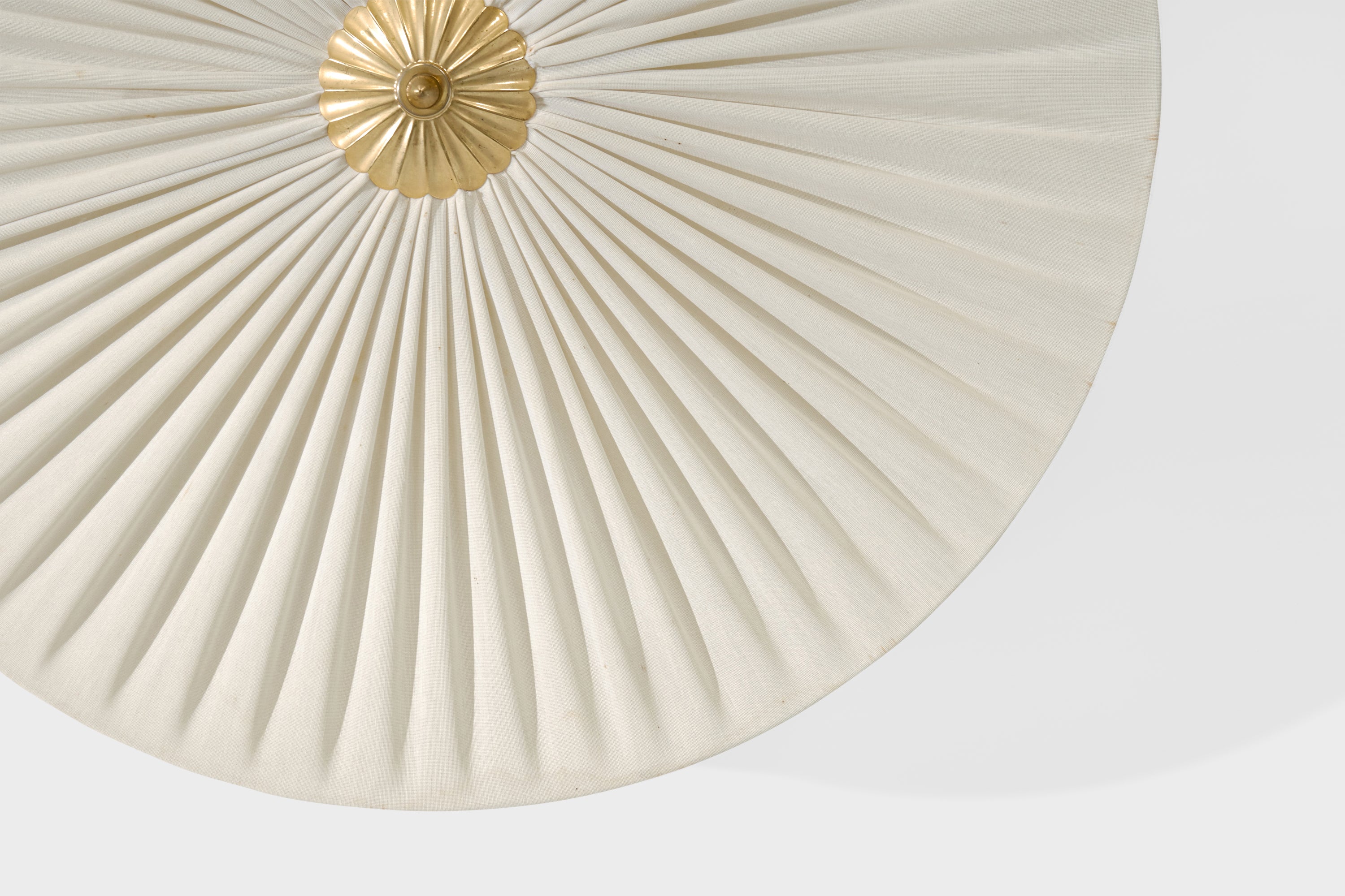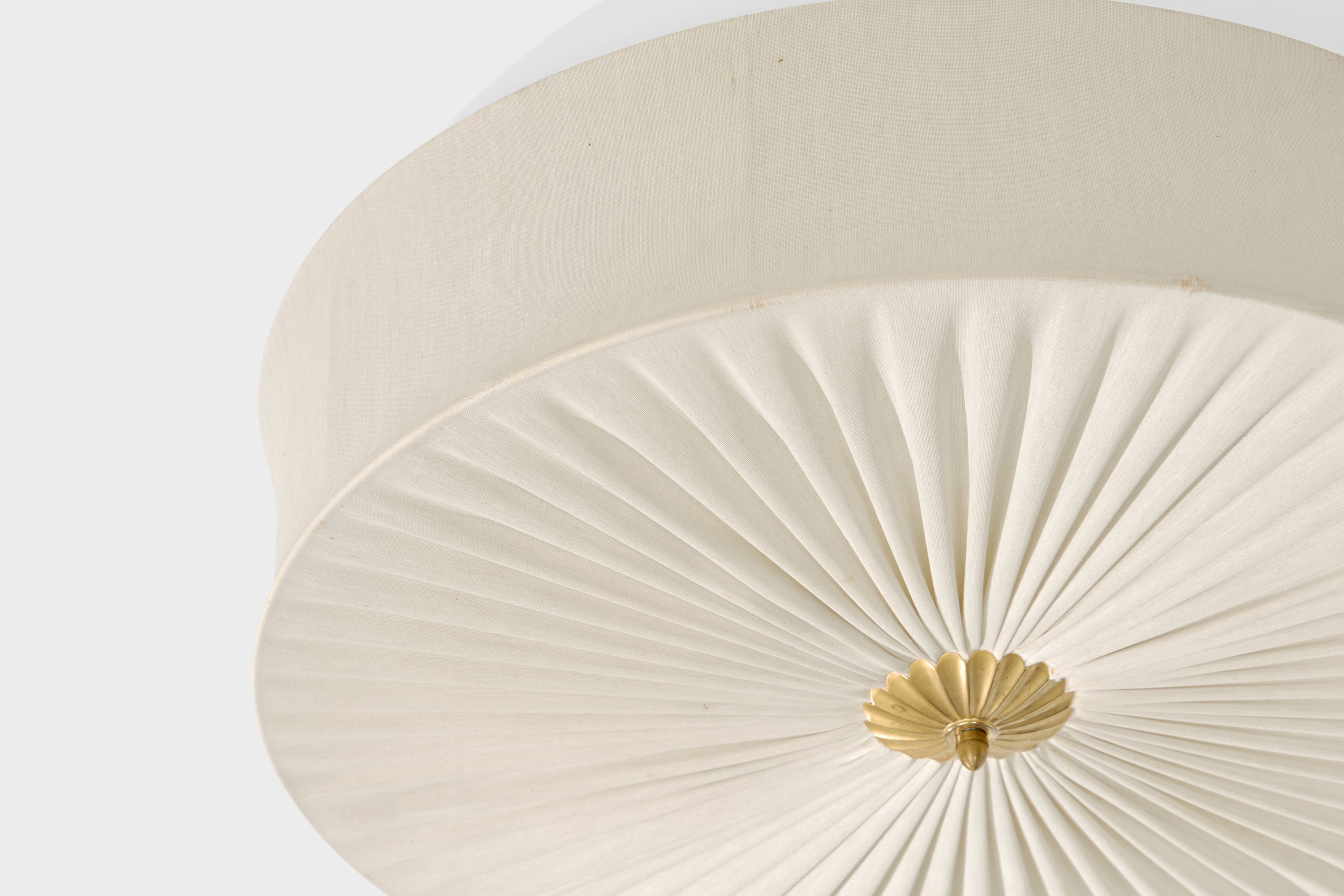 An off-white fabric and brass flush mount designed and produced in Sweden, c. 1950s.
