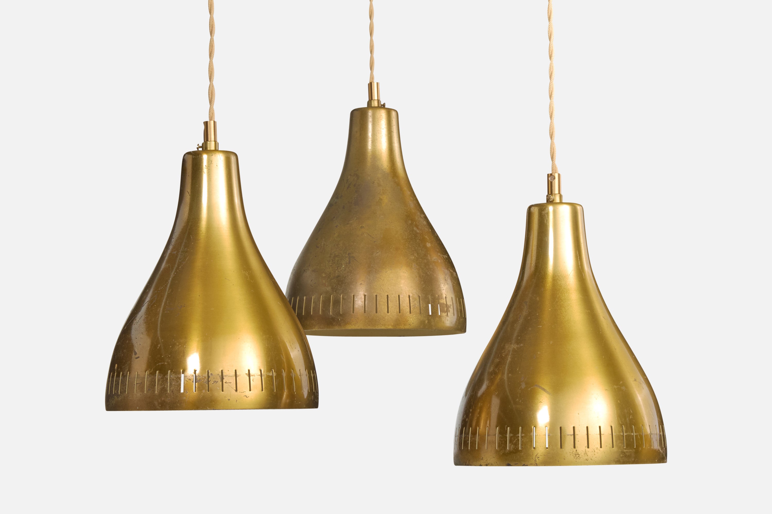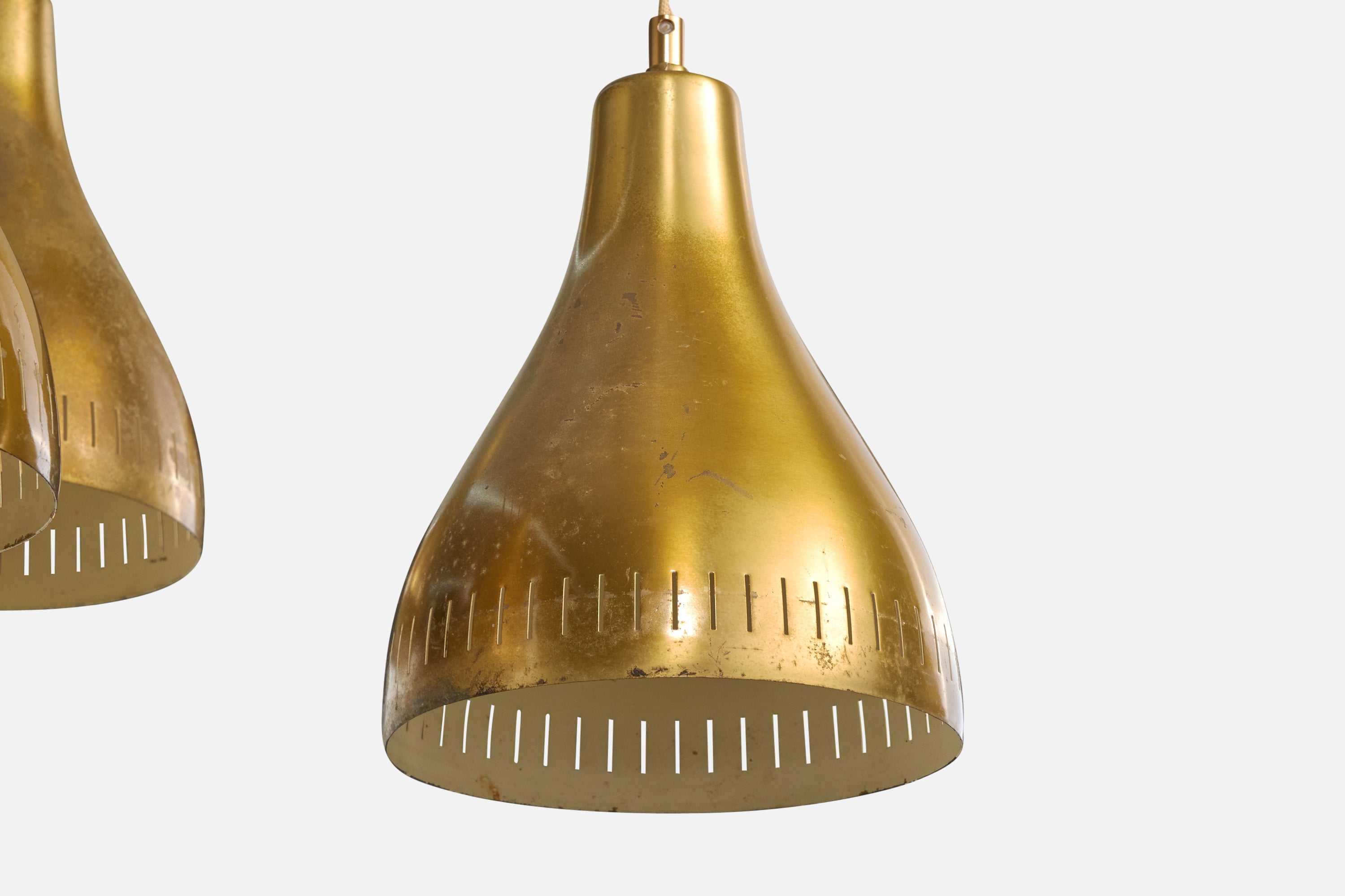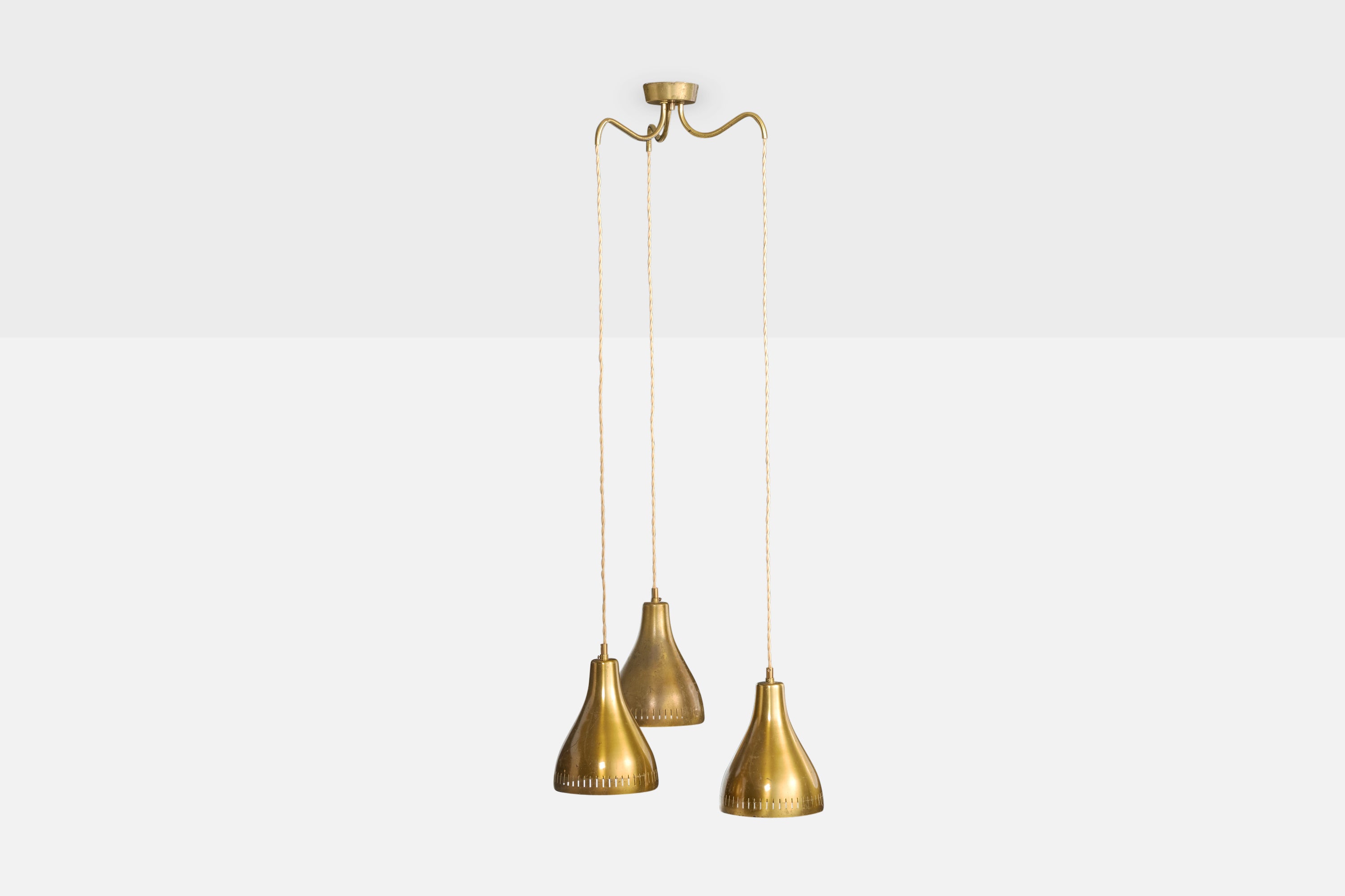 Swedish Designer, Chandelier, Brass, Sweden, 1950s