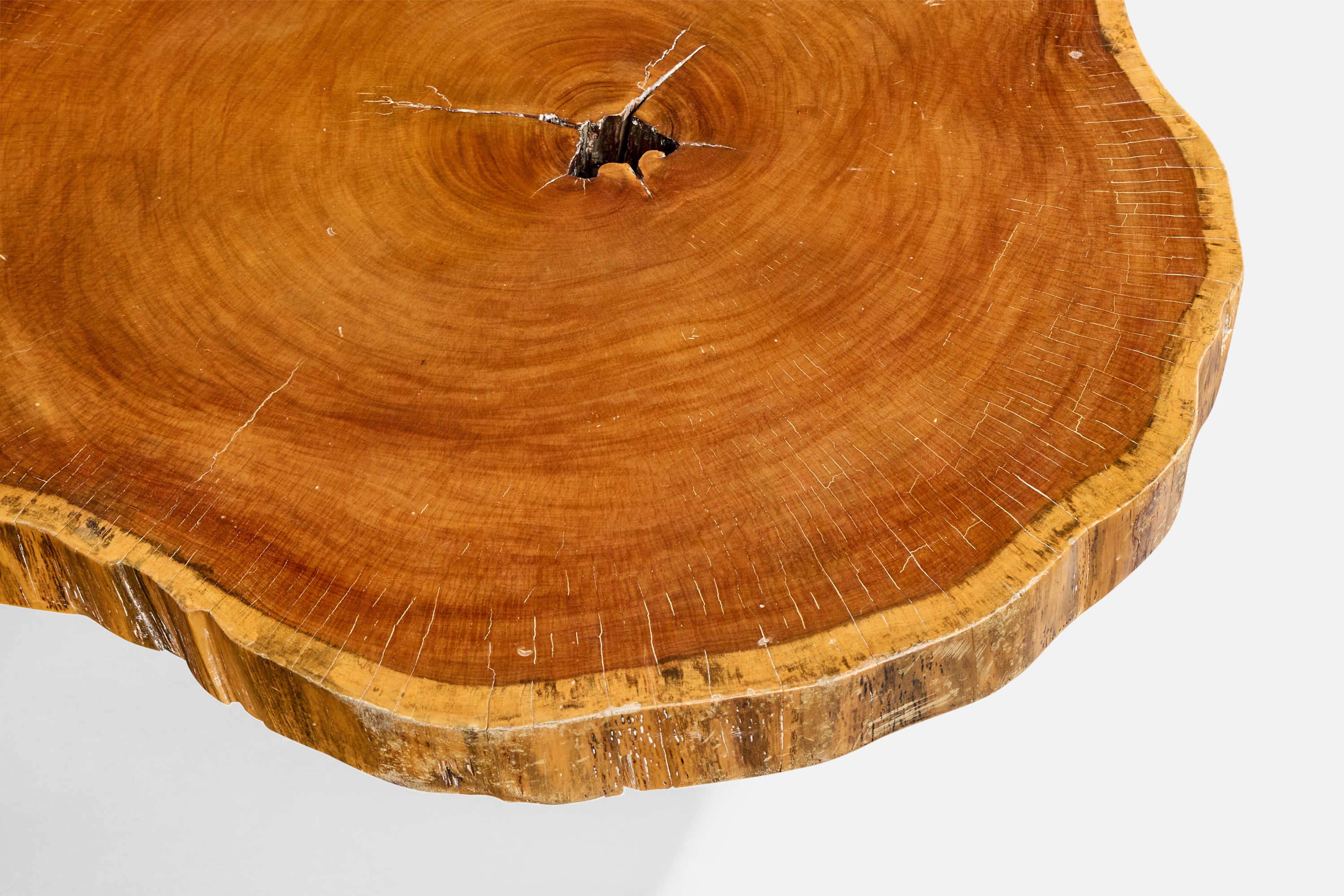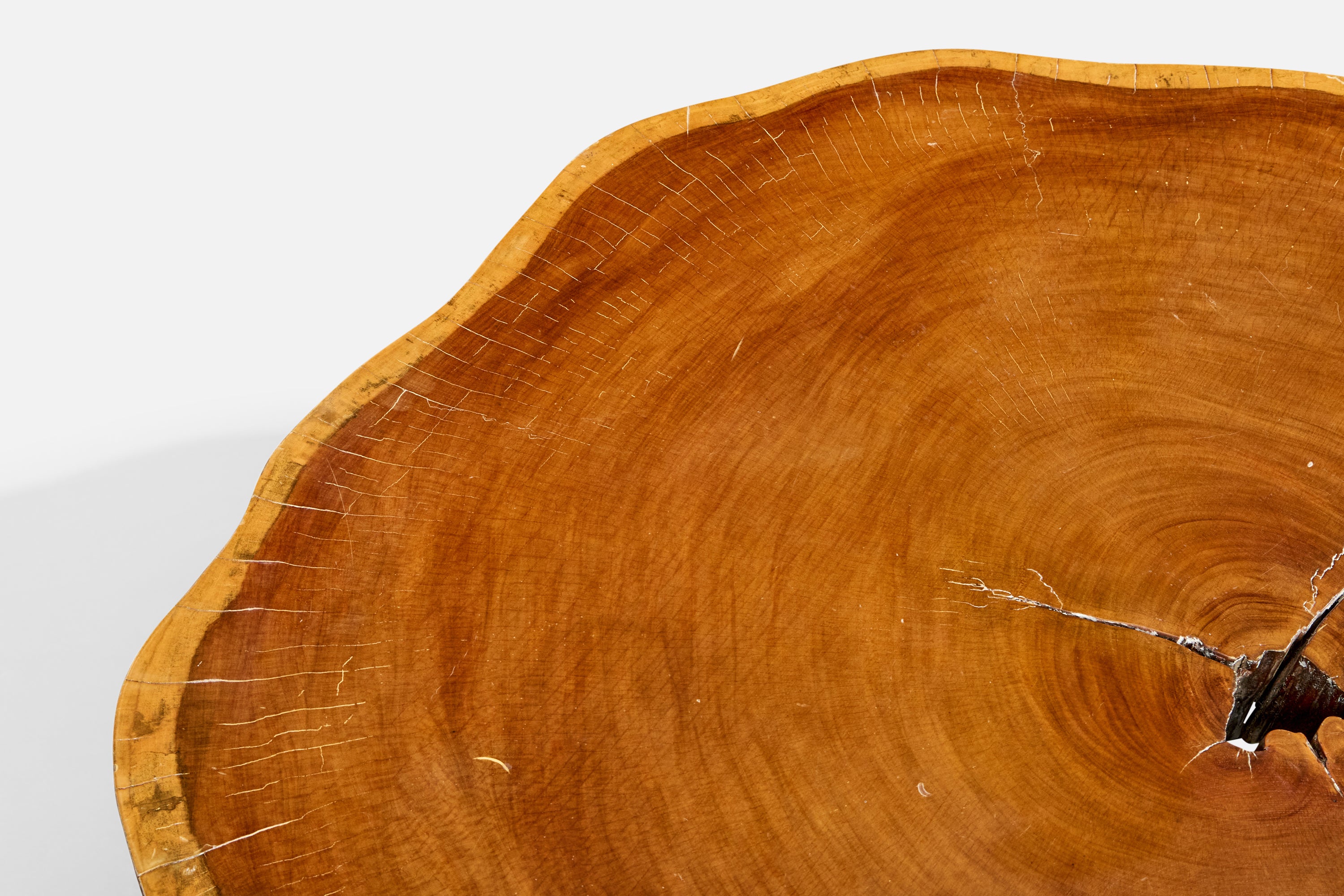 A solid wood and iron coffee table designed and produced in Brazil, c. 1960s.