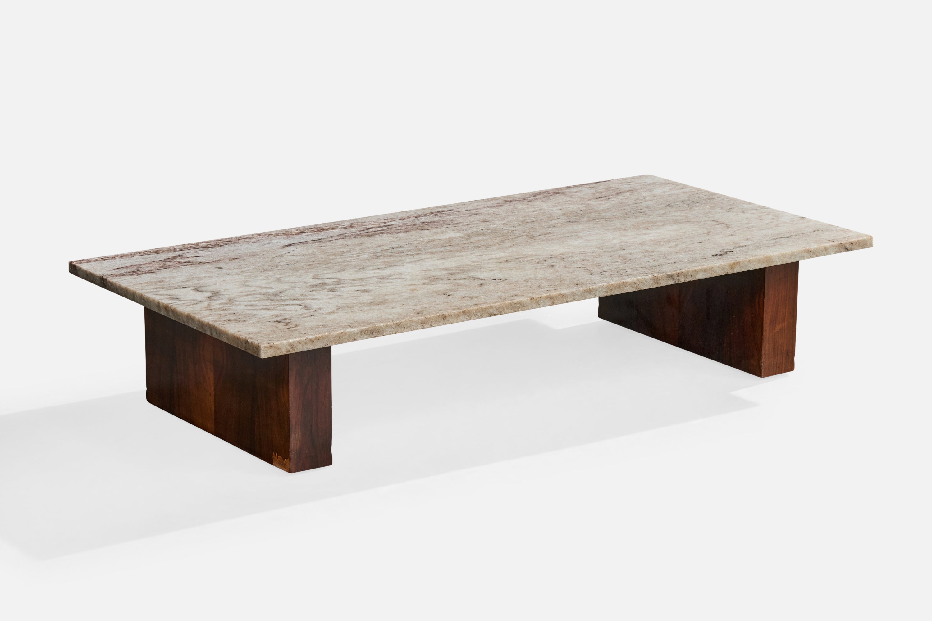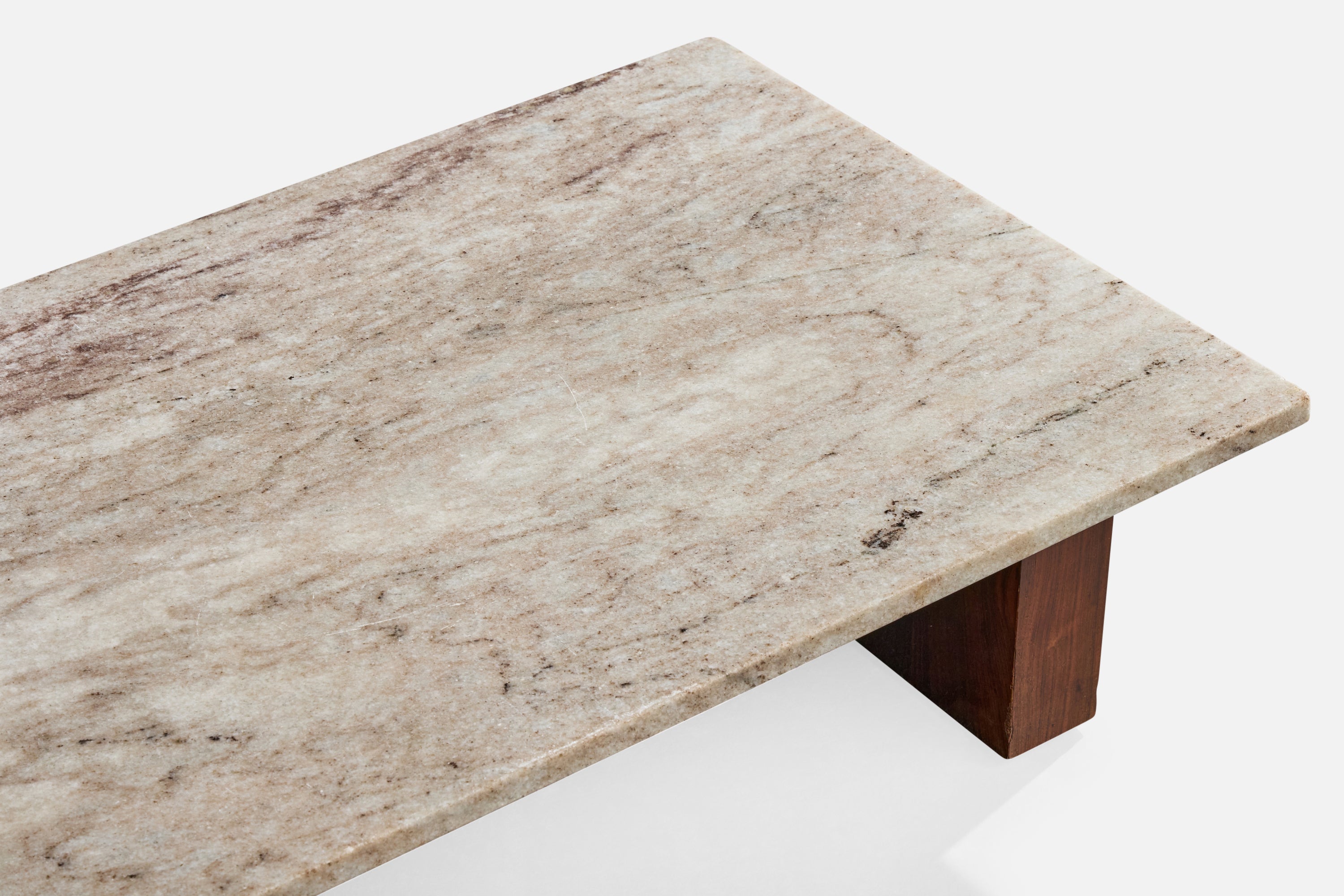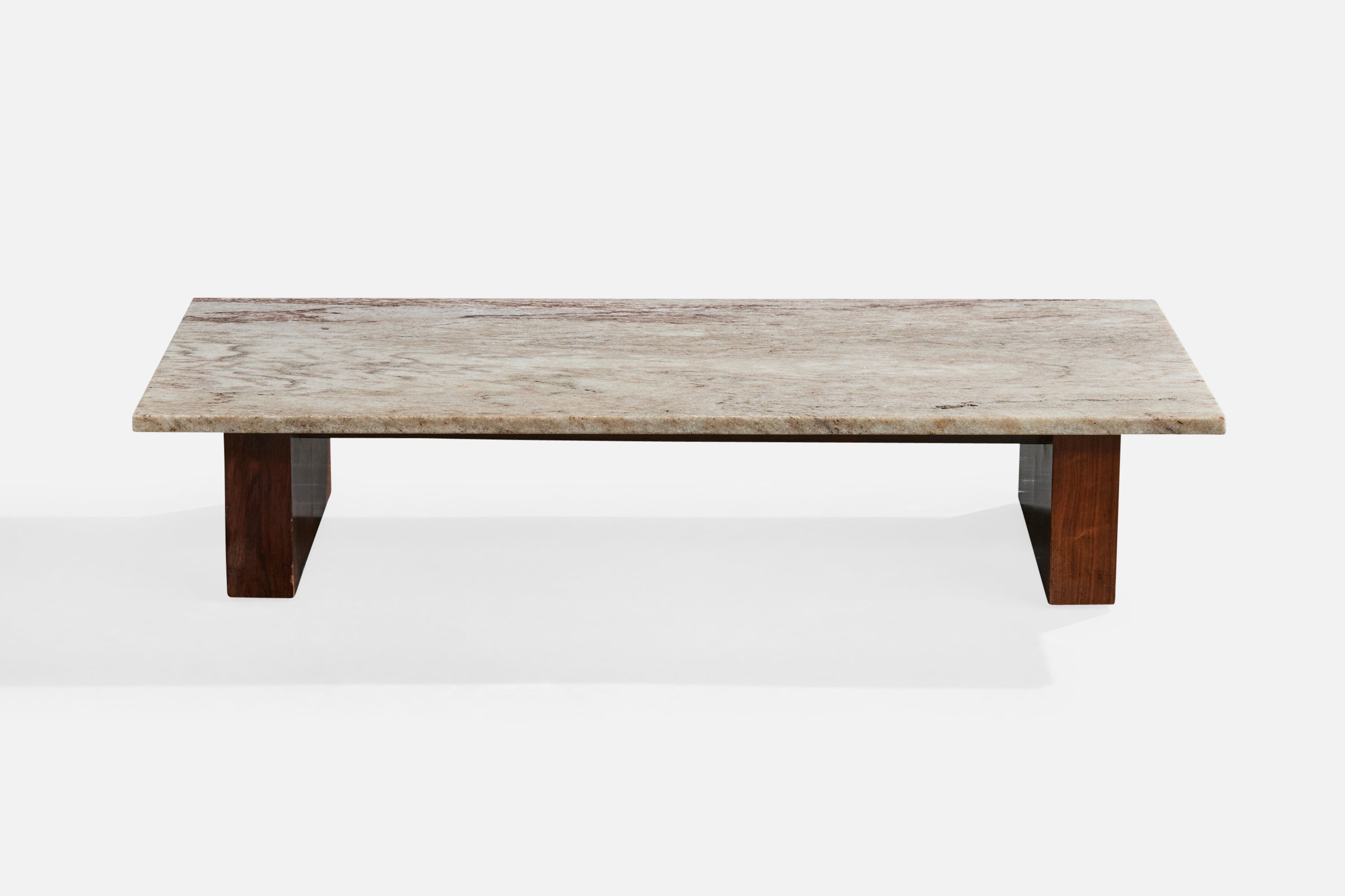 A wood and marble coffee table produced by Celina Decorações, Rio de Janeiro, Brazil, 1960s.