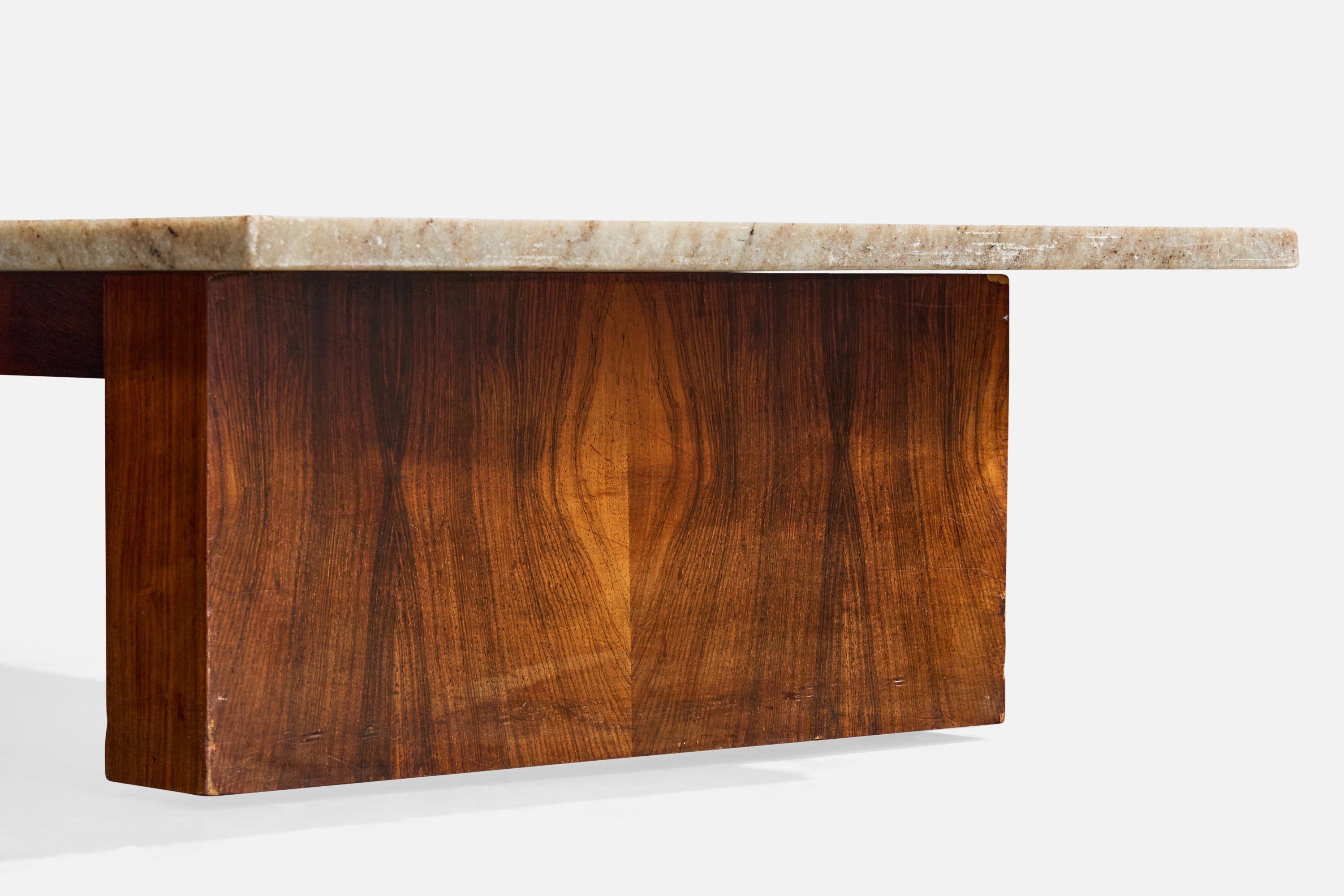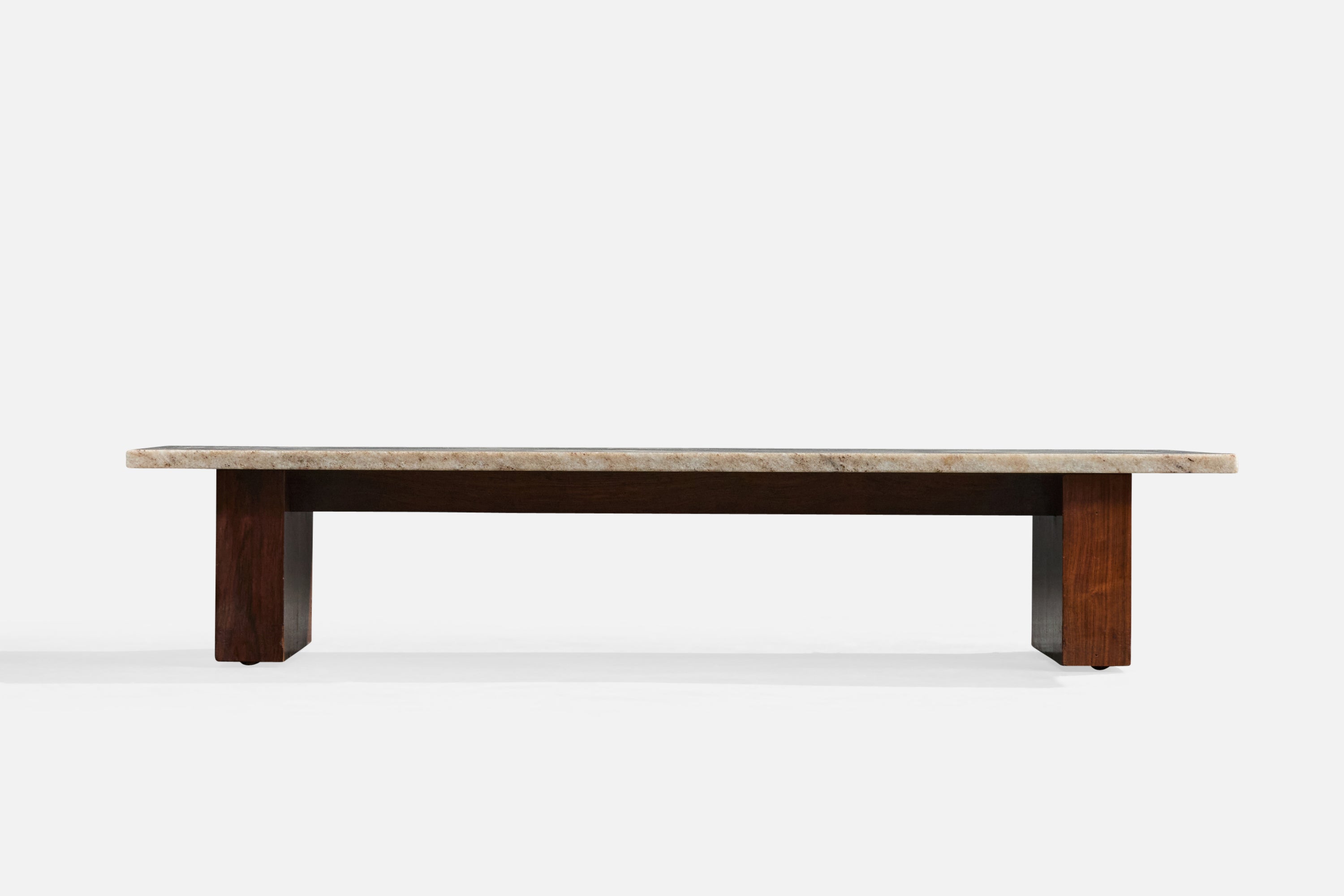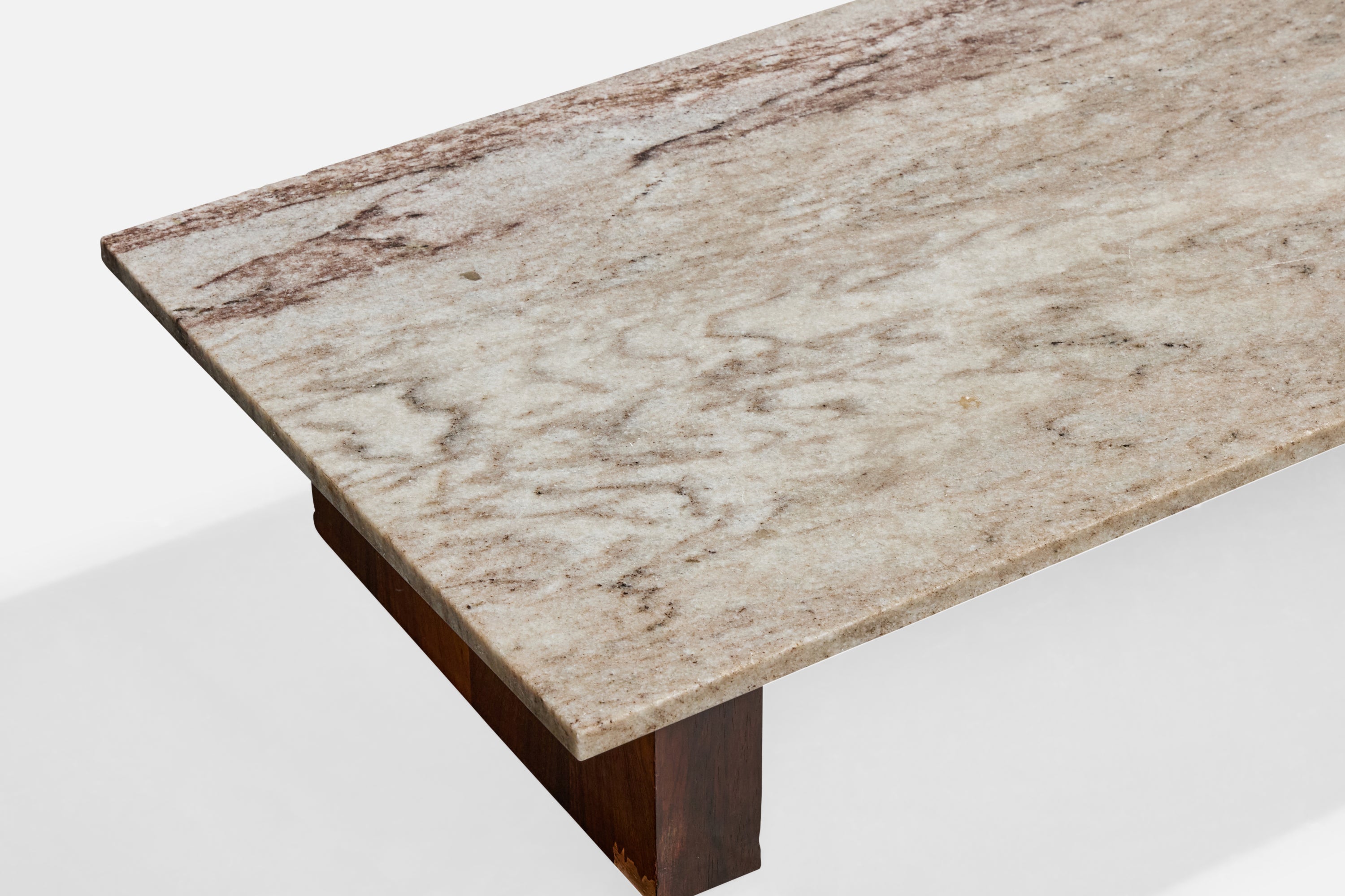 A wood and marble coffee table produced by Celina Decorações, Rio de Janeiro, Brazil, 1960s.