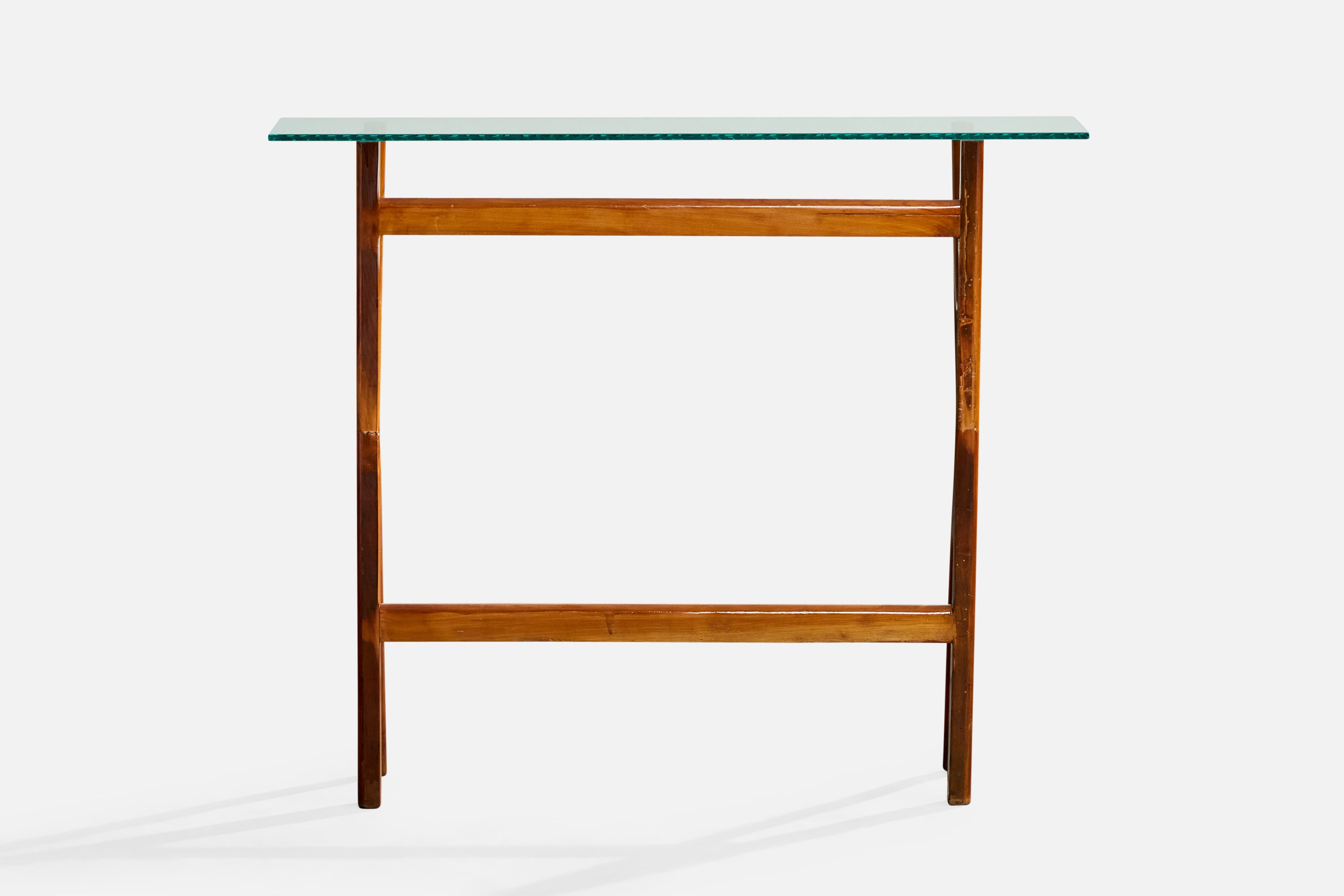 Italian Designer, Console Table, Wood, Glass, Italy, 1950s