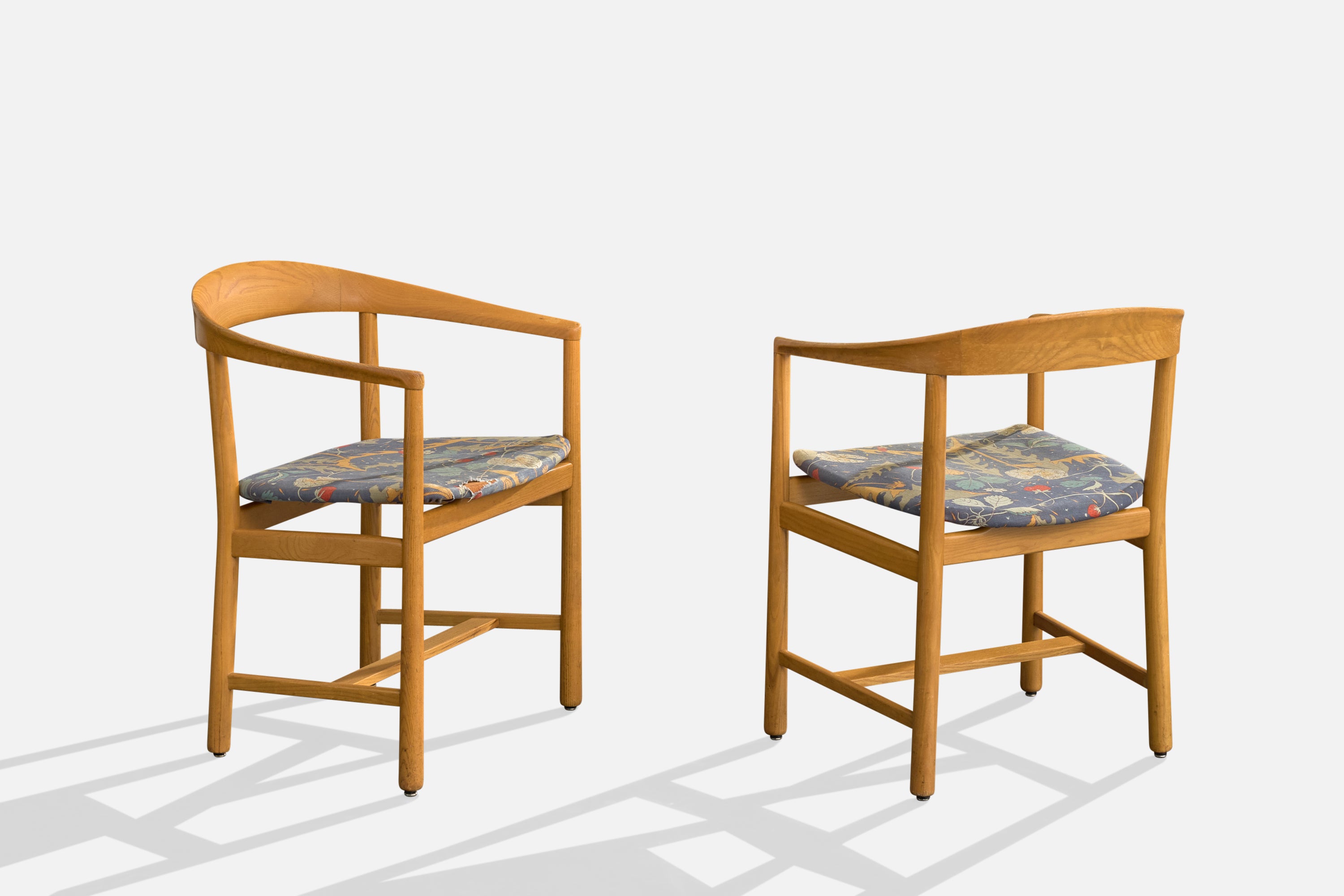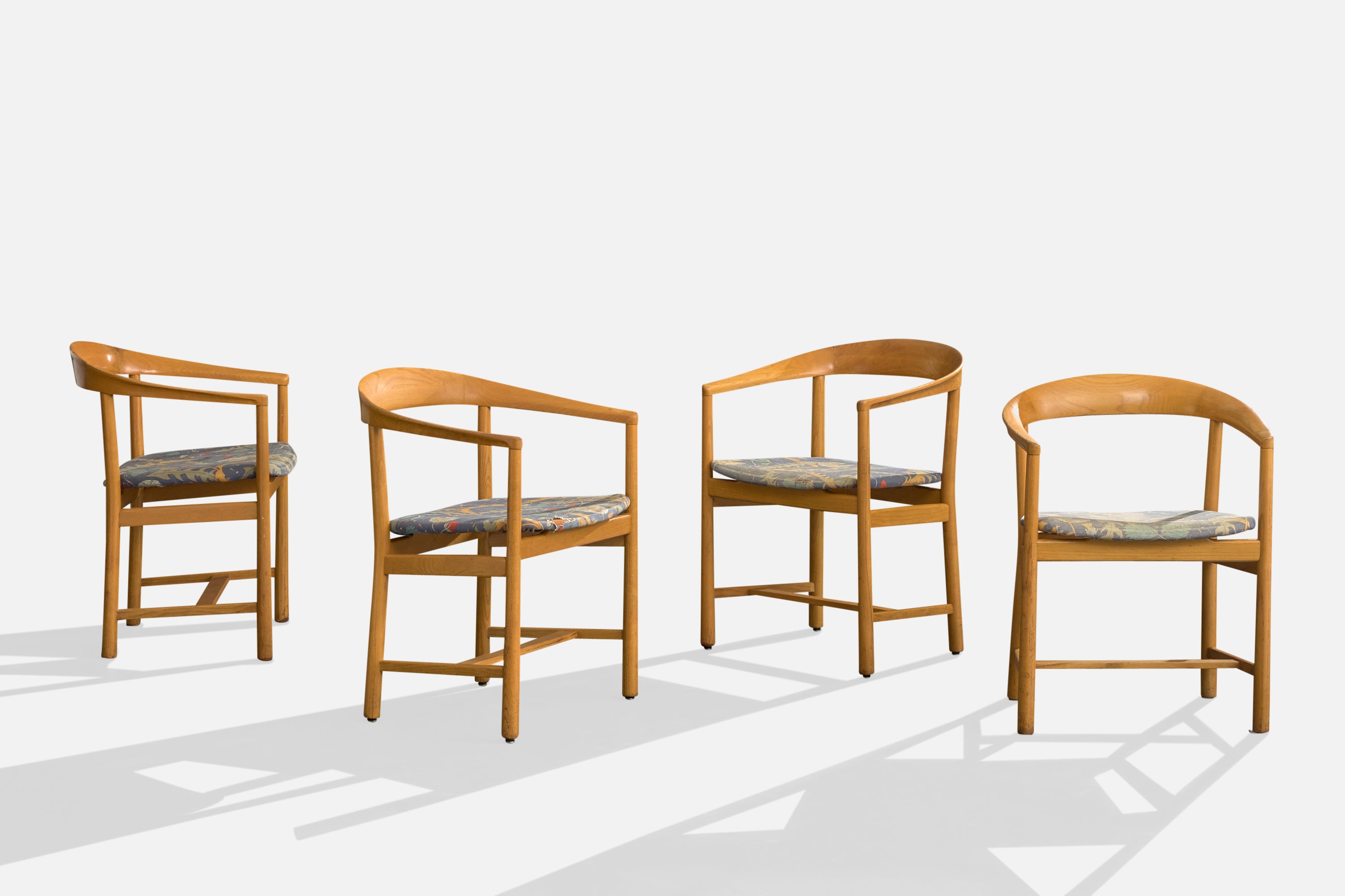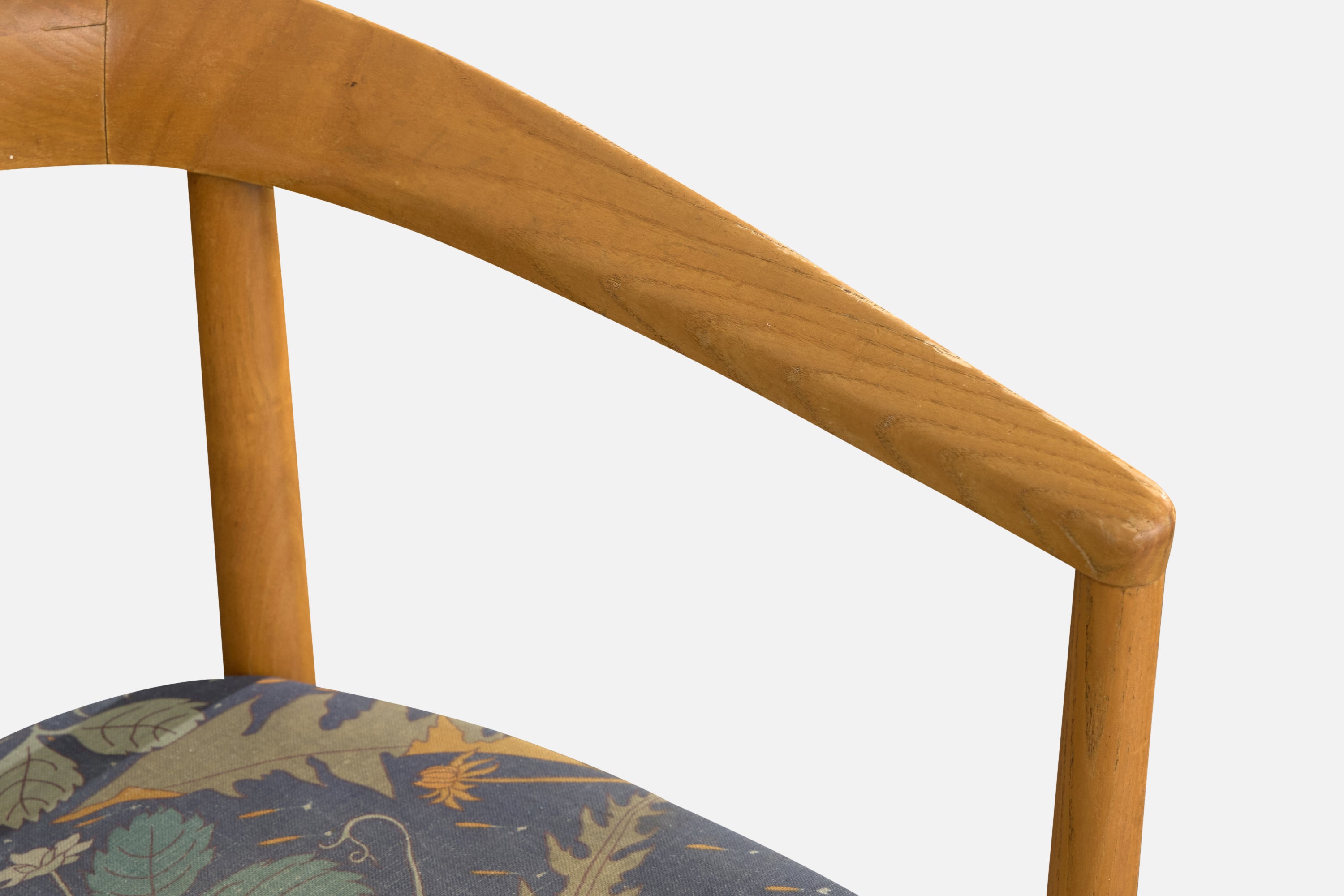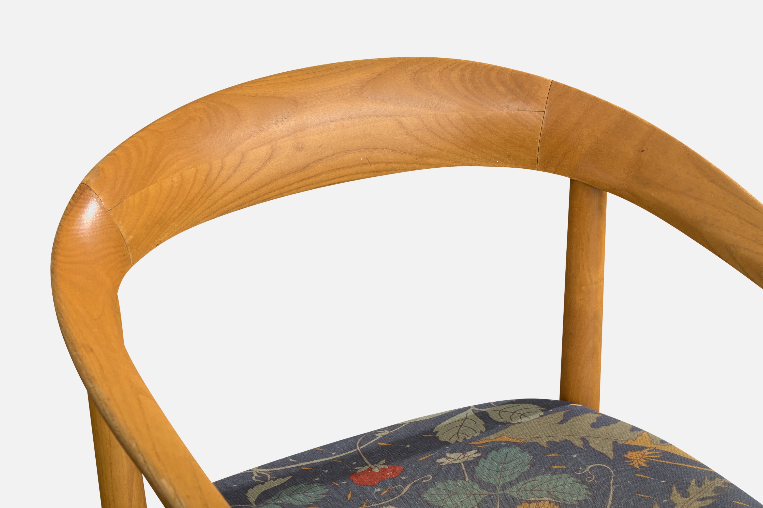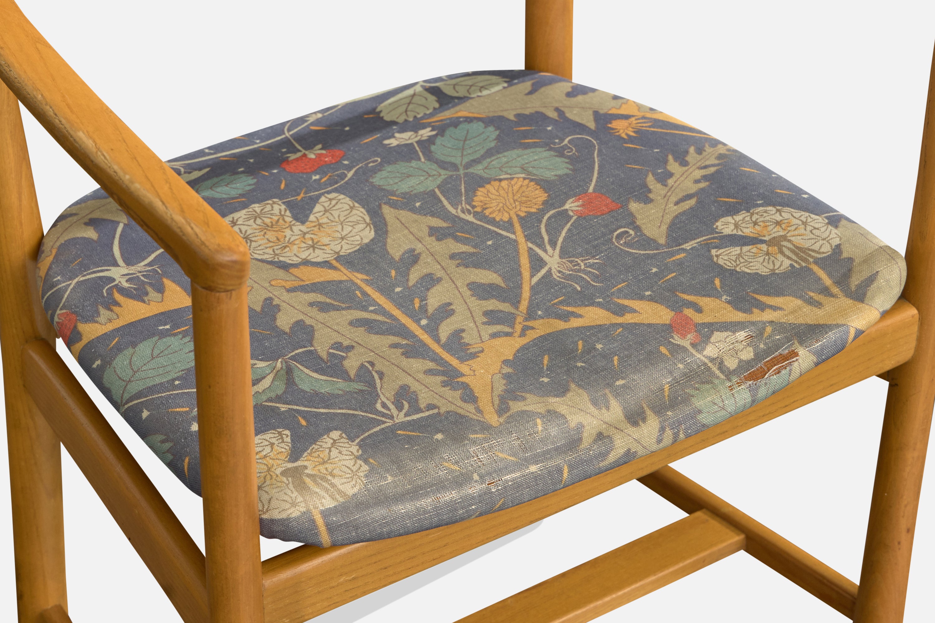 A set of four wood and floral-printed fabric armchairs or dining room chairs, model Tokyo, designed by Carl-Axel Acking and produced by Nordiska Kompaniet, Sweden, c. 1960s.