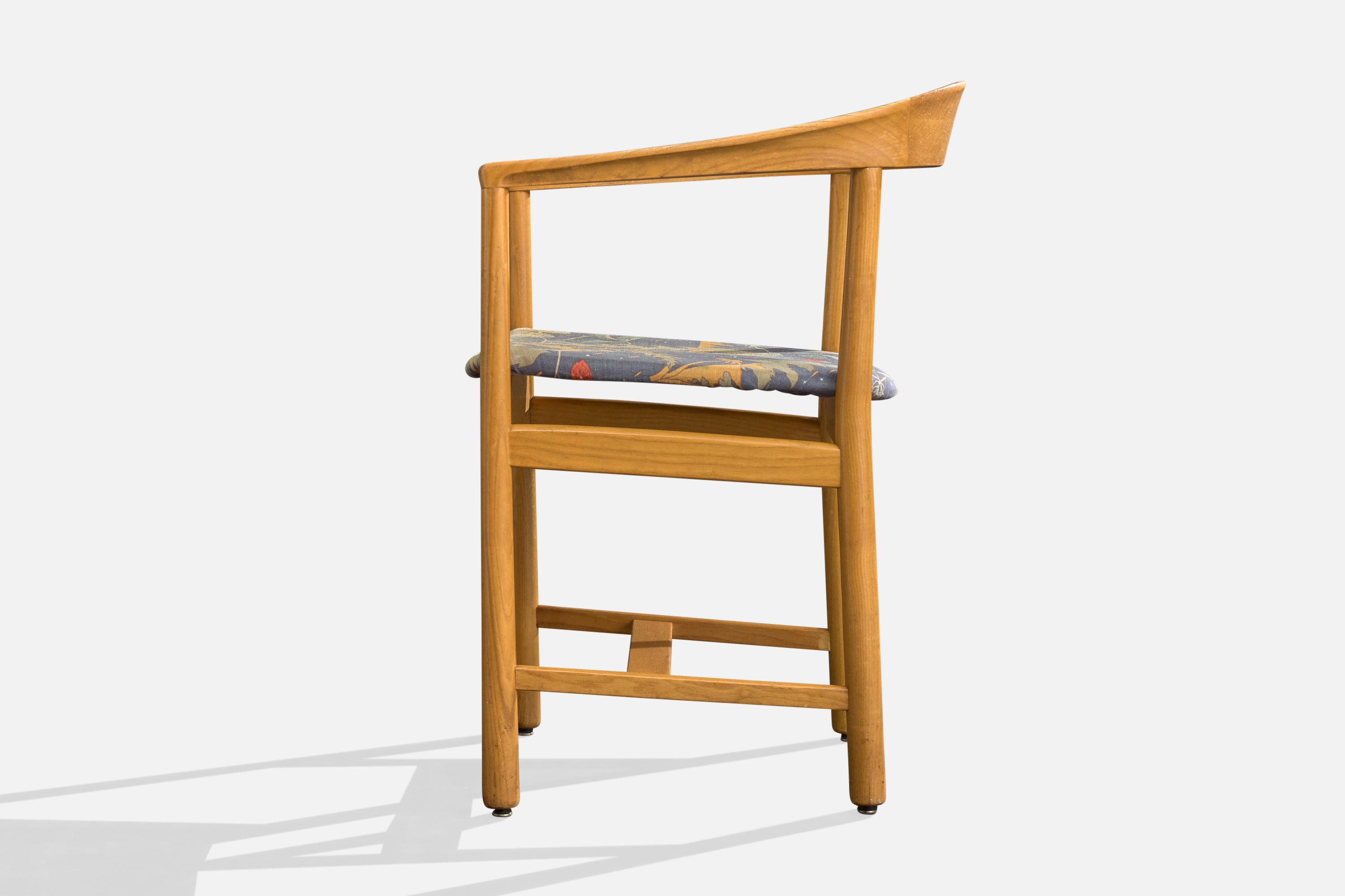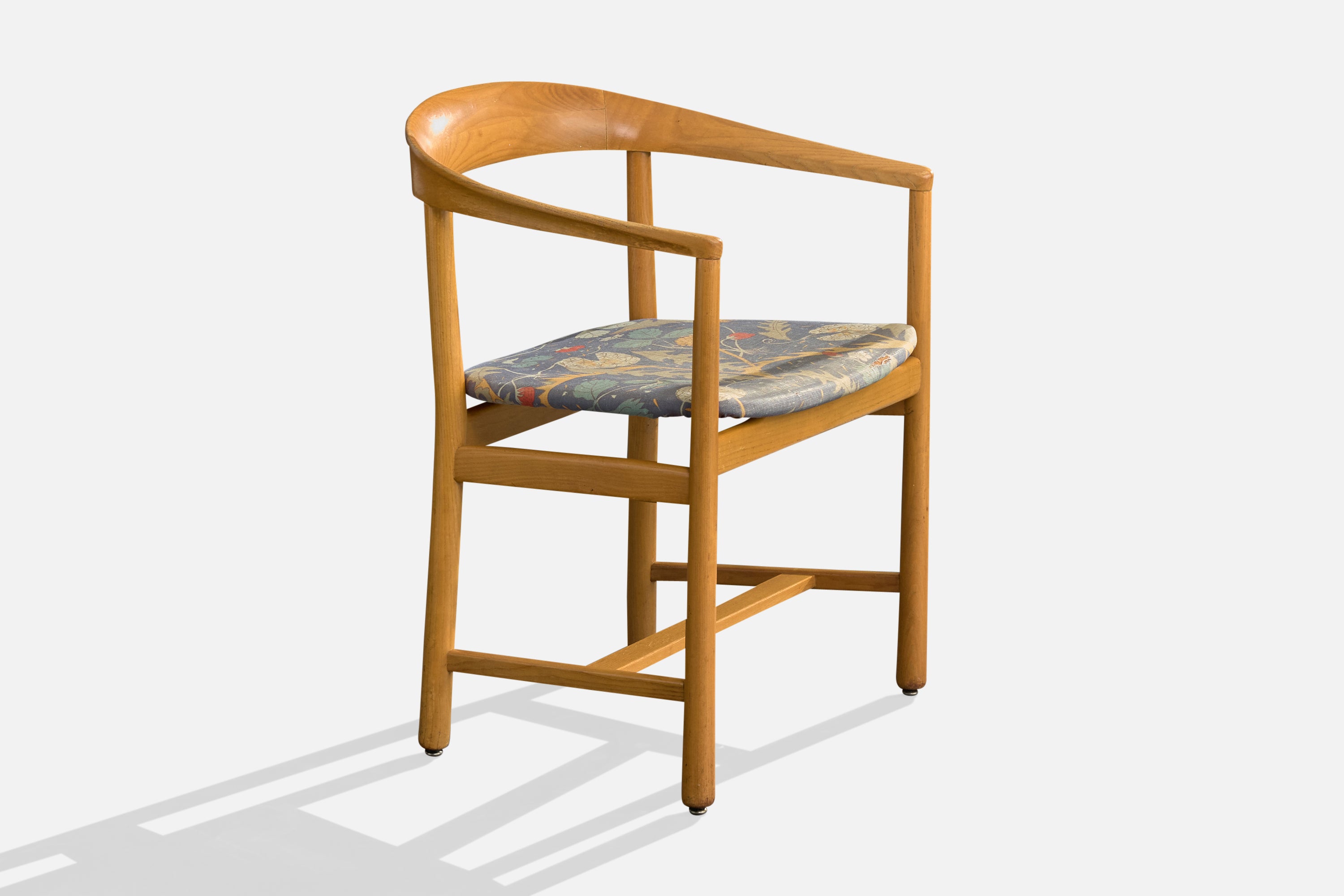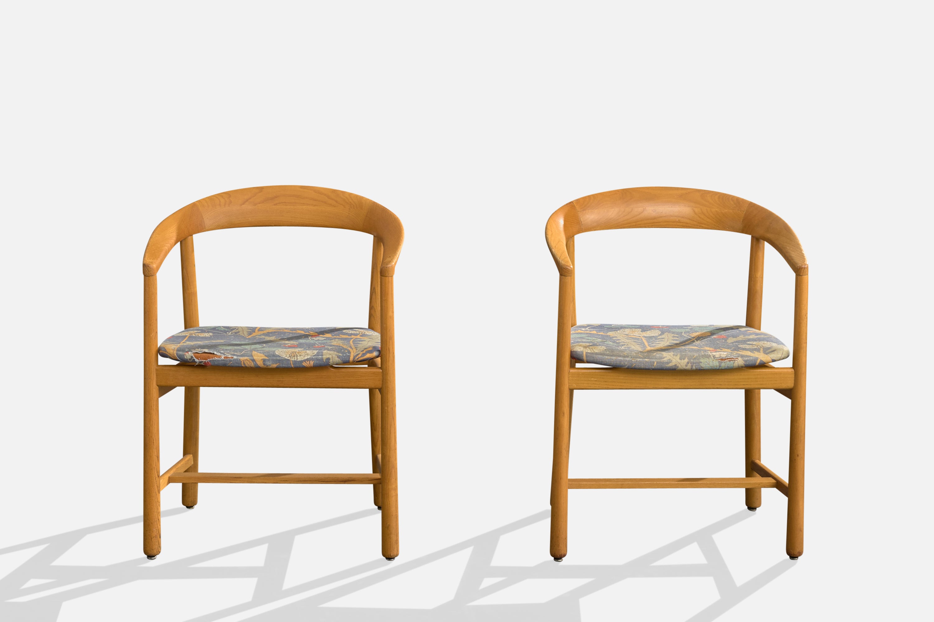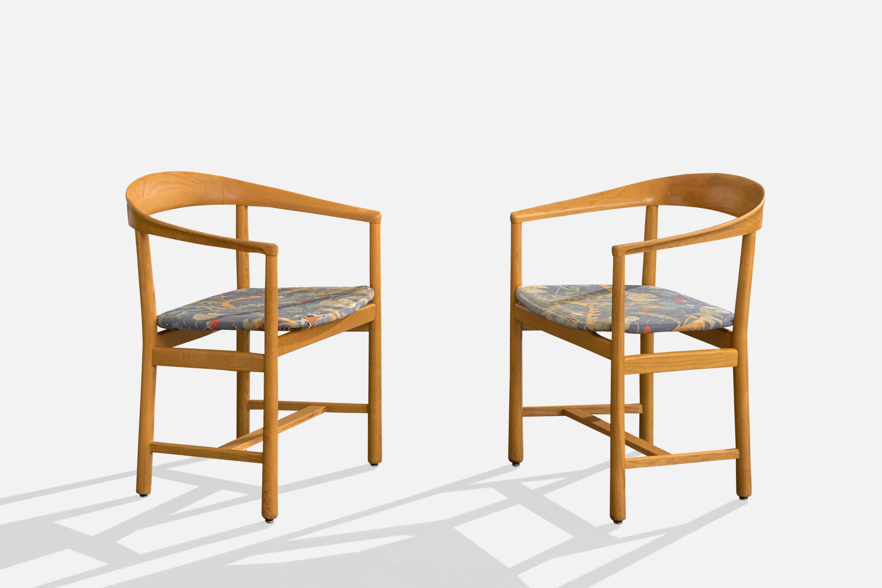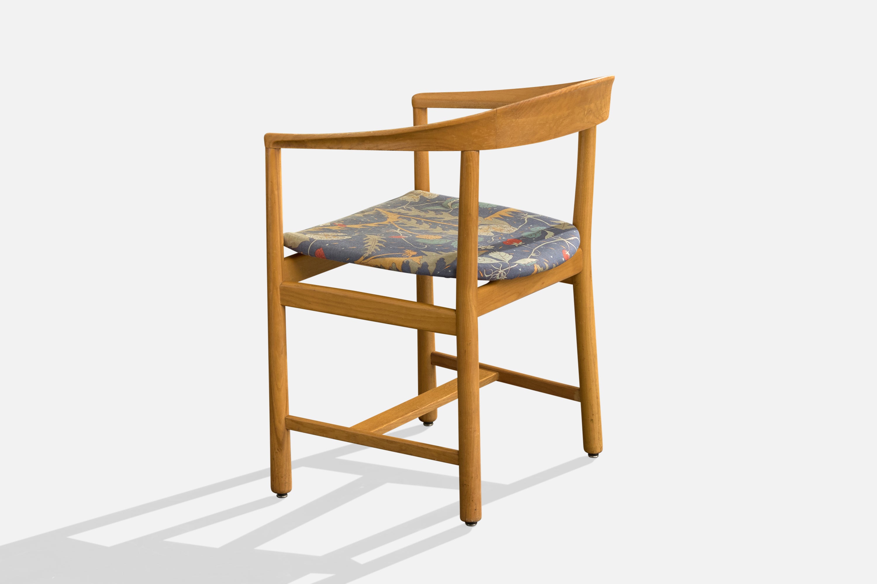 A set of four wood and floral-printed fabric armchairs or dining room chairs, model Tokyo, designed by Carl-Axel Acking and produced by Nordiska Kompaniet, Sweden, c. 1960s.