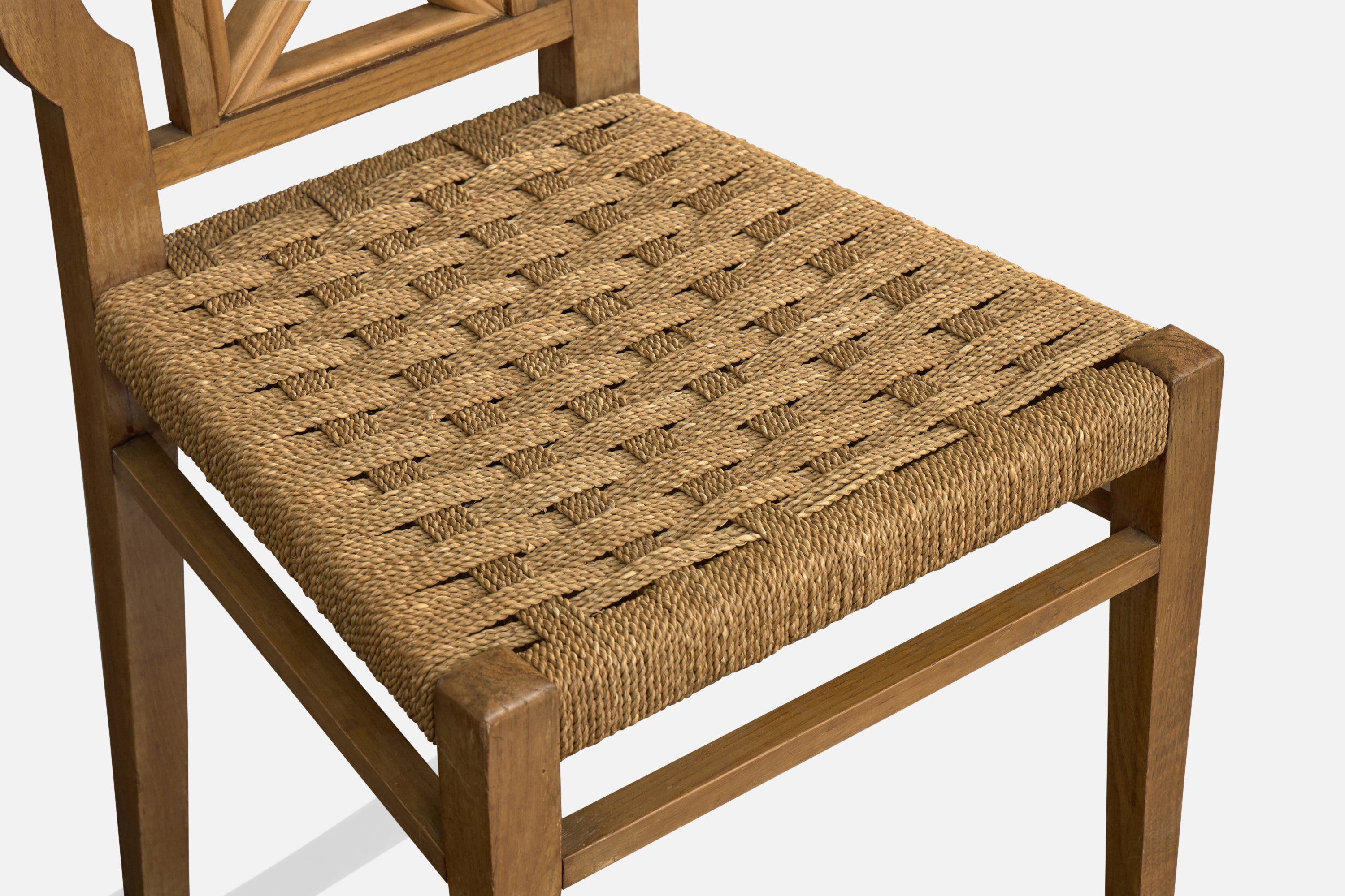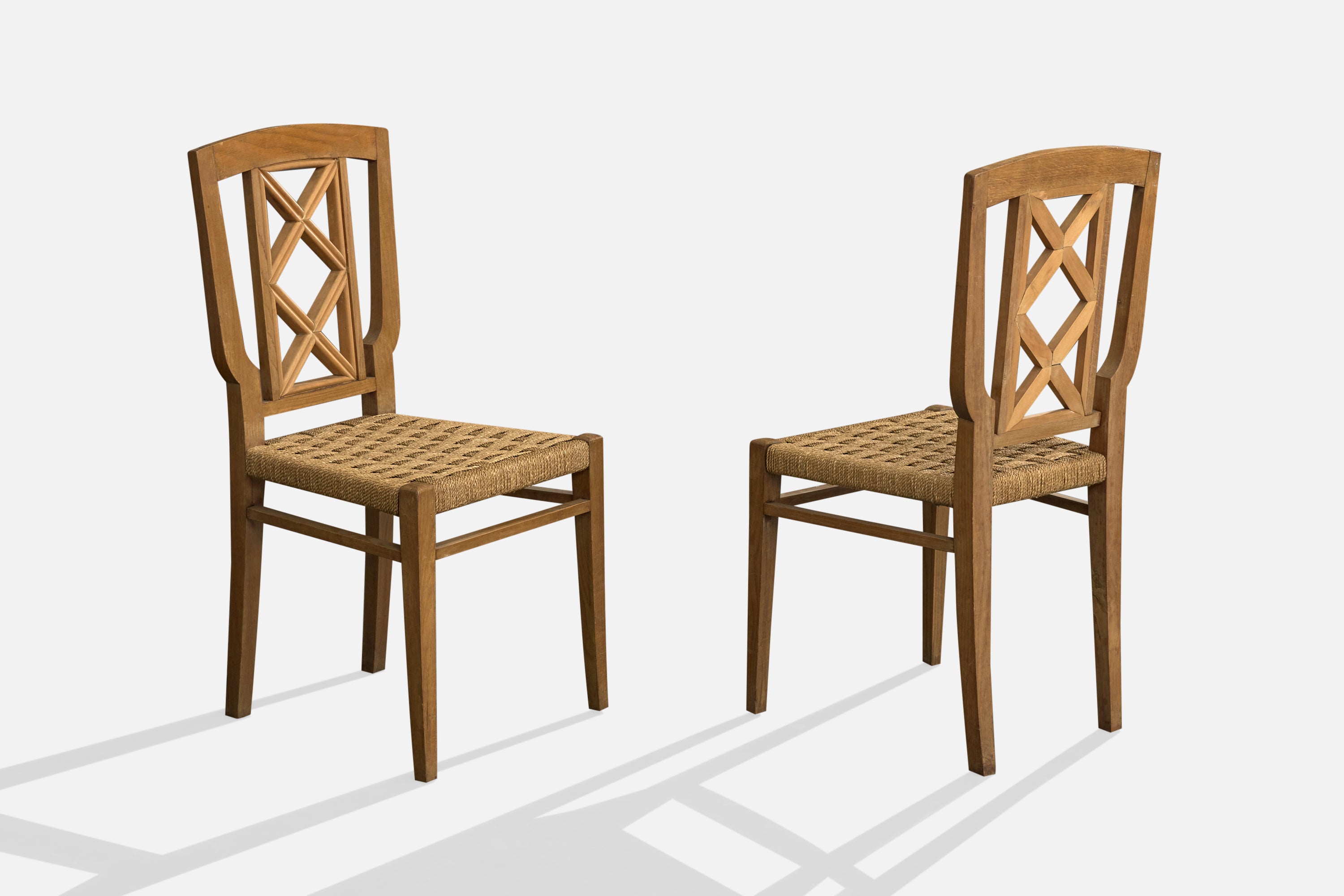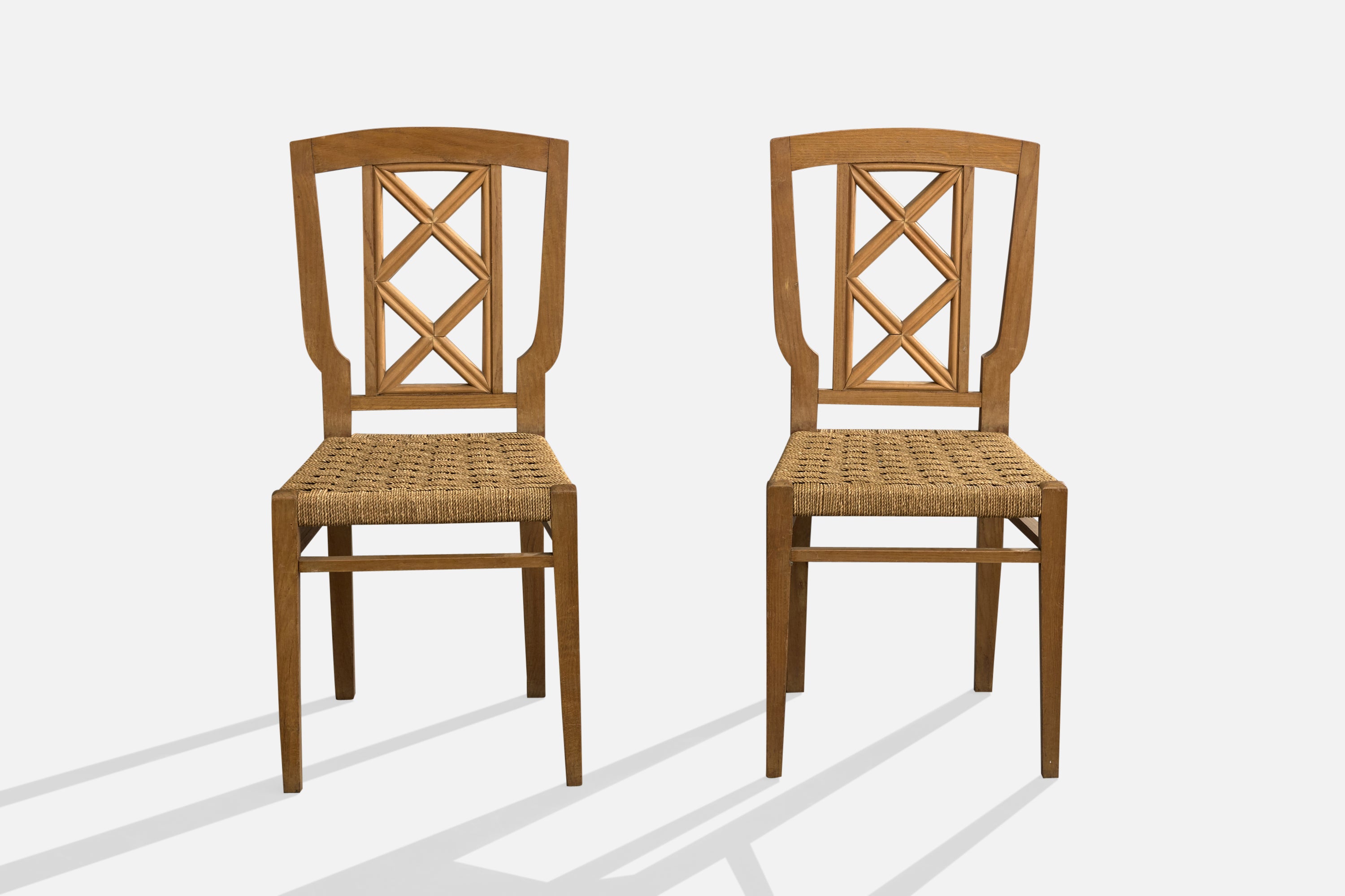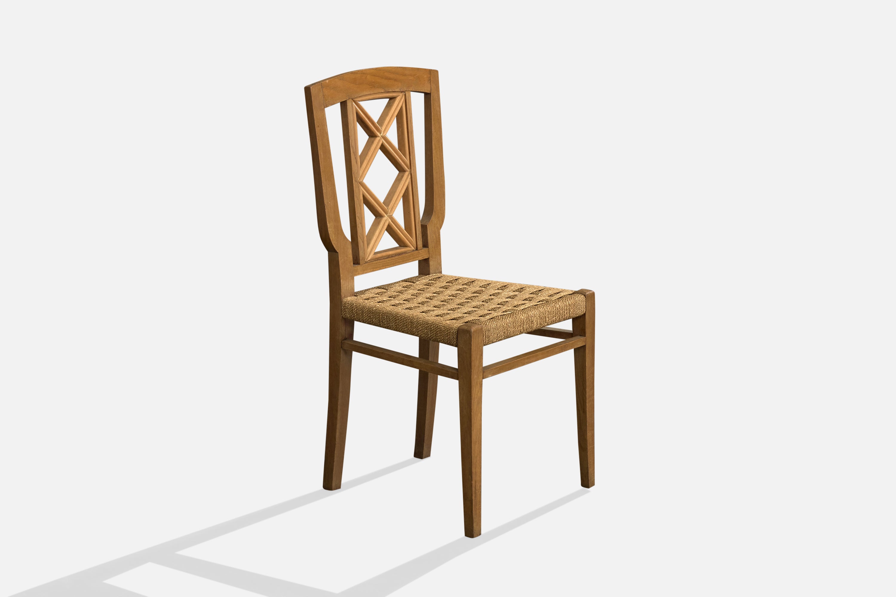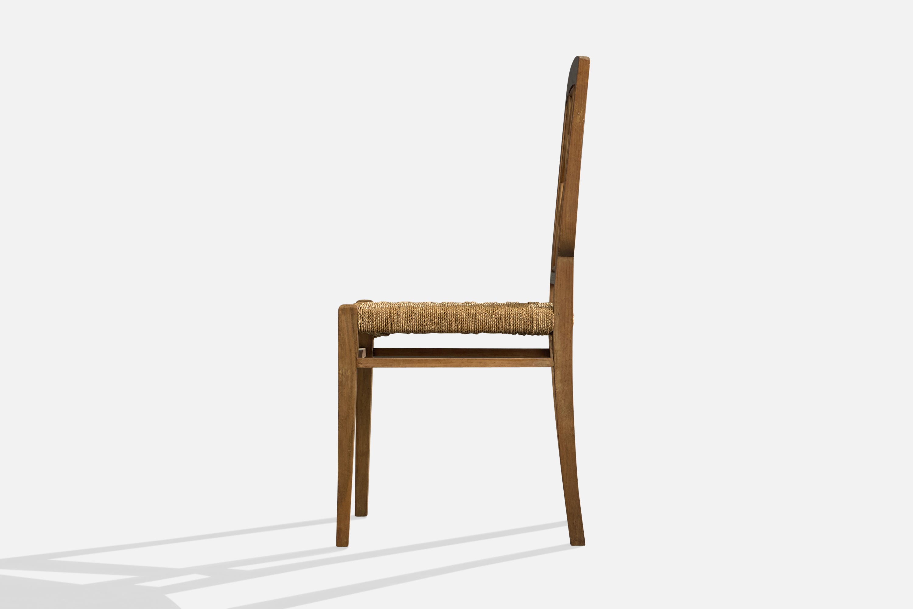 Italian Designer, Dining Room Chairs, Wood, Rush, Italy, 1940s