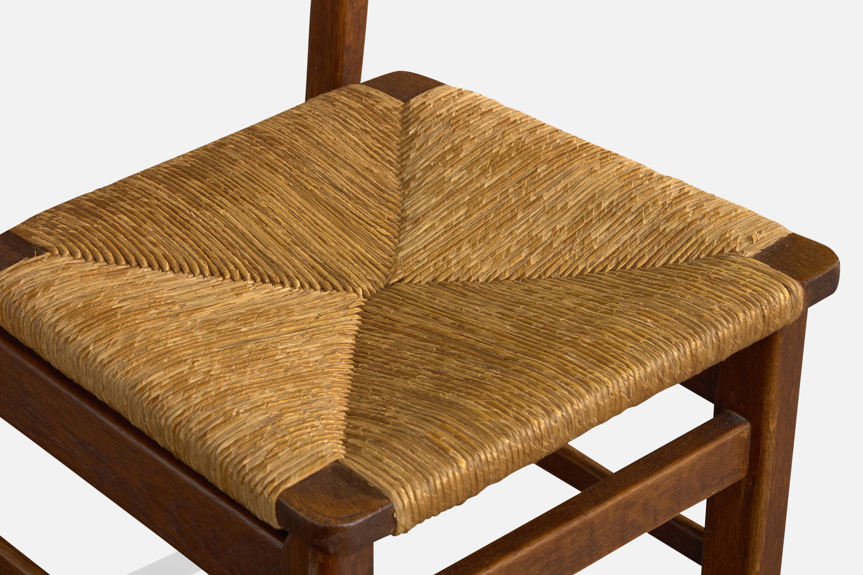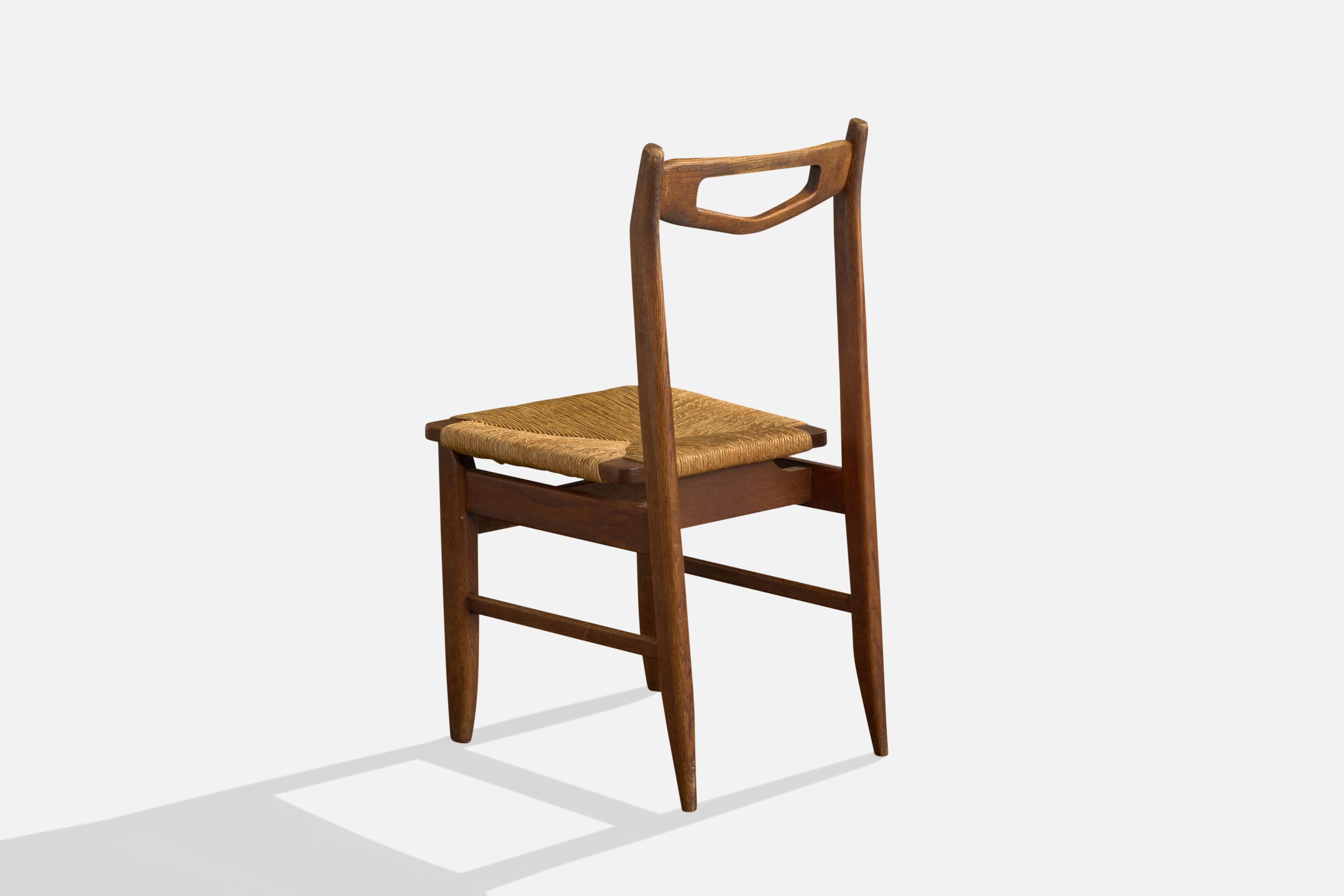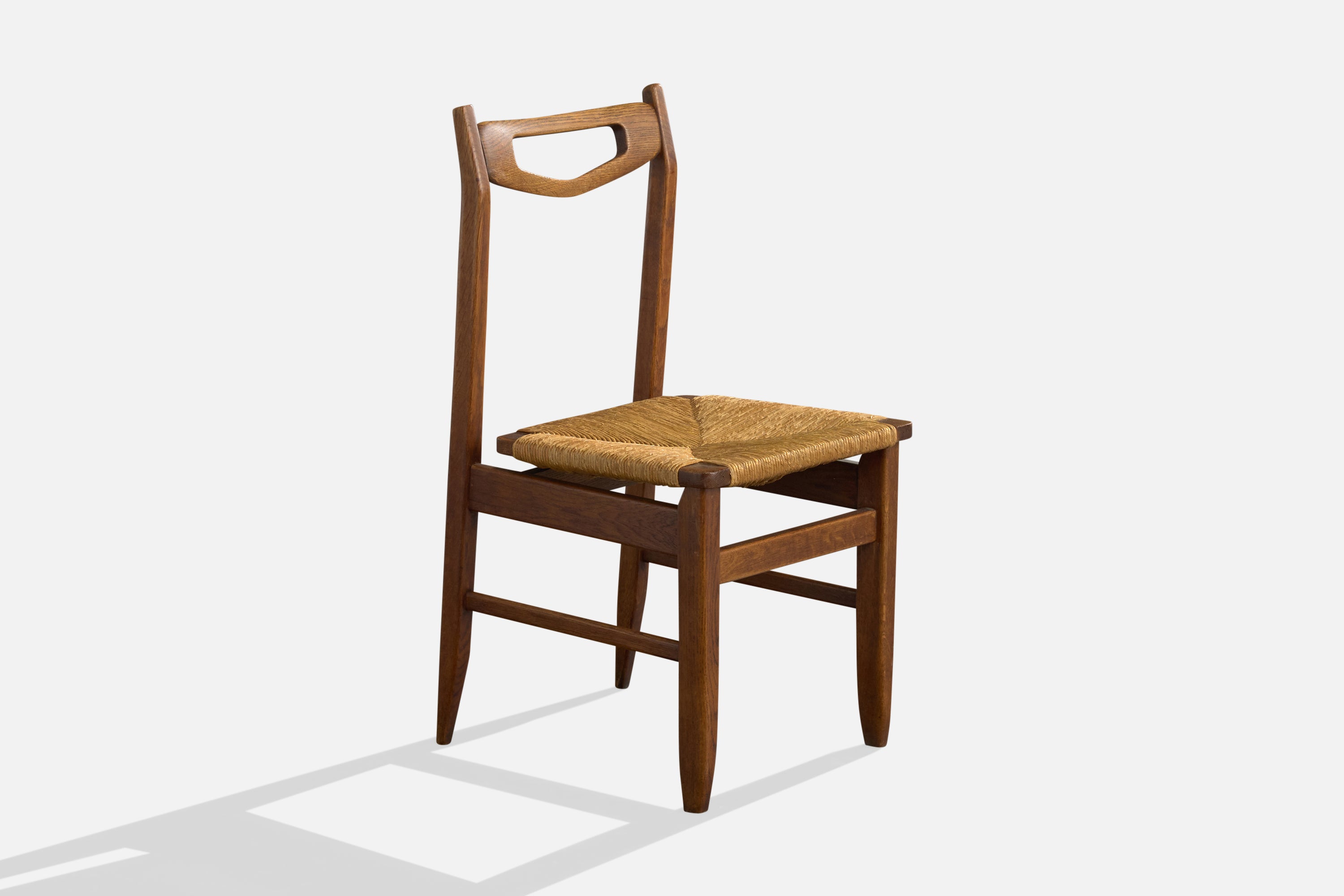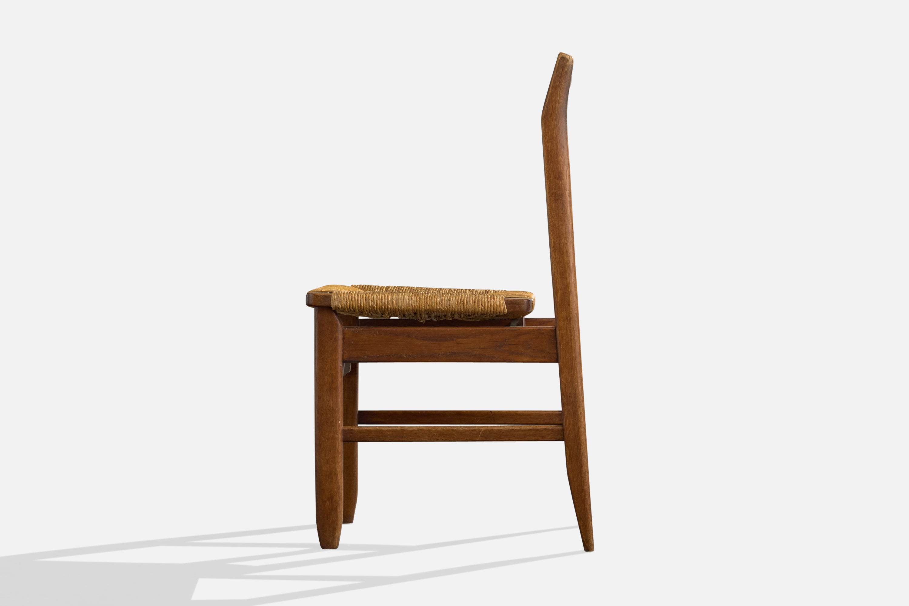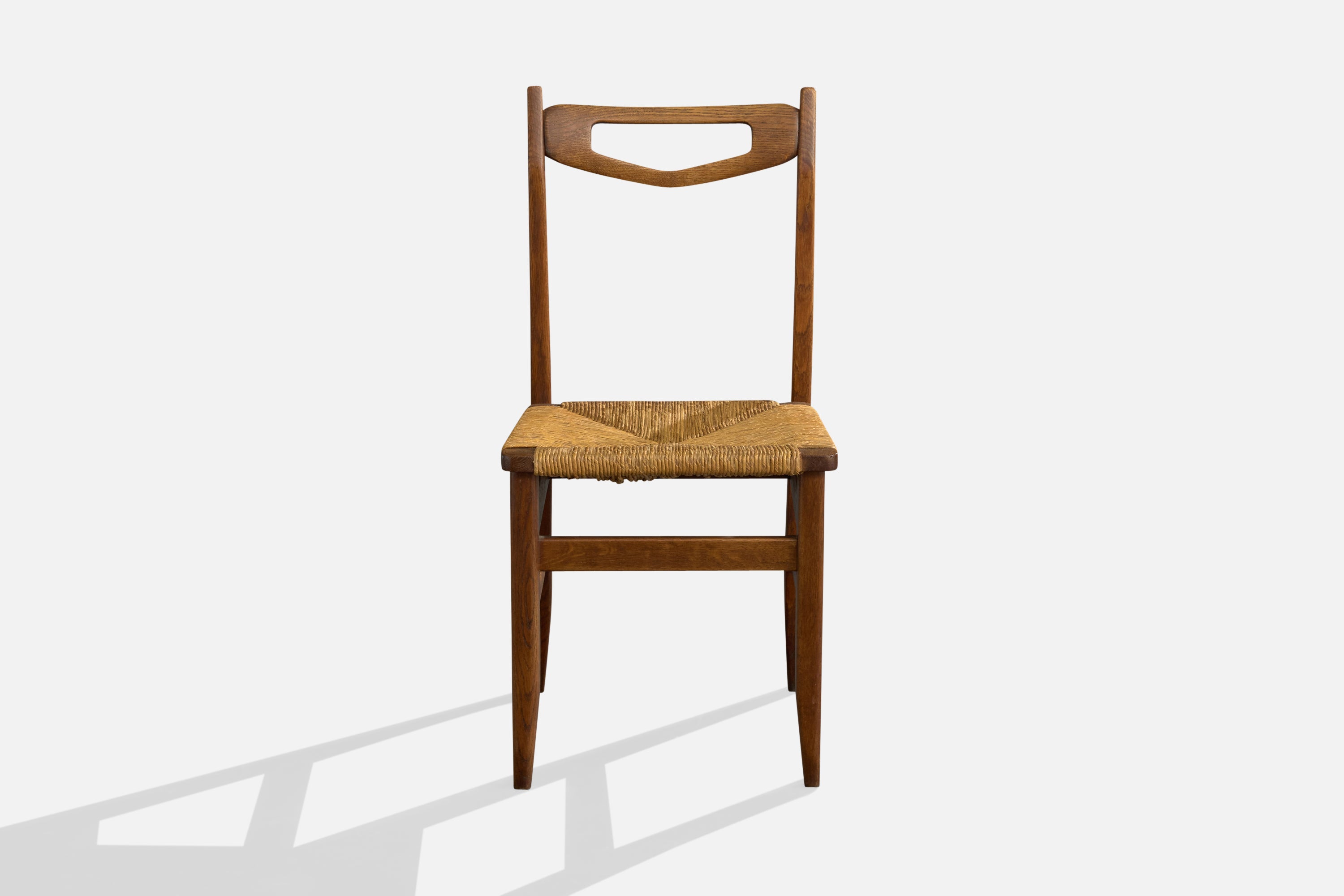 Guillerme & Chambron, Side Chair, Oak, Rush, France, 1960s