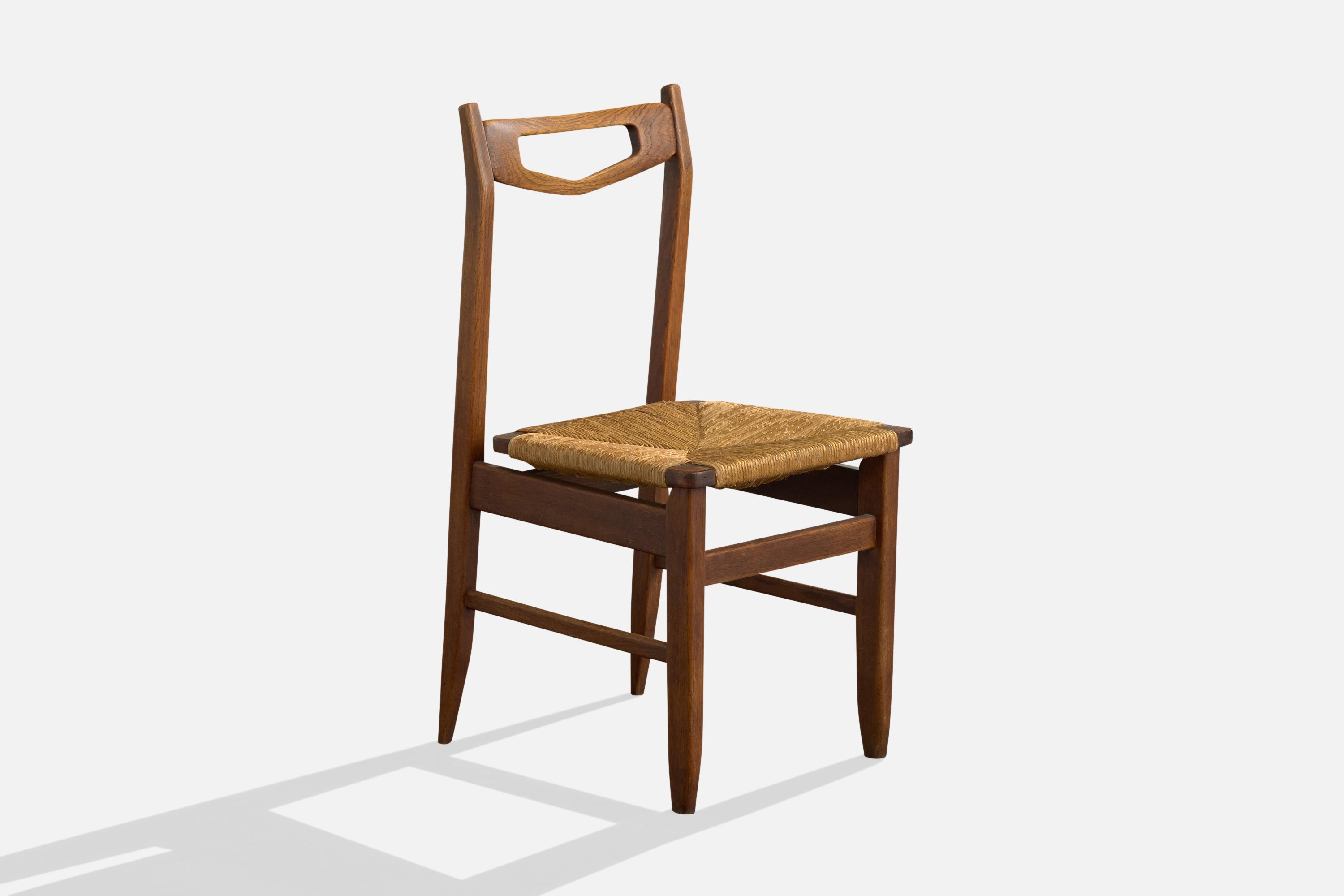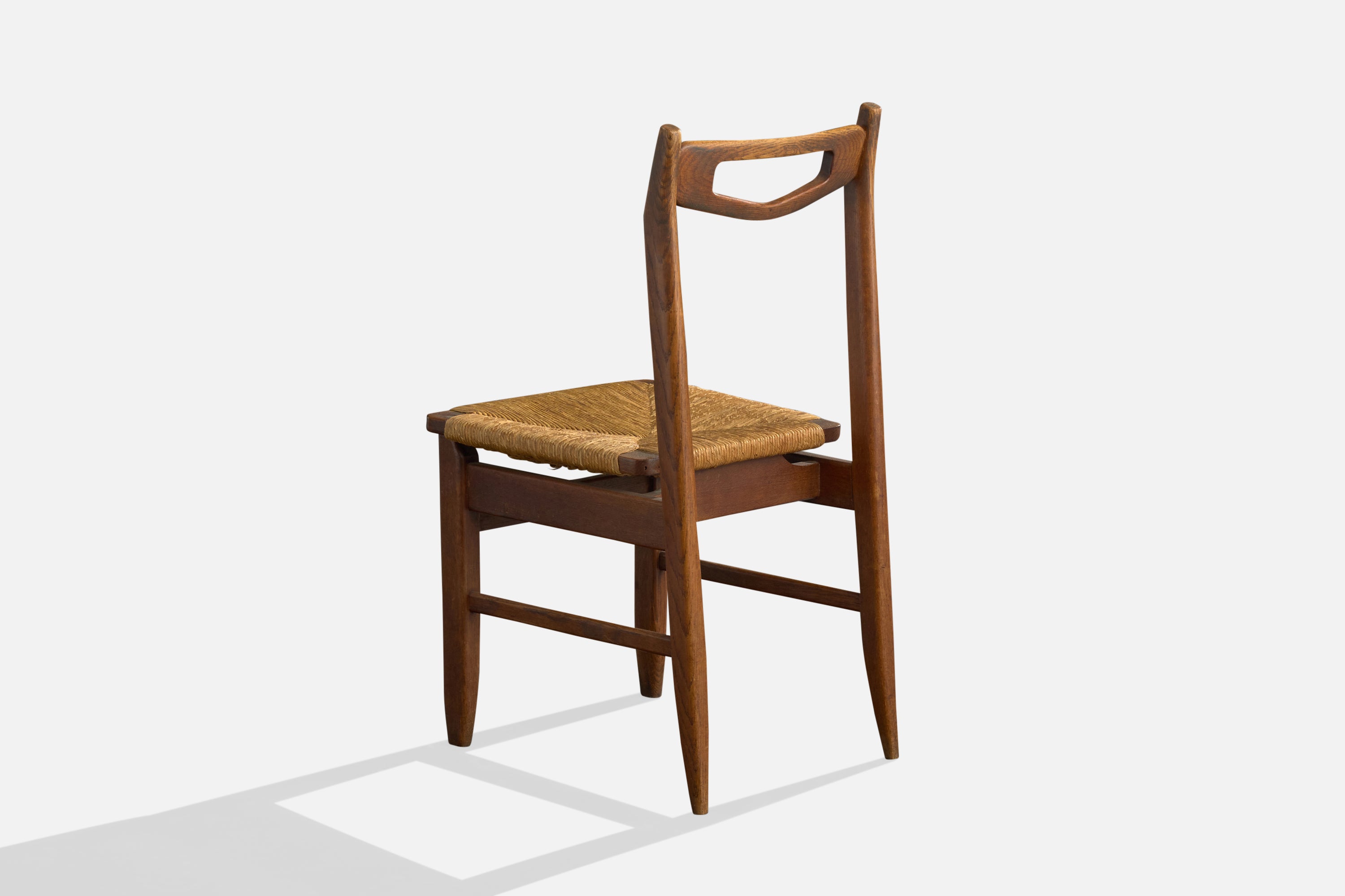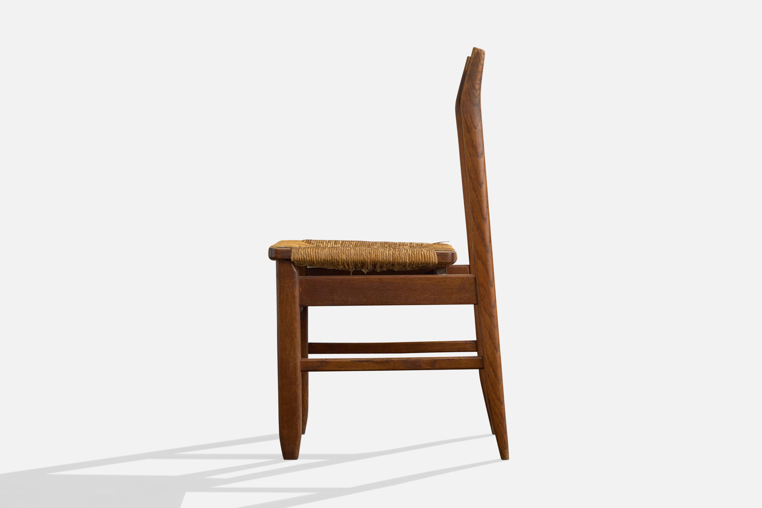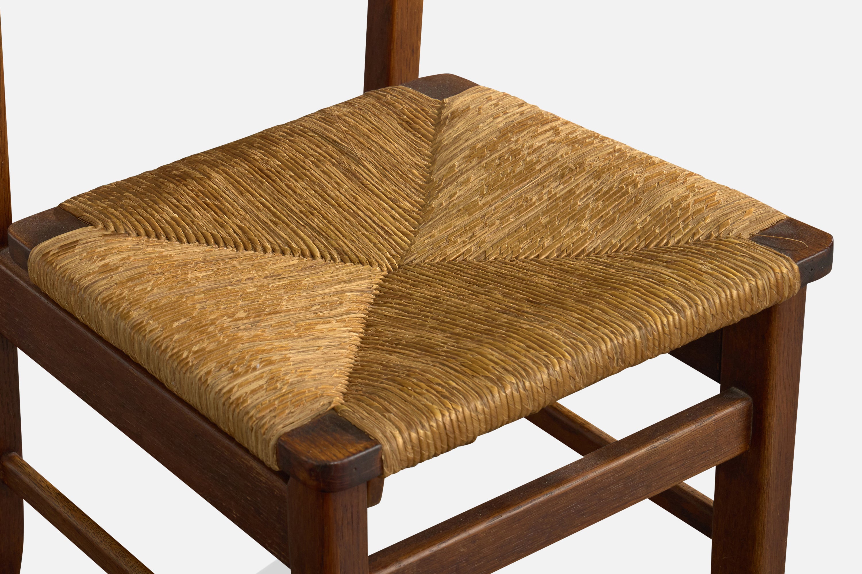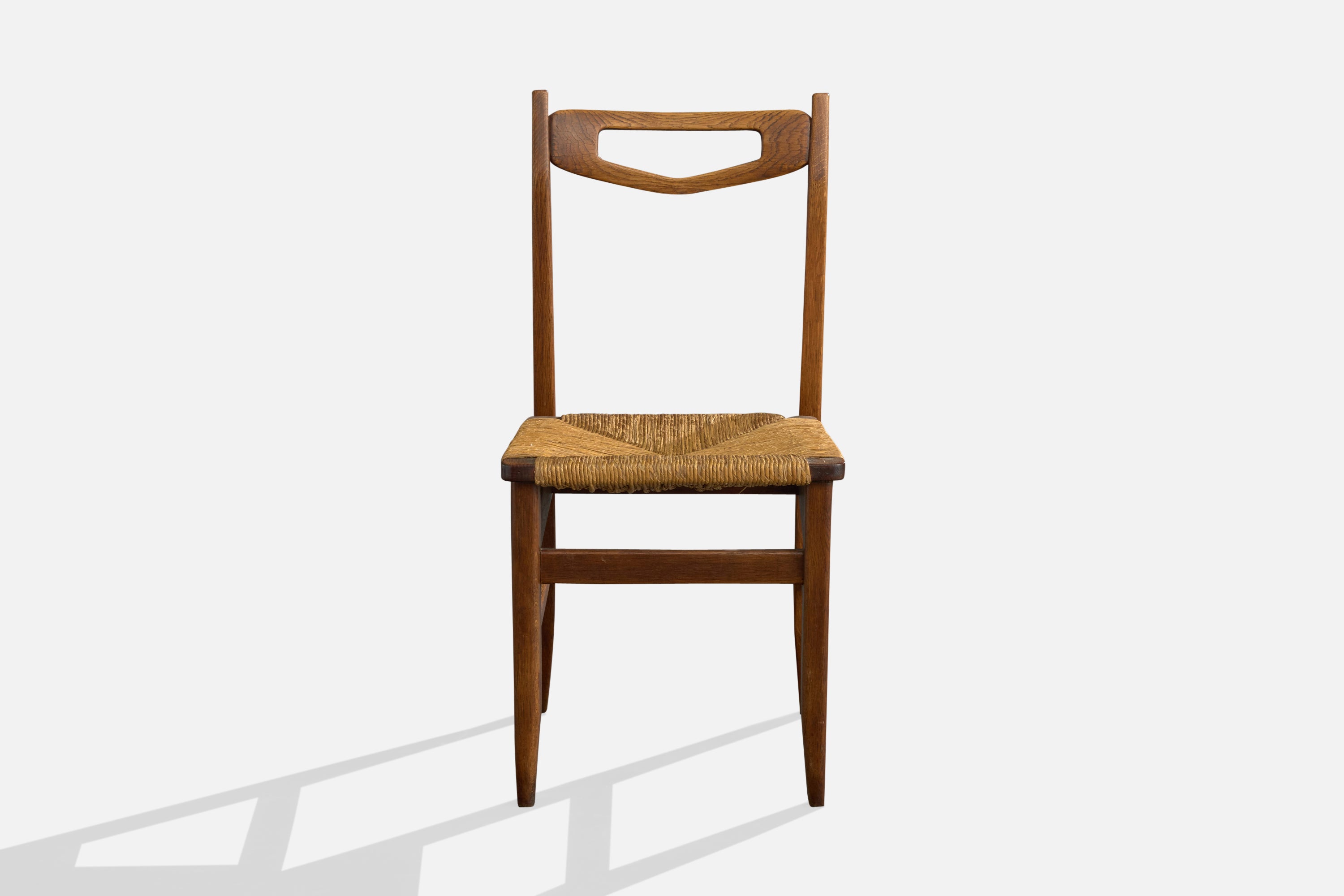 Guillerme & Chambron, Side Chair, Oak, Rush, France, 1960s