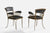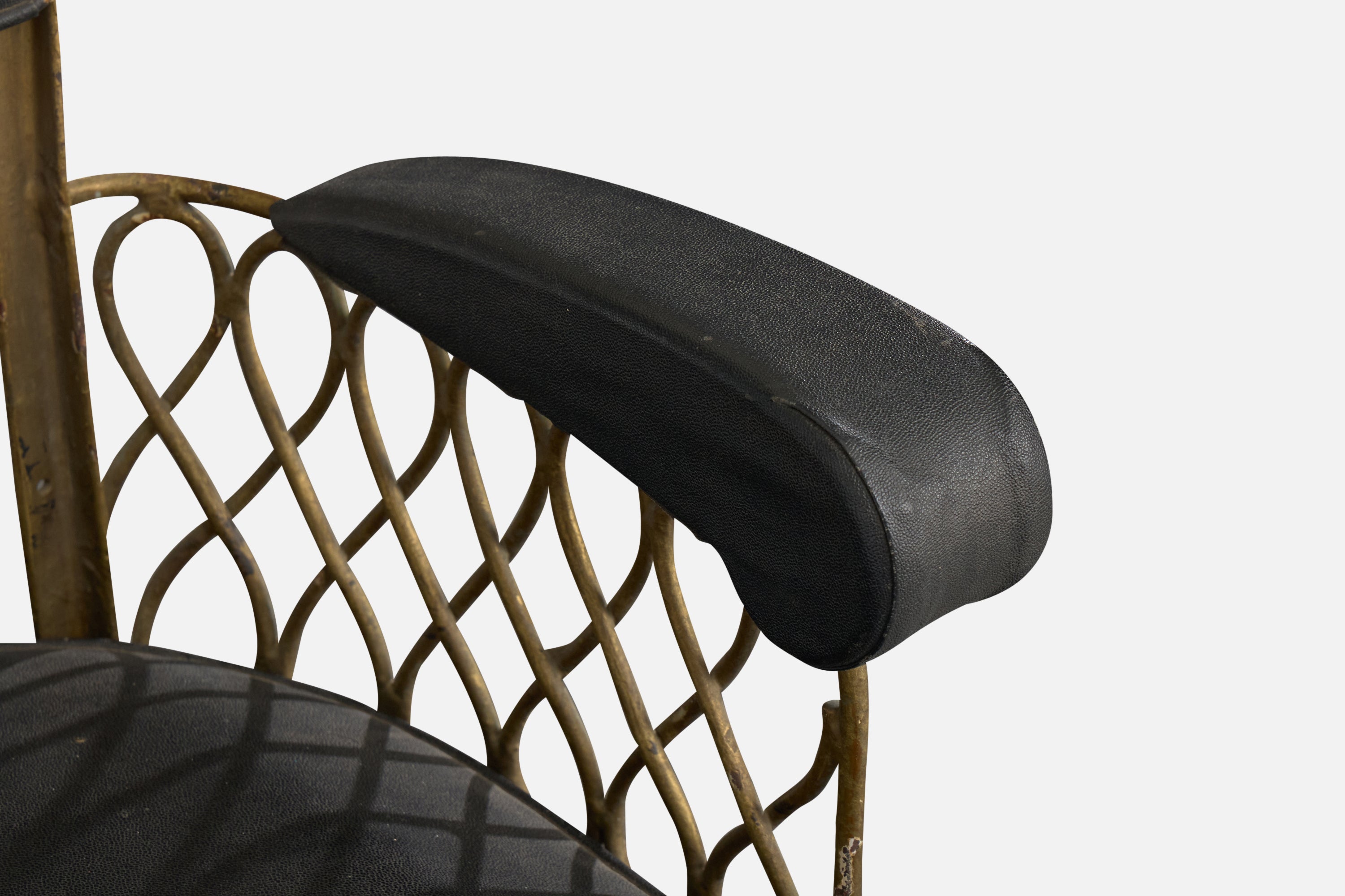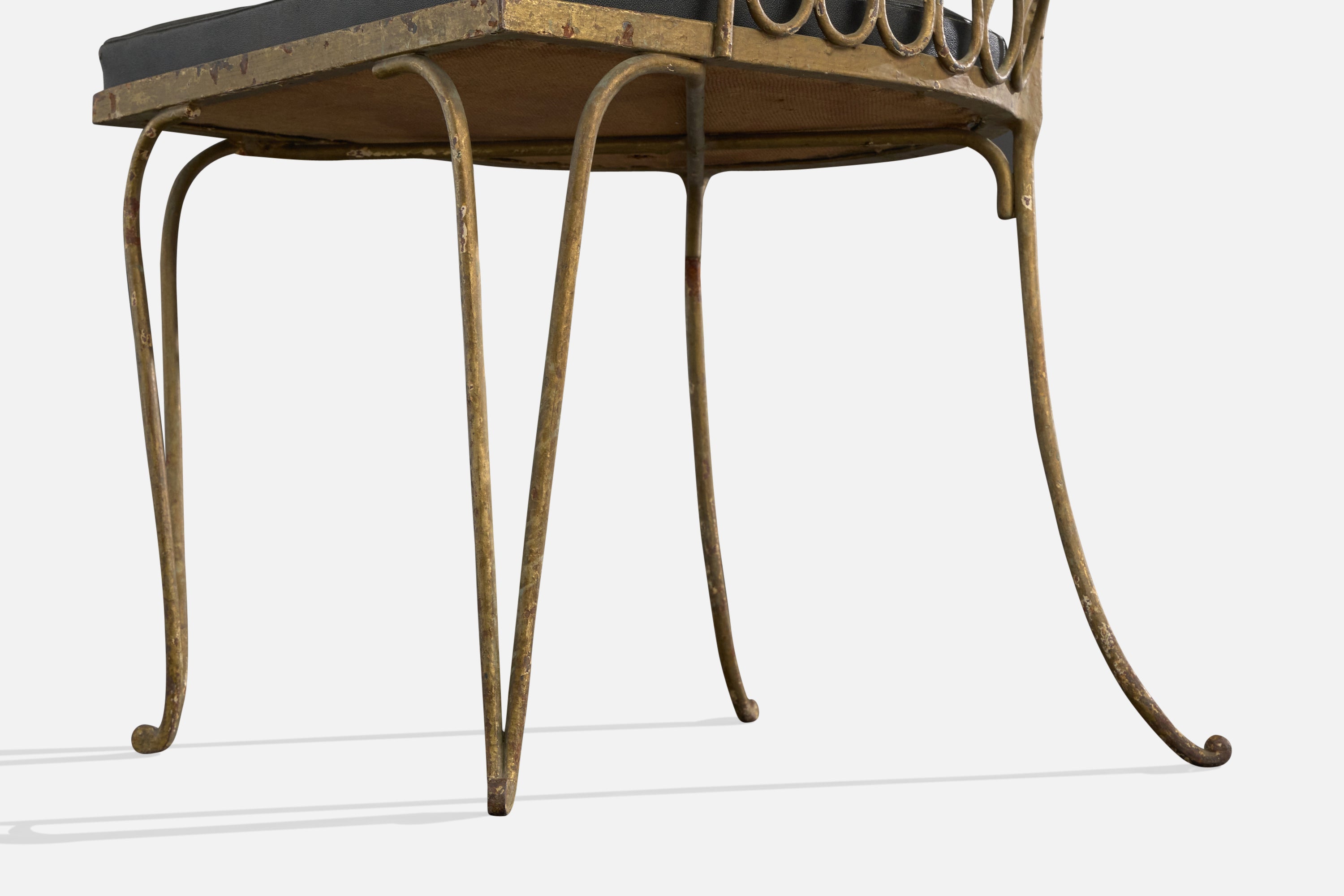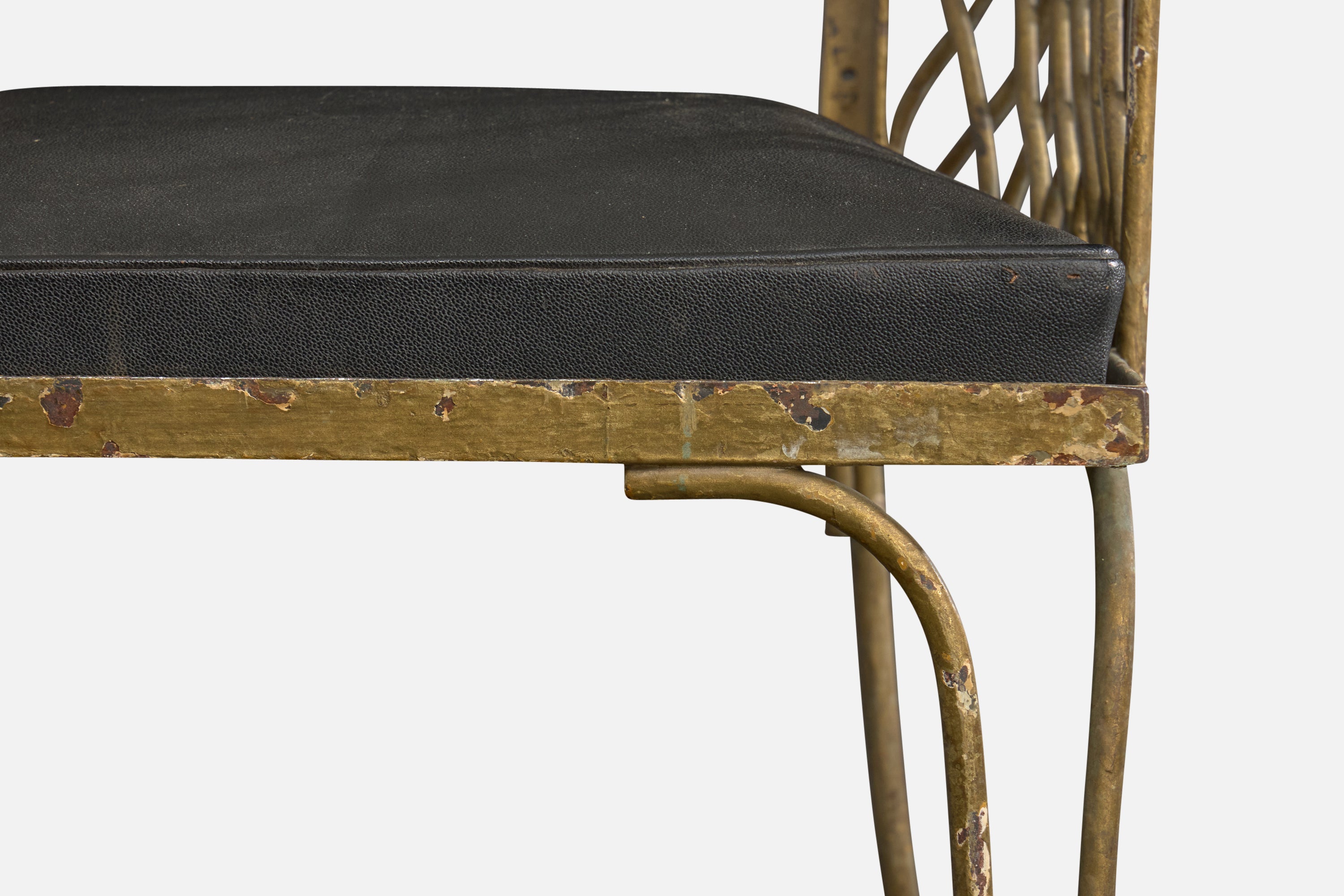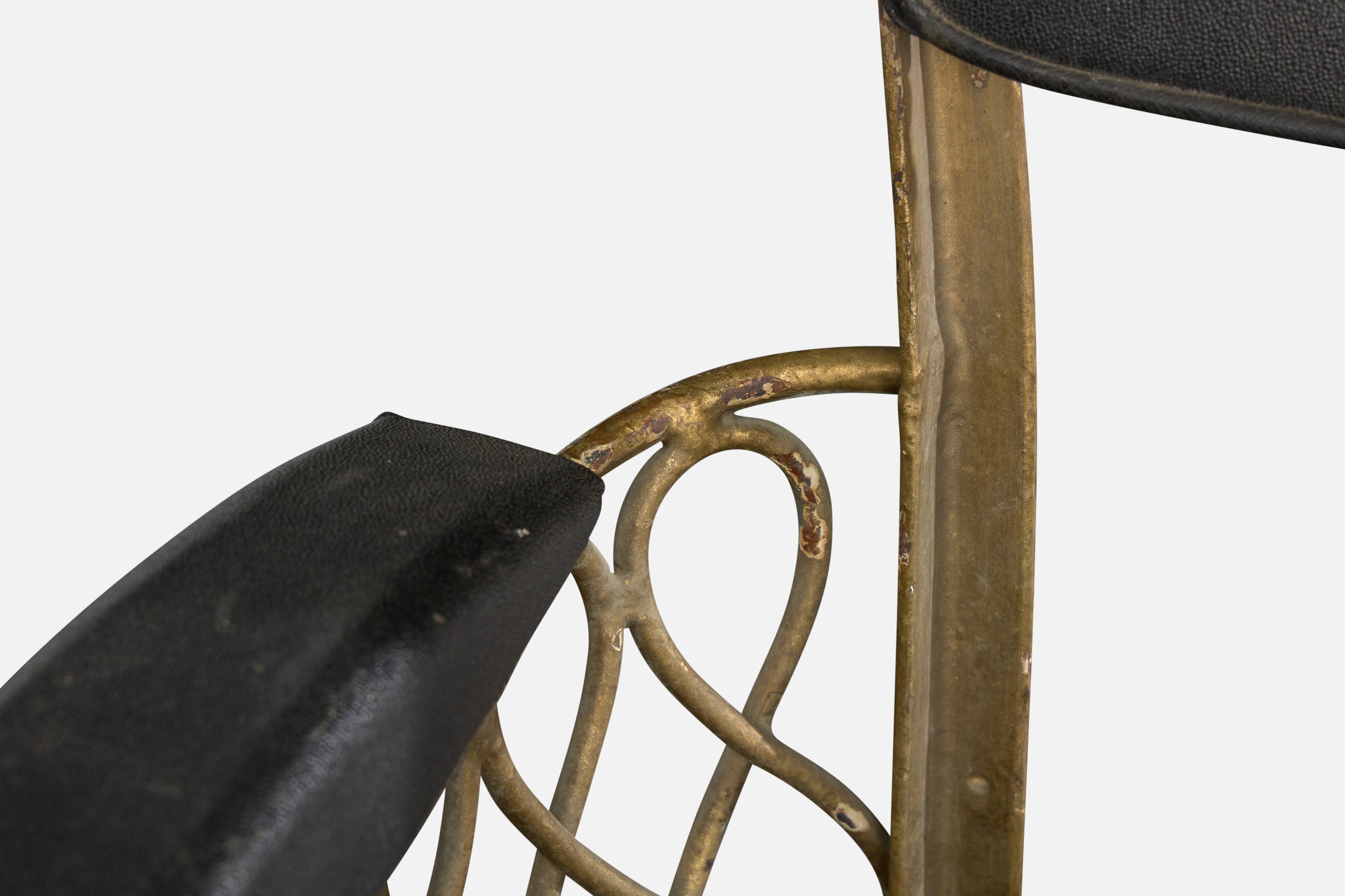 A pair of gold-painted metal and black vinyl armchairs designed and produced in France, c. 1950s.