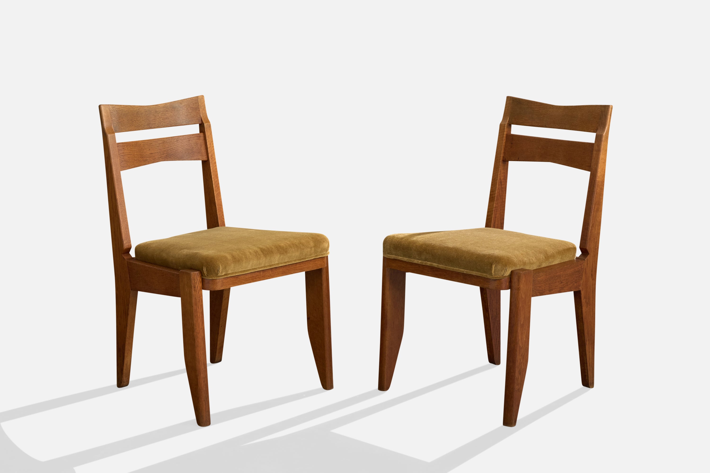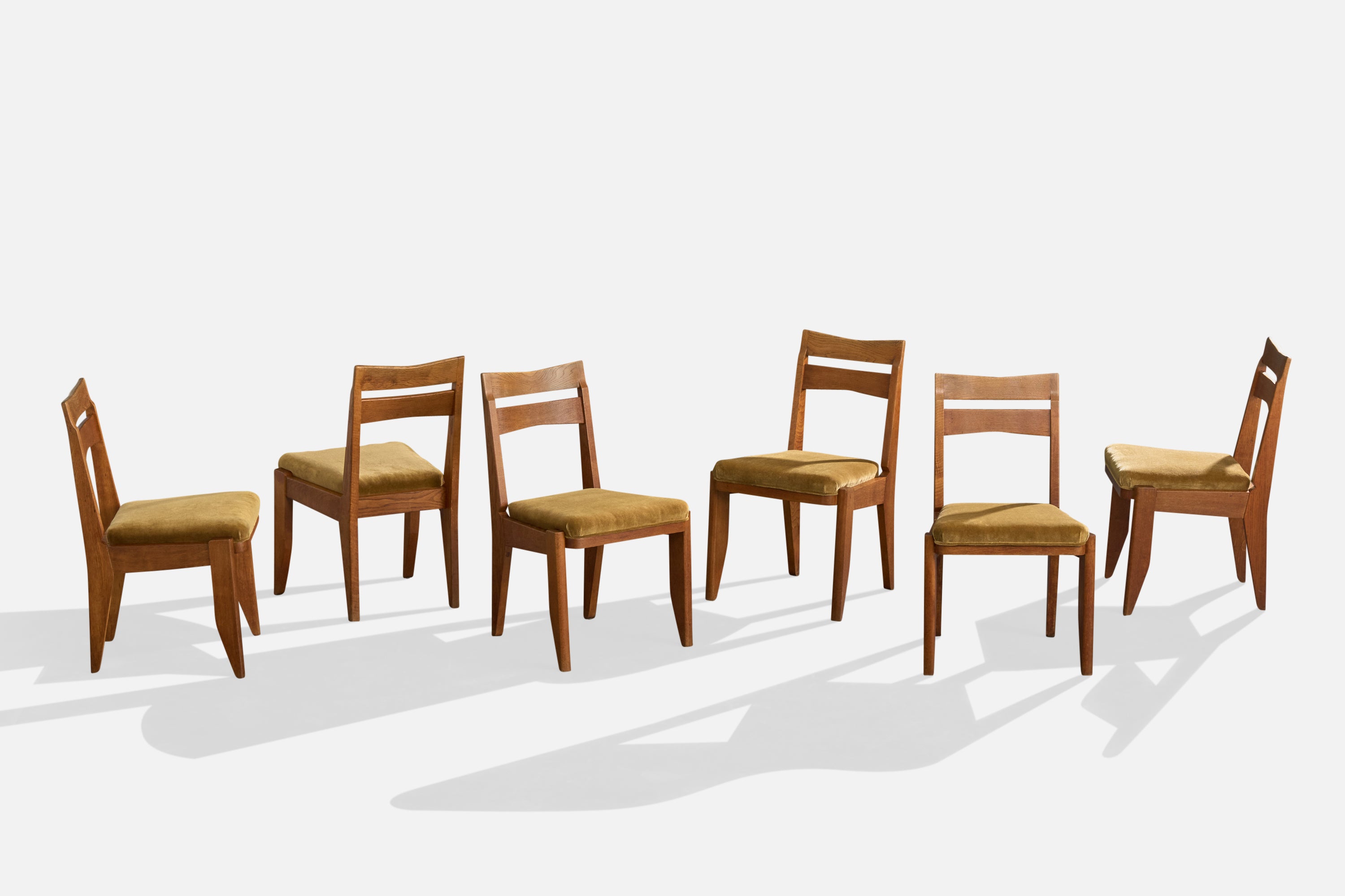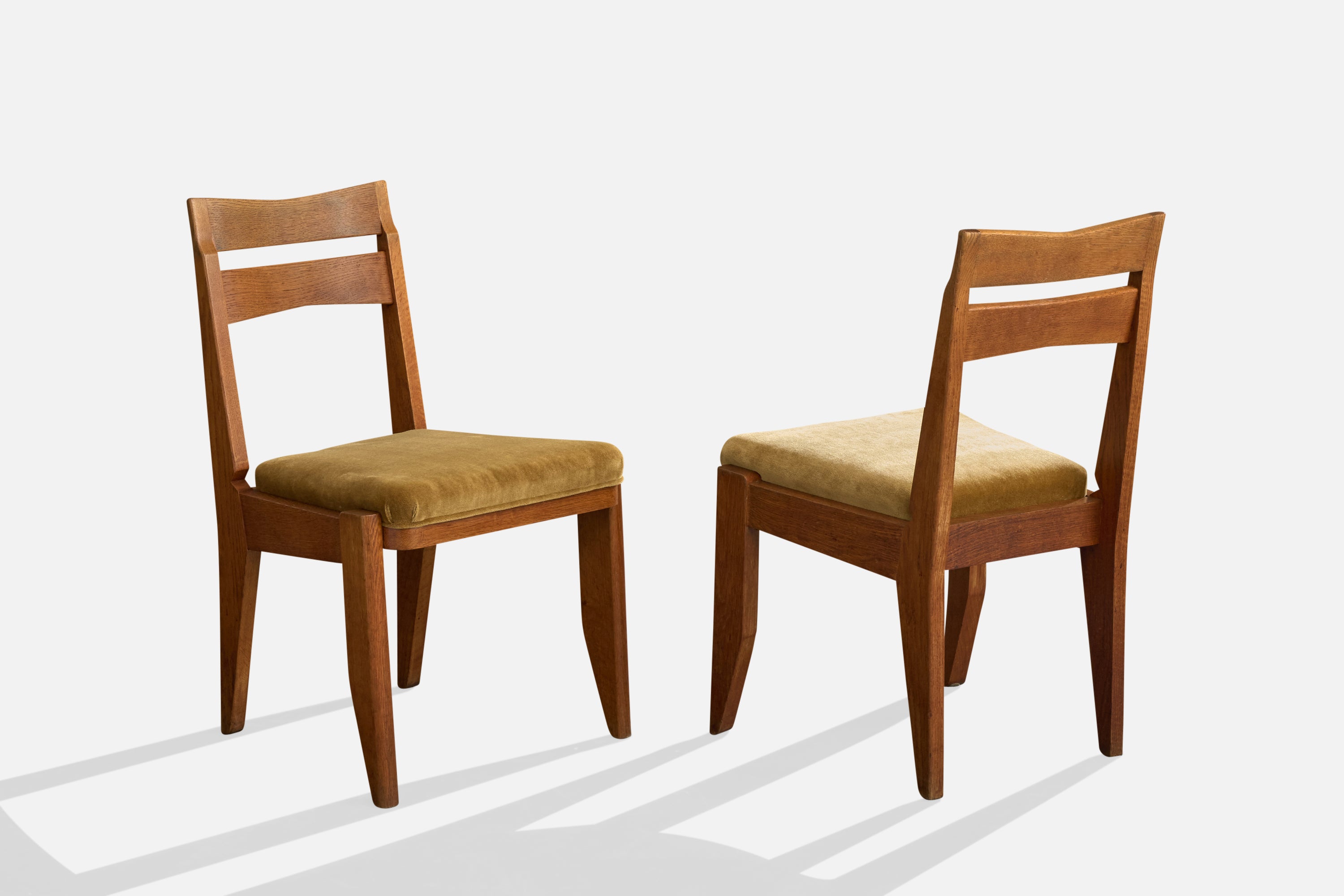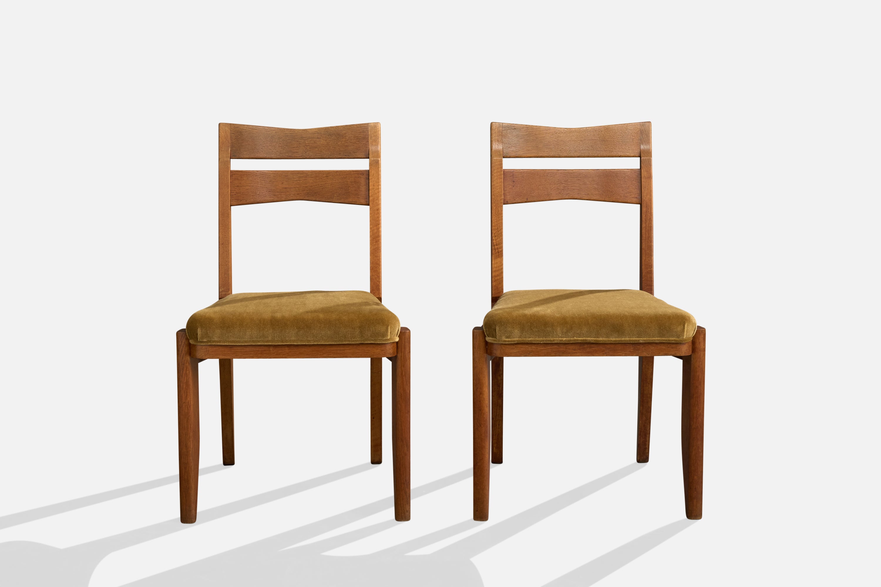 Guillerme & Chambron, Dining Room Chairs, Oak, Mohair, France, 1960s