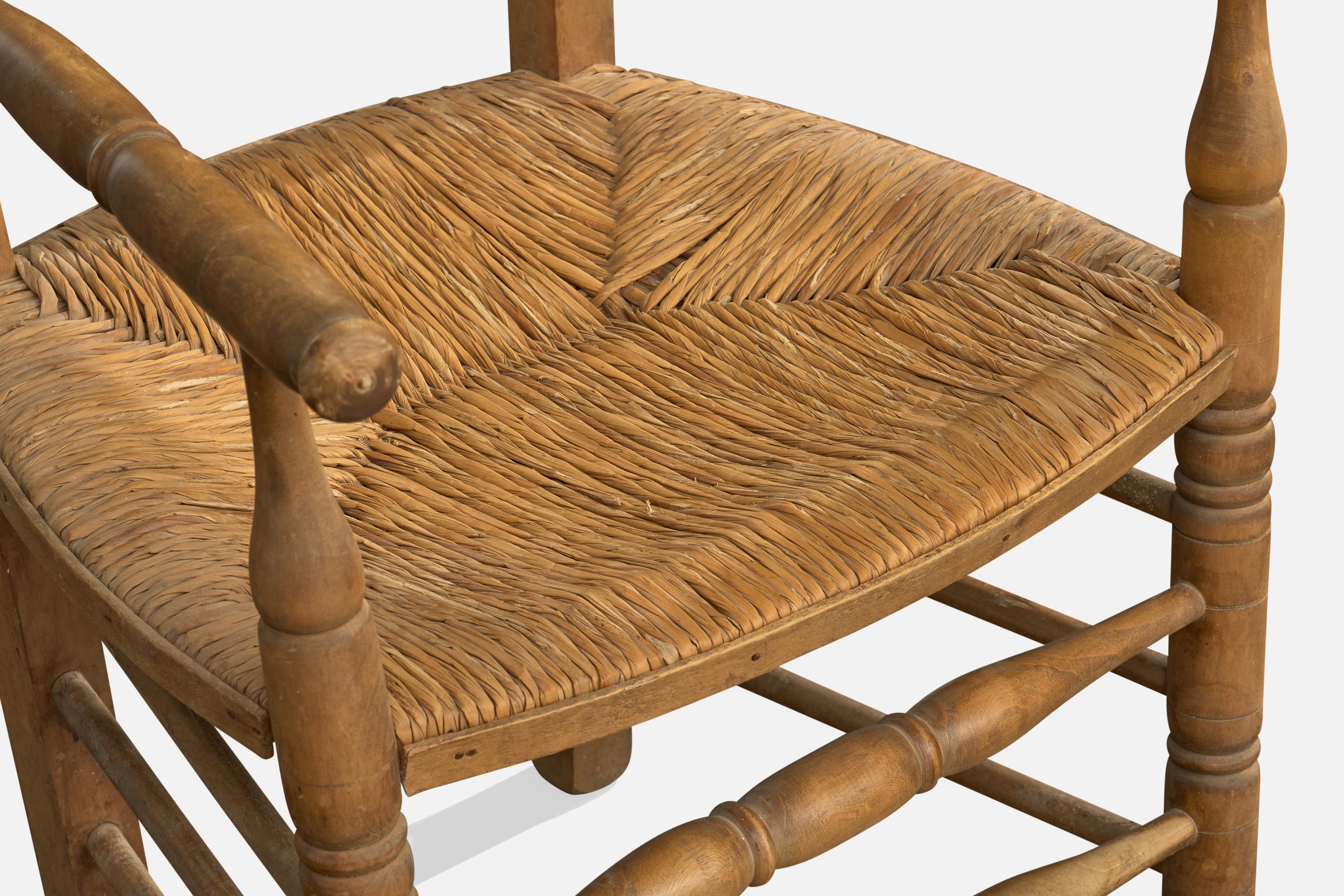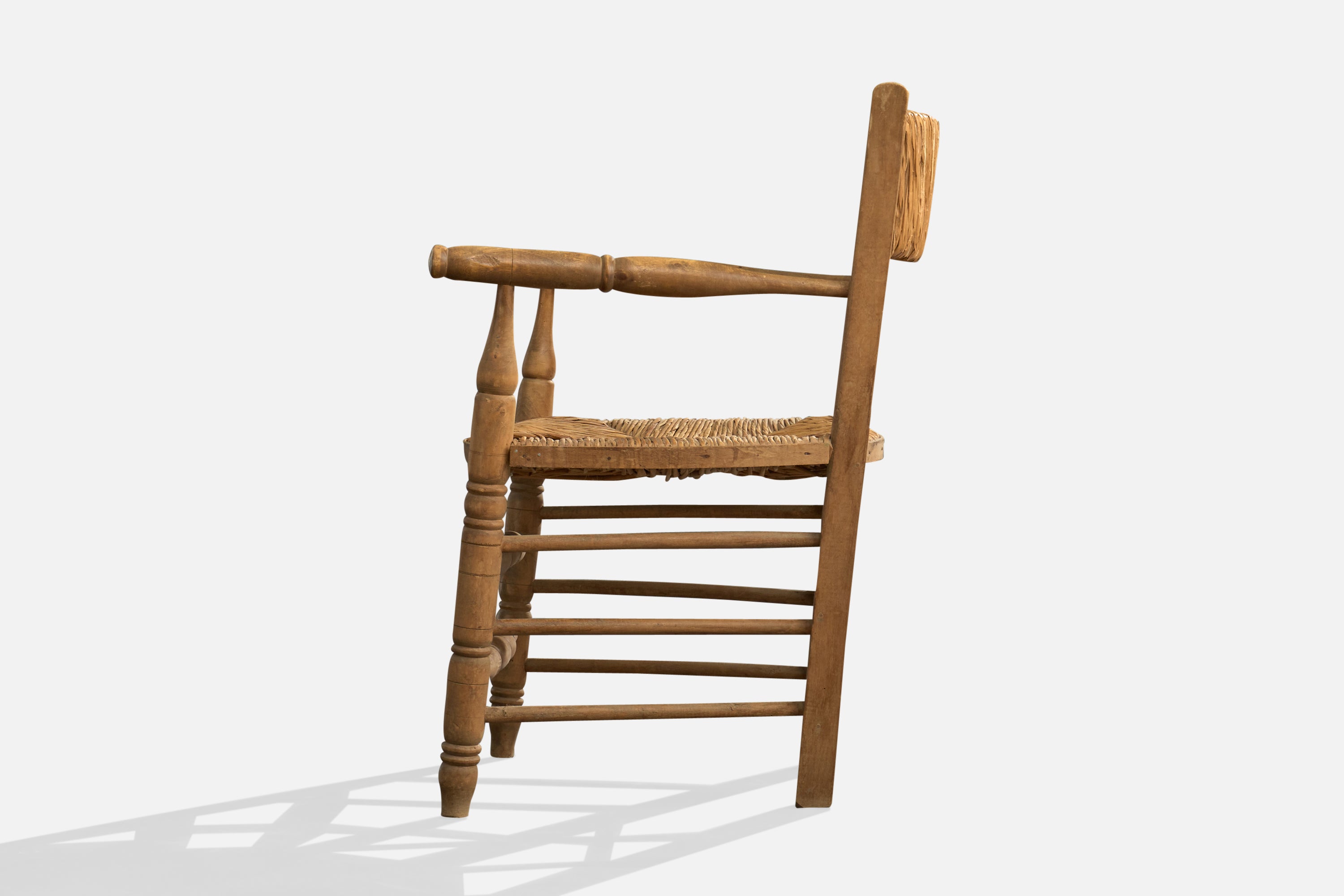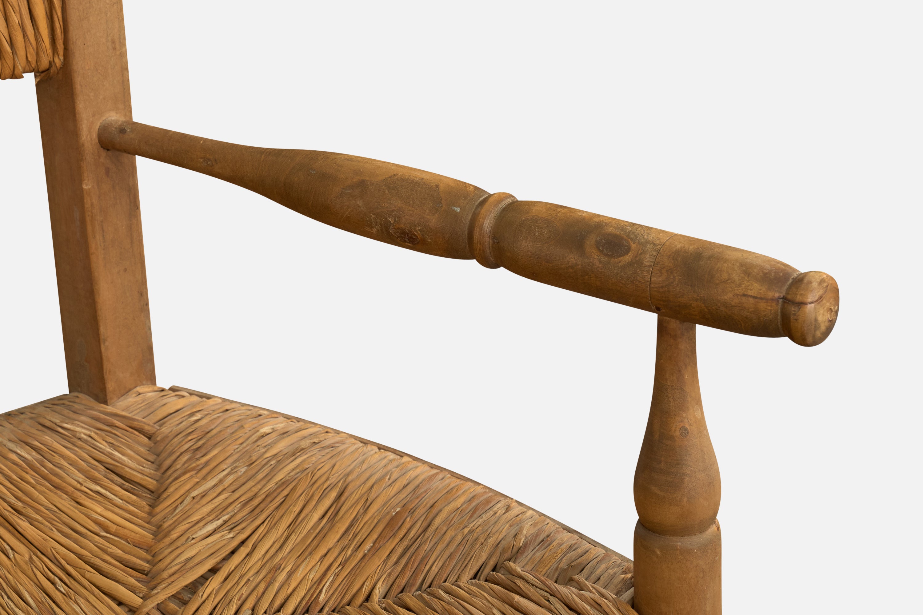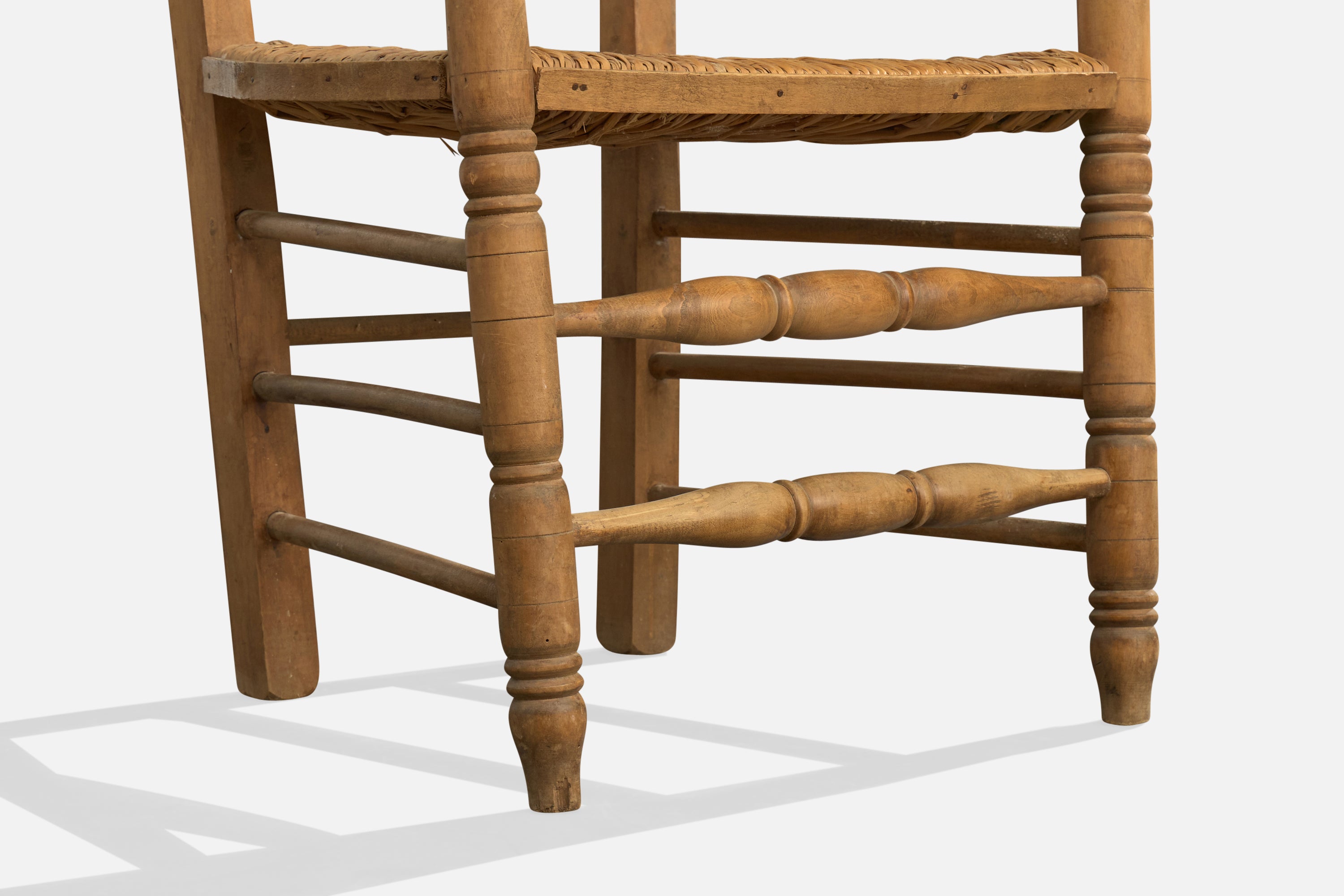 A pair of wood and papercord armchairs designed and produced in Argentina, c. 1950s.