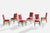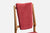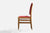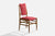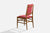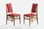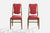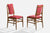 A set of six wood and red fabric dining room chairs designed and produced in Italy, c. 1950s.
