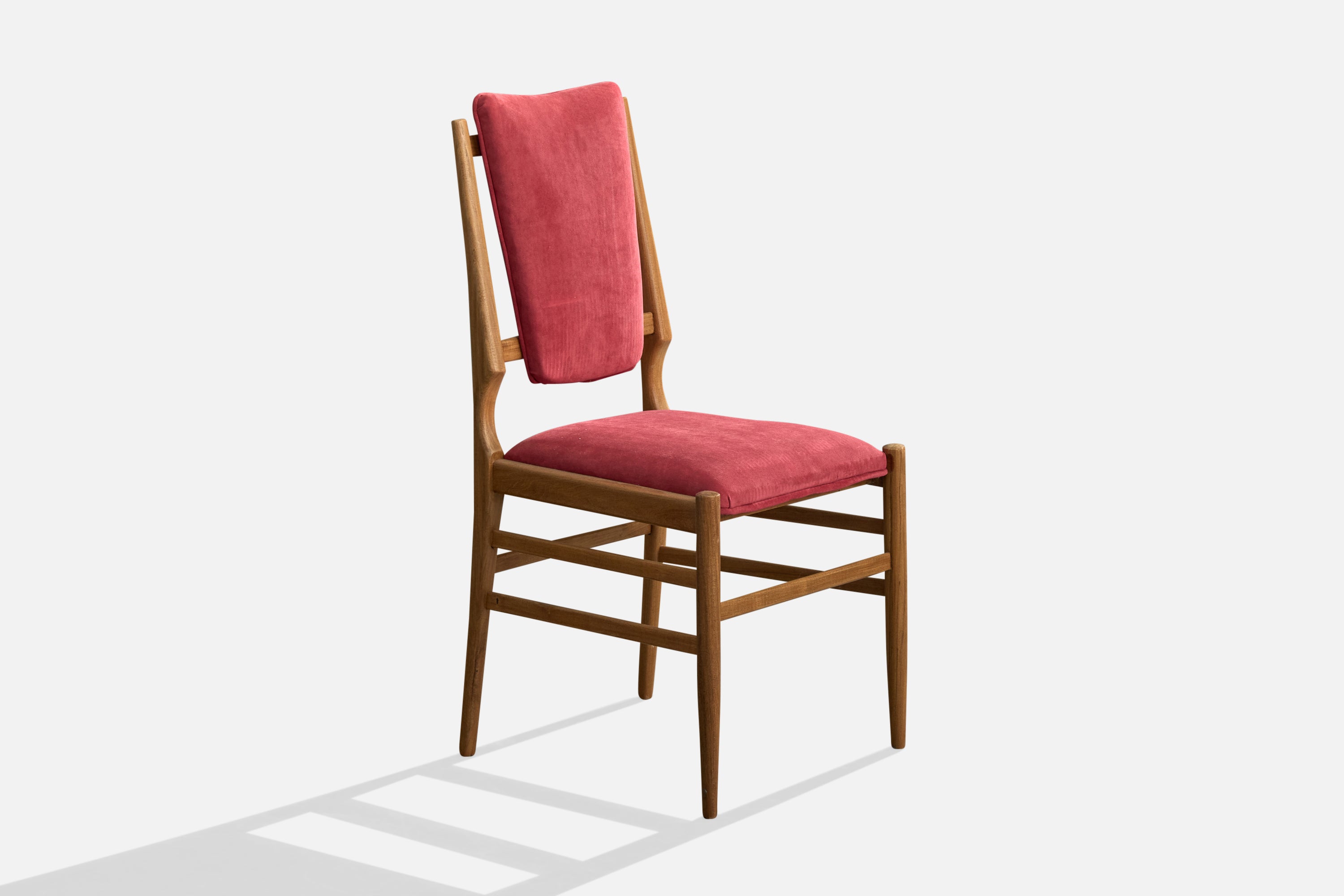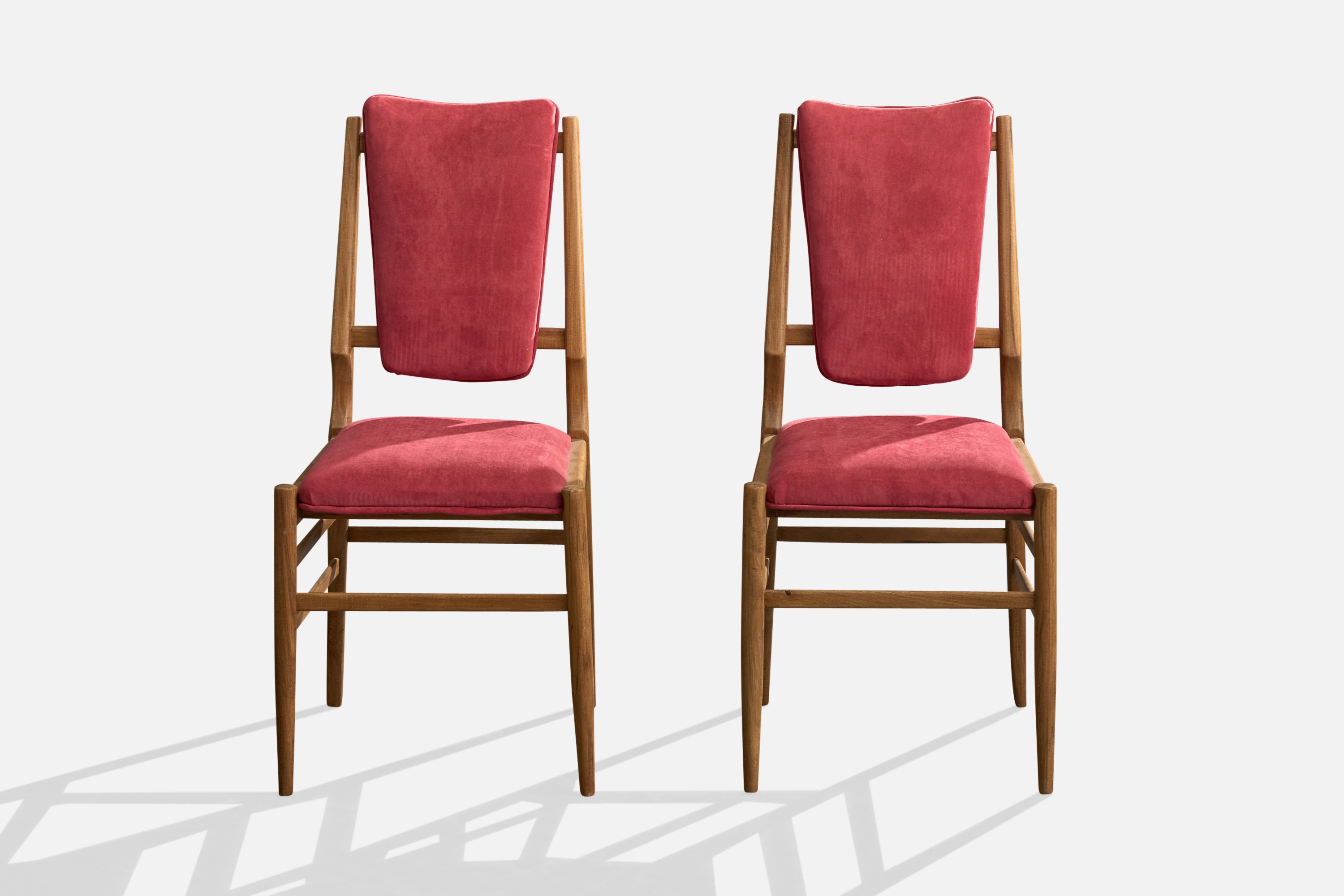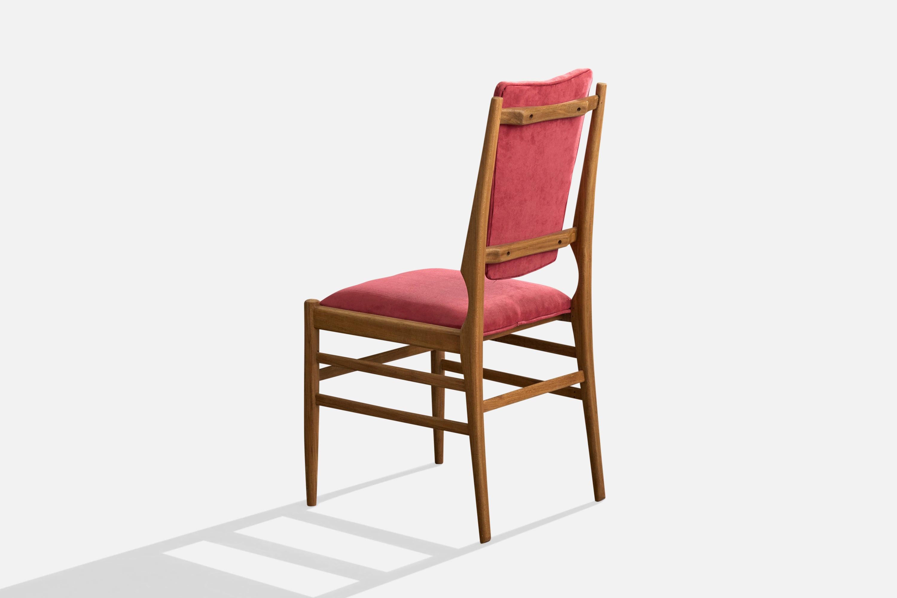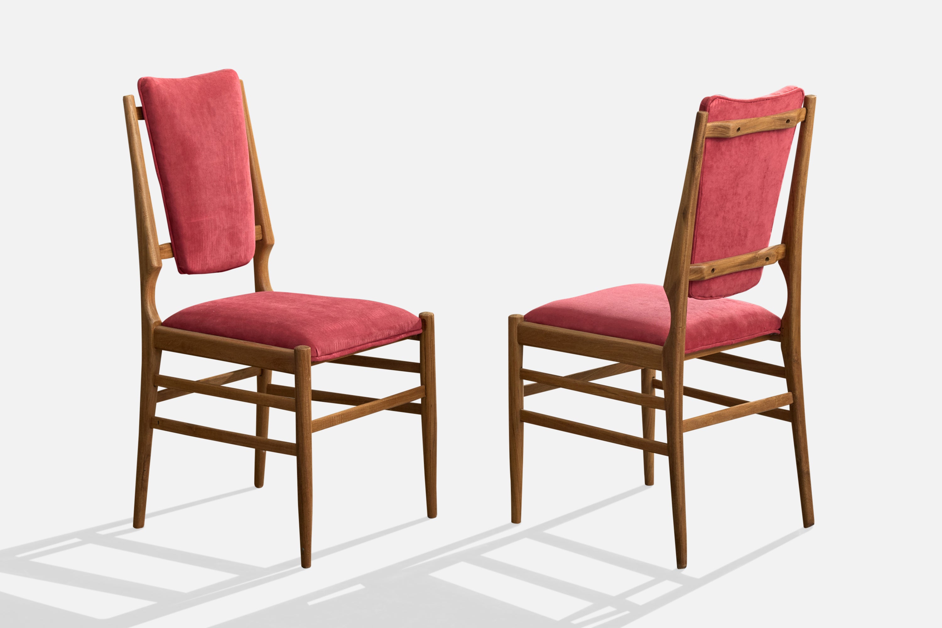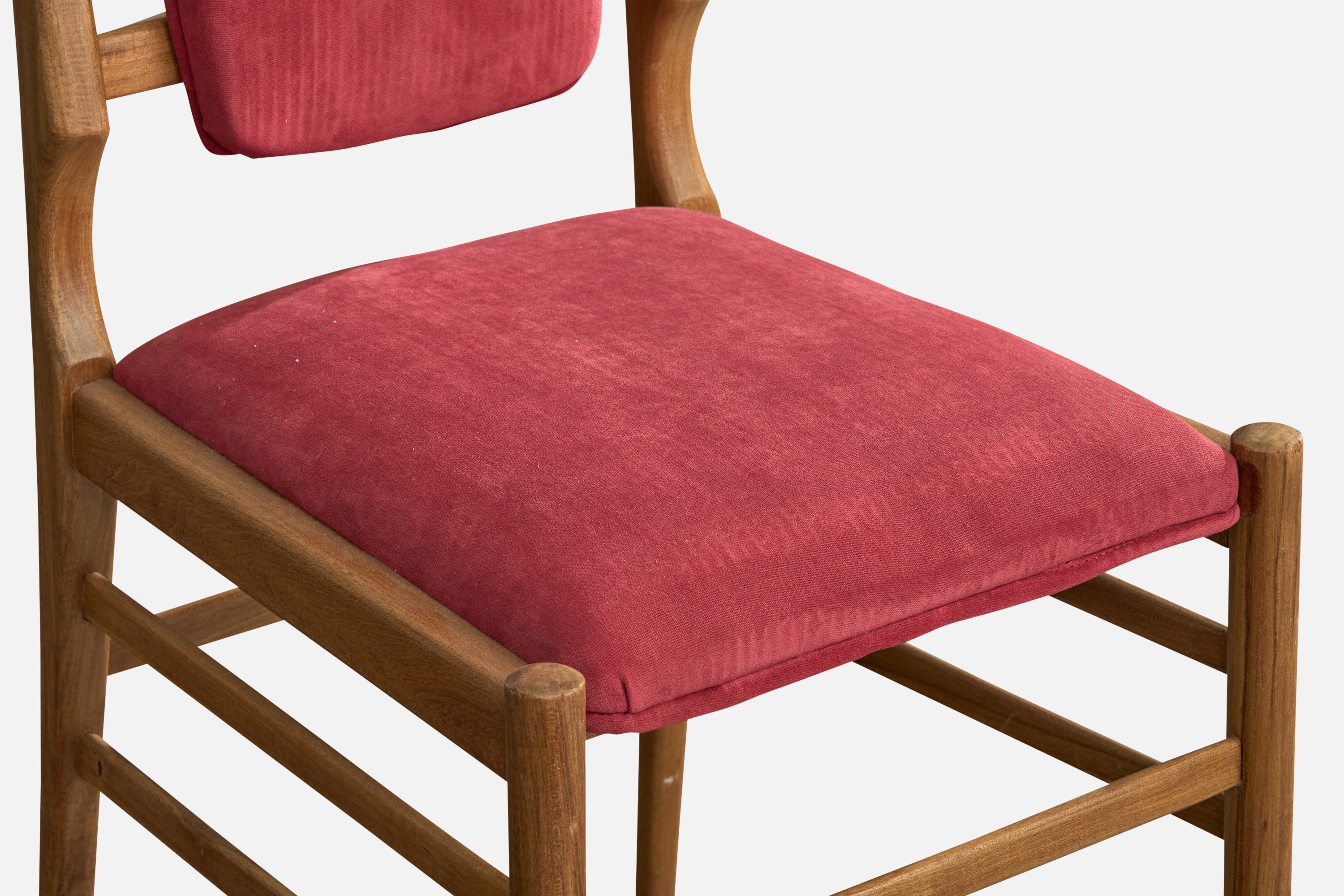 Italian Designer, Dining Room Chairs, Wood, Fabric, Italy, 1950s