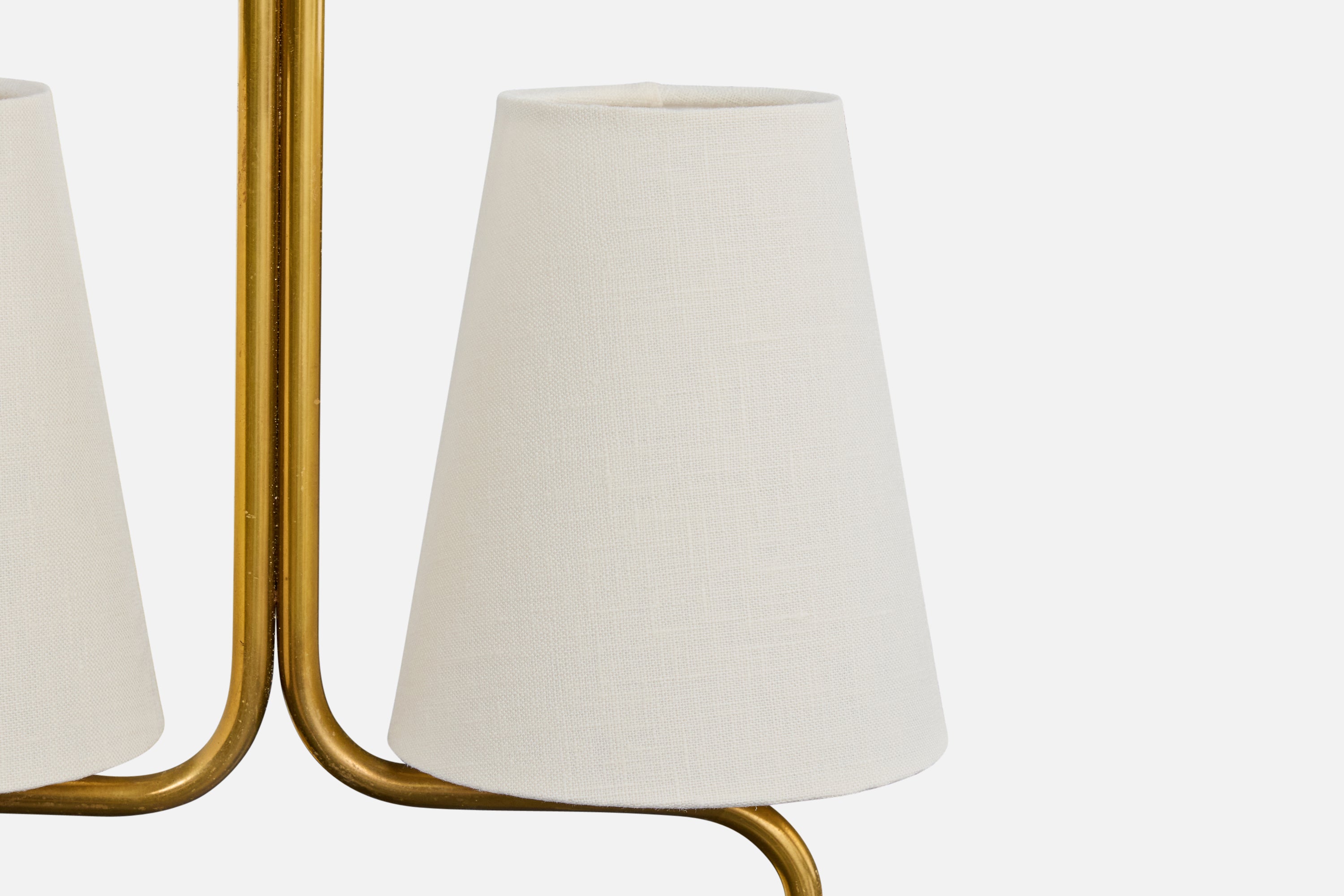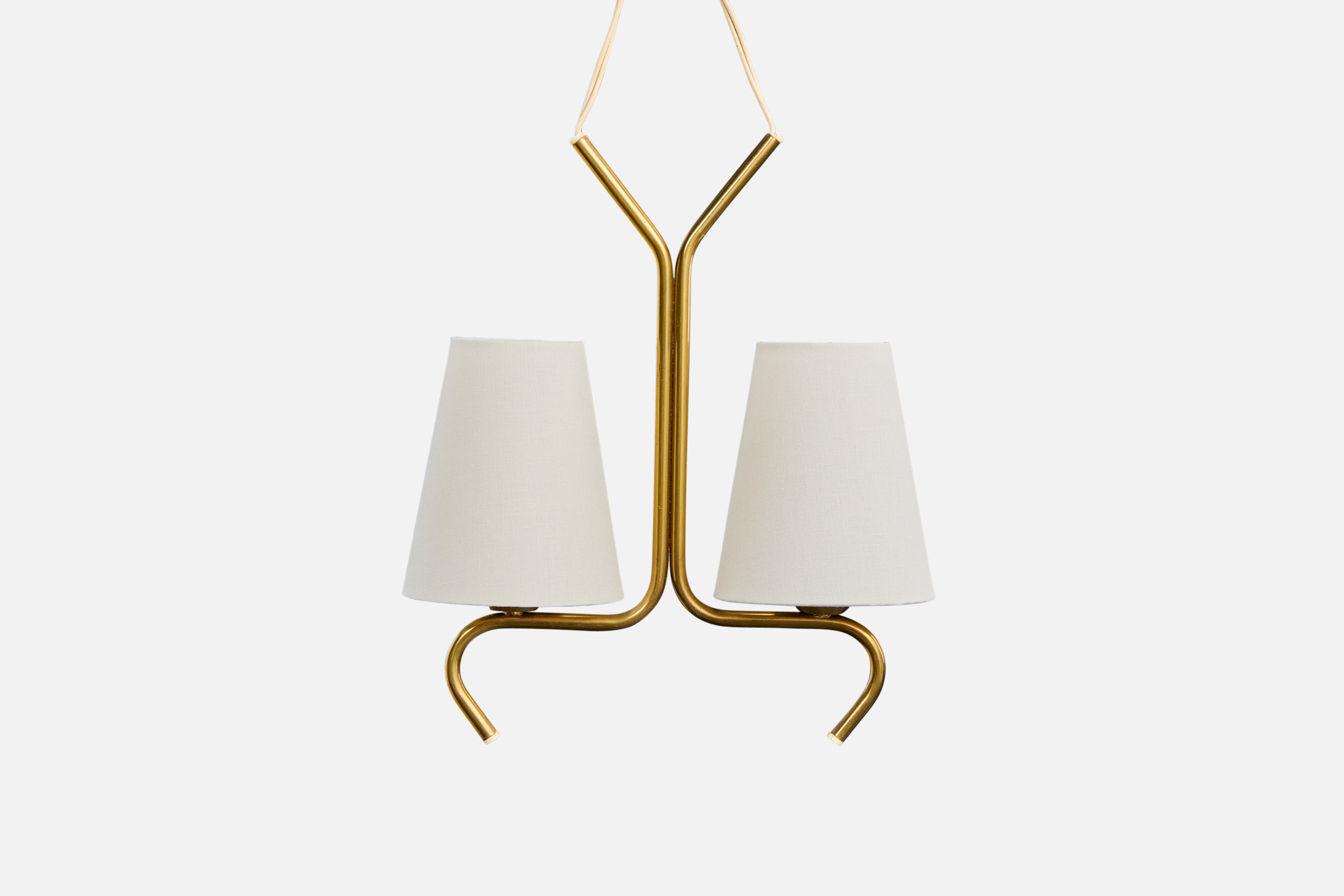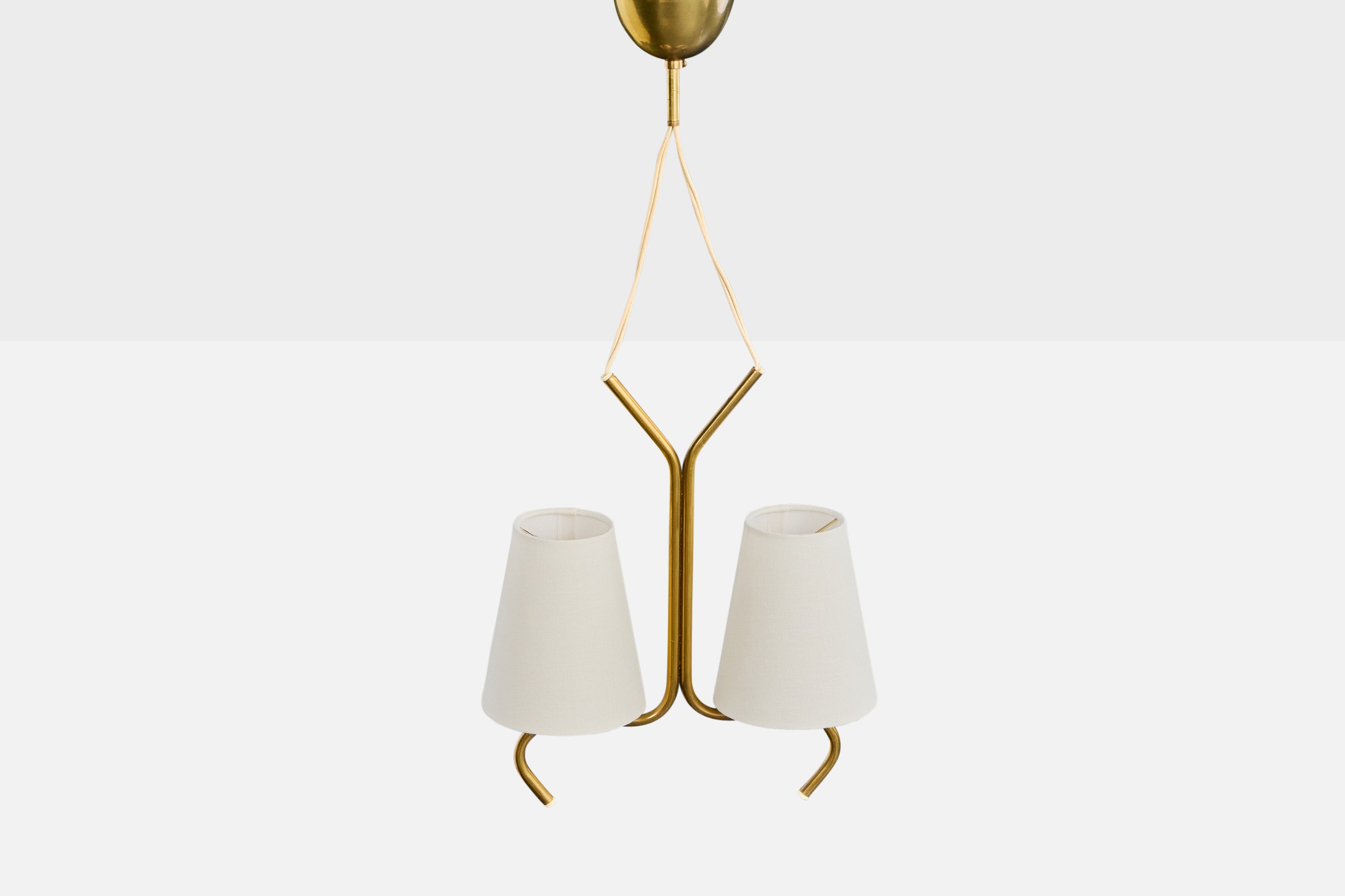 A brass and white fabric chandelier designed and produced in Sweden, c. 1950s.