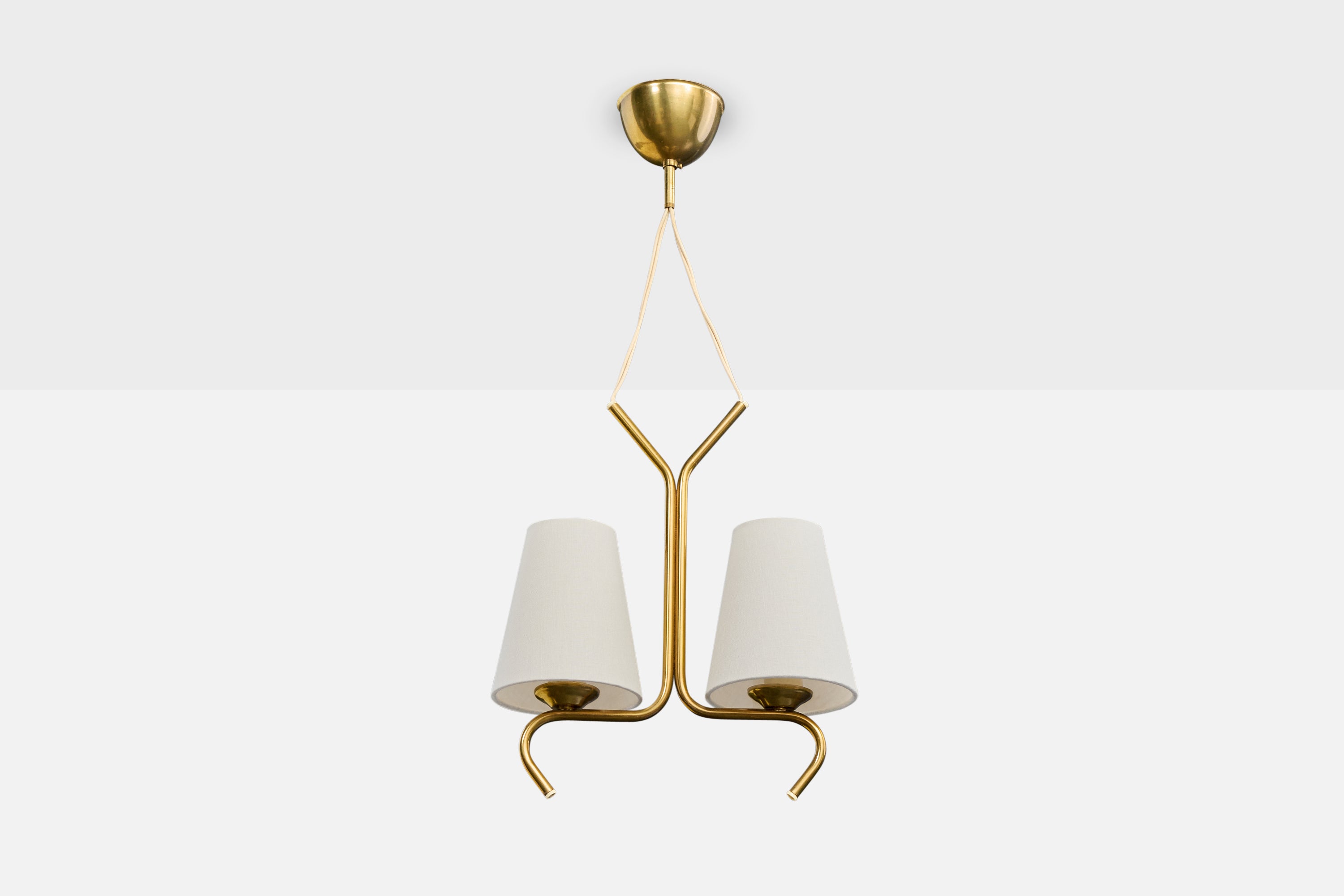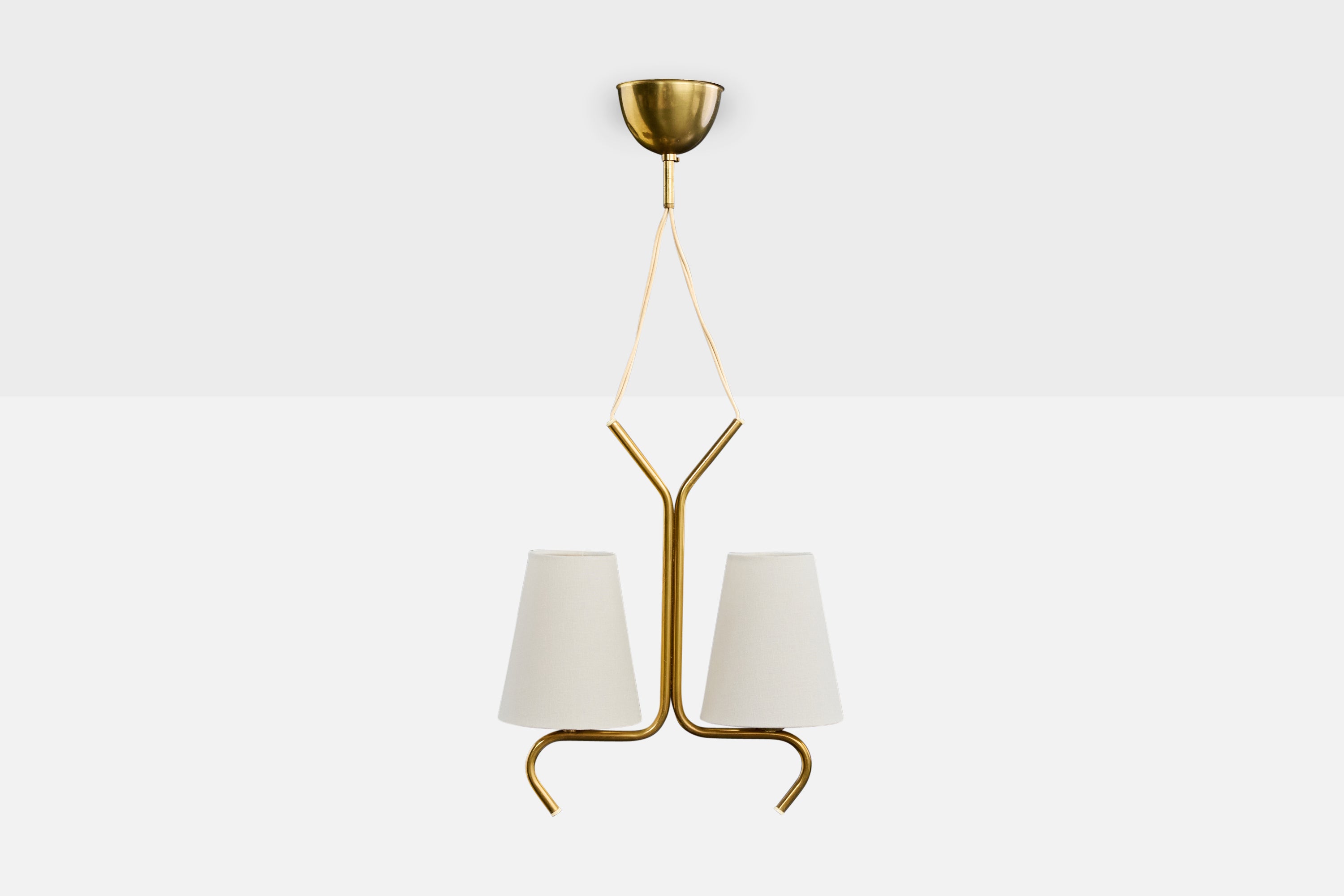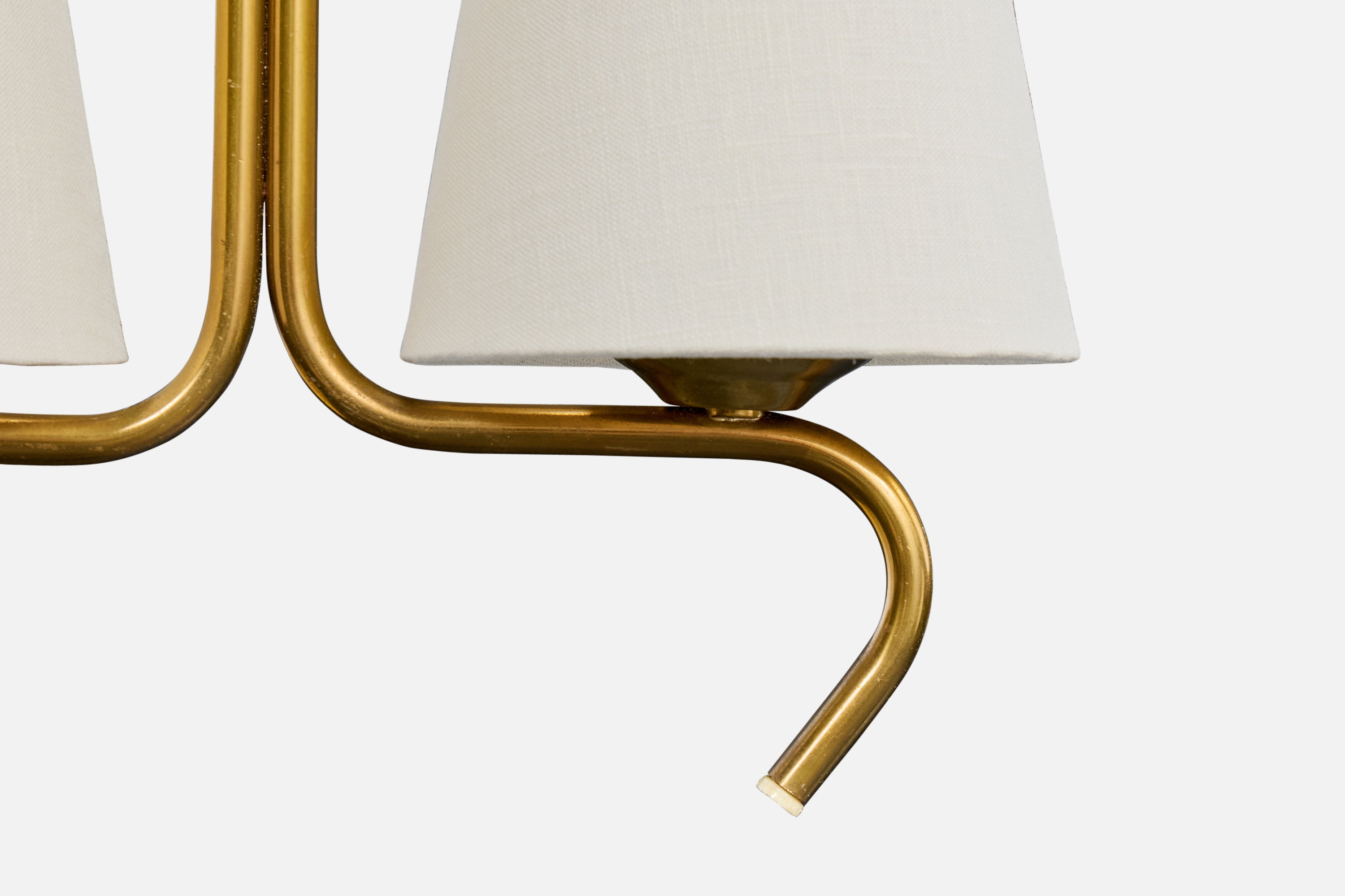 A brass and white fabric chandelier designed and produced in Sweden, c. 1950s.