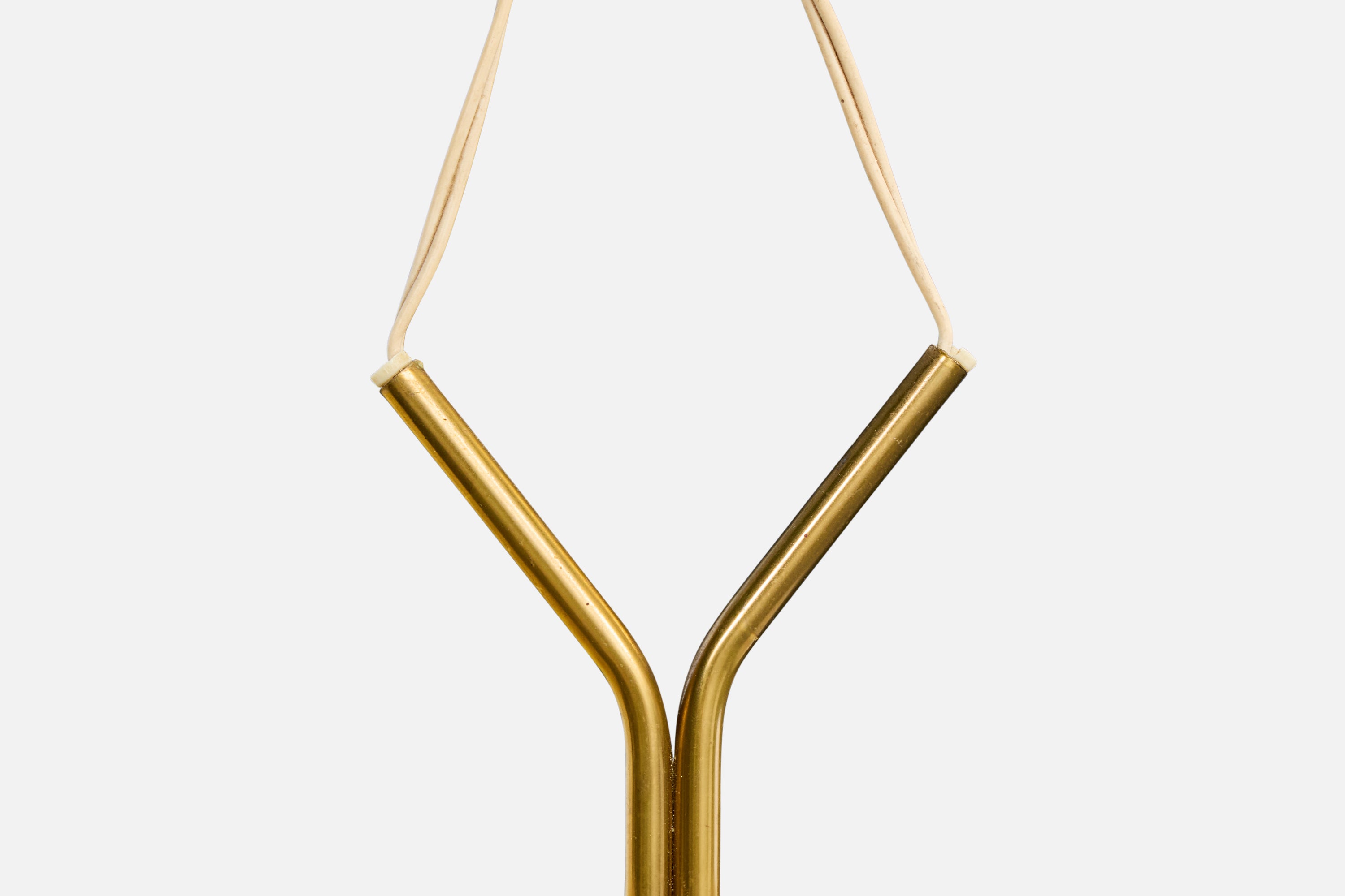 Swedish Designer, Chandelier, Brass, Fabric, Sweden, 1950s