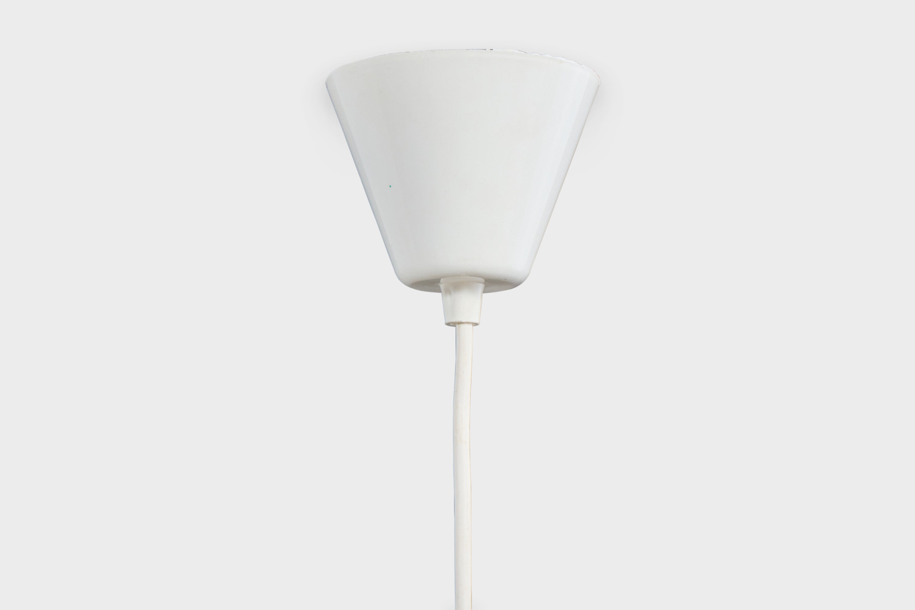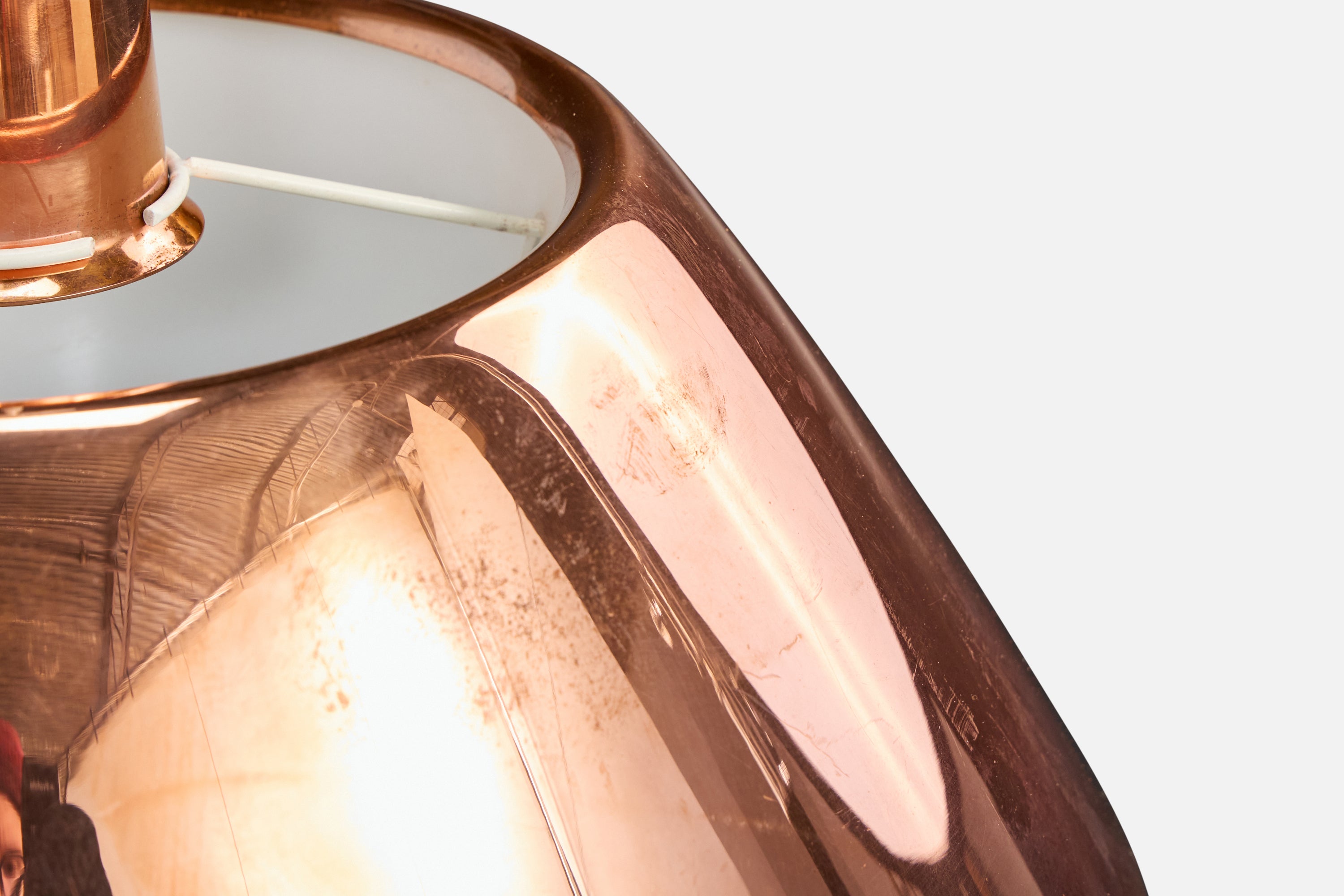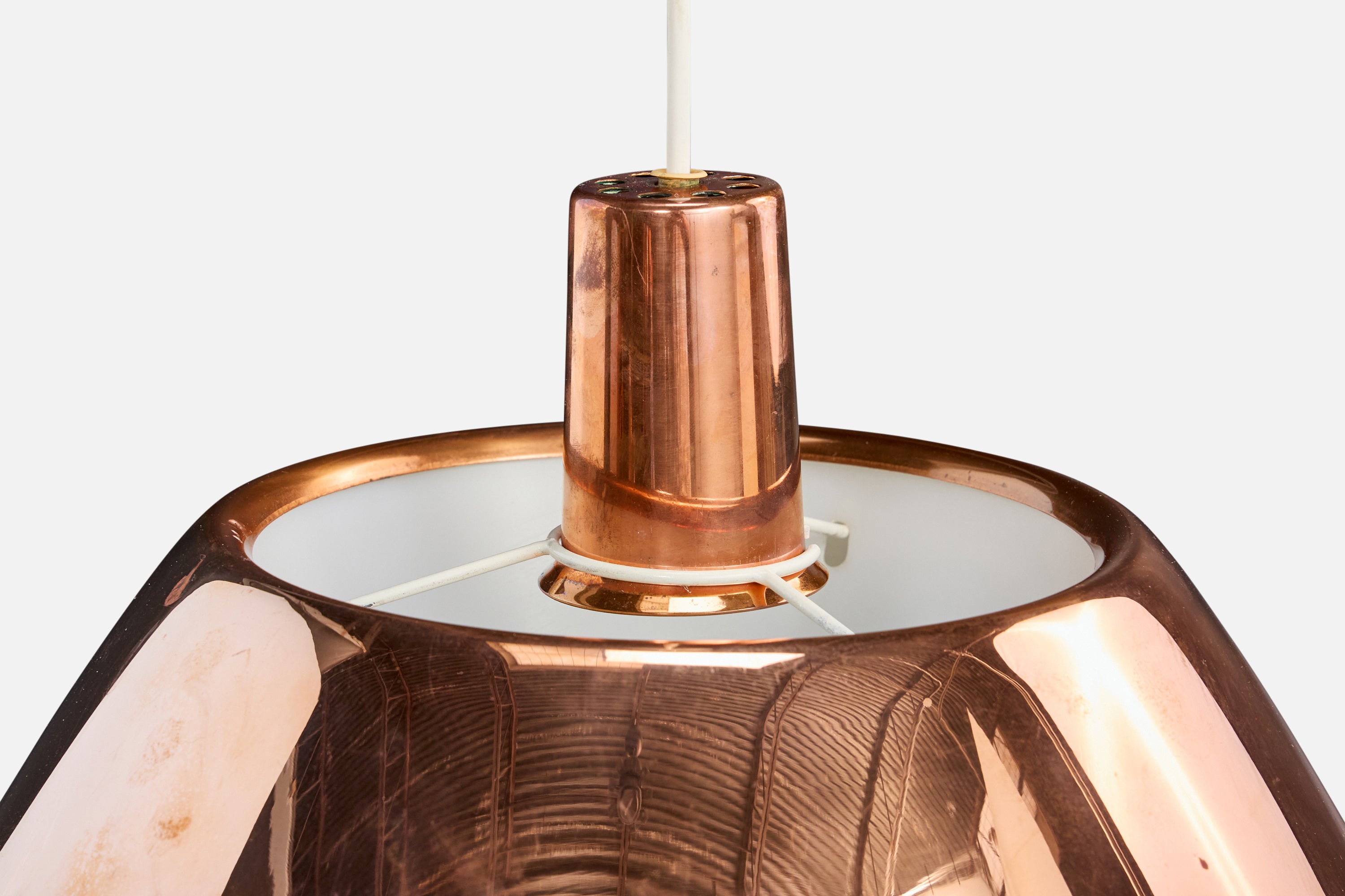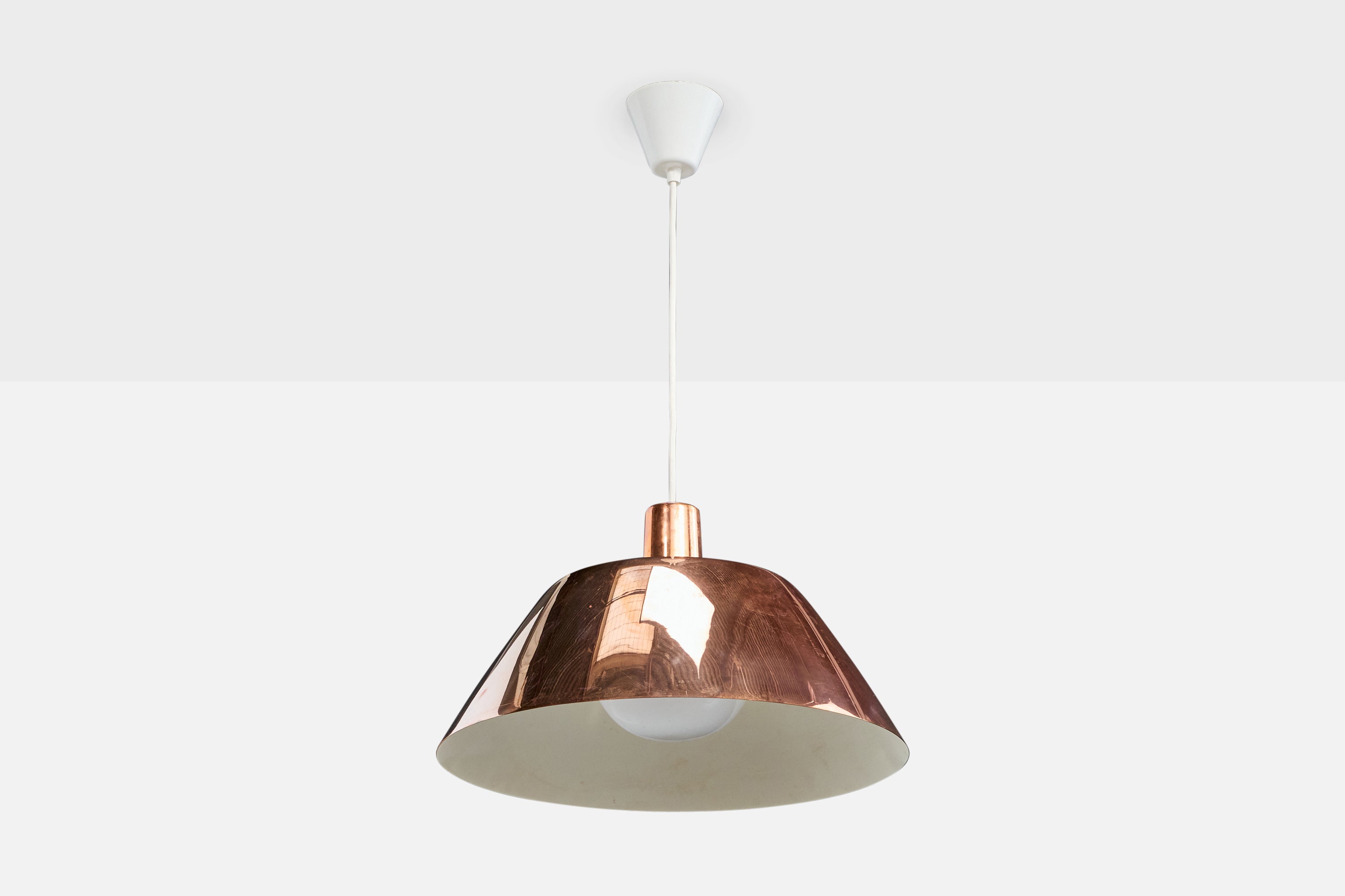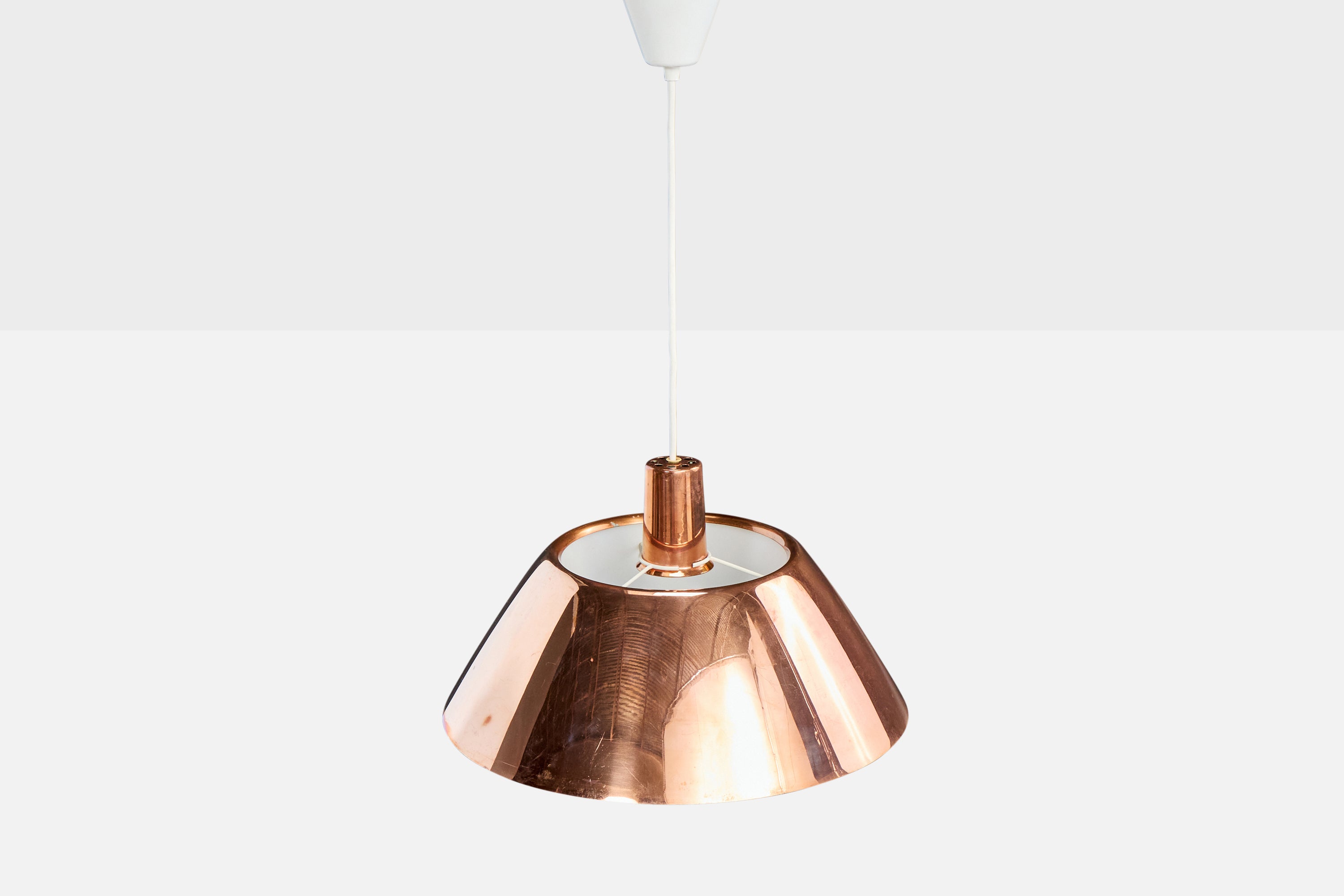 A copper and white acrylic pendant light designed by Lisa Johansson-Pape and produced by Orno, Finland, c. 1950s.