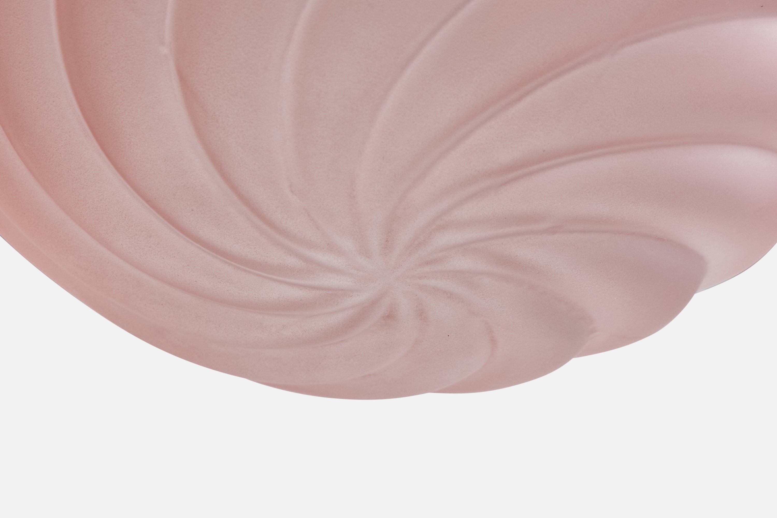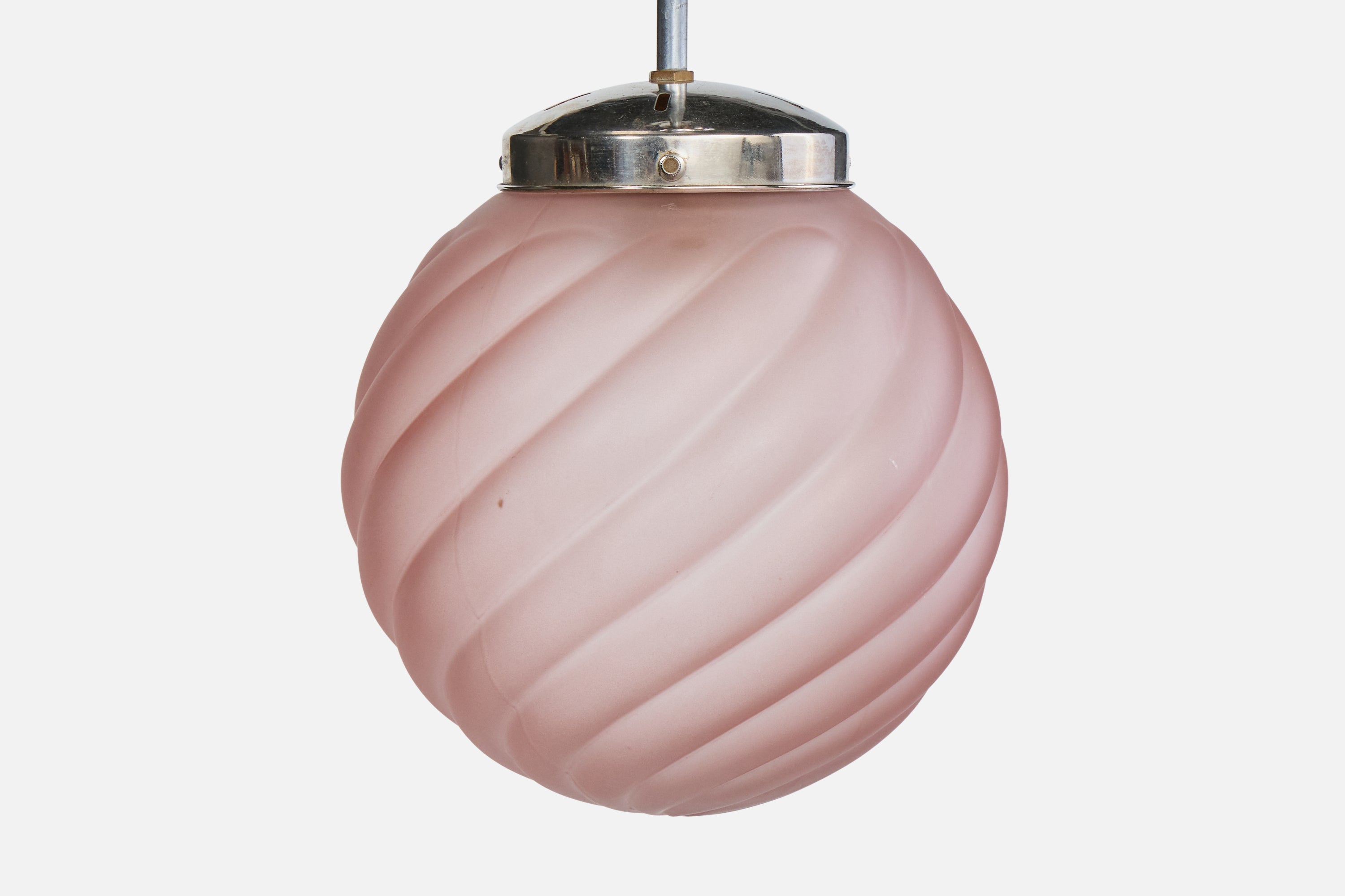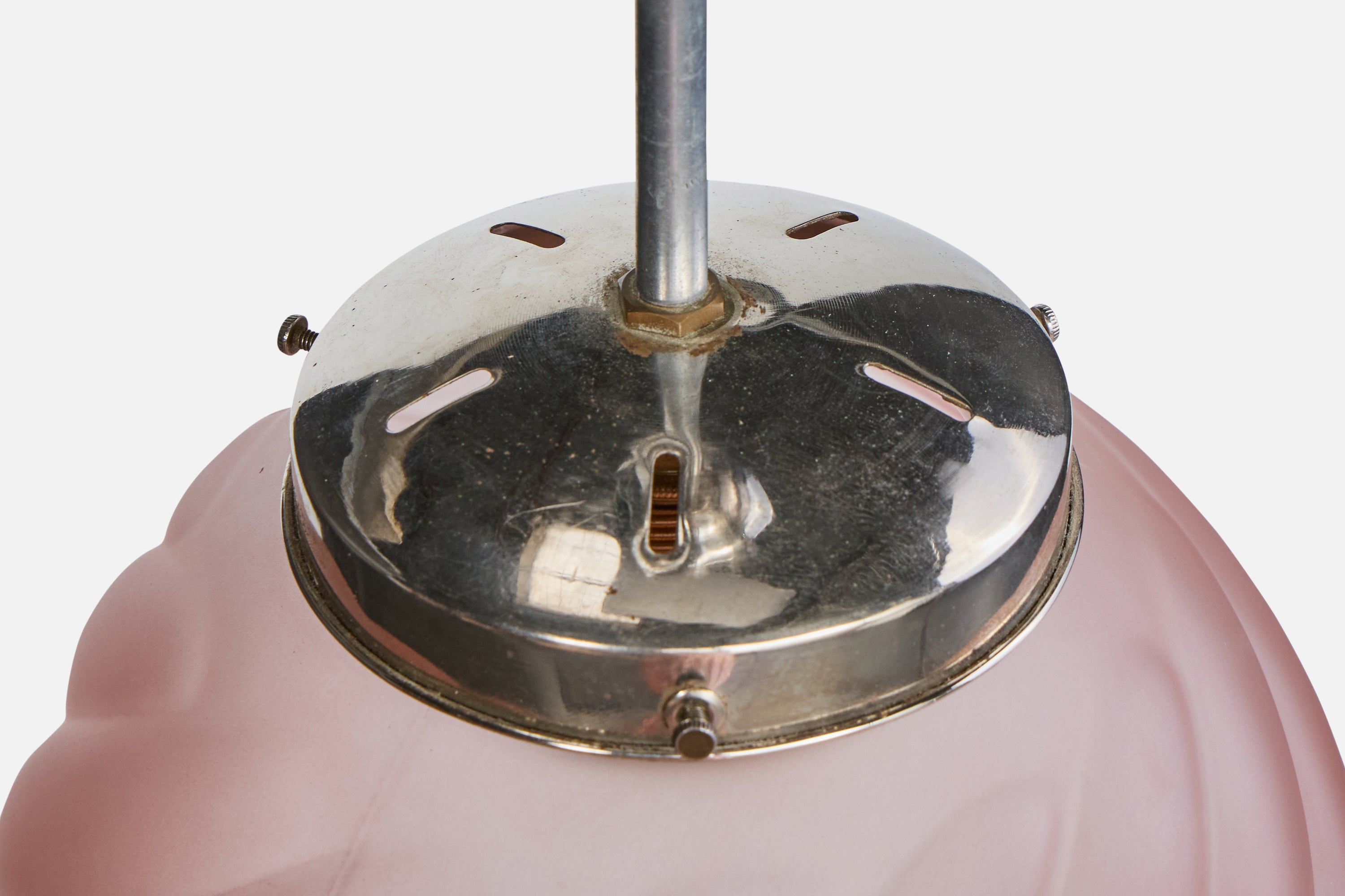 A chrome-plated metal and pink glass pendant light likely designed and produced in Sweden, c. 1930s.