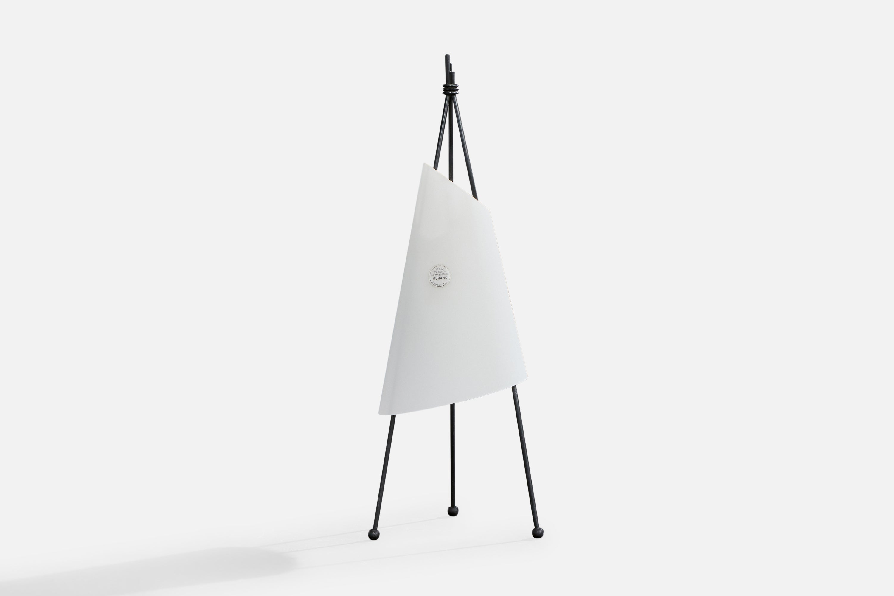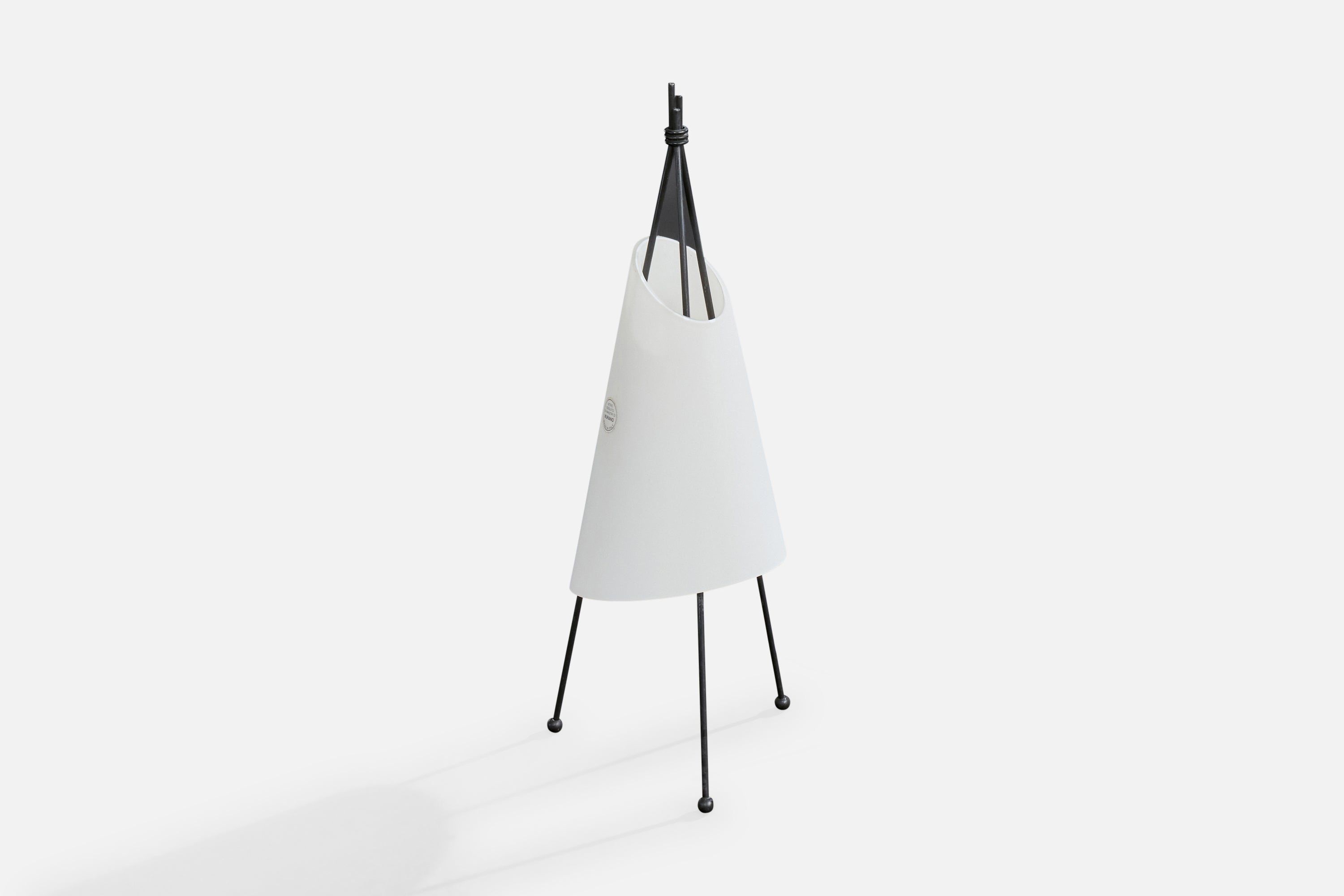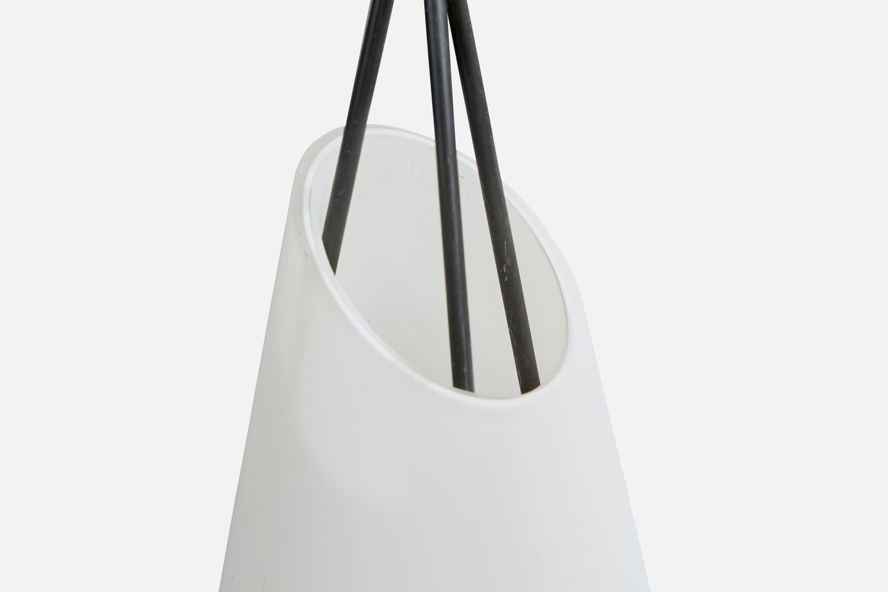 A black-lacquered metal and white opaline glass table lamp designed and produced in Italy, c. 1970s.