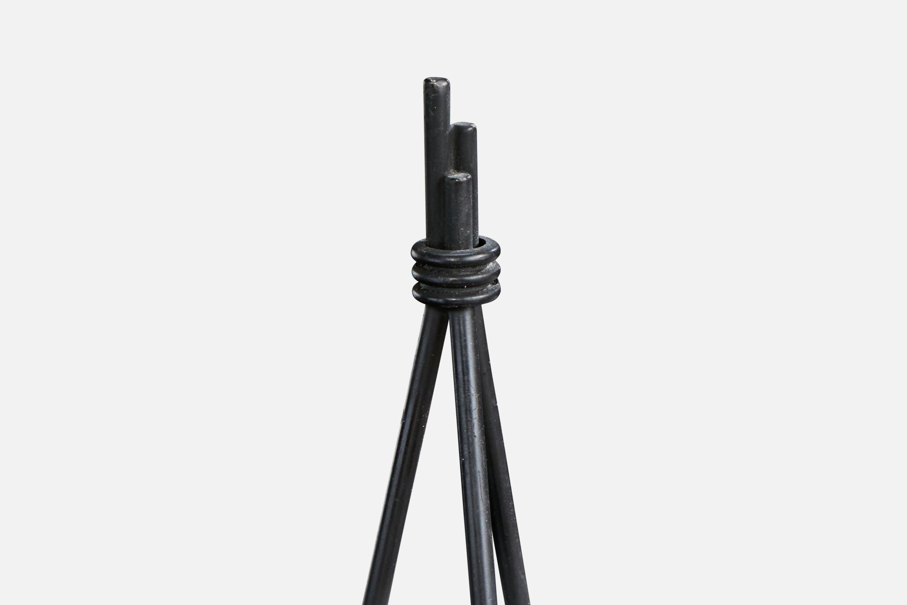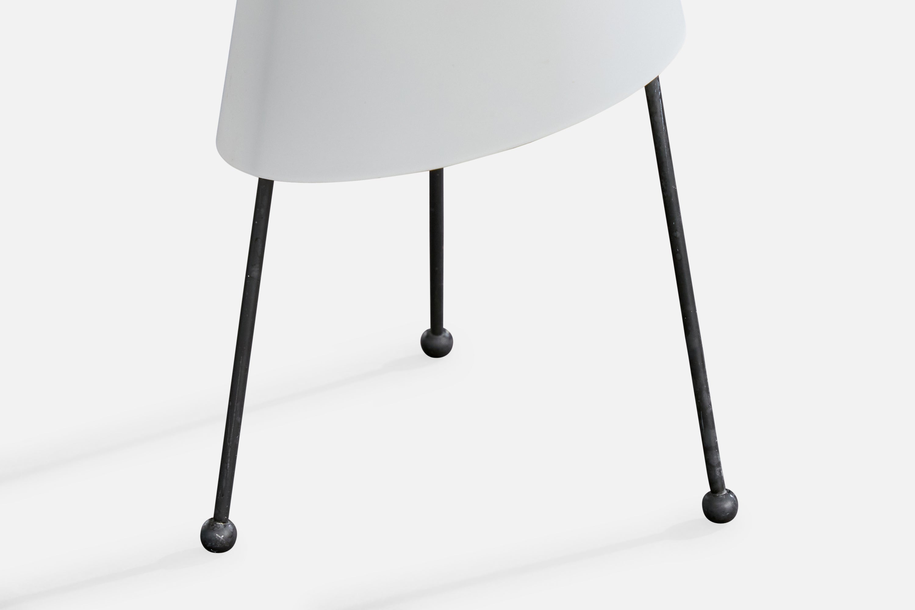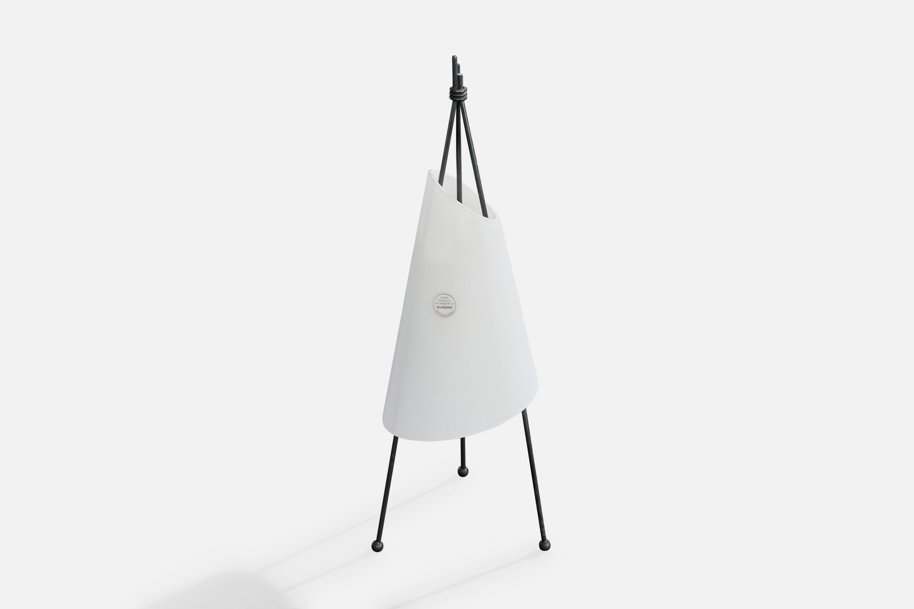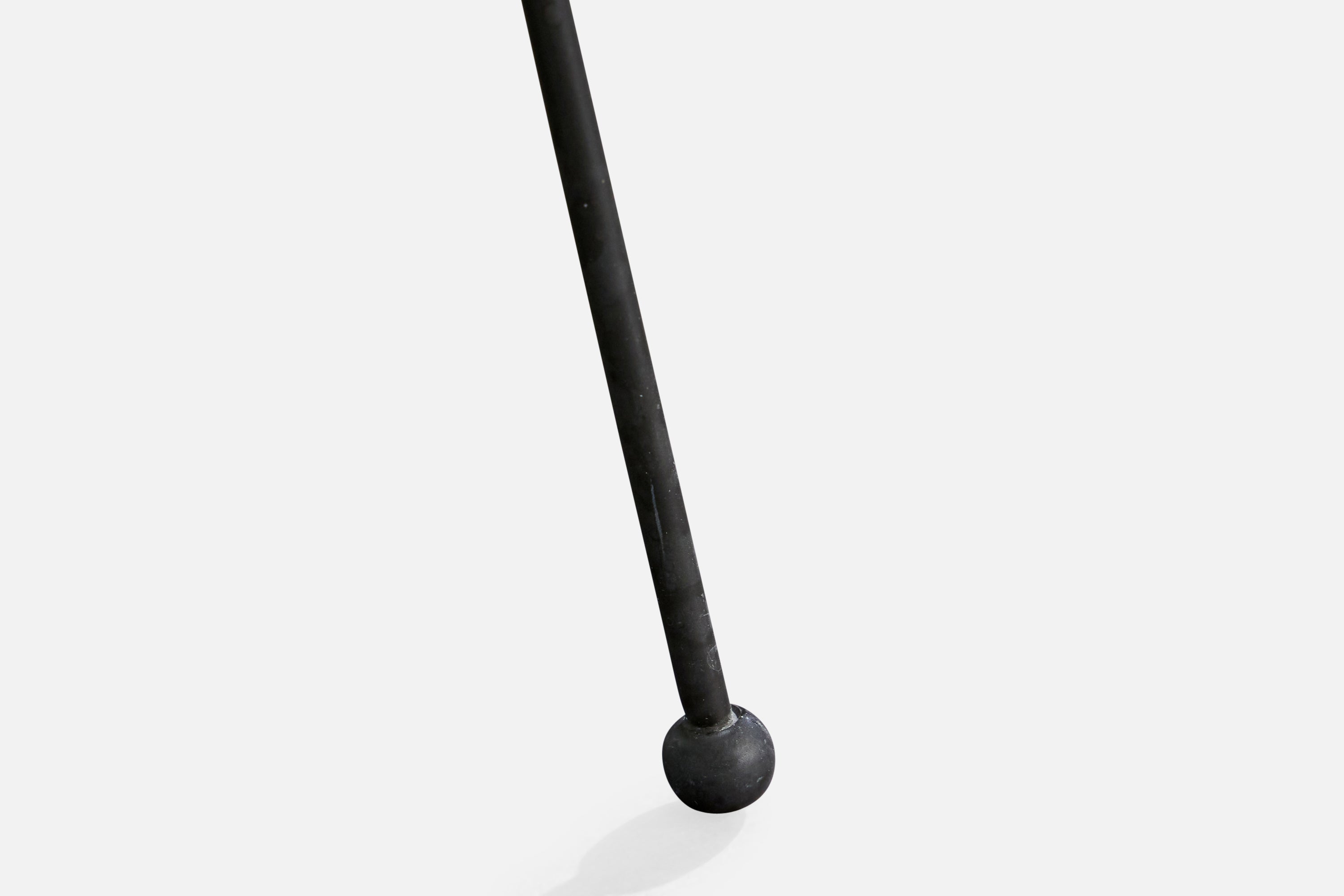 A black-lacquered metal and white opaline glass table lamp designed and produced in Italy, c. 1970s.