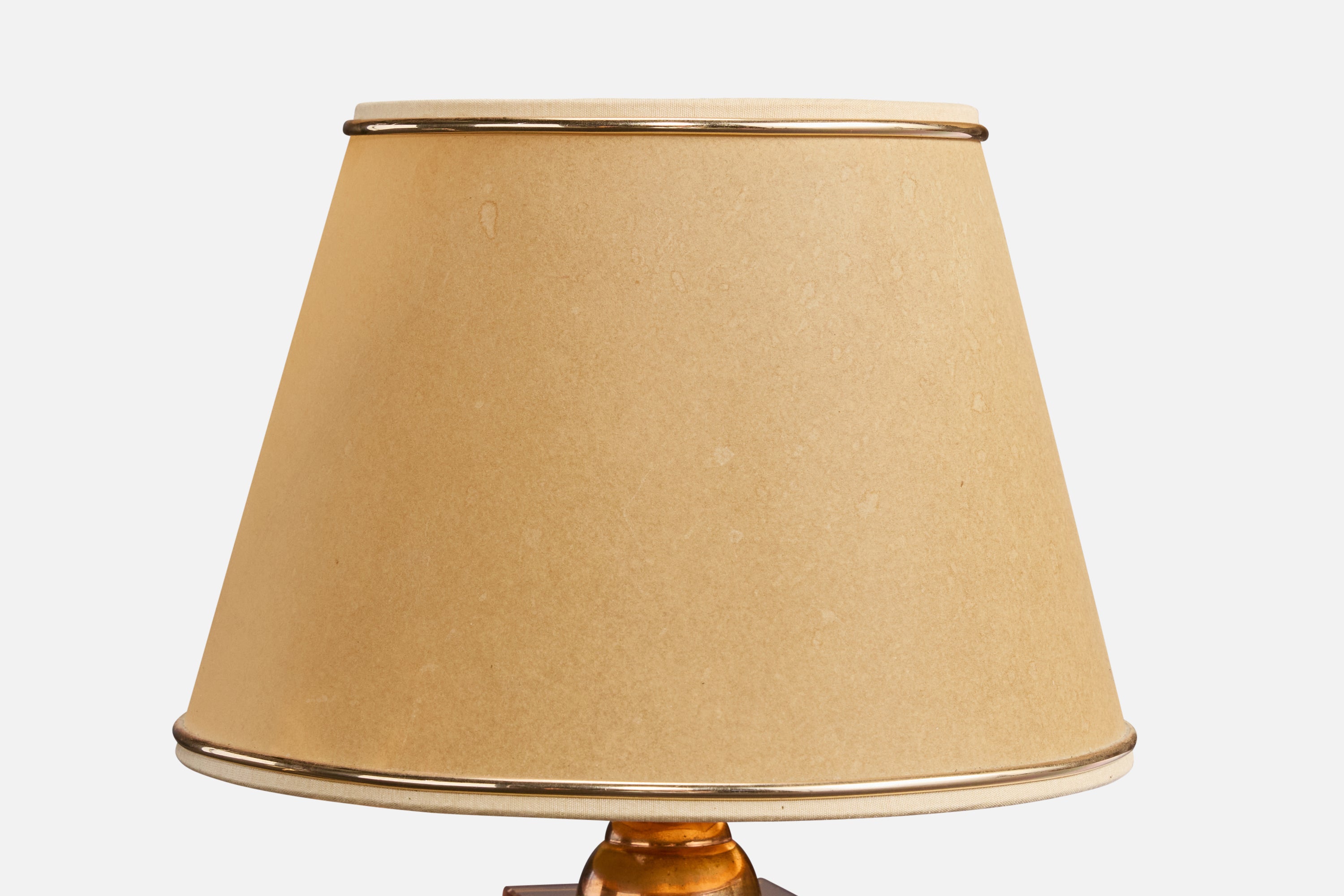 French Designer, Table Lamp, Copper, Glass, Paper, France, 1950s
