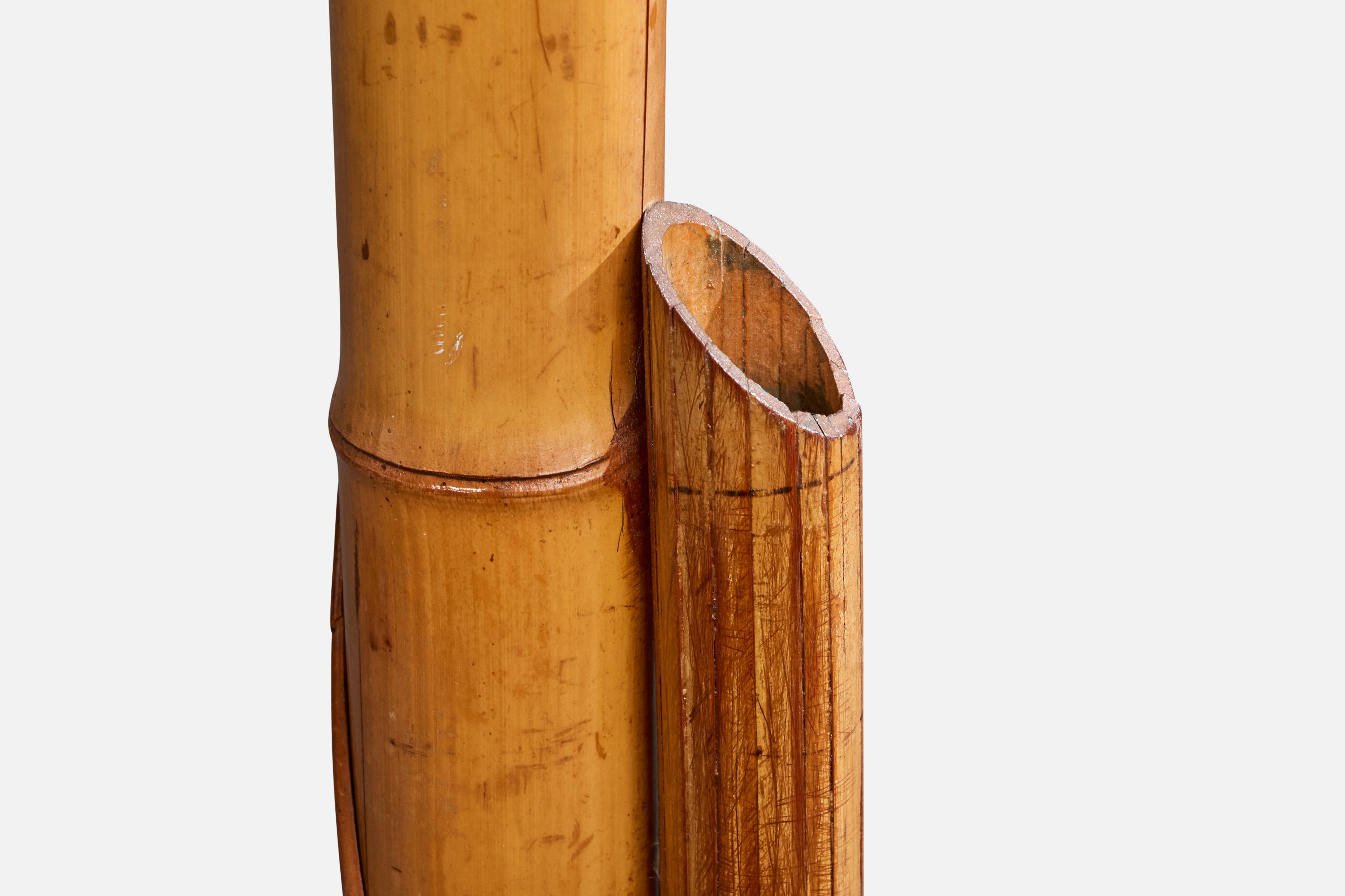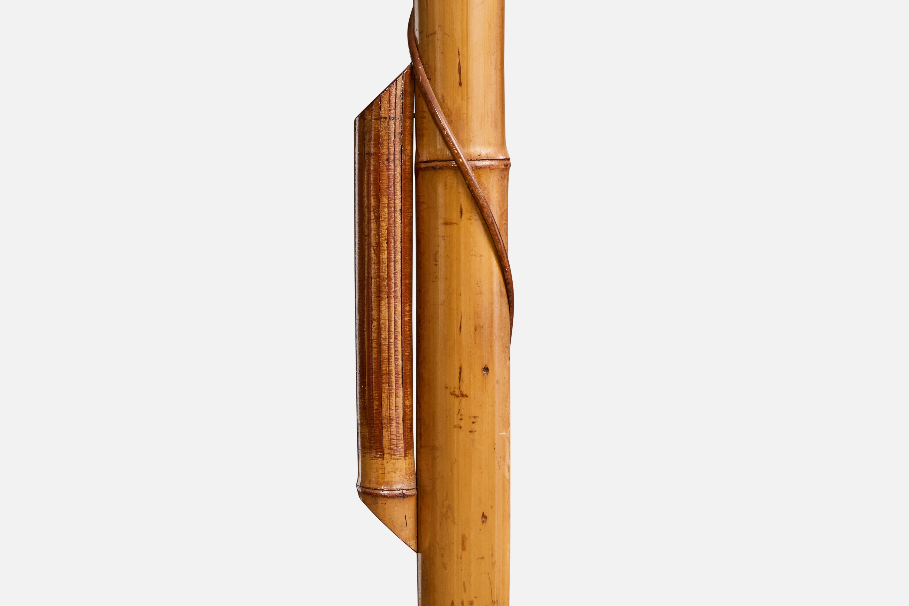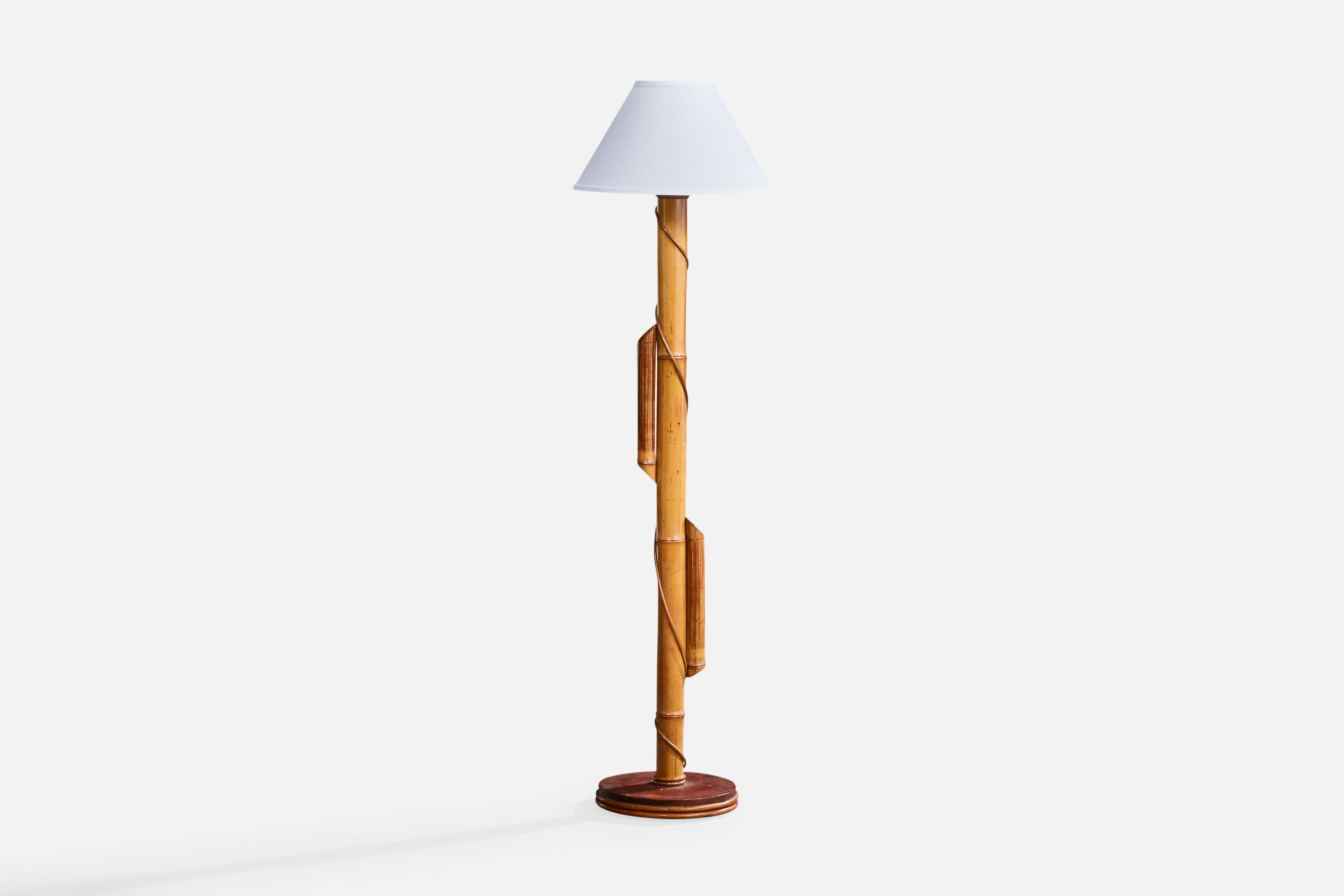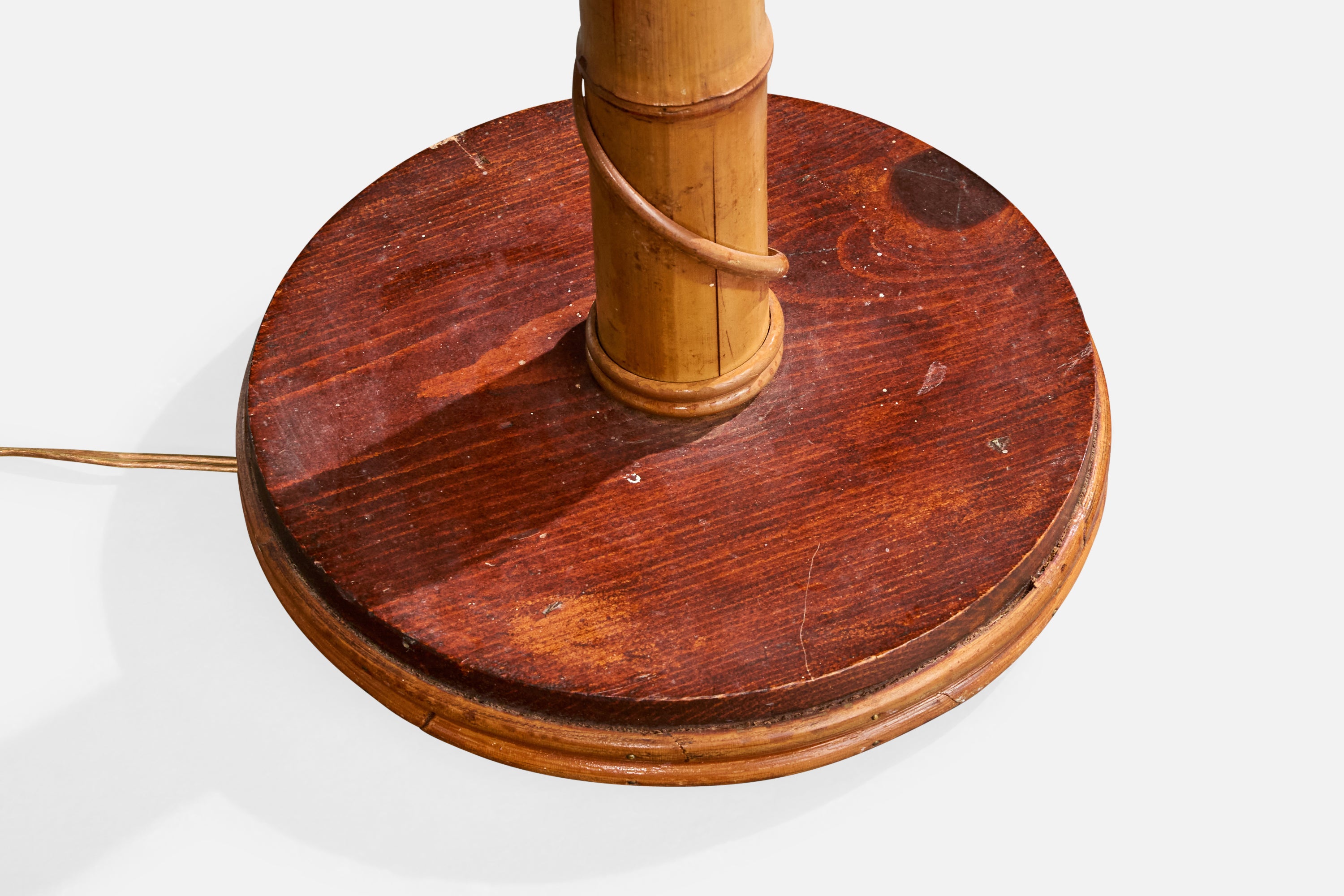 American Designer, Floor Lamp, Bamboo, Pine, Rattan, Fabric, USA, 1950s
