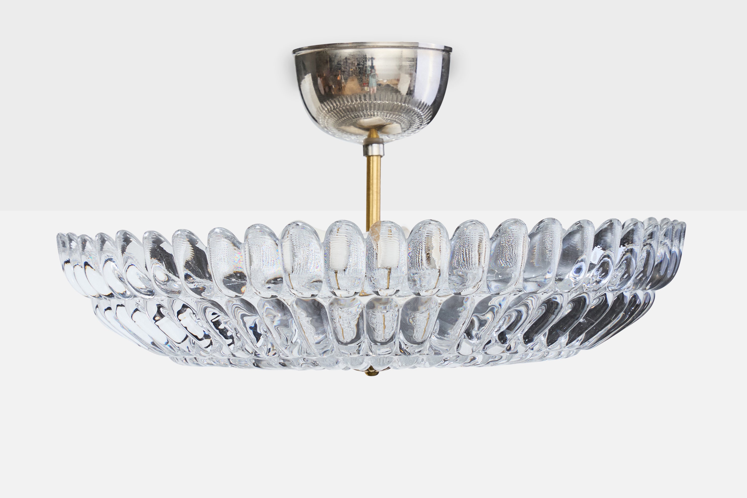 Carl Fagerlund, Pendant Light, Glass, Brass, Metal, Sweden, 1950s