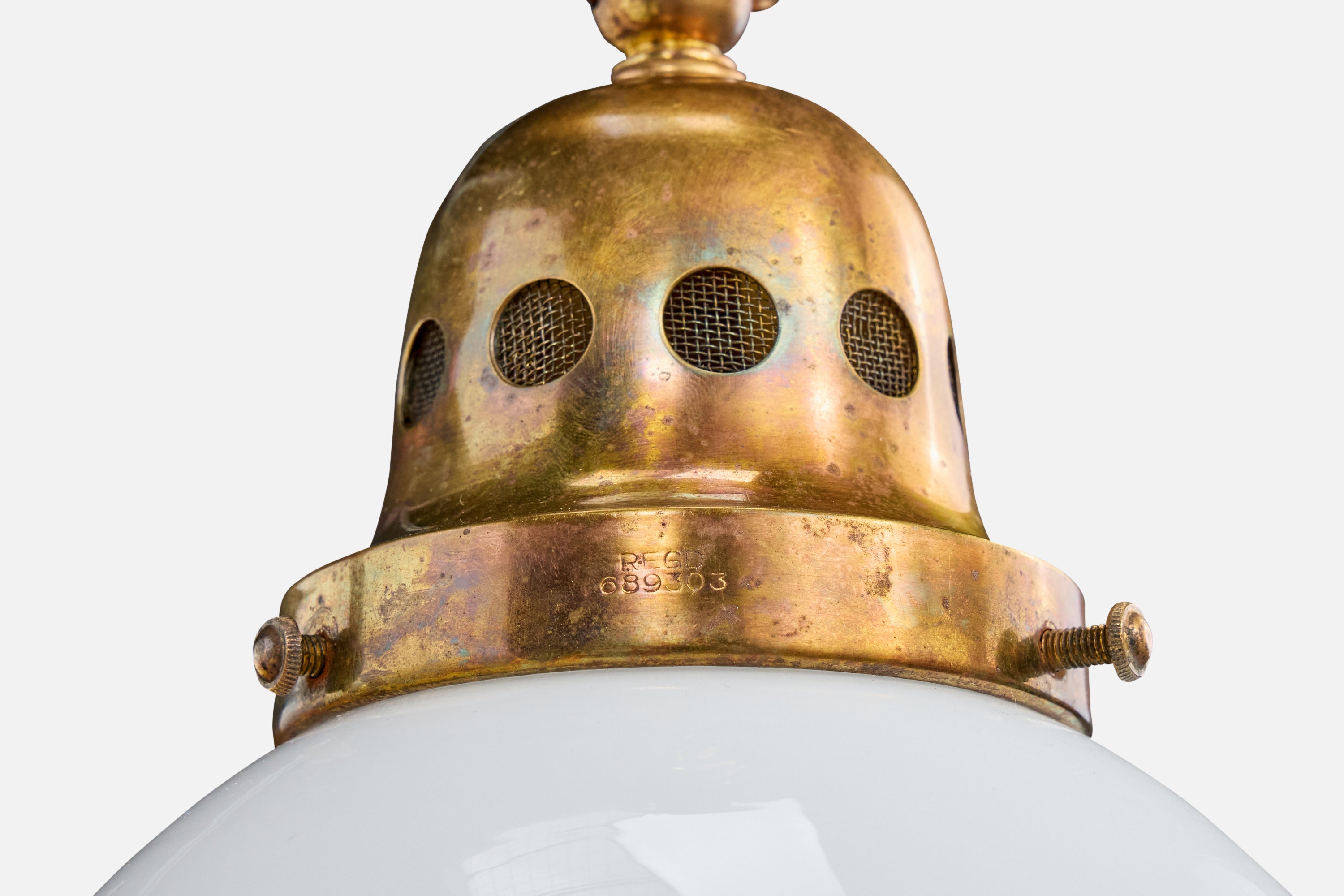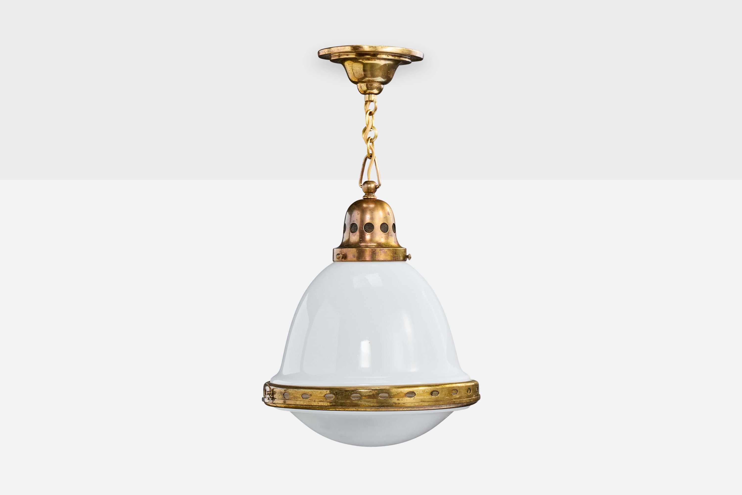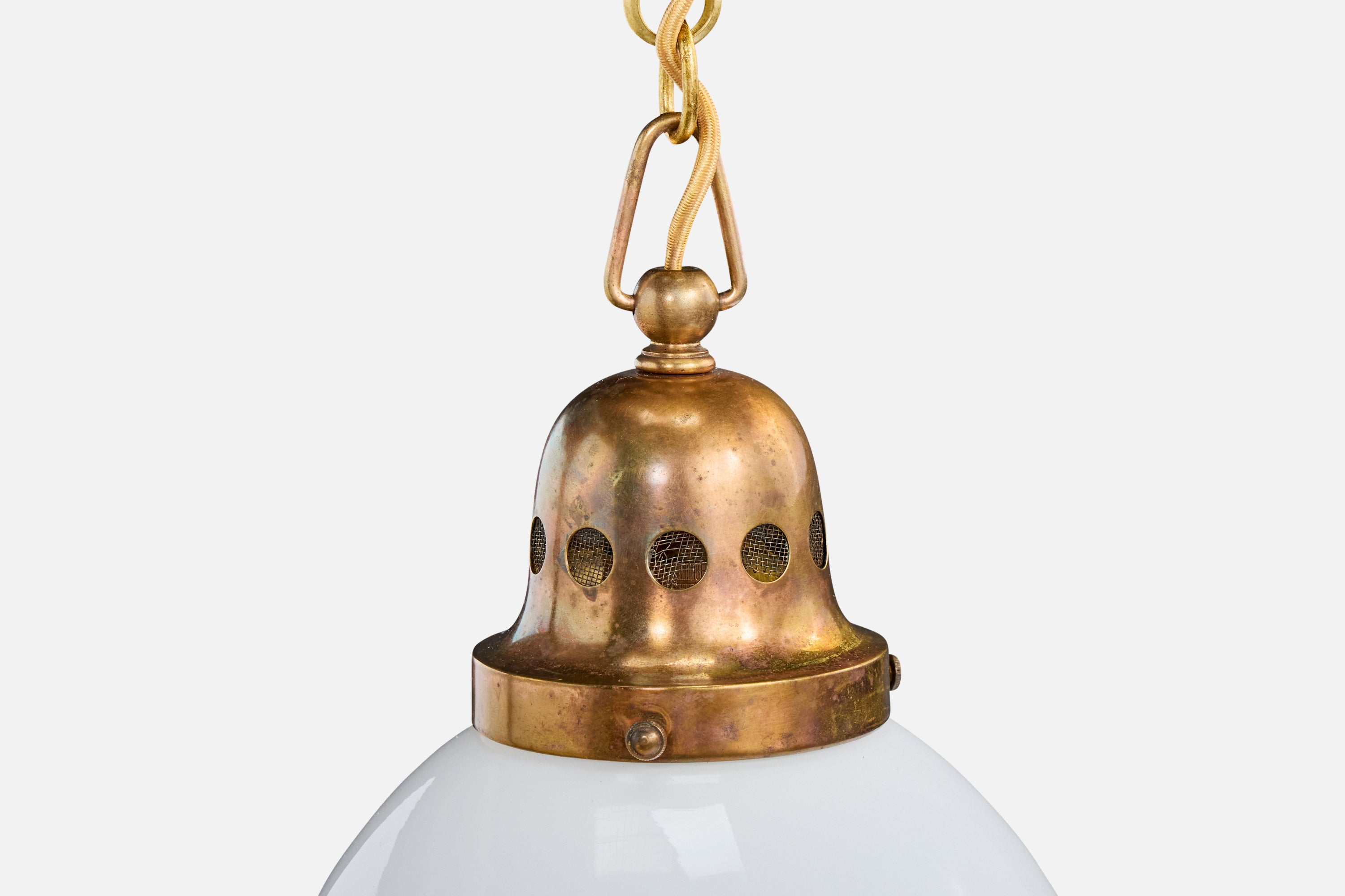 A brass and white opaline glass pendant light produced by Bag Turgi, Switzerland, c. 1920s.