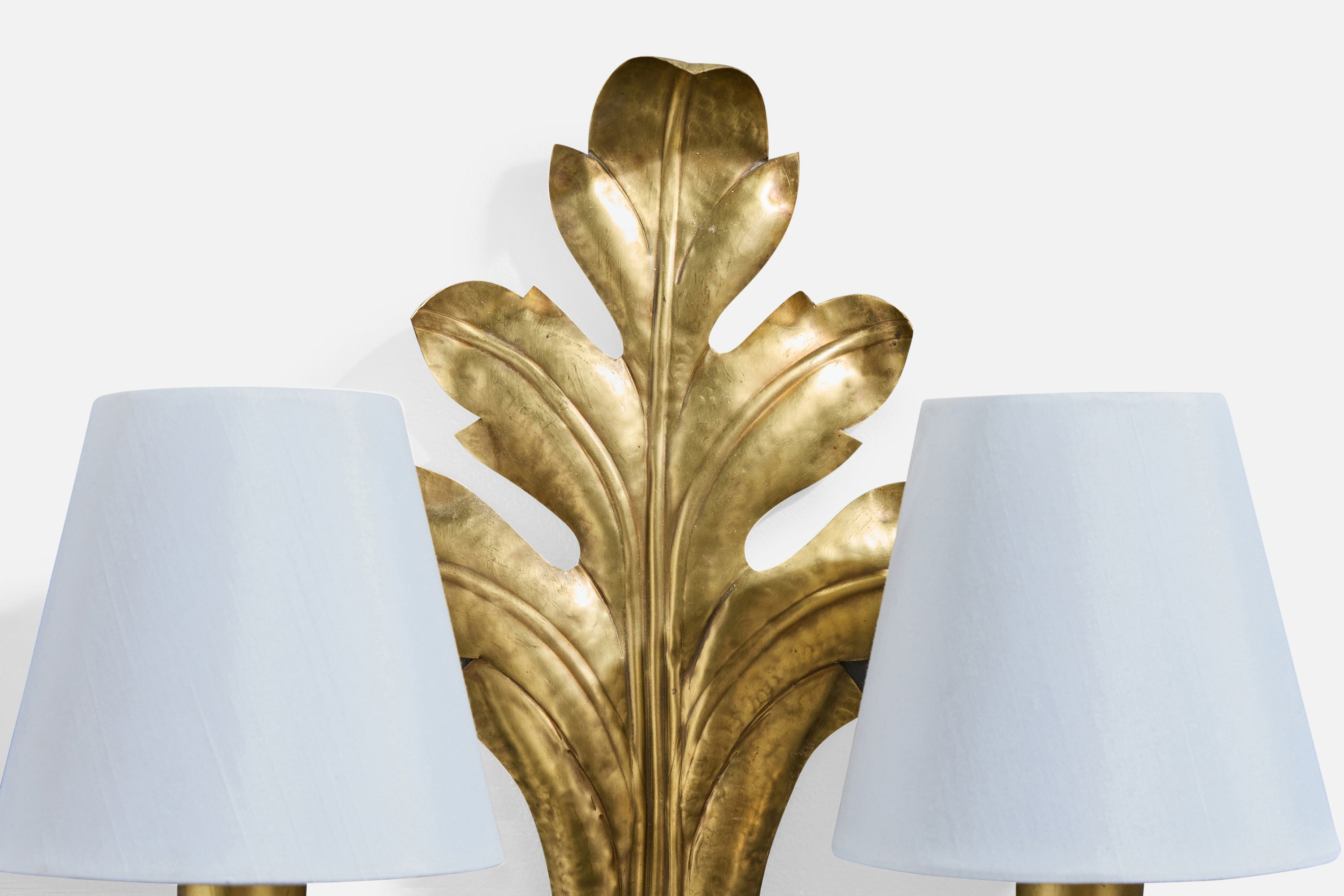 French Designer, Wall Lights, Brass, Fabric, France, 1960s