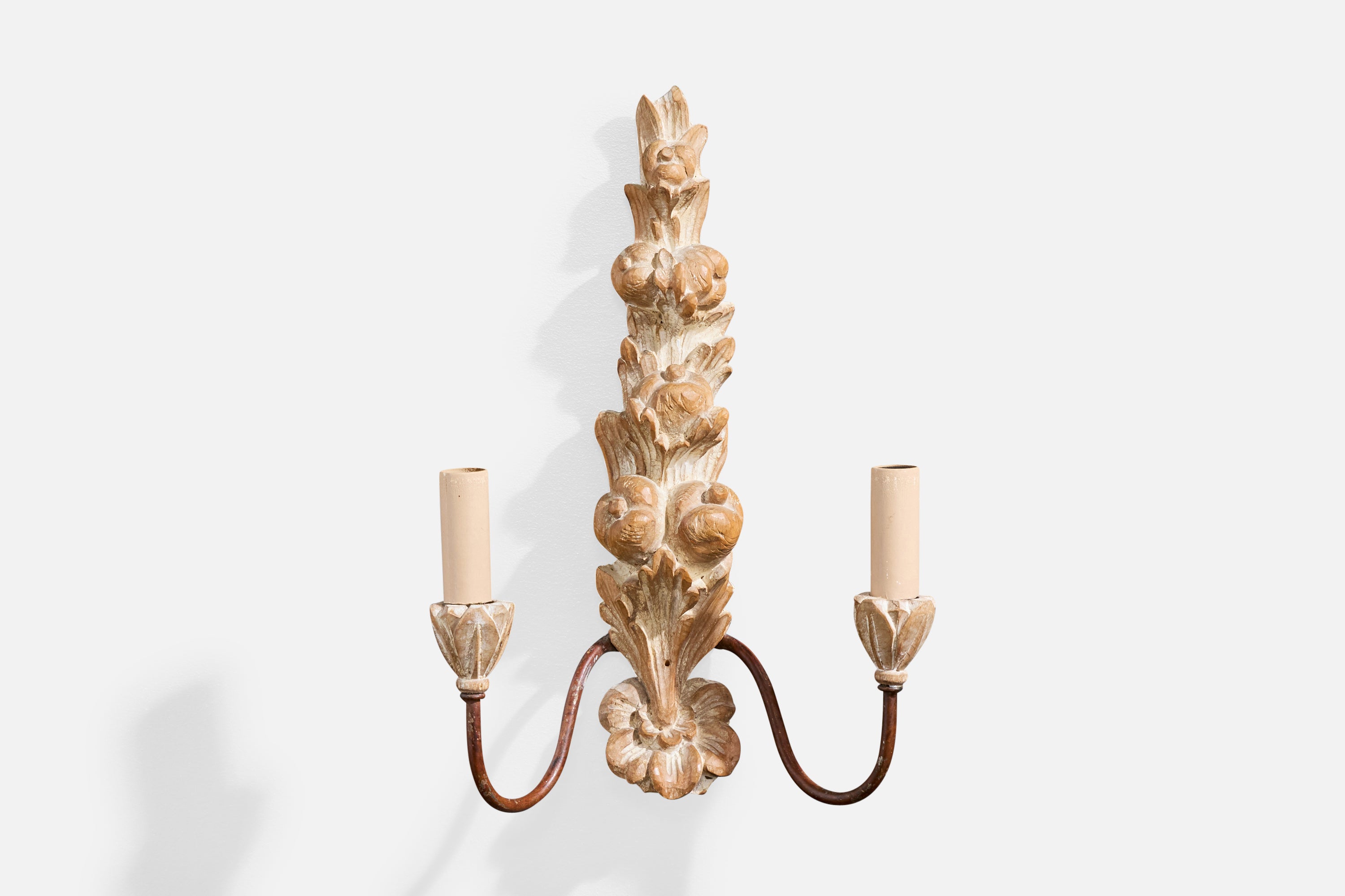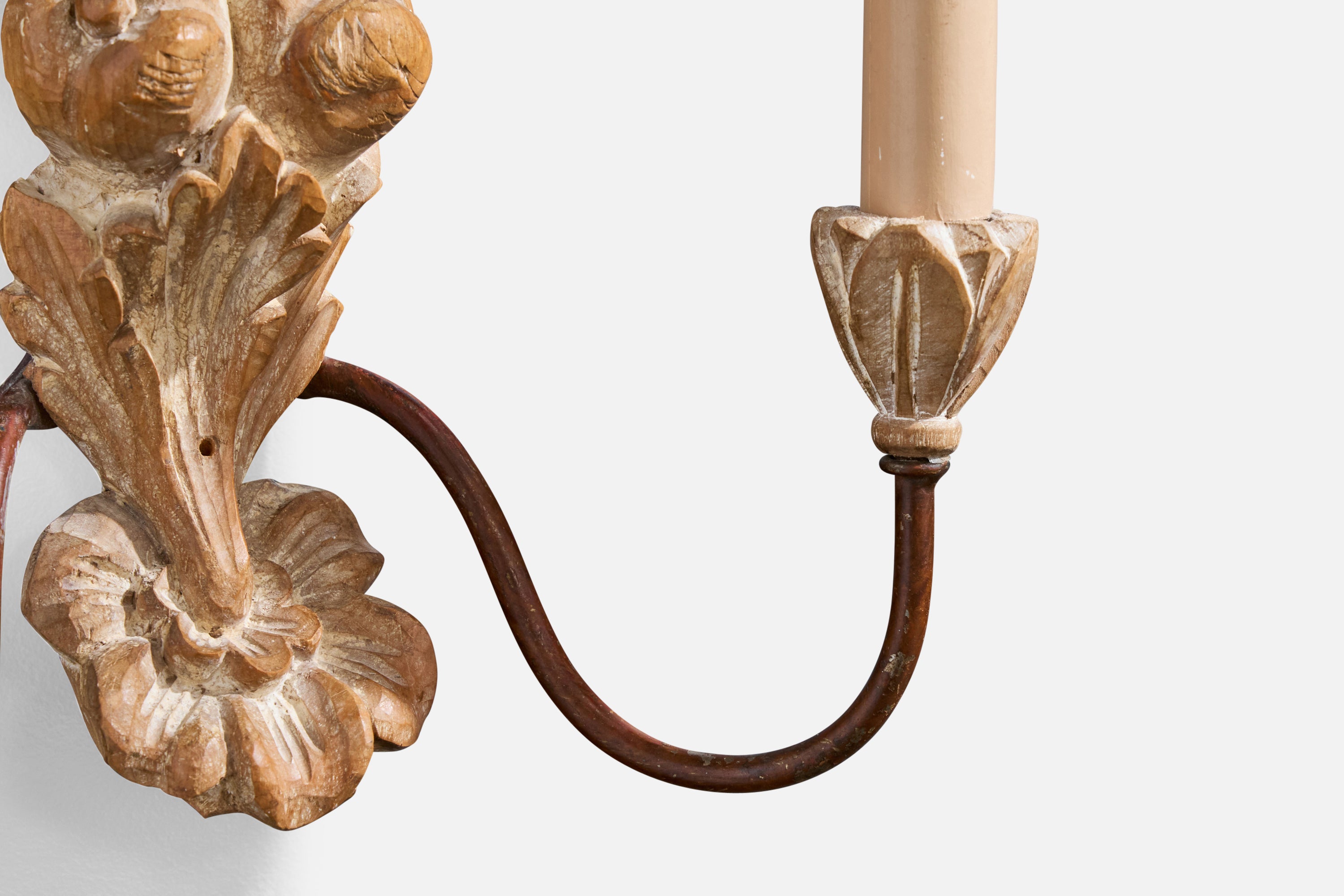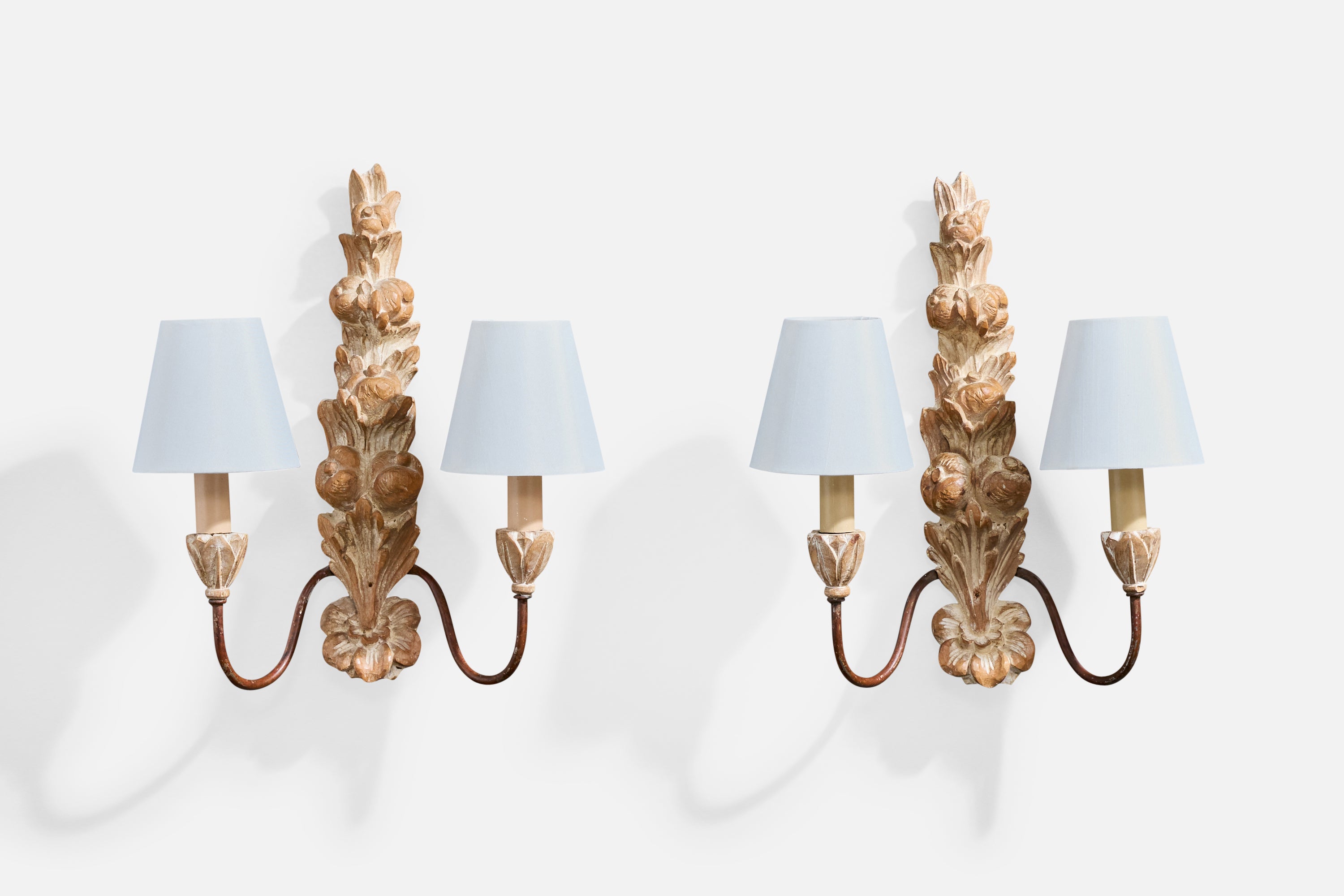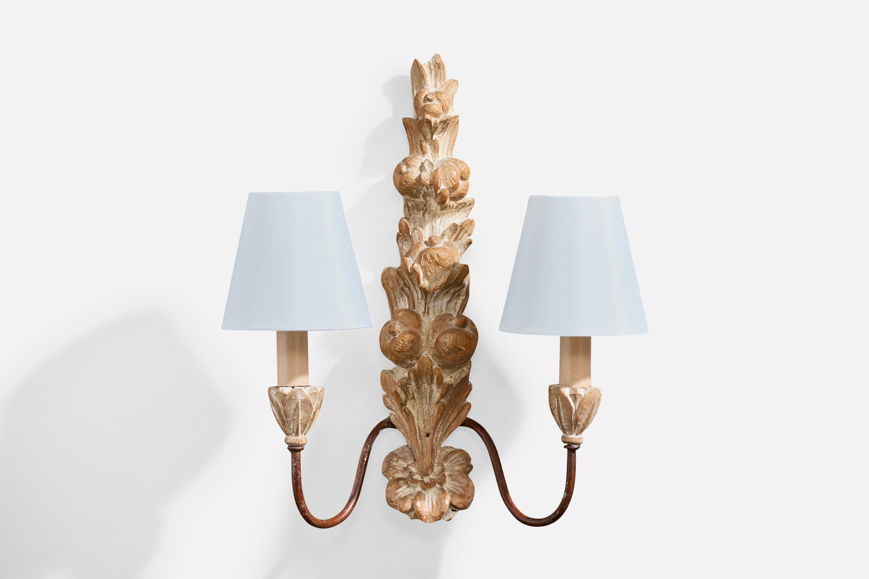 French Designer, Wall Lights, Wood, Metal, Fabric, France, 1950s