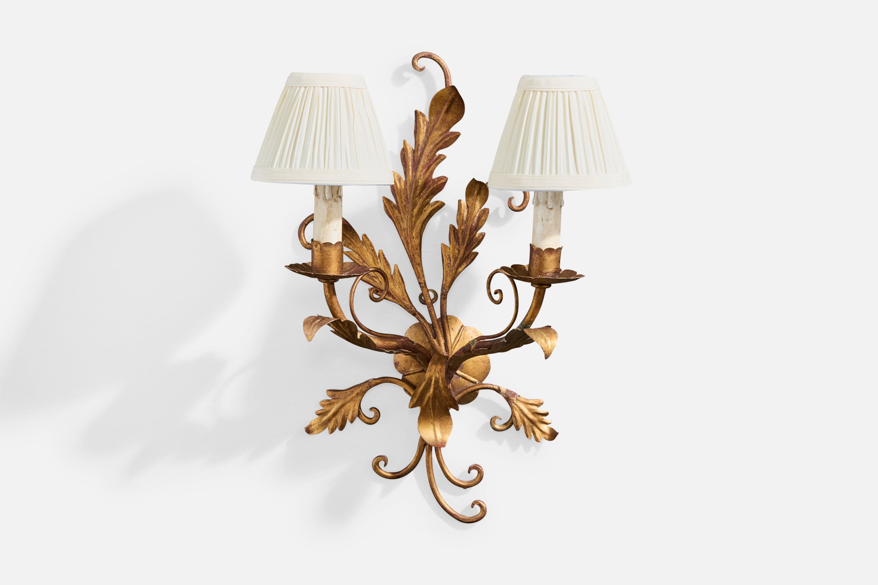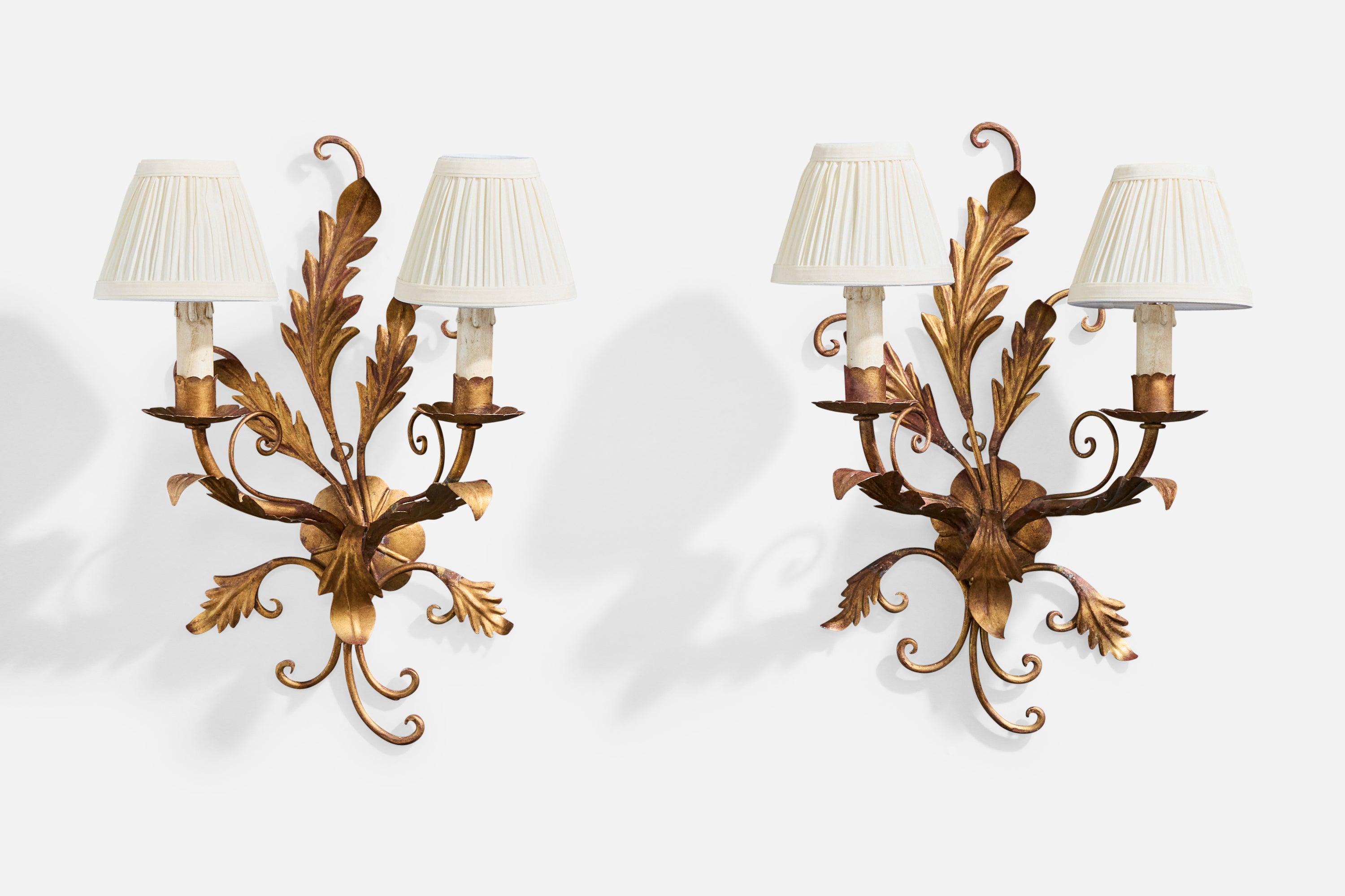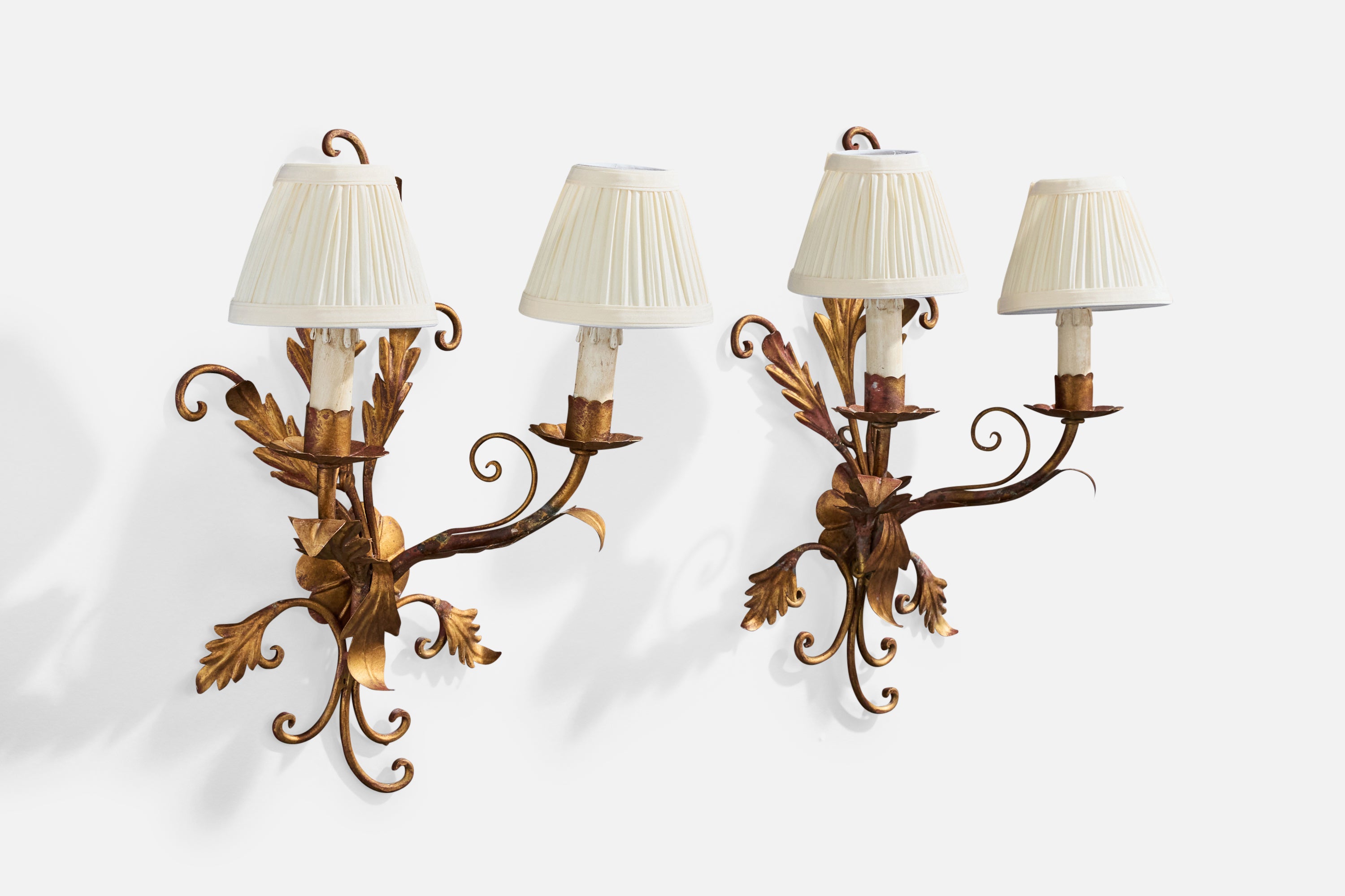 Italian Designer, Wall Lights, Metal, Fabric, Italy, 1940s