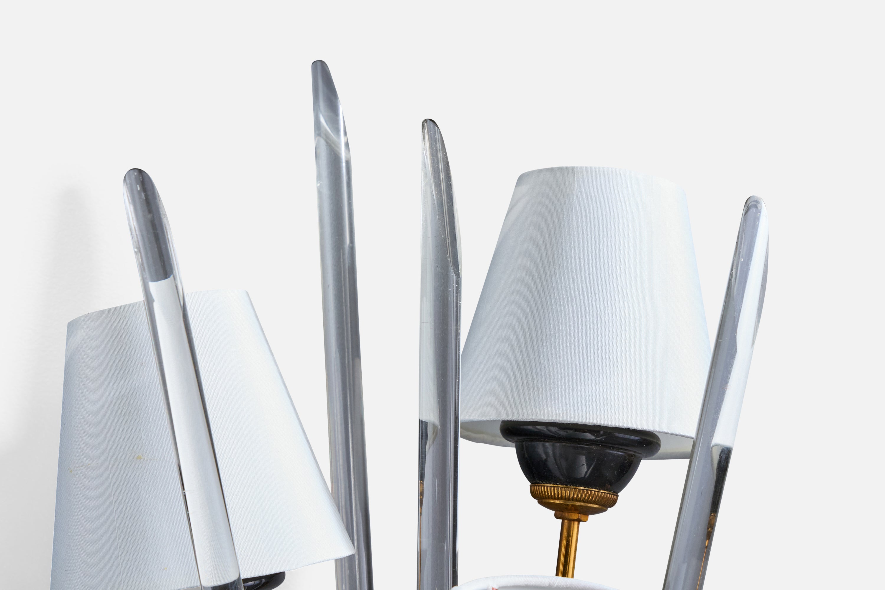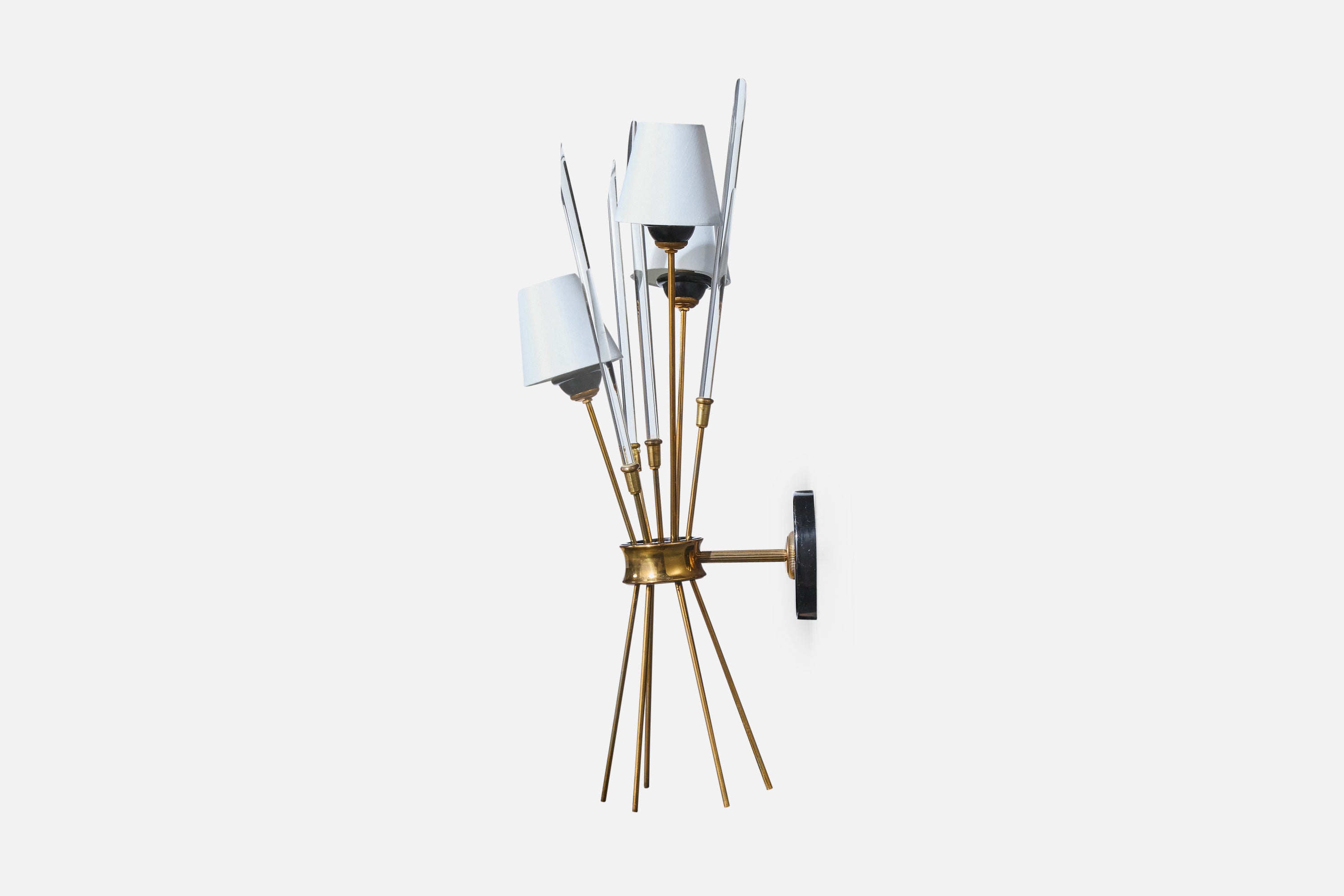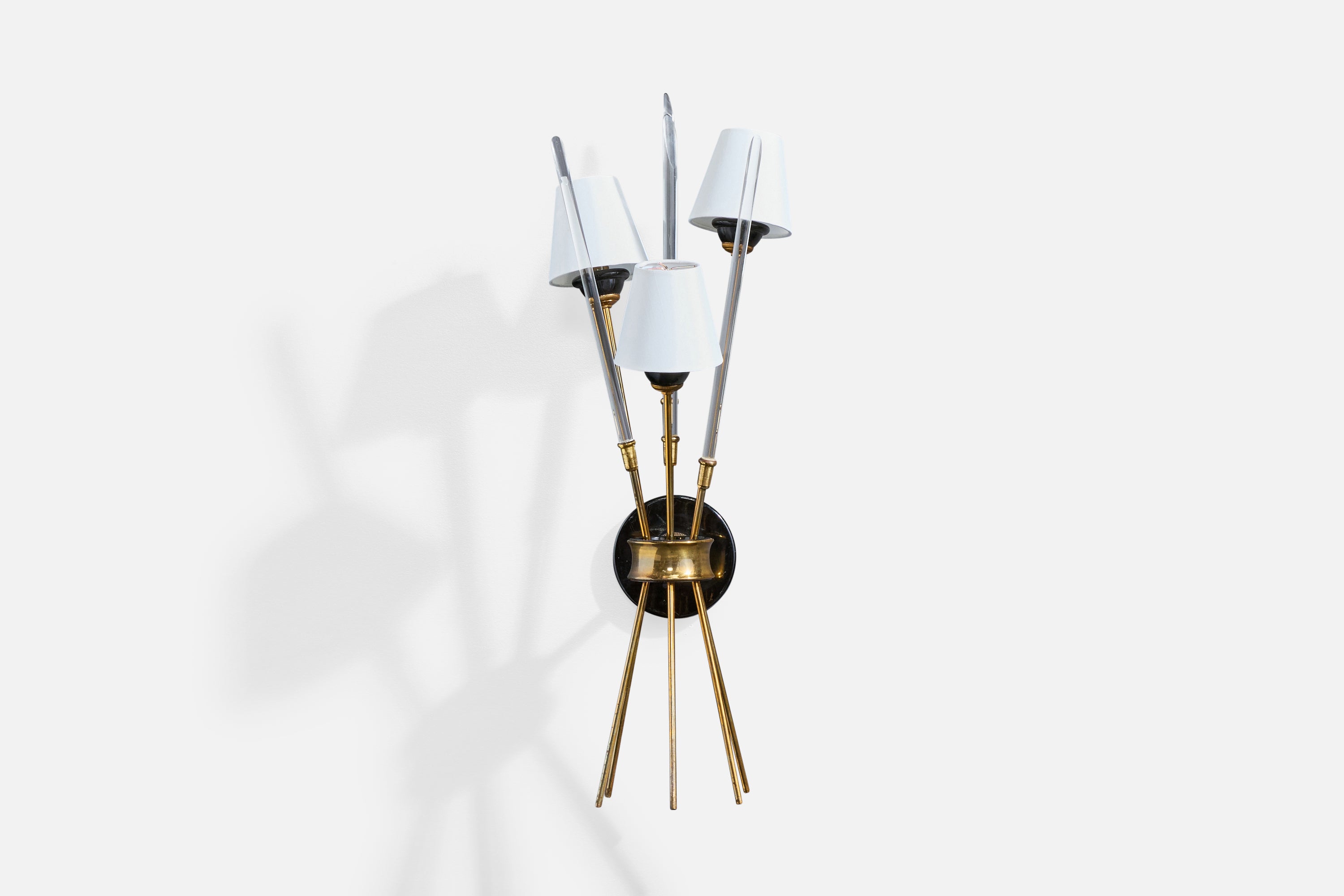 French Designer, Wall Light, Brass, Metal, Plexiglass, Fabric, France, 1950s