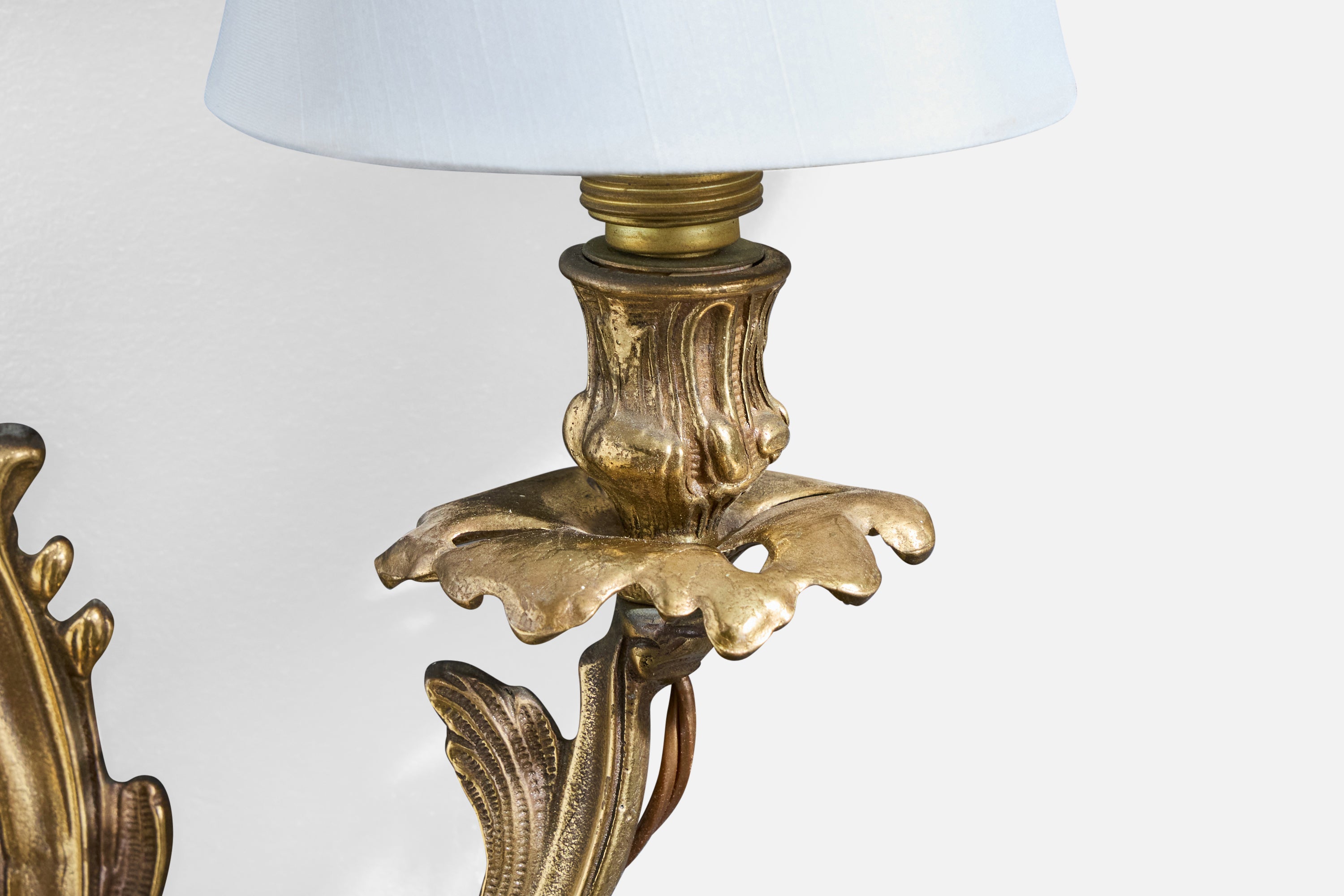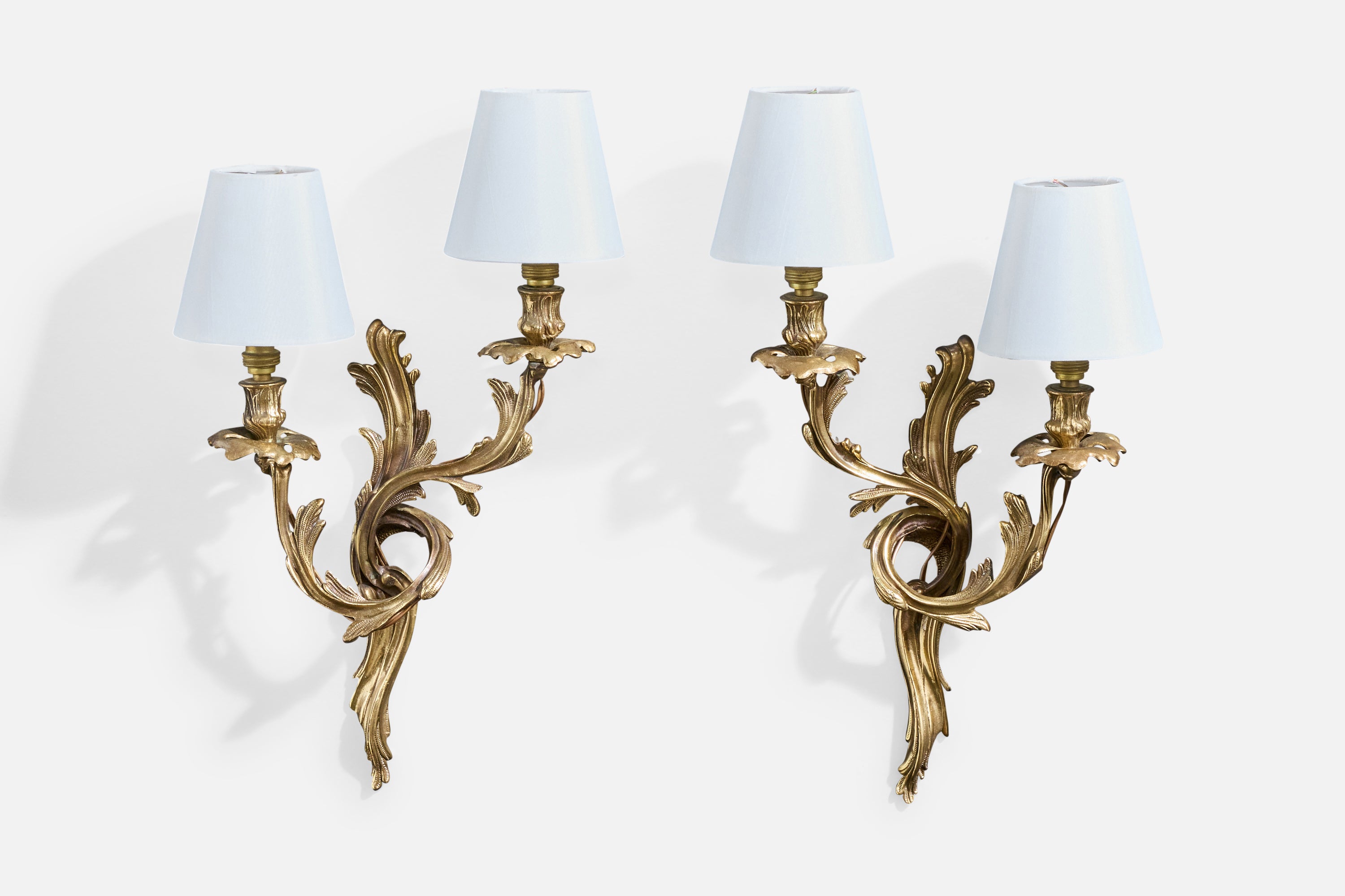 French Designer, Wall Lights, Brass, Fabric, France, 1950s