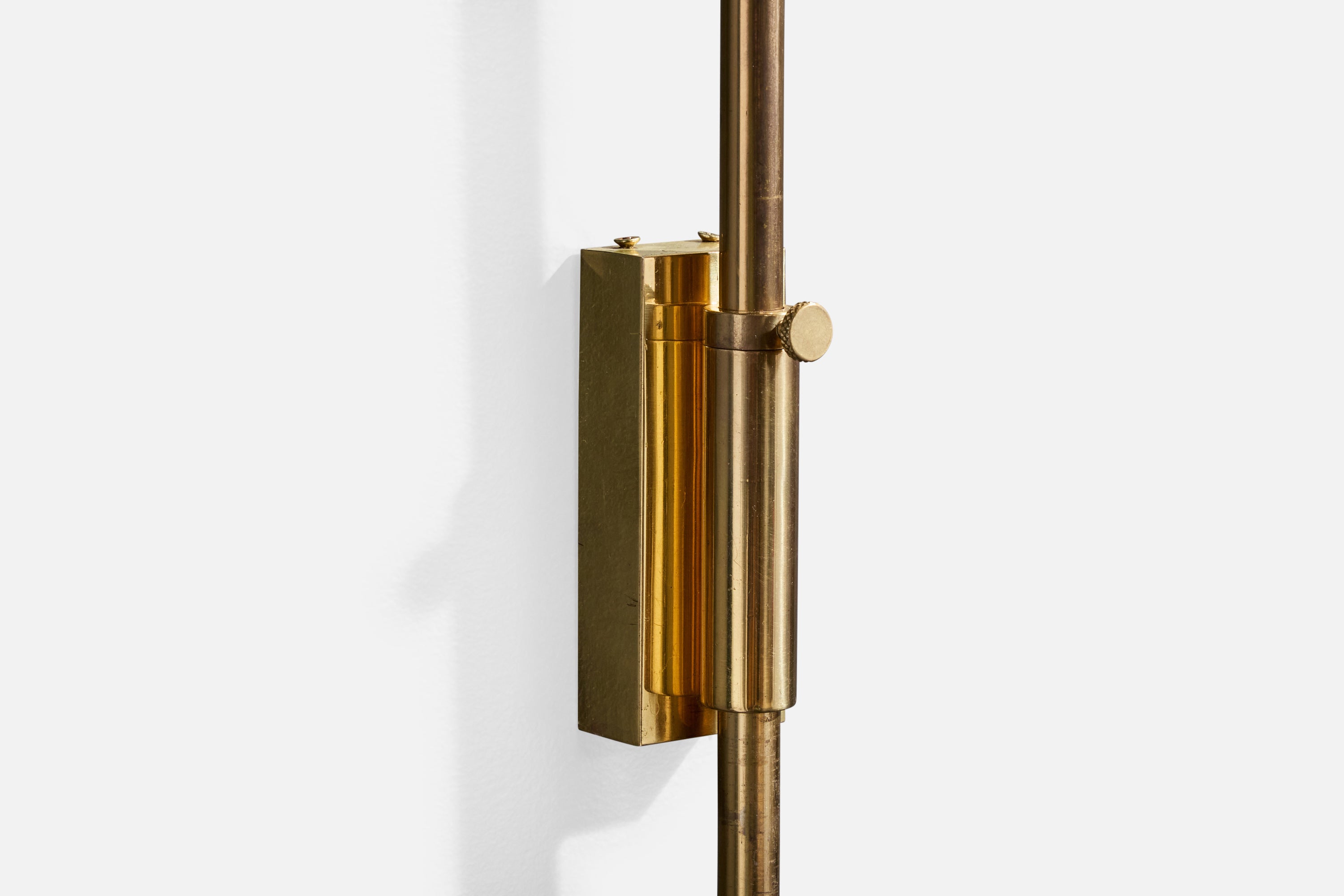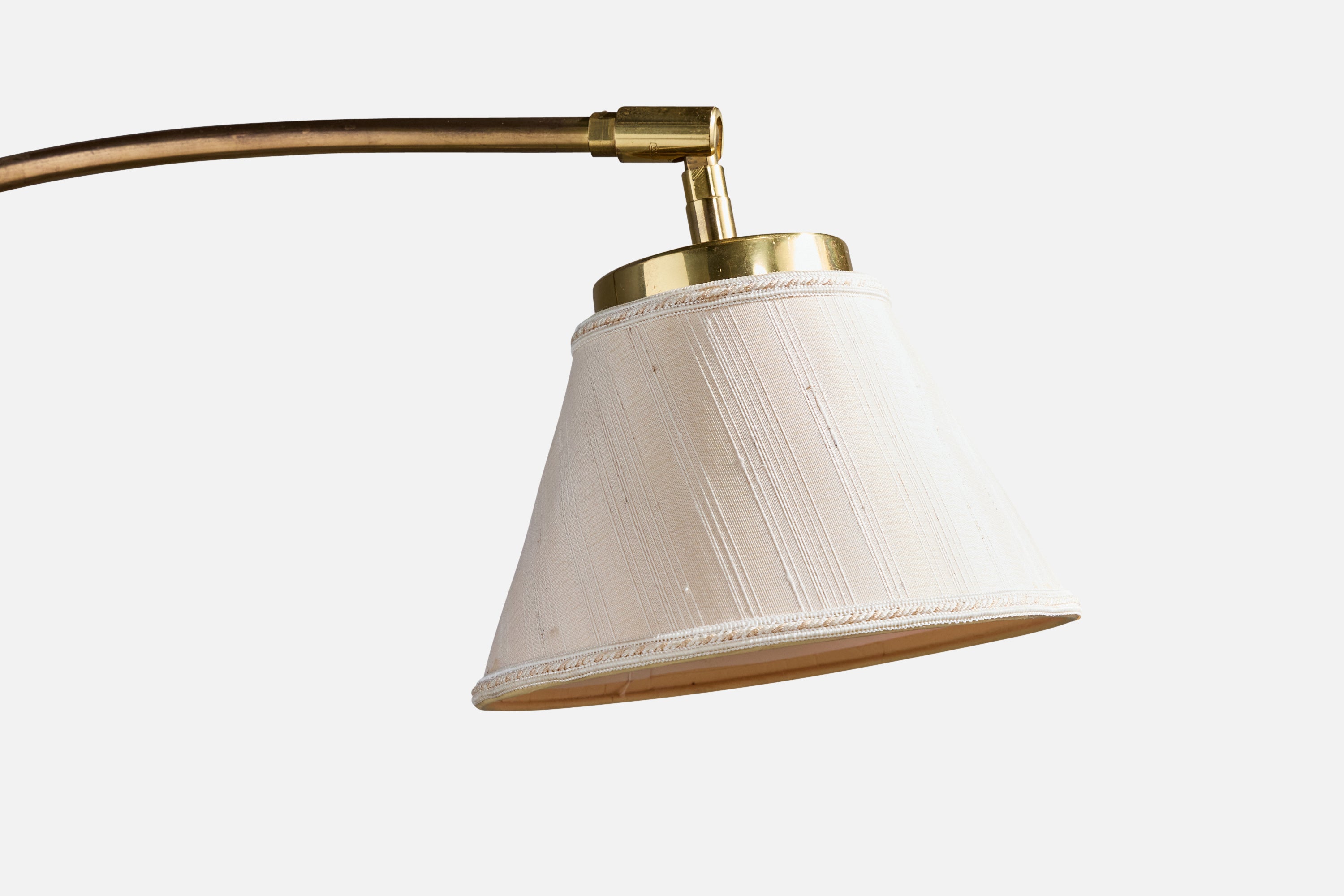 A pair of adjustable brass and light pink fabric wall lights designed by Josef Frank c. 1930s, produced by Svenskt Tenn, Sweden, c. 1980s.