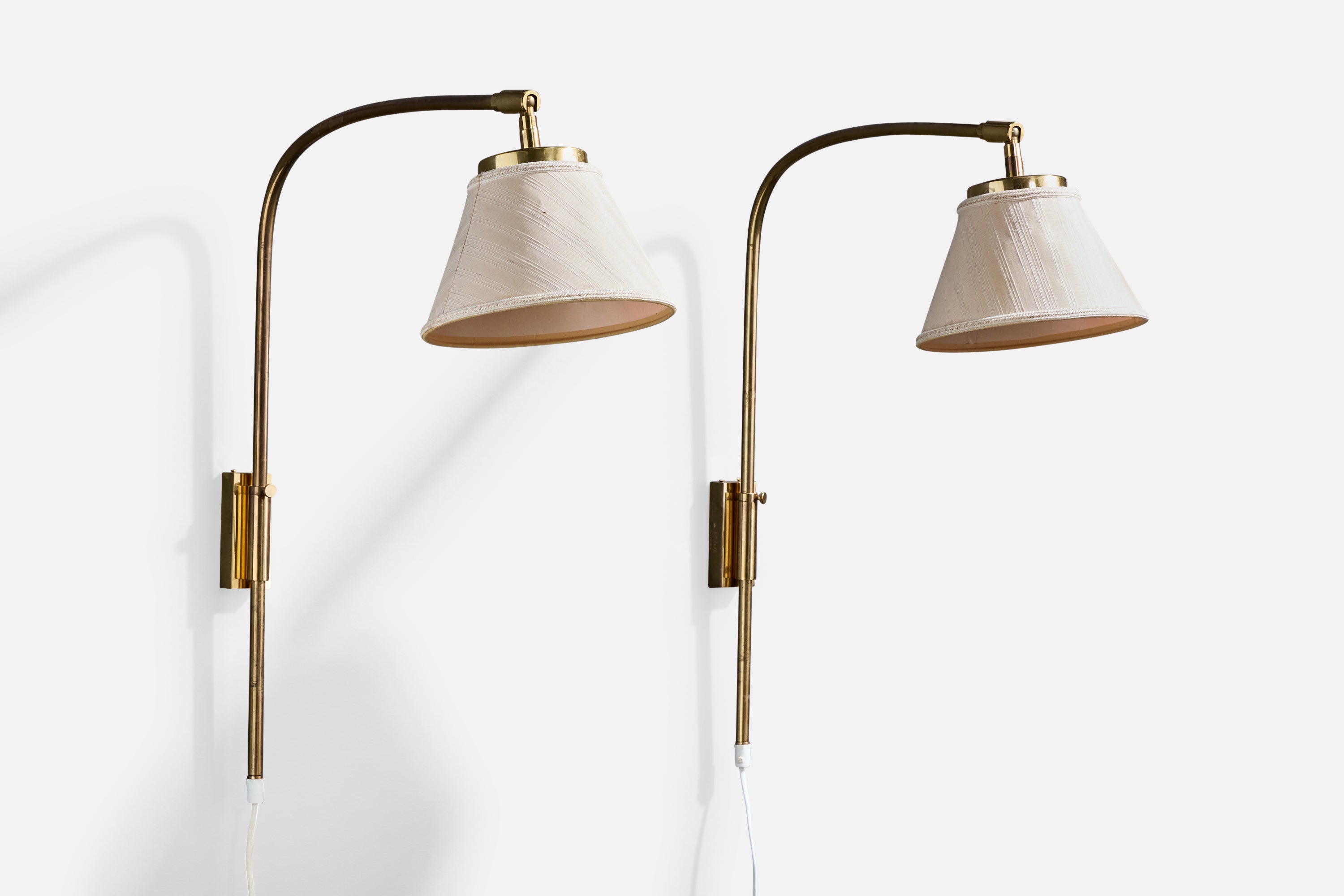 Josef Frank, Wall Lights, Brass, Fabric, Sweden, 1980s