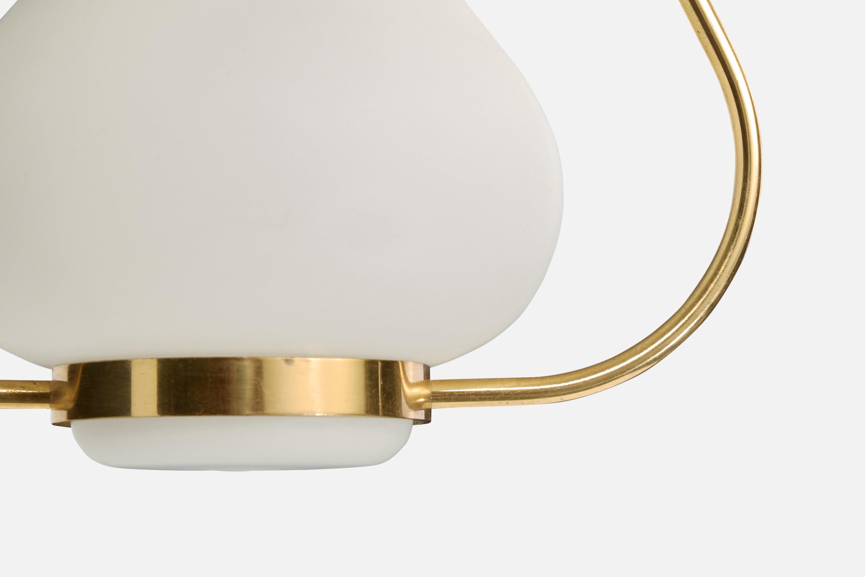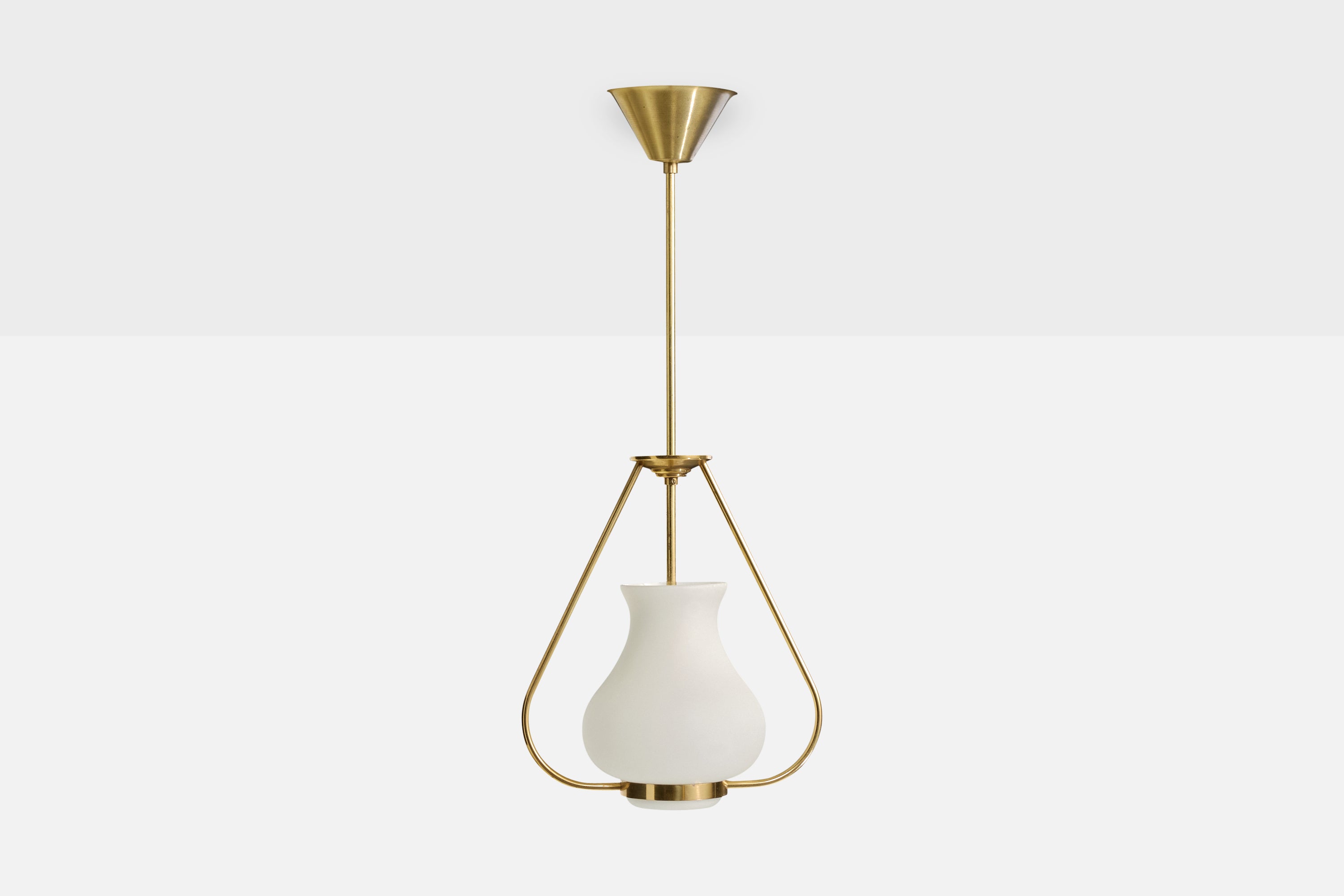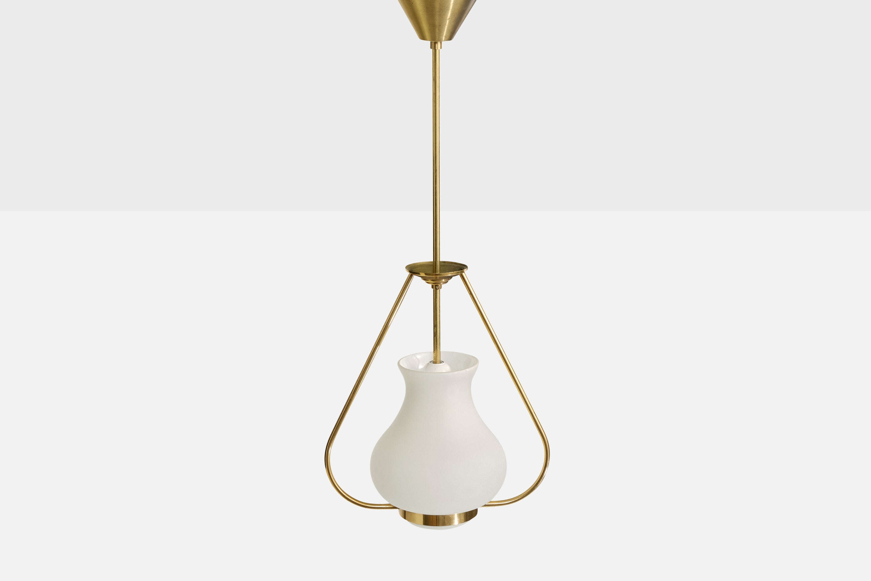 A brass and white opaline glass pendant light designed and produced in Sweden, c. 1950s.