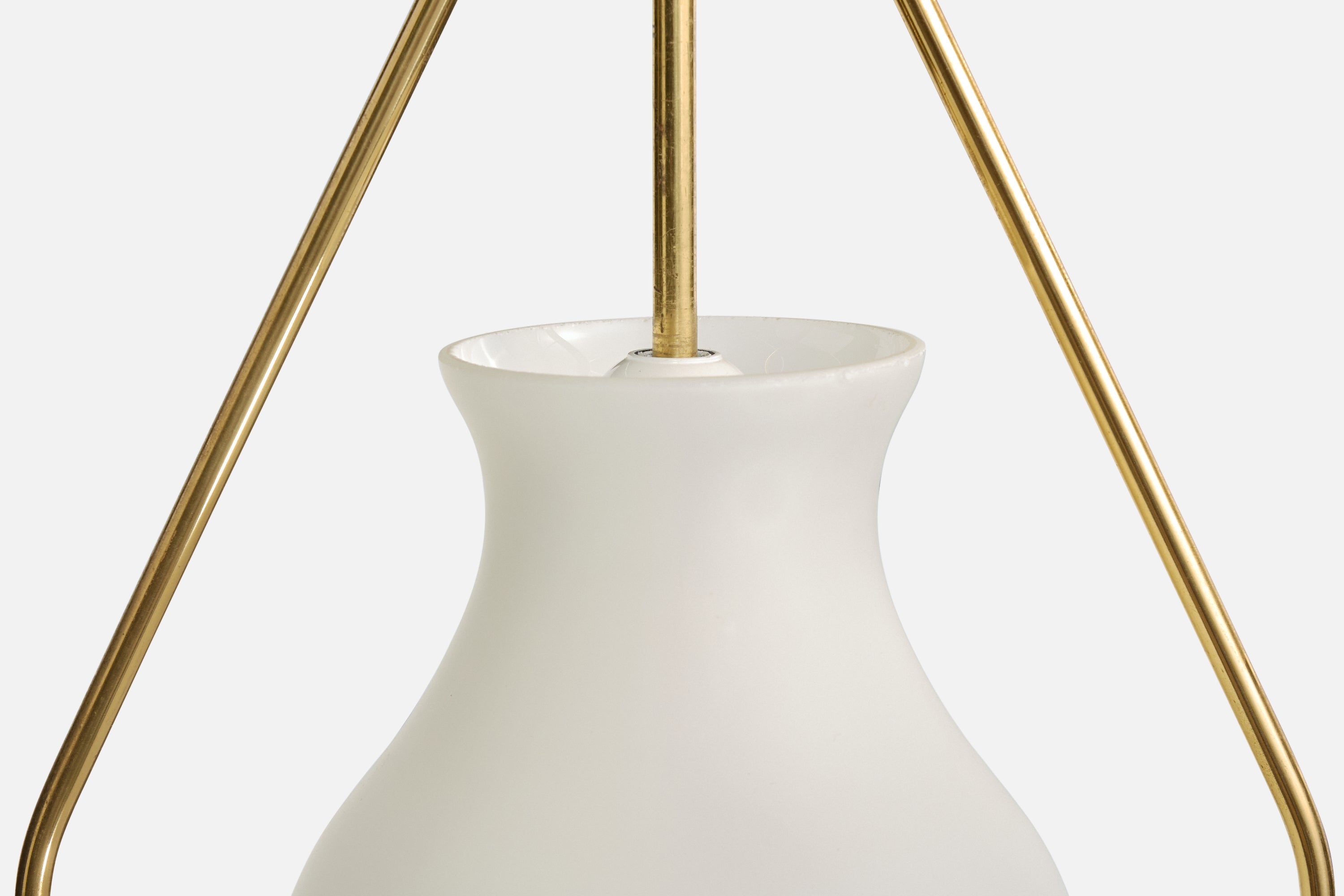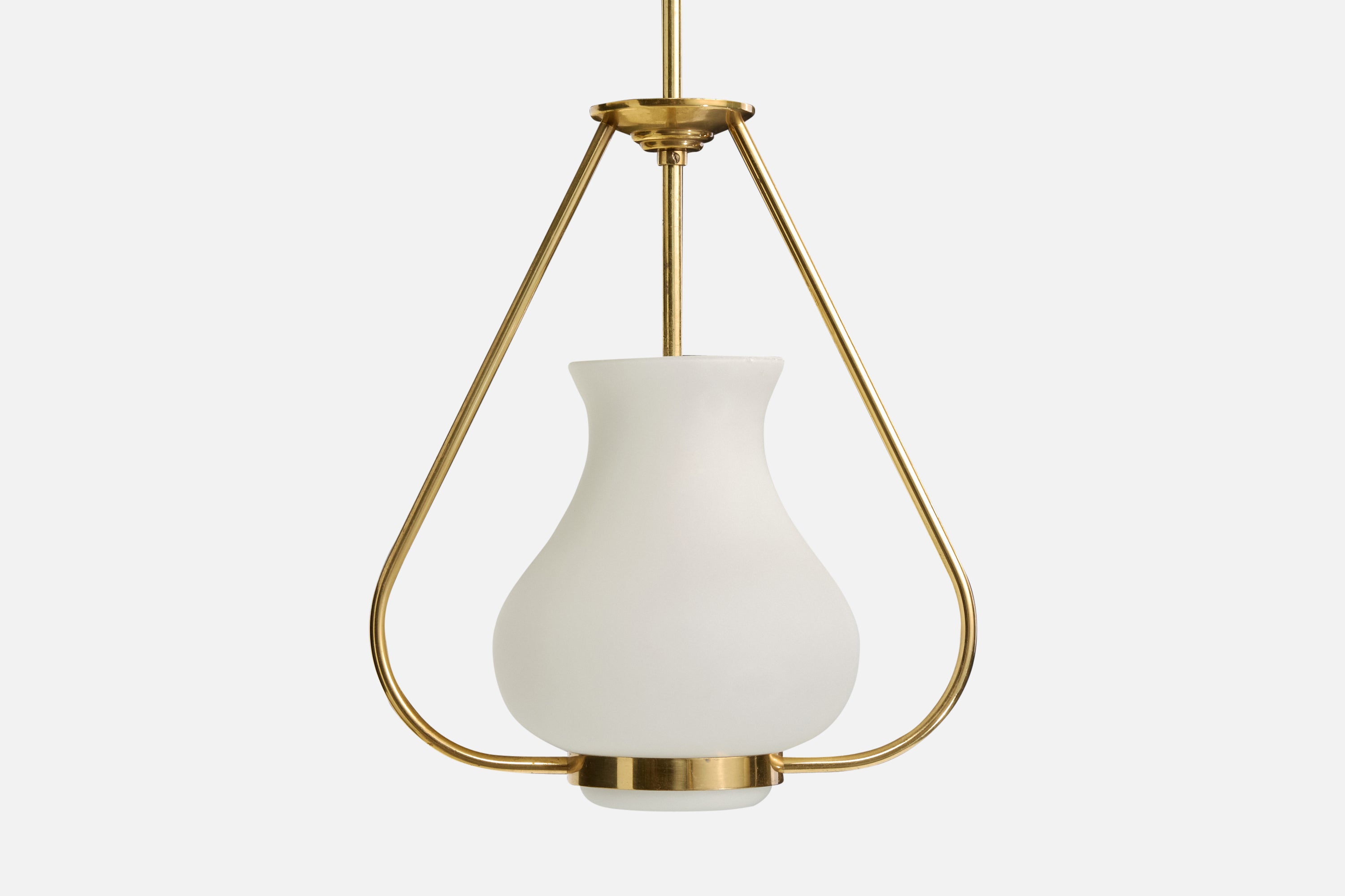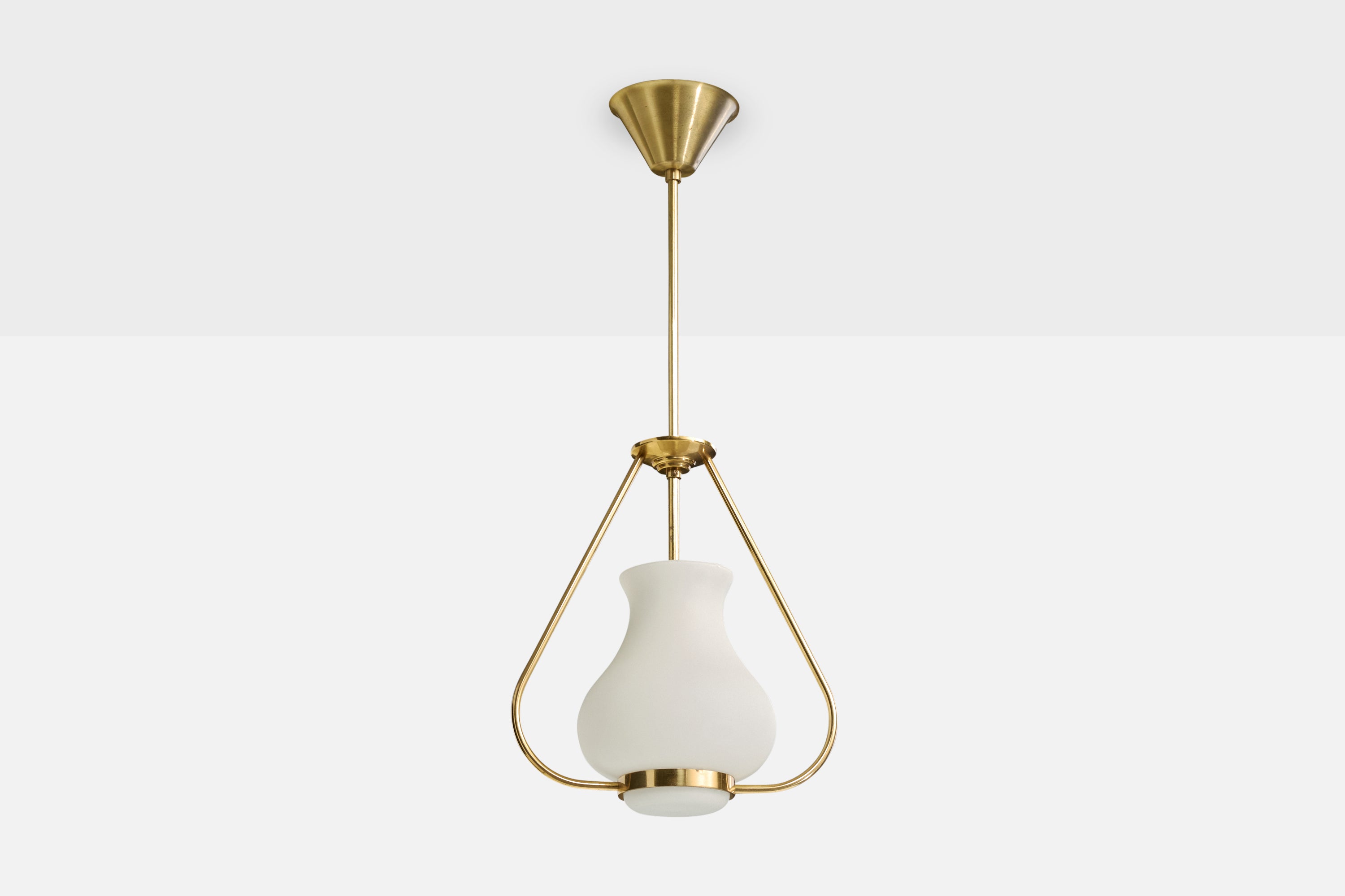 A brass and white opaline glass pendant light designed and produced in Sweden, c. 1950s.