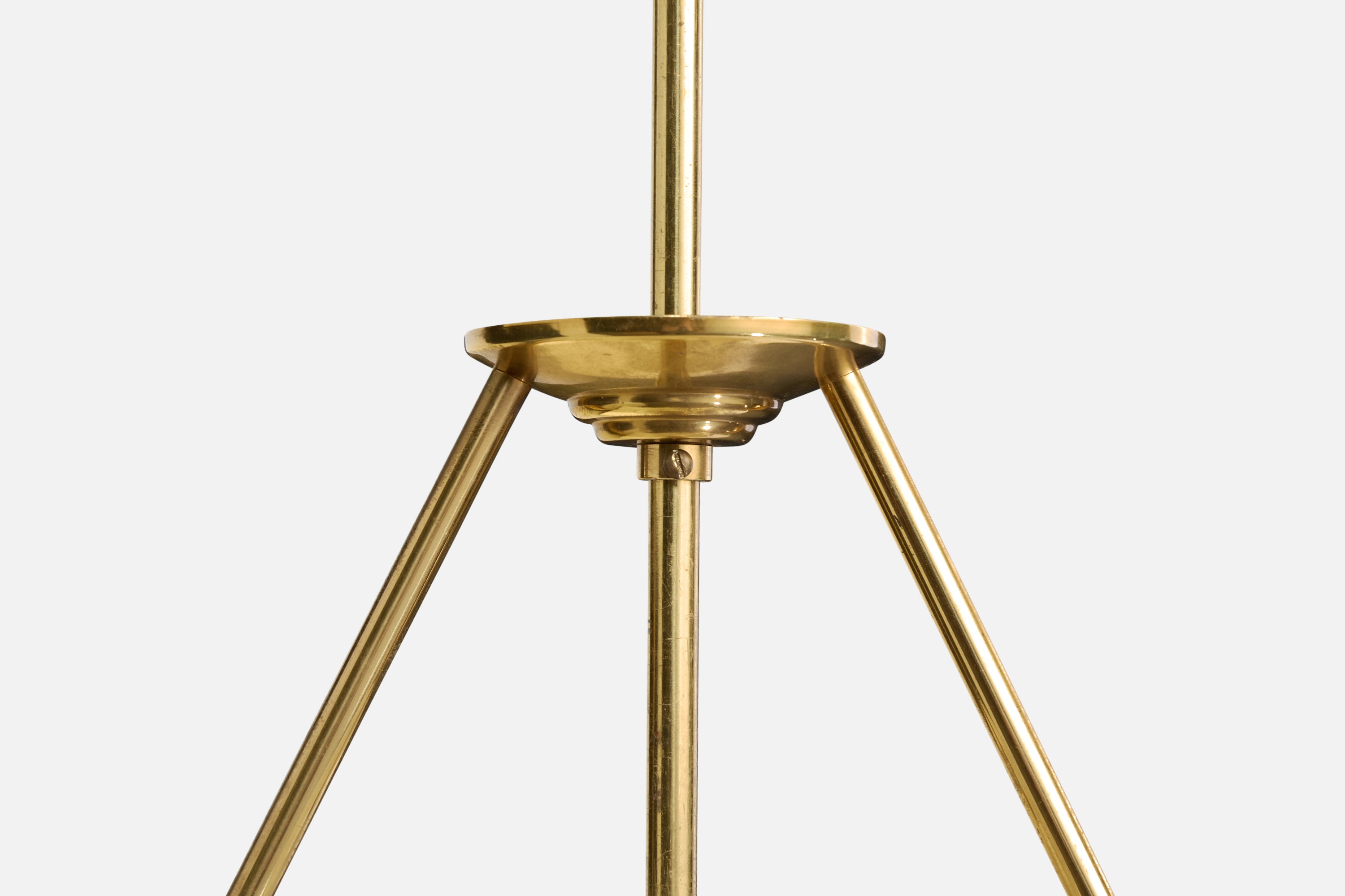 Swedish Designer, Pendant Light, Brass, Glass, Sweden, 1950s